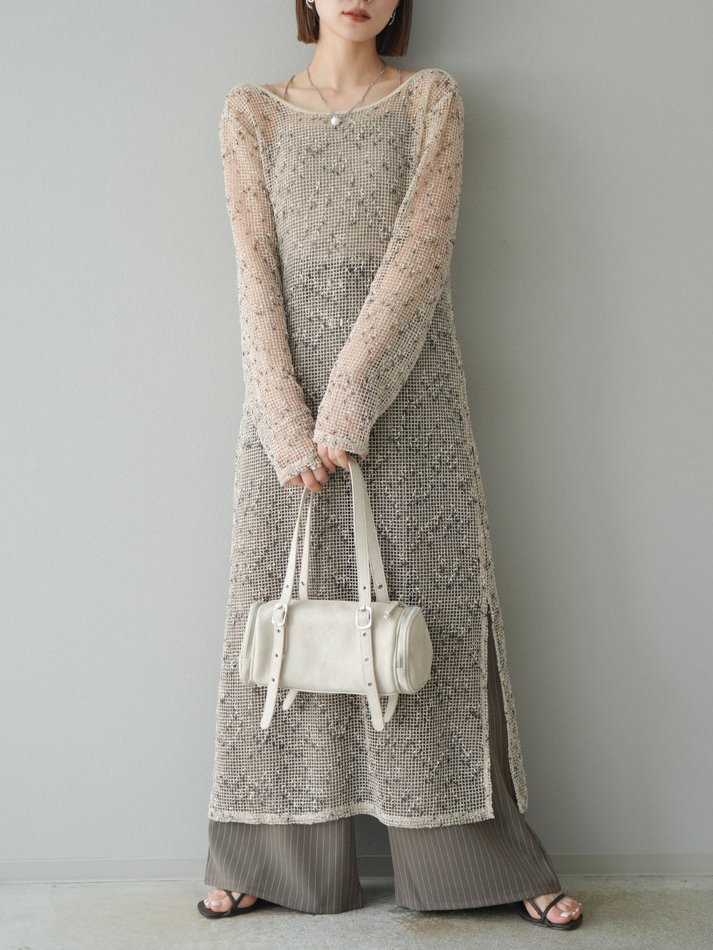 [予約]リブ襟ブークレZIPニットカーディガン/gray