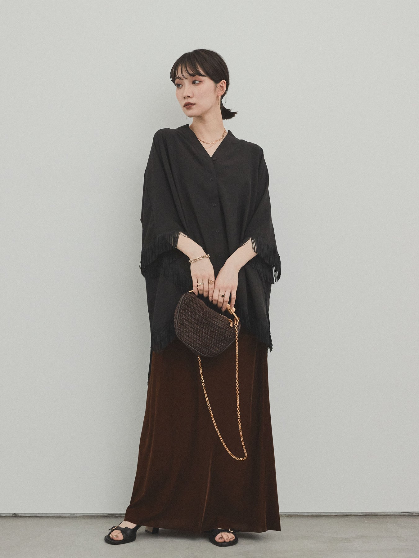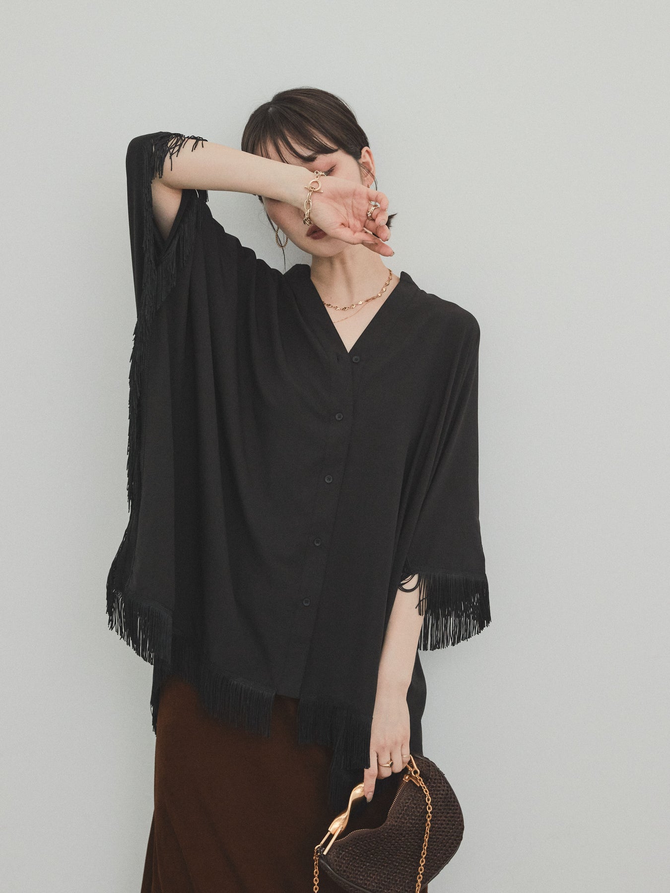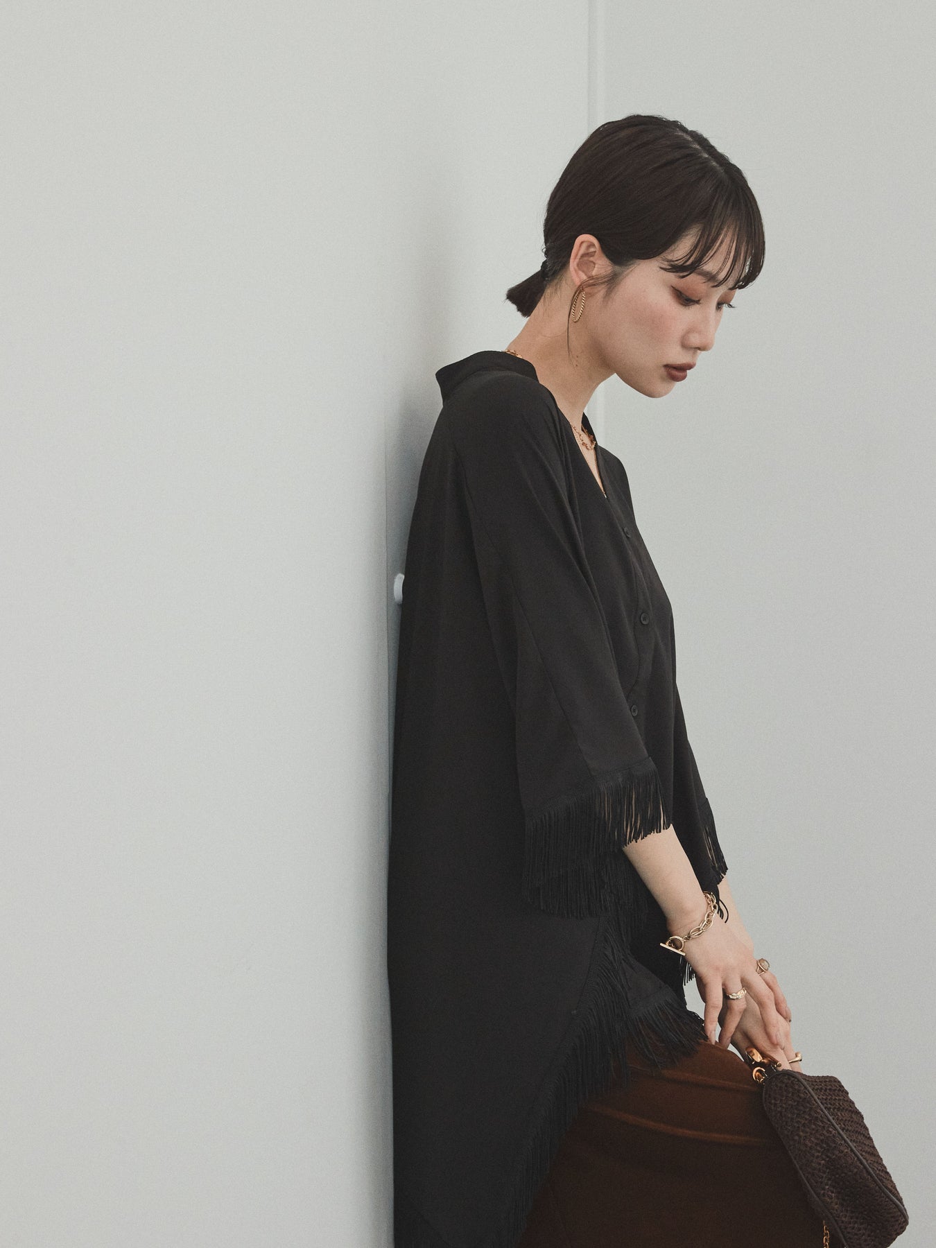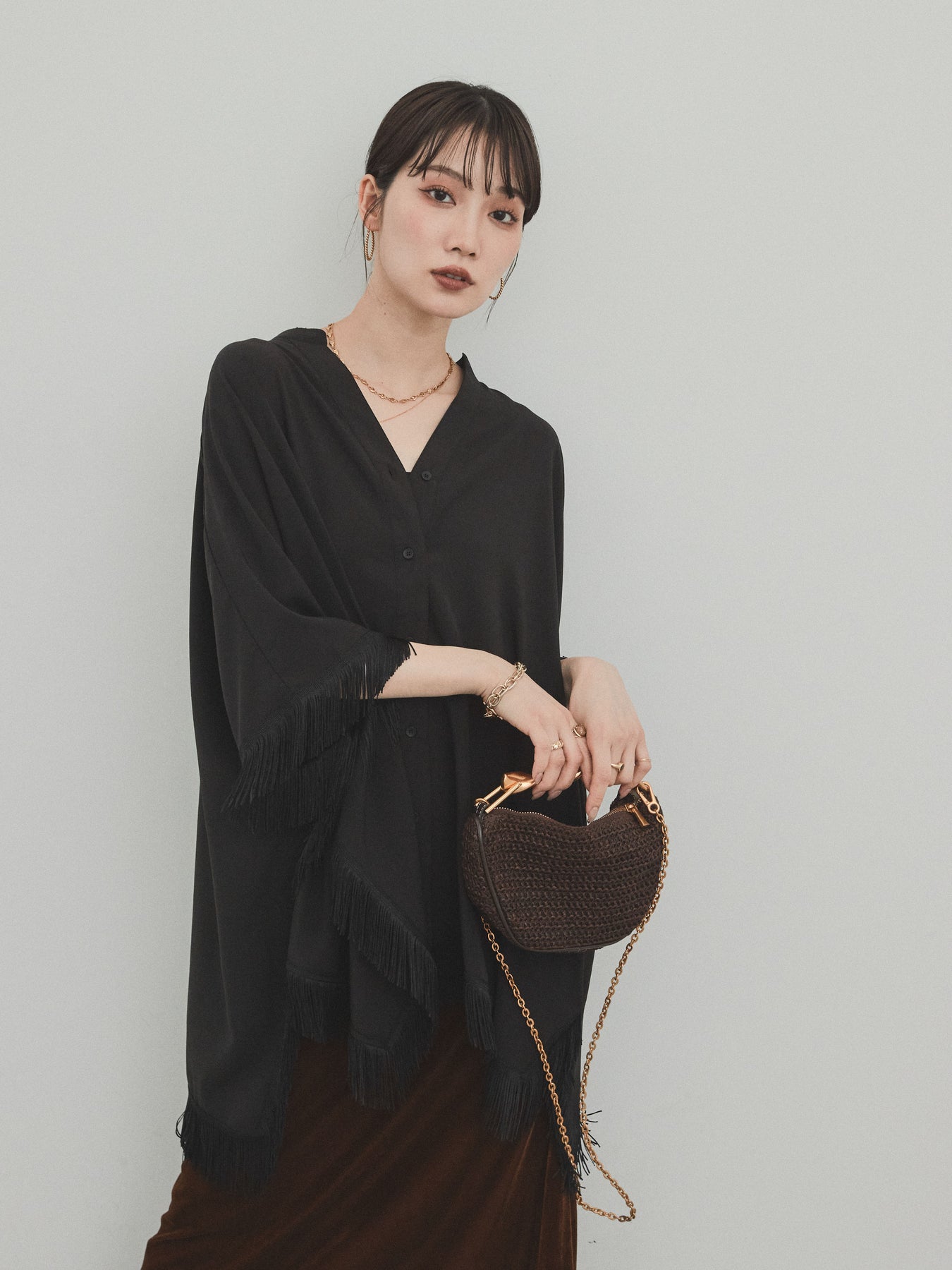 這款方形流蘇斗篷襯衫輪廓休閒,飾有醒目動感的流蘇細節。獨特的方形輪廓營造出輕鬆休閒的造型,下擺和袖口的流蘇則增添了一抹亮色。順滑飄逸的布料隨著每個動作優雅搖曳。它既可作為罩衫穿著,也可單獨穿著,能夠輕鬆搭配從休閒到現代的各種風格。這件醒目的襯衫,只要穿上便能讓您展現精緻優雅。 ※除下裝、吊帶背心(內衣)以外的商品均不含內衣。
