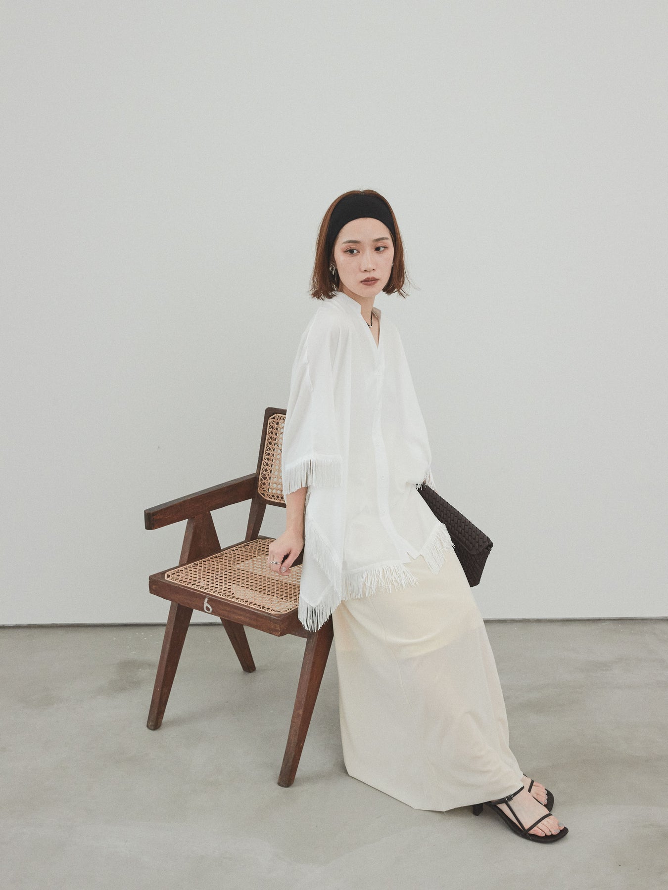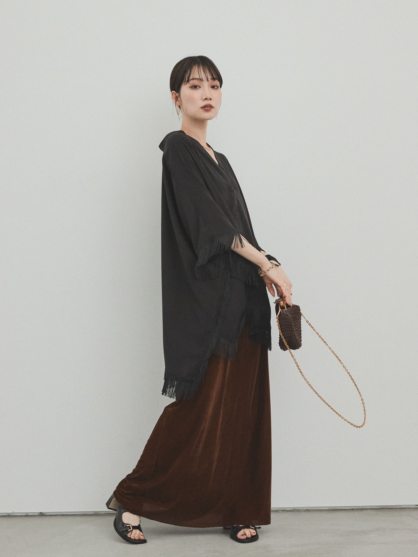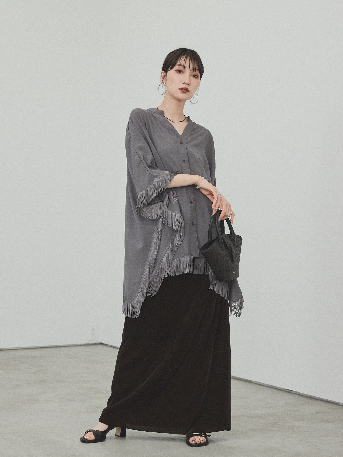 這款方形流蘇斗篷襯衫輪廓休閒,飾有醒目動感的流蘇細節。獨特的方形輪廓營造出輕鬆休閒的造型,下擺和袖口的流蘇則增添了一抹亮色。順滑飄逸的布料隨著每個動作優雅搖曳。它既可作為罩衫穿著,也可單獨穿著,能夠輕鬆搭配從休閒到現代的各種風格。這件醒目的襯衫,只要穿上便能讓您展現精緻優雅。 ※除下裝、吊帶背心(內衣)以外的商品均不含內衣。