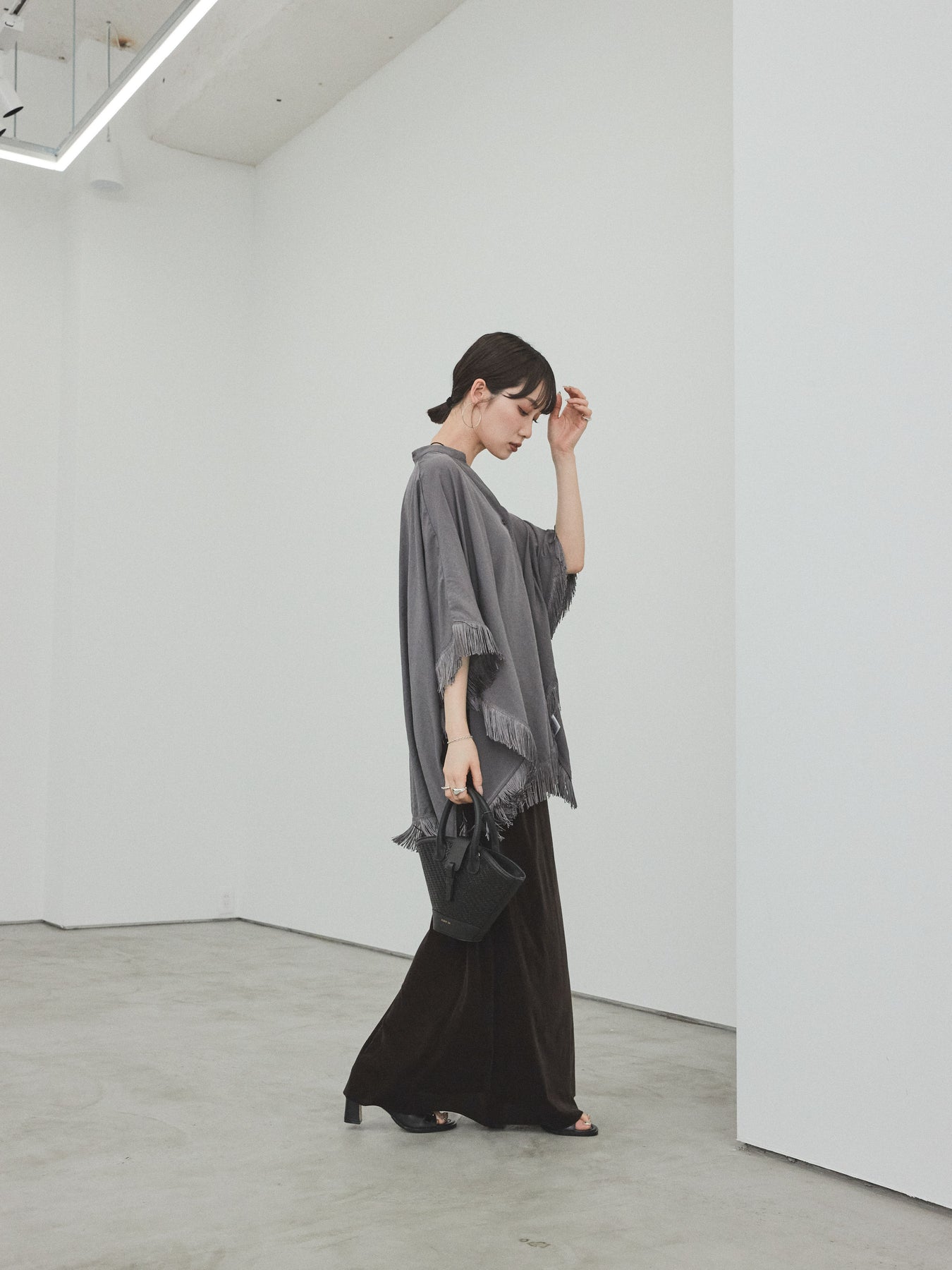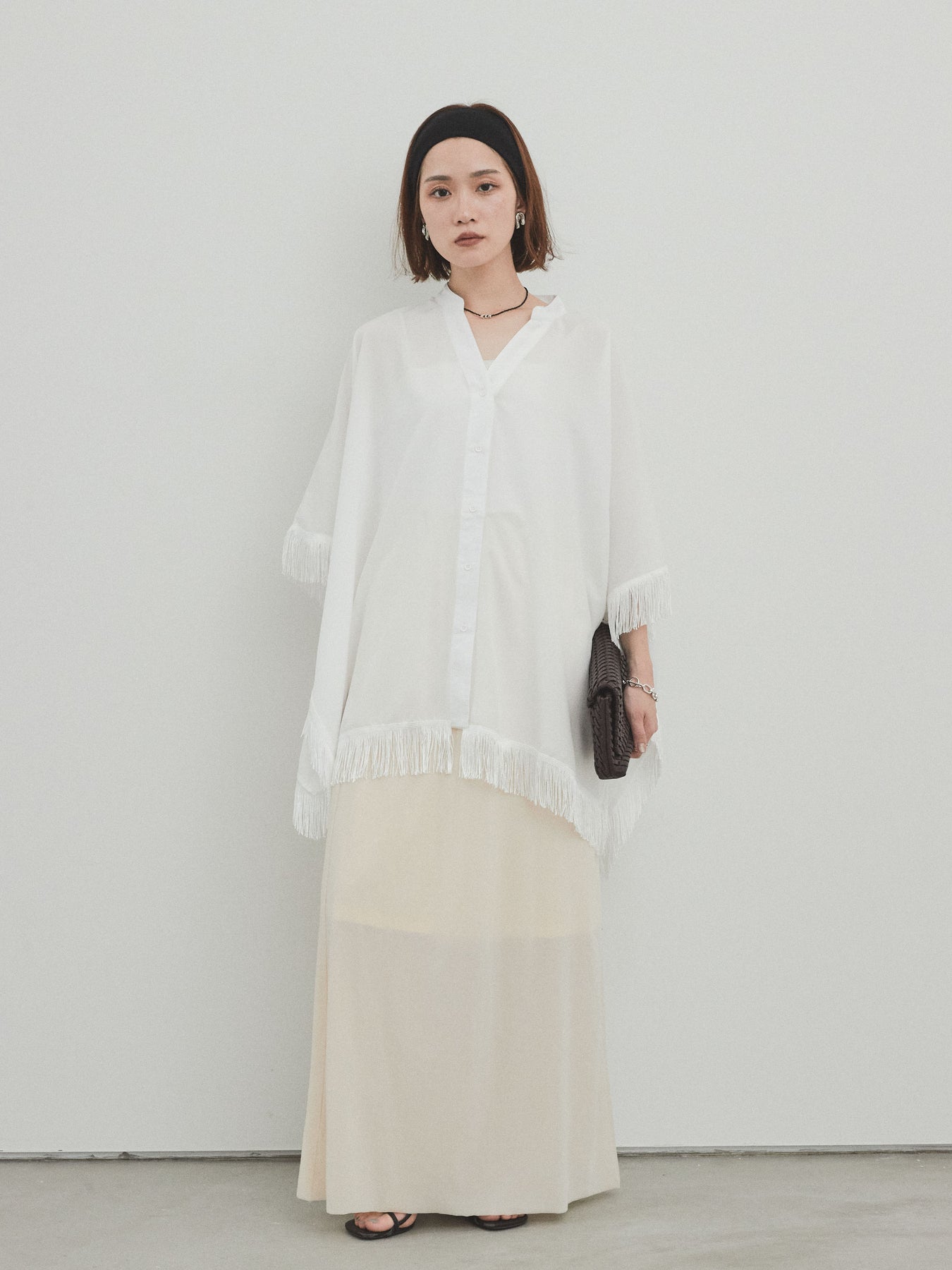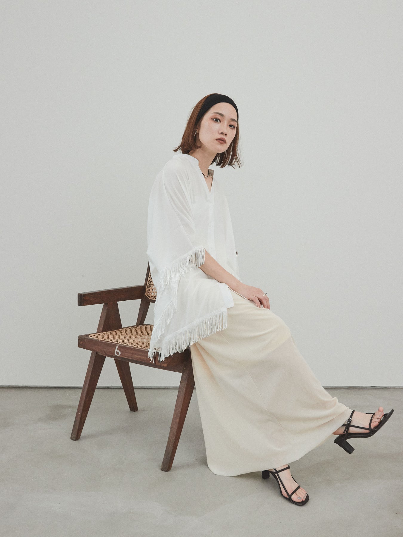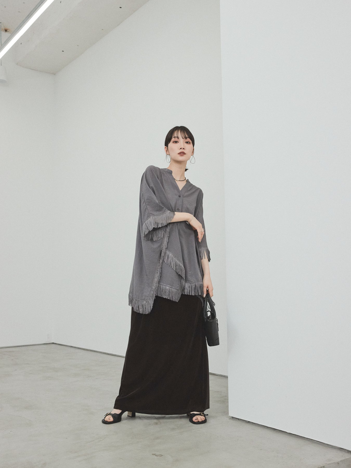 這款方形流蘇斗篷襯衫輪廓休閒,飾有醒目動感的流蘇細節。獨特的方形輪廓營造出輕鬆休閒的造型,下擺和袖口的流蘇則增添了一抹亮色。順滑飄逸的布料隨著每個動作優雅搖曳。它既可作為罩衫穿著,也可單獨穿著,能夠輕鬆搭配從休閒到現代的各種風格。這件醒目的襯衫,只要穿上便能讓您展現精緻優雅。 ※除下裝、吊帶背心(內衣)以外的商品均不含內衣。