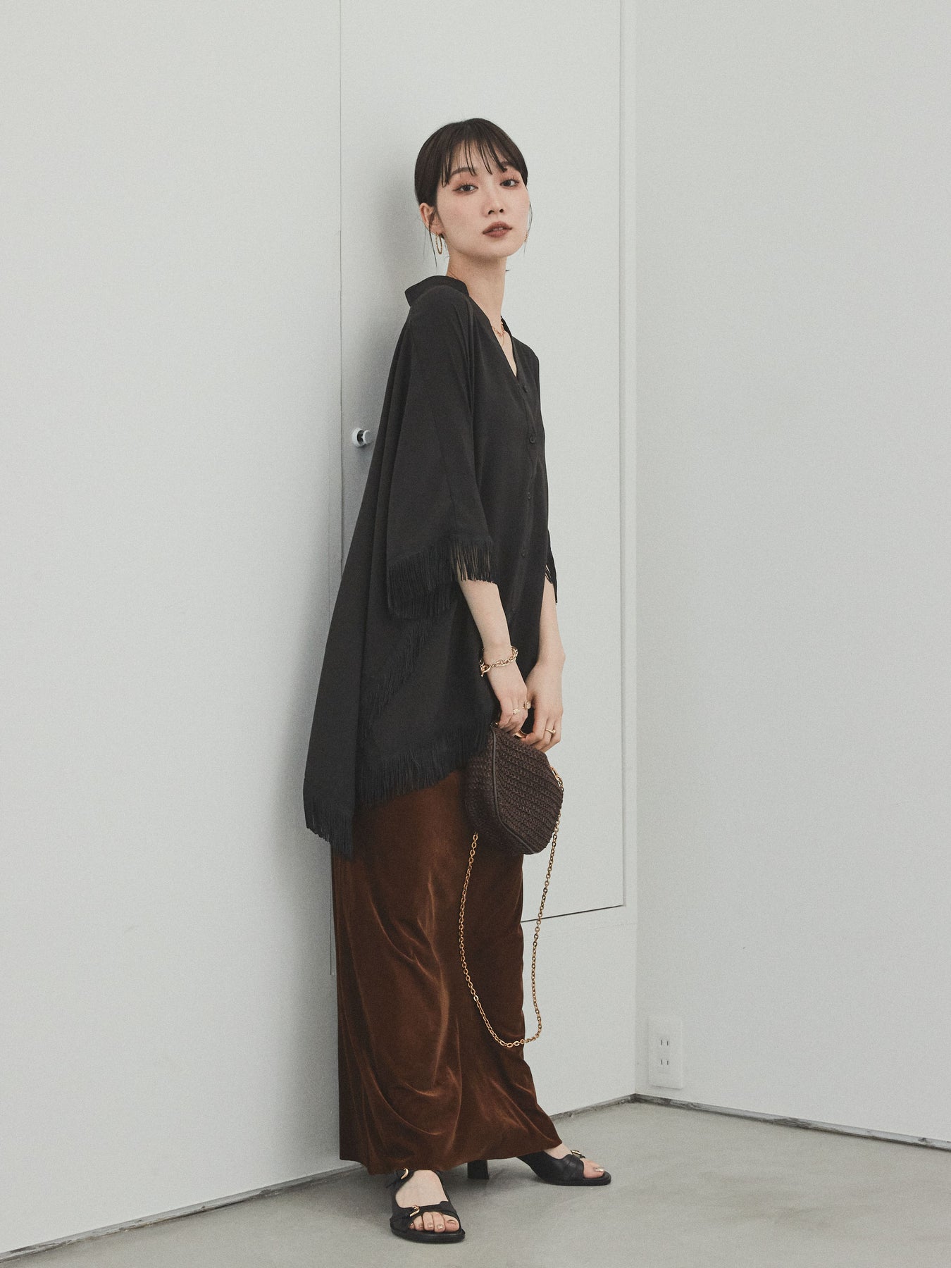 這款窄裙採用富有光澤的天鵝絨材質,優雅又別緻。輕柔貼合身體曲線的輪廓,展現女性魅力,富有彈性的材質則帶來絕佳的行動自由。自然垂墜的裙擺線條優美,與靴子、涼鞋等季節相配的鞋履也相得益彰。它是百搭單品,可搭配T卹或針織衫,打造休閒造型;也可搭配襯衫,打造幹練造型。不僅適合秋冬季節,也能充分發揮材質的魅力,打造四季皆宜的造型。