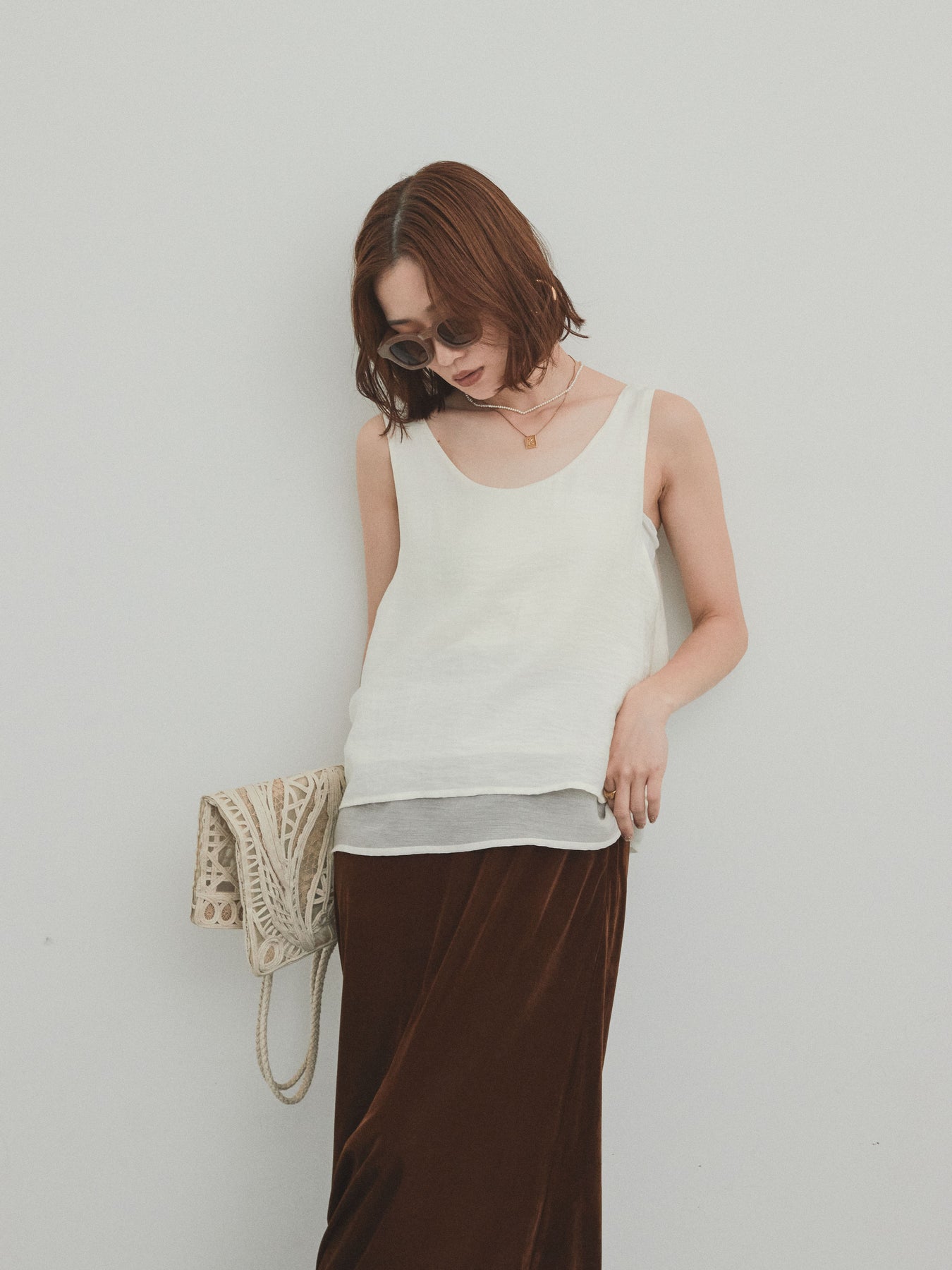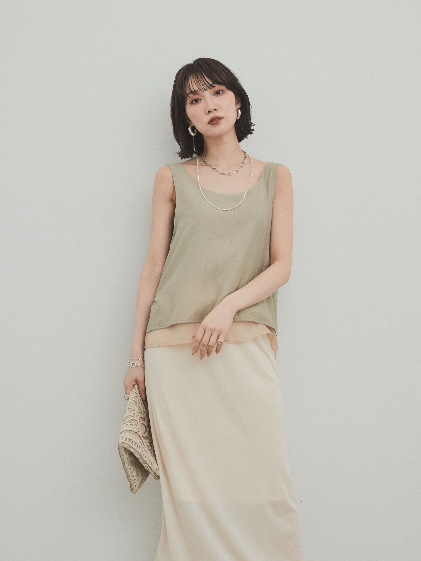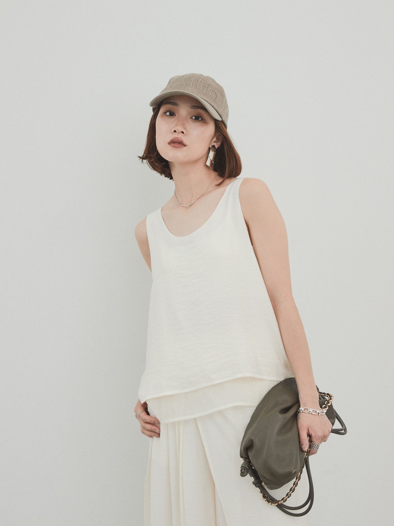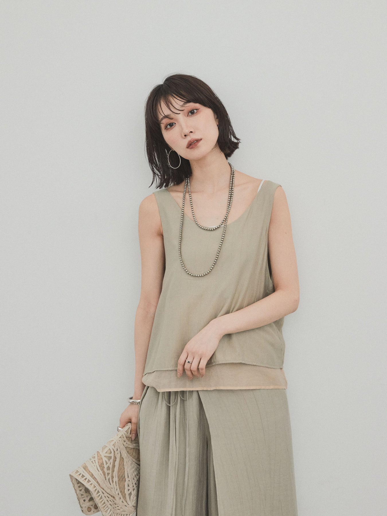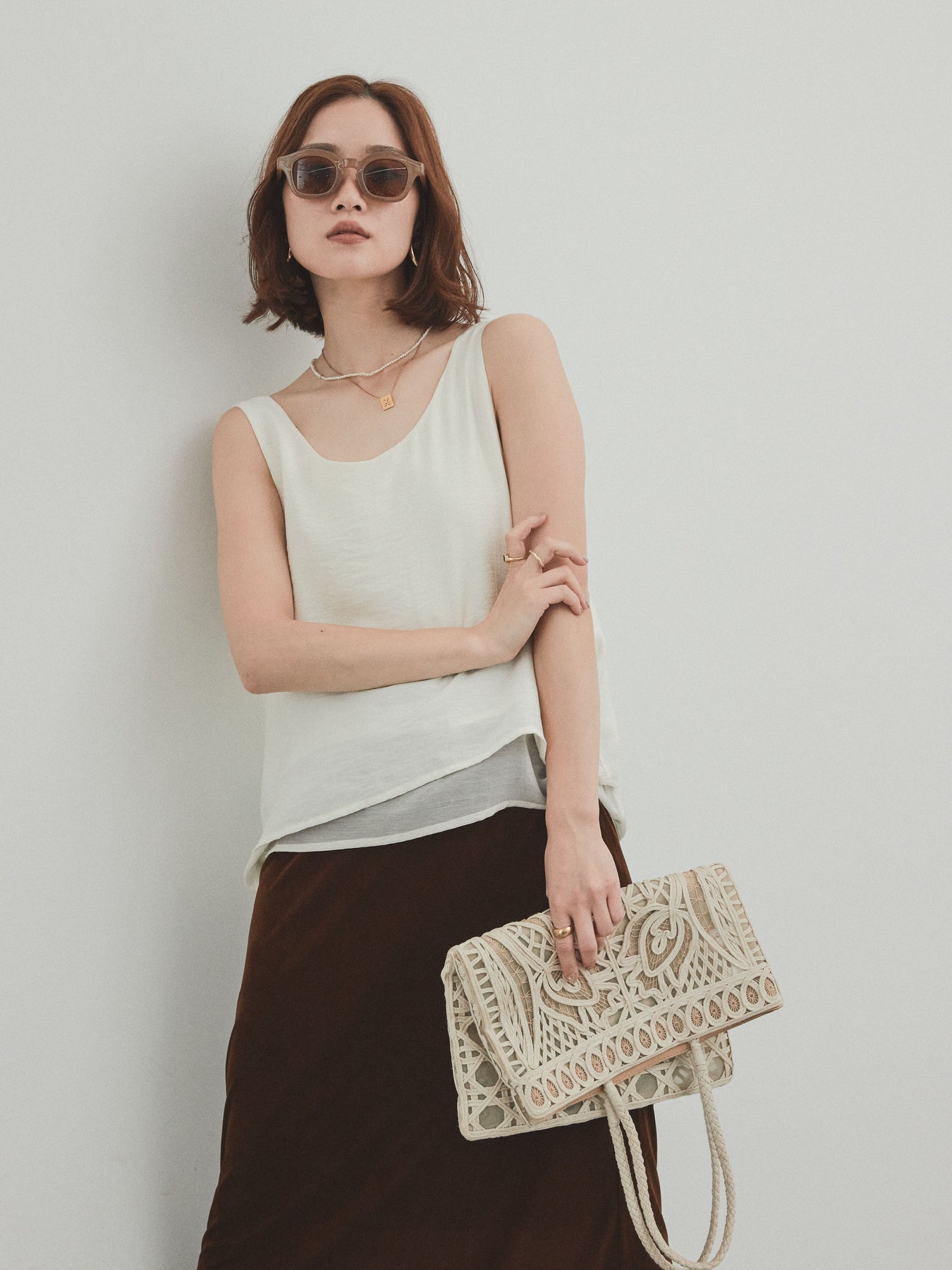 這款水洗緞面透明層疊背心,採用輕盈緞面和透明層疊布料製成。適度的光澤和細膩的質感,賦予其簡約而優雅的氣質。不同材質的疊穿營造出立體感,打造出極具存在感的時尚單品。寬鬆的輪廓不會凸顯身體線條,清涼舒適感也極具魅力。這款單品將成為夏季的必備單品,可搭配從休閒到優雅的各種風格。 ※除下裝、吊帶背心(內衣)以外的商品均不含內衣。