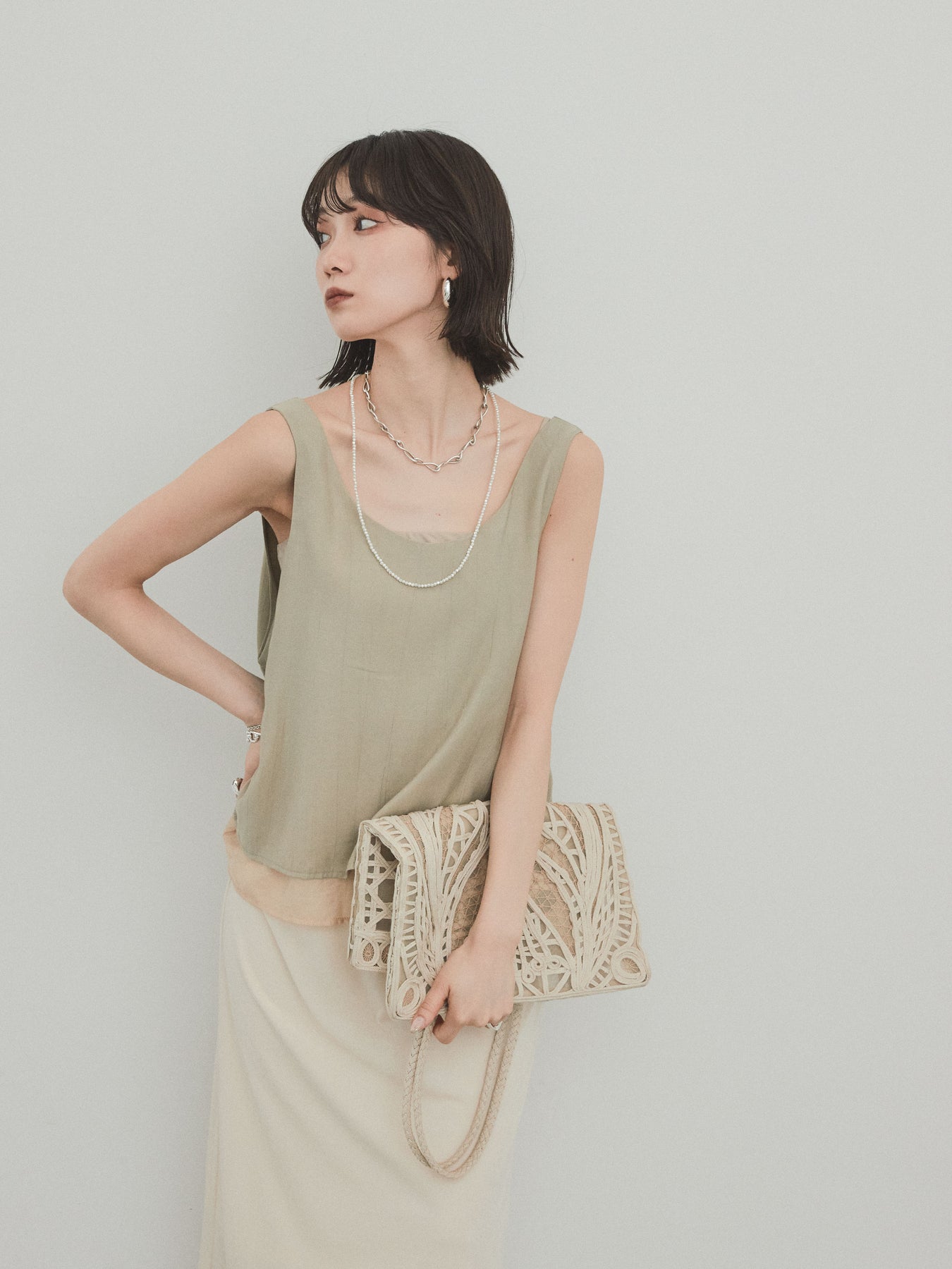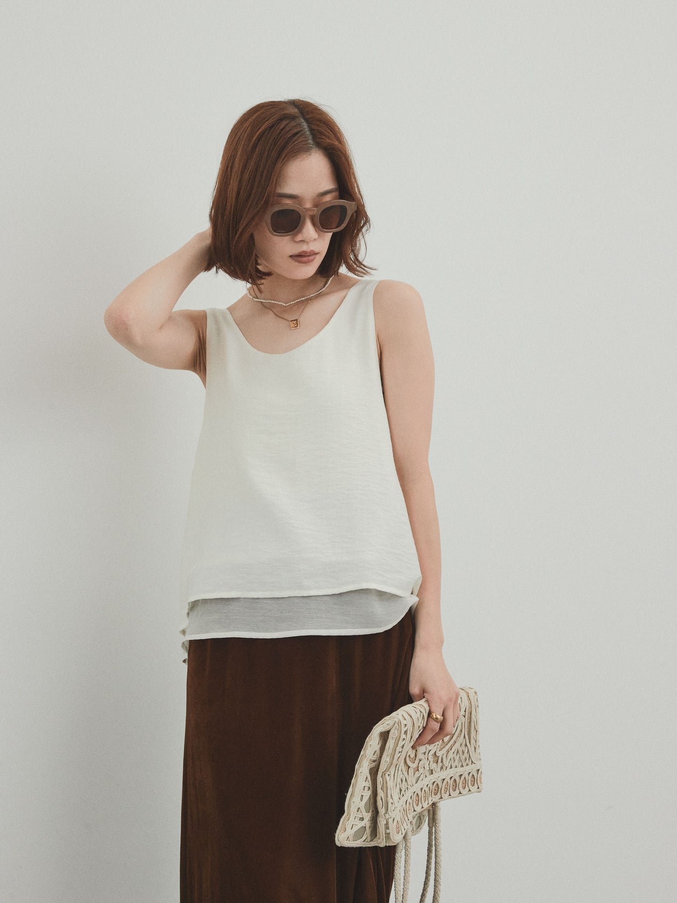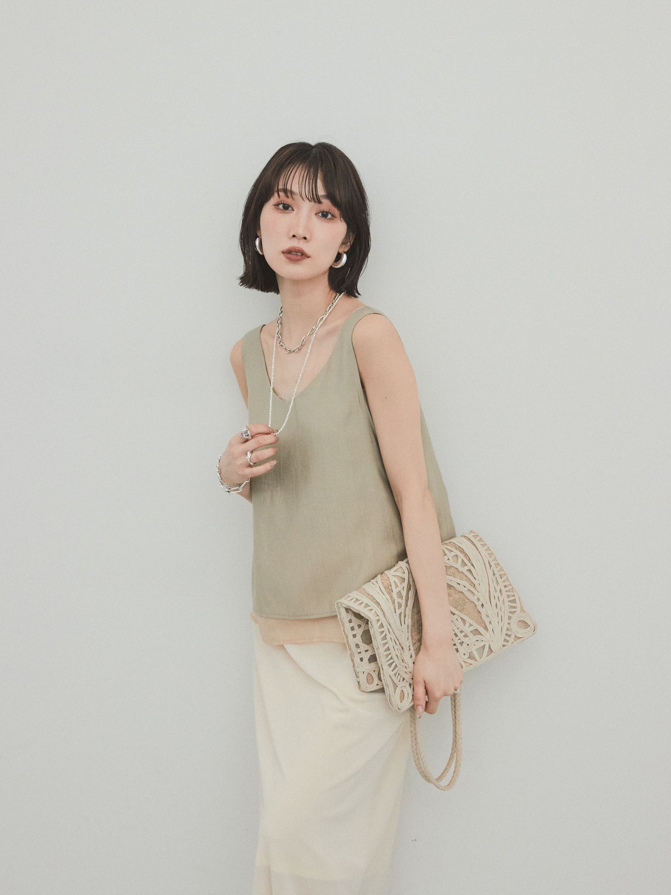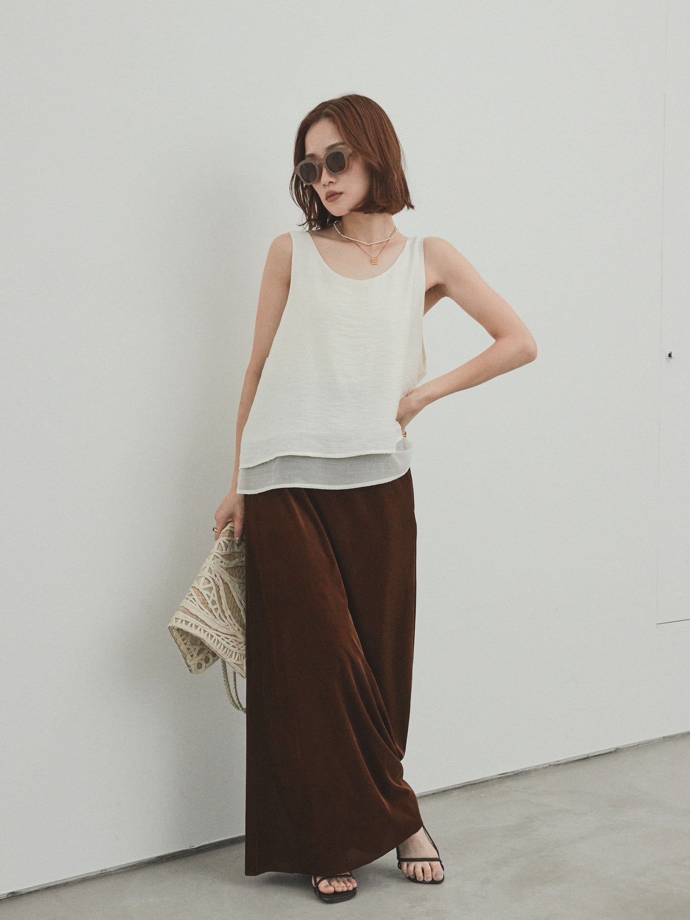 這款水洗緞面透明層疊背心,採用輕盈緞面和透明層疊布料製成。適度的光澤和細膩的質感,賦予其簡約而優雅的氣質。不同材質的疊穿營造出立體感,打造出極具存在感的時尚單品。寬鬆的輪廓不會凸顯身體線條,清涼舒適感也極具魅力。這款單品將成為夏季的必備單品,可搭配從休閒到優雅的各種風格。 ※除下裝、吊帶背心(內衣)以外的商品均不含內衣。