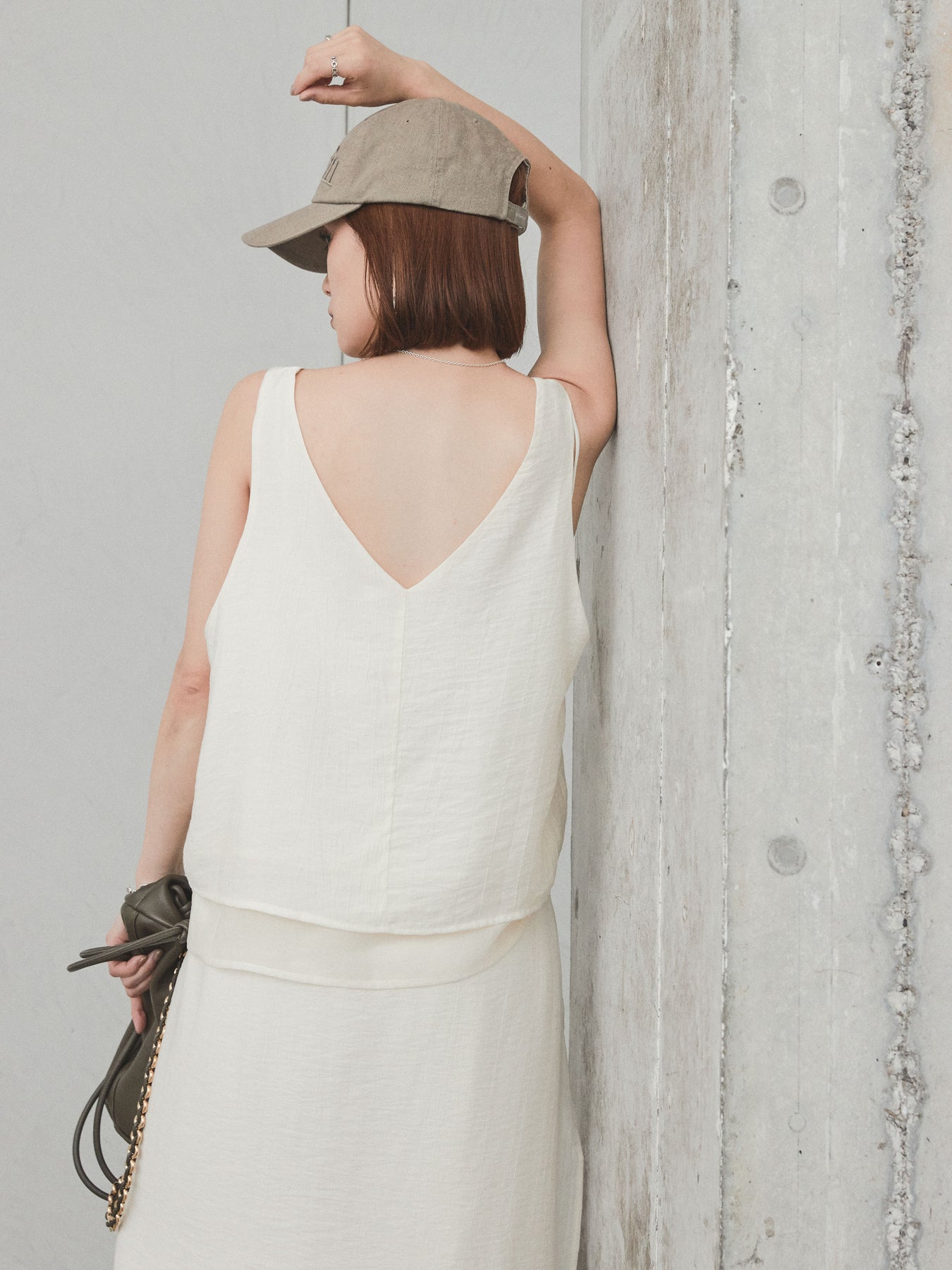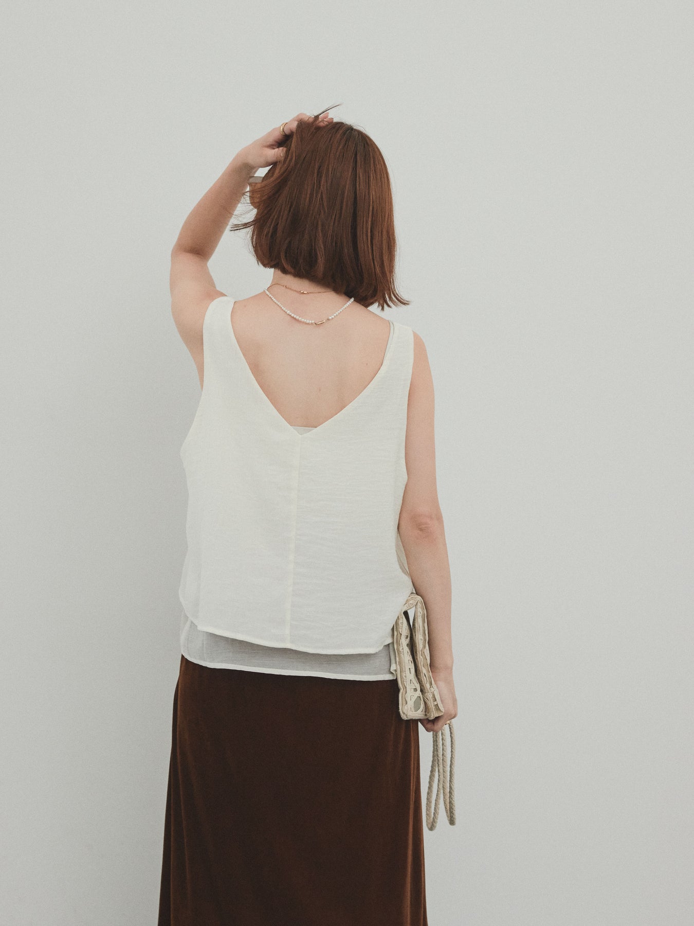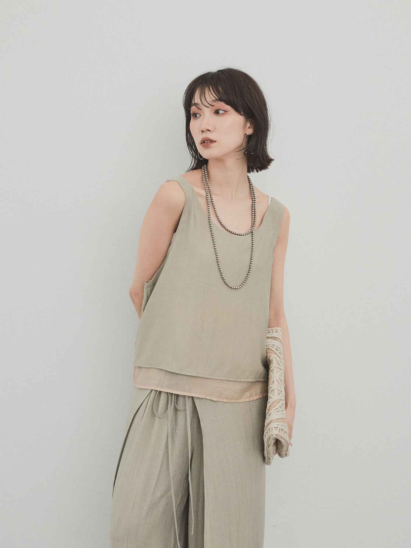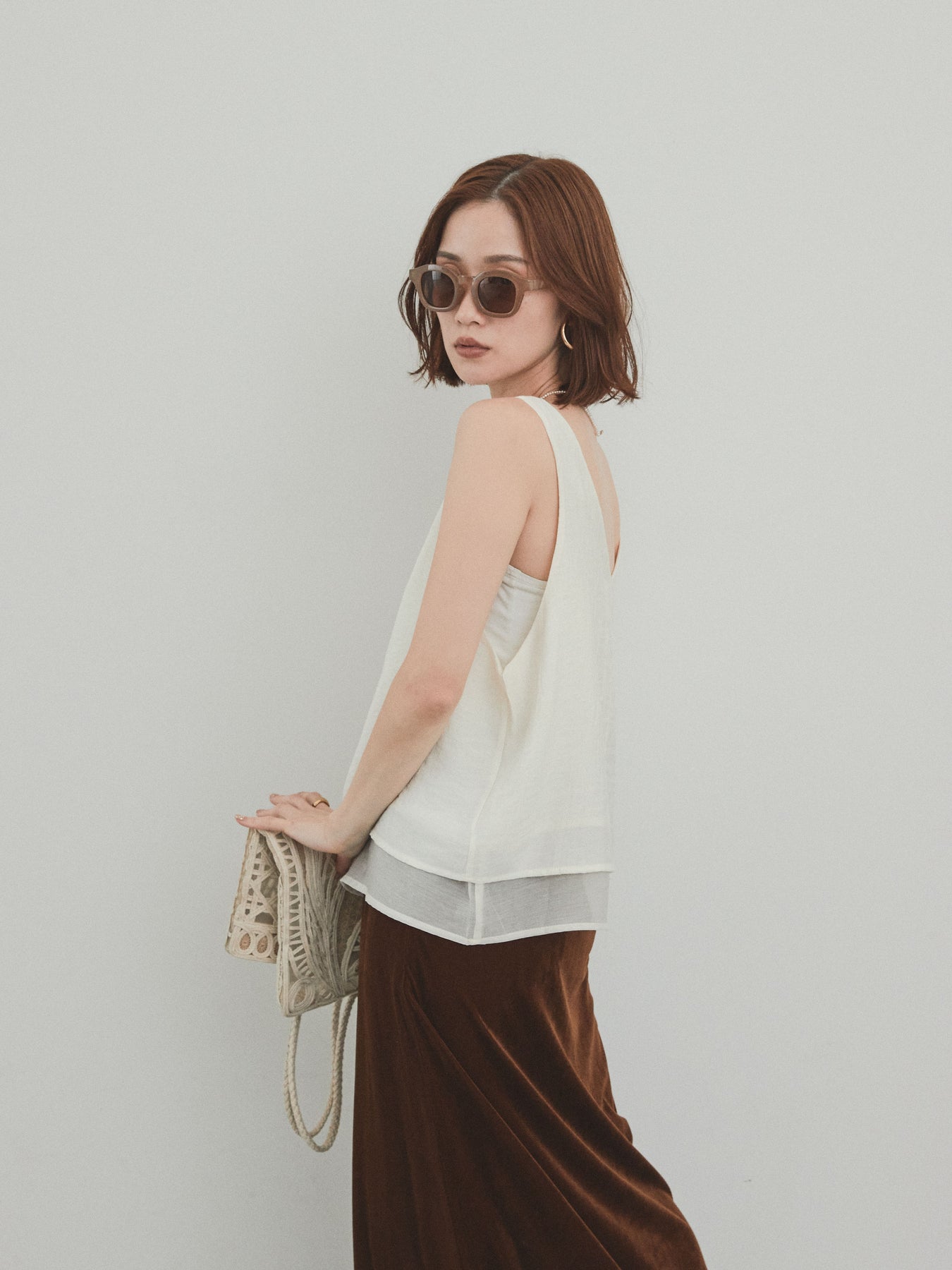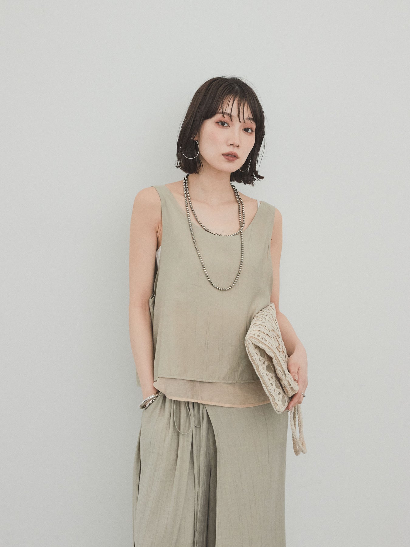 這款水洗緞面透明層疊背心,採用輕盈緞面和透明層疊布料製成。適度的光澤和細膩的質感,賦予其簡約而優雅的氣質。不同材質的疊穿營造出立體感,打造出極具存在感的時尚單品。寬鬆的輪廓不會凸顯身體線條,清涼舒適感也極具魅力。這款單品將成為夏季的必備單品,可搭配從休閒到優雅的各種風格。 ※除下裝、吊帶背心(內衣)以外的商品均不含內衣。