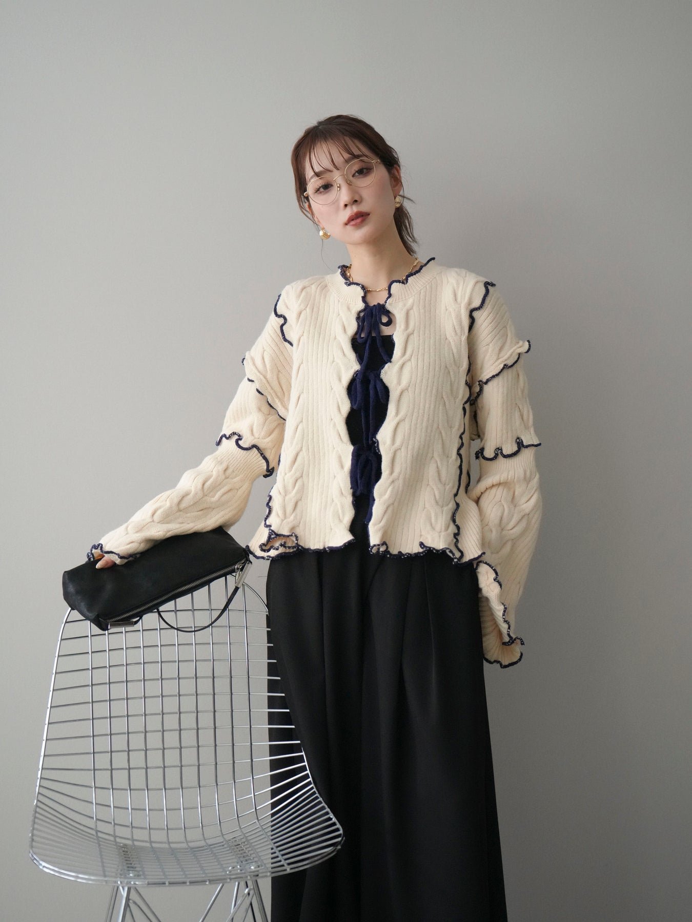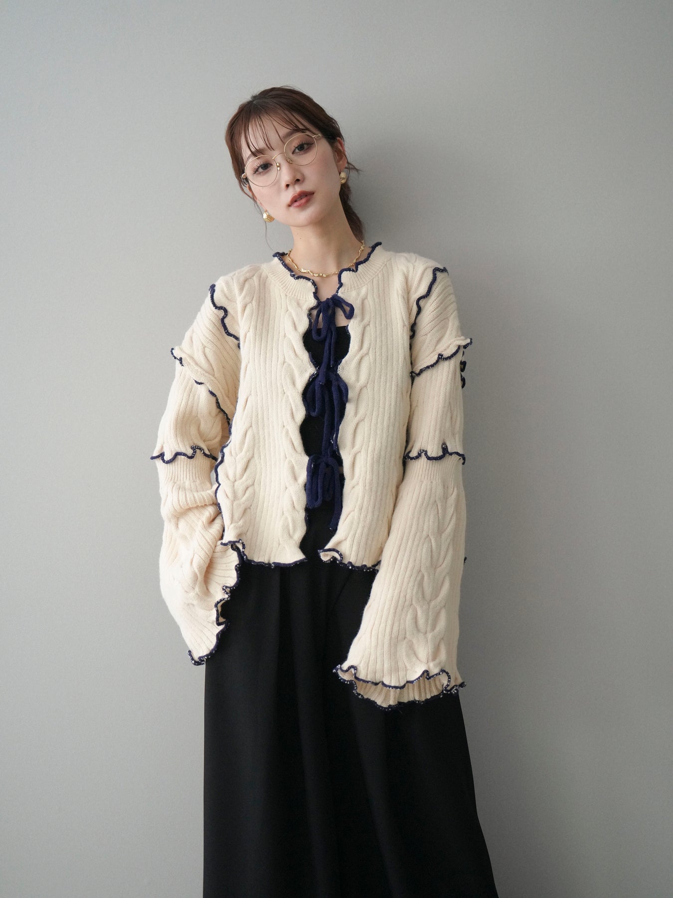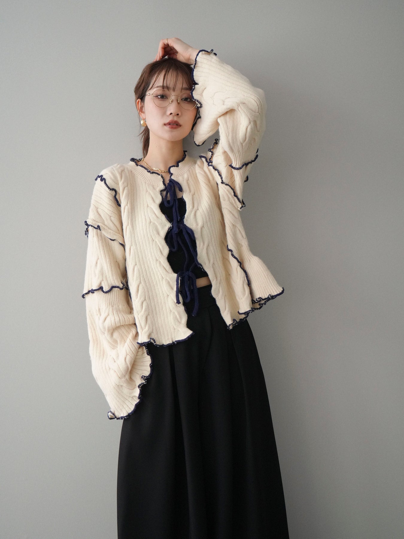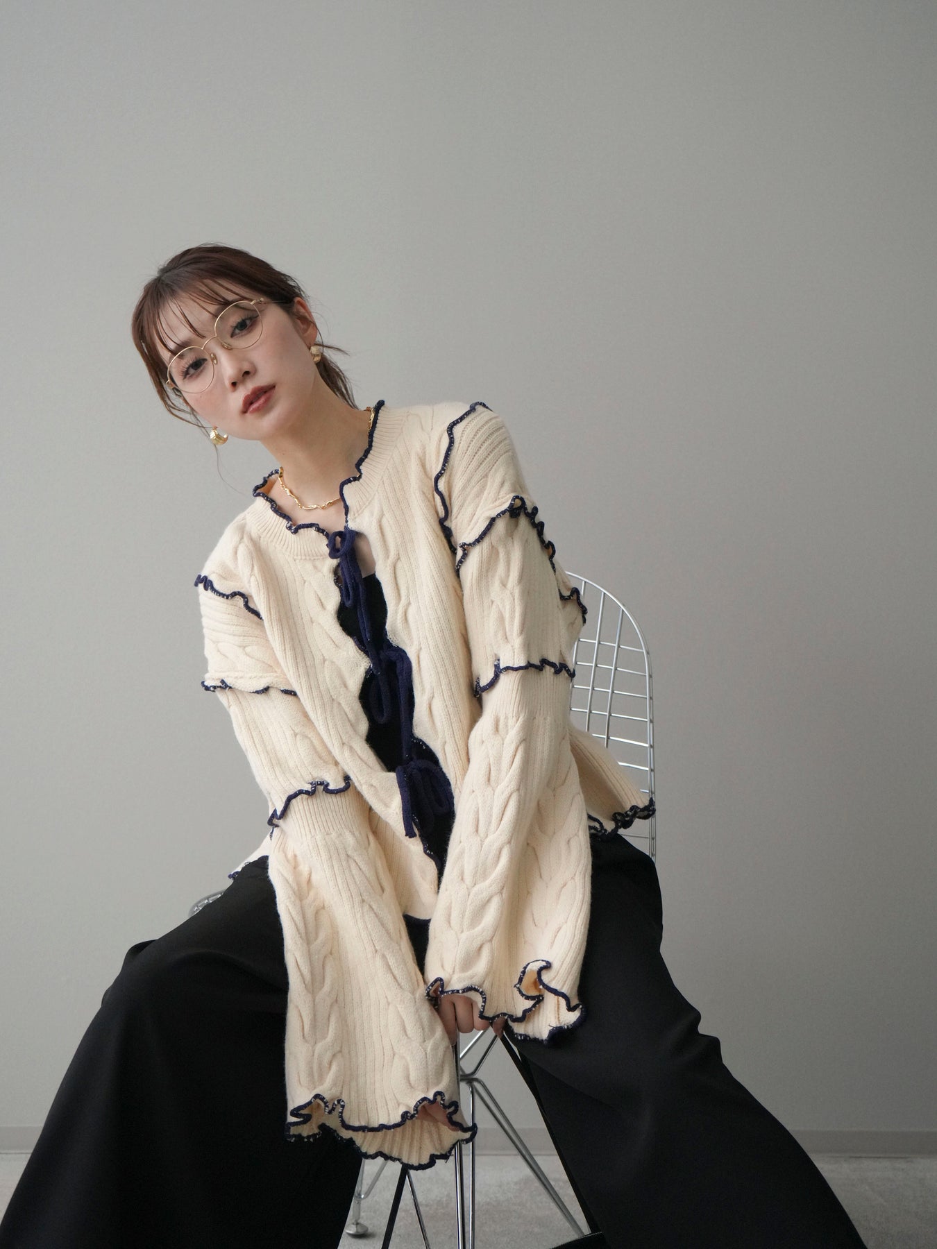 ◆ [予約]フロントリボン配色メローニットカーディガン