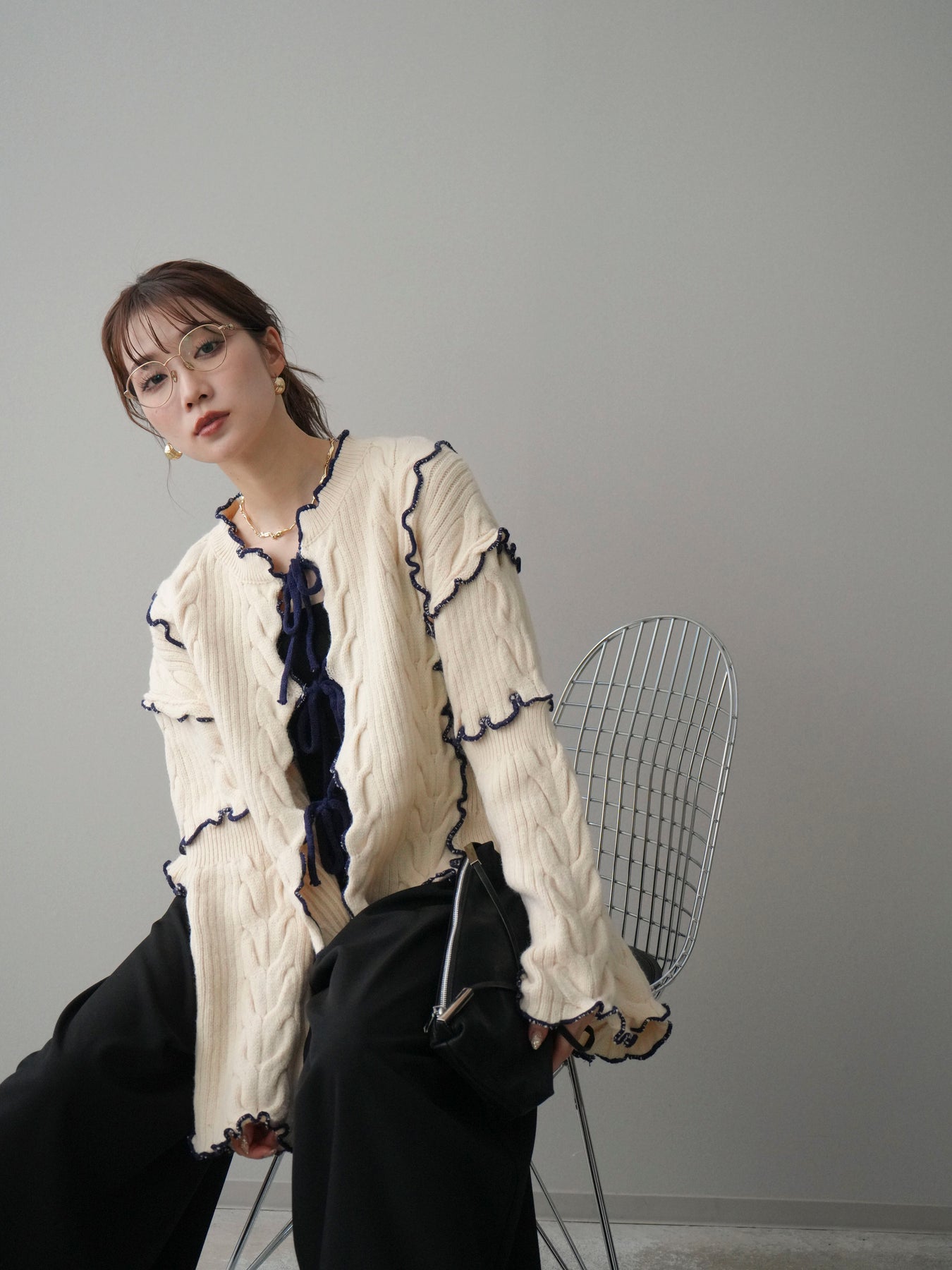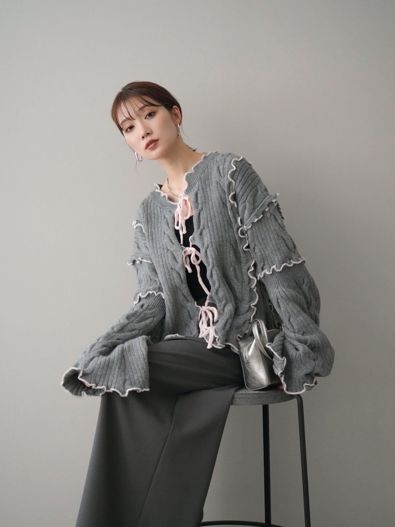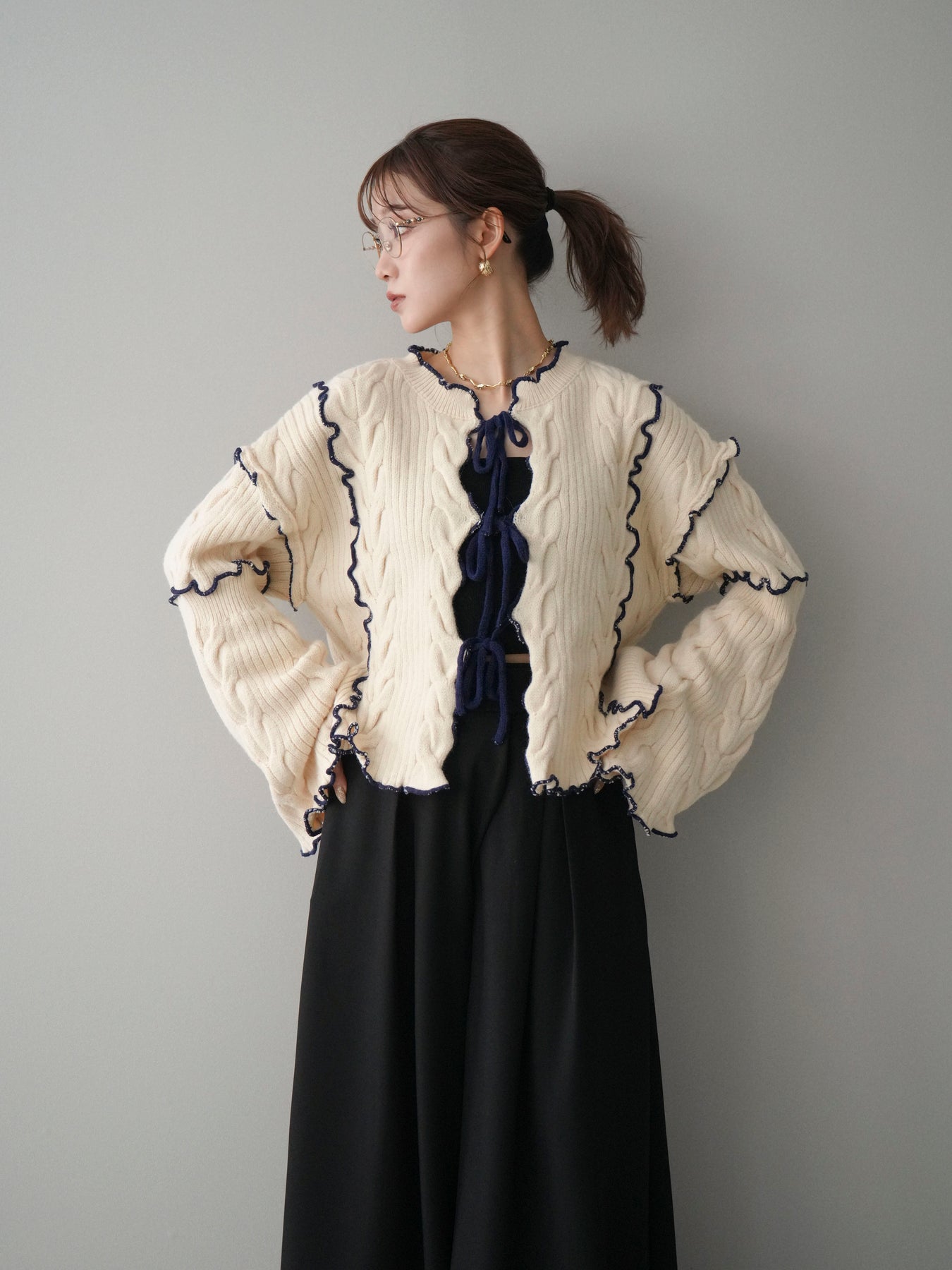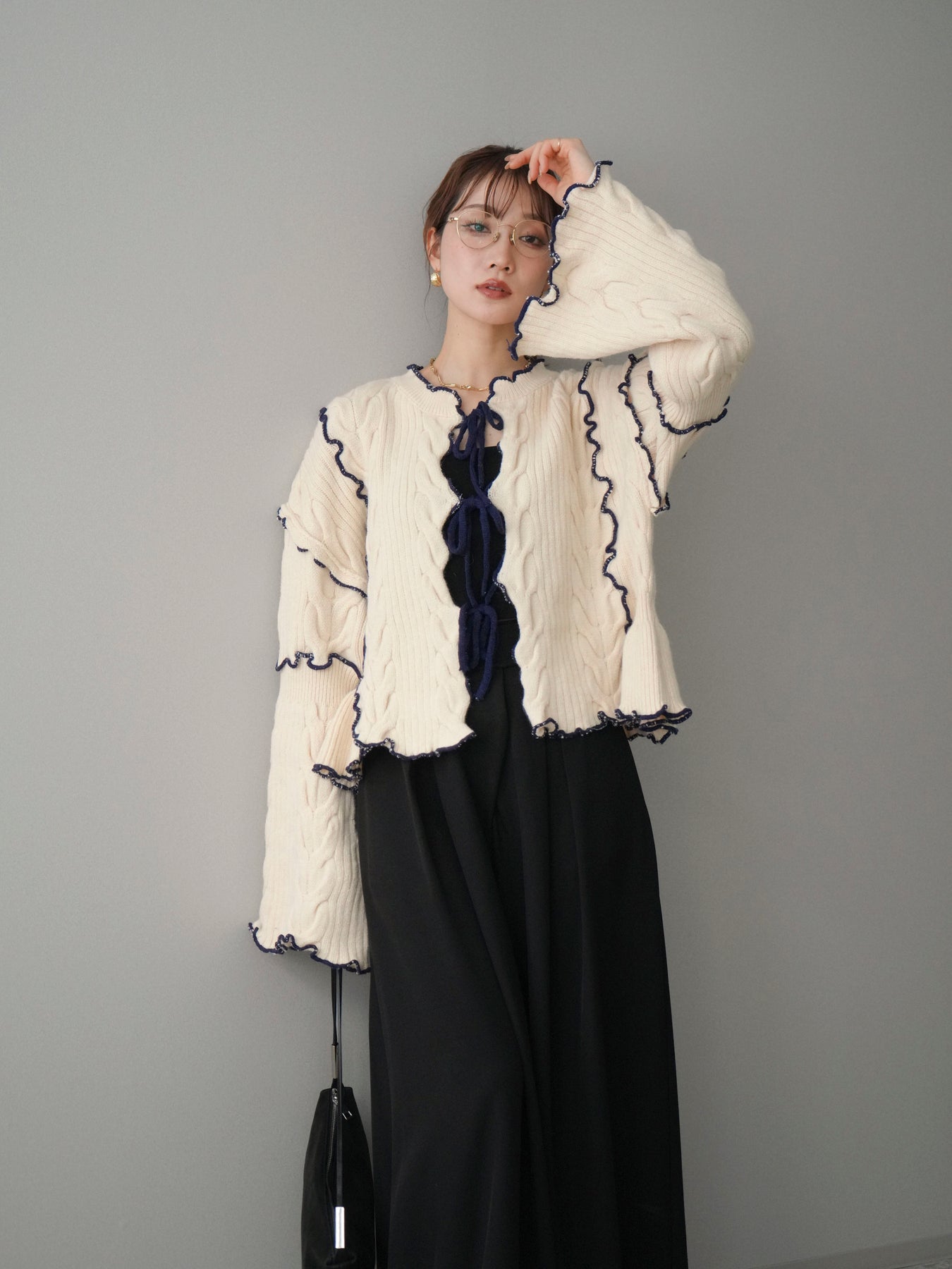 ◆ [予約]フロントリボン配色メローニットカーディガン