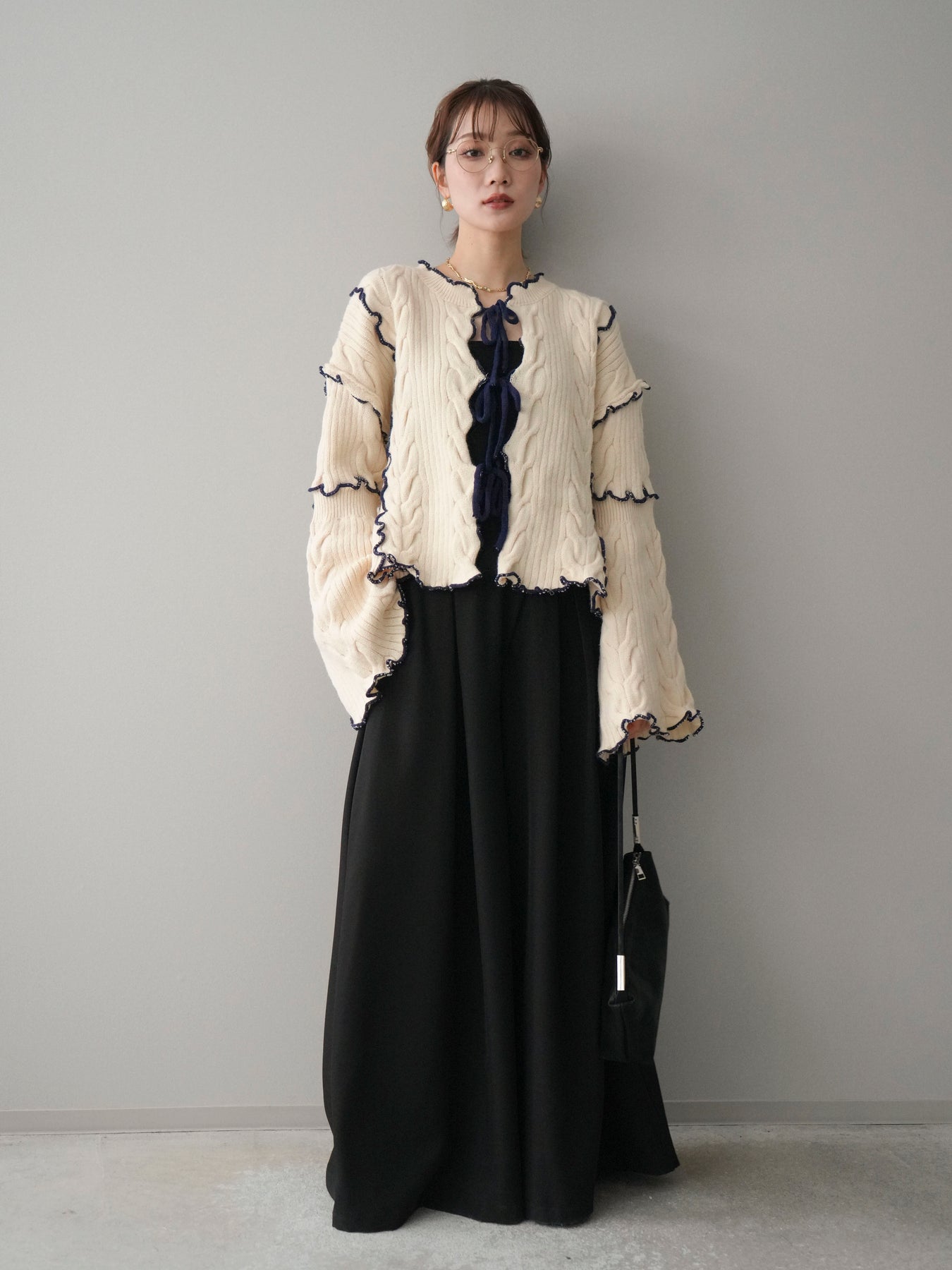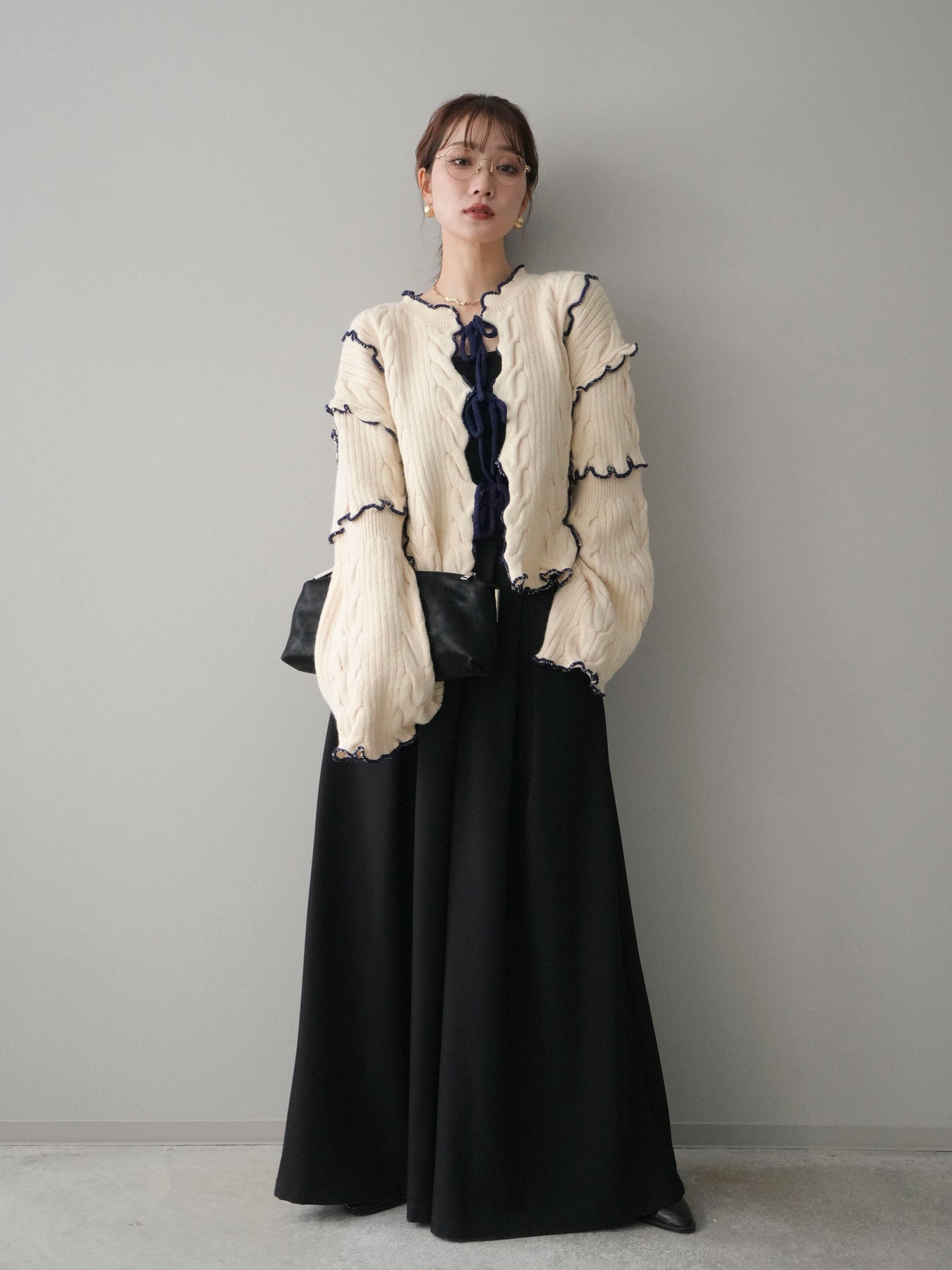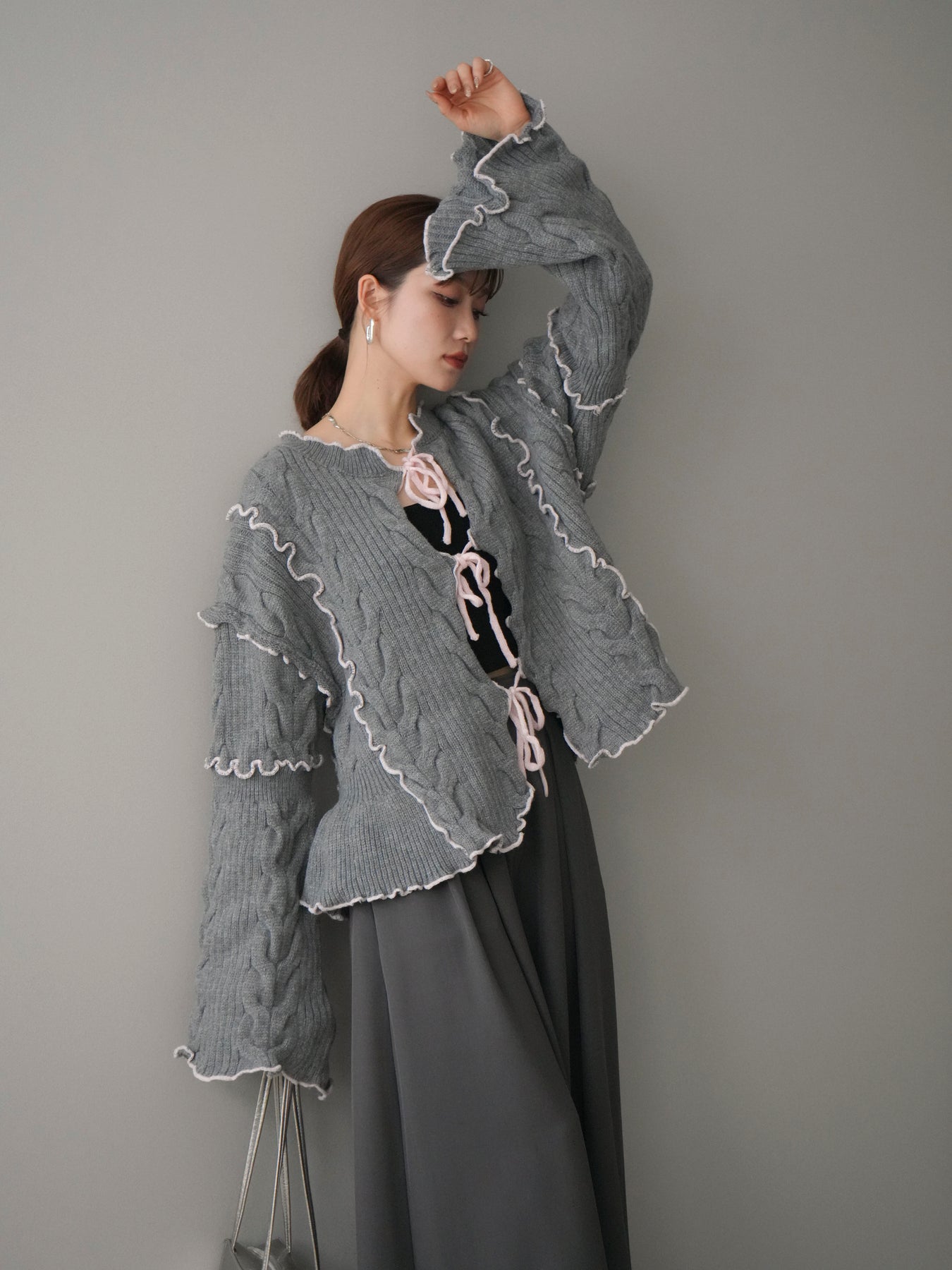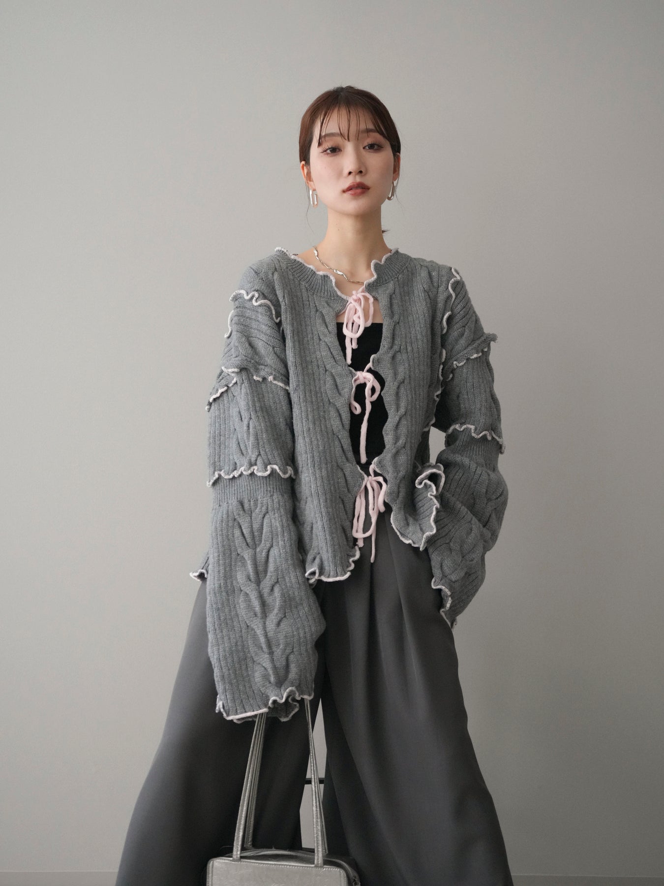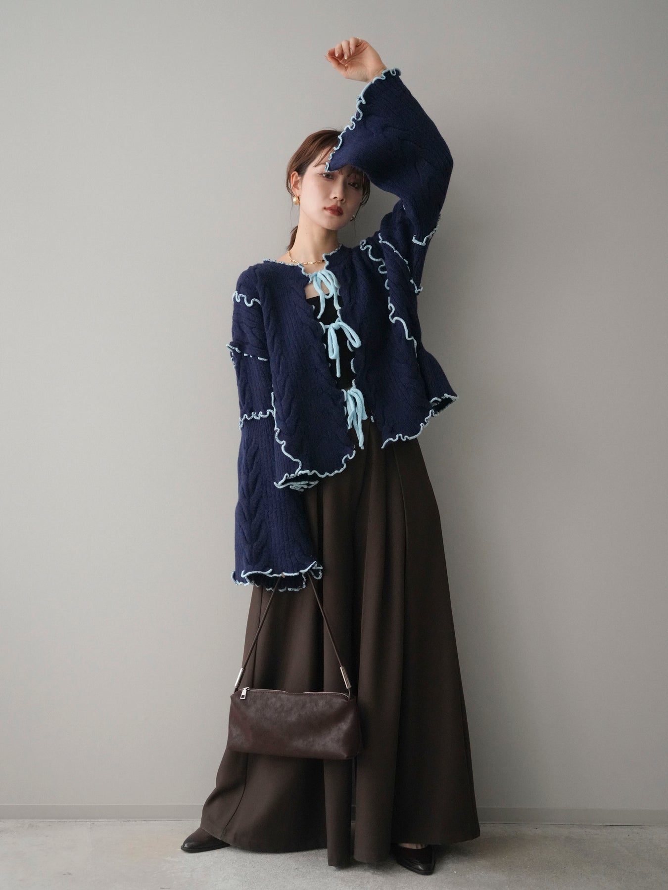 ◆ [予約]フロントリボン配色メローニットカーディガン