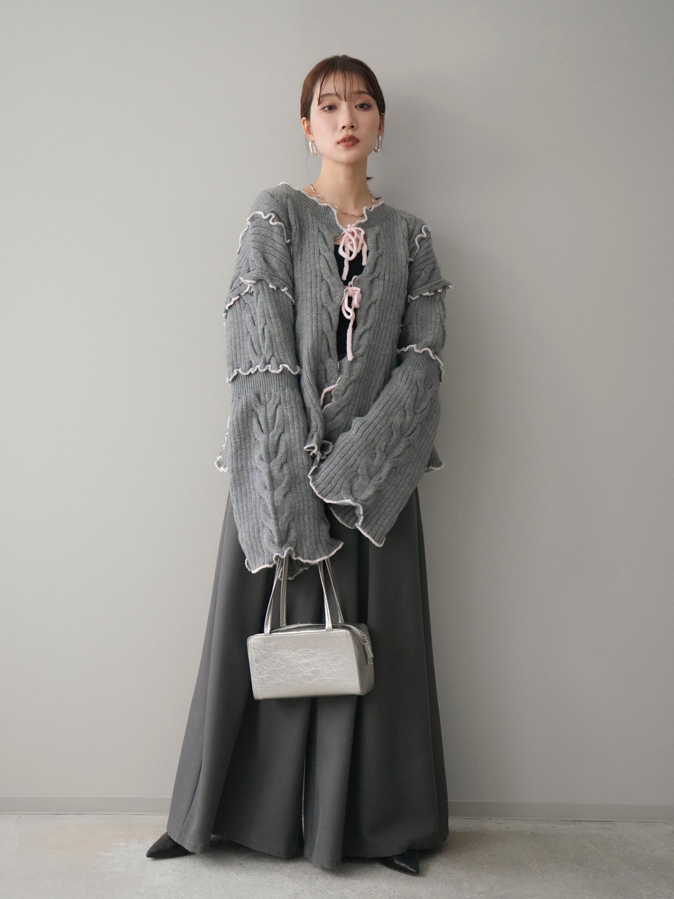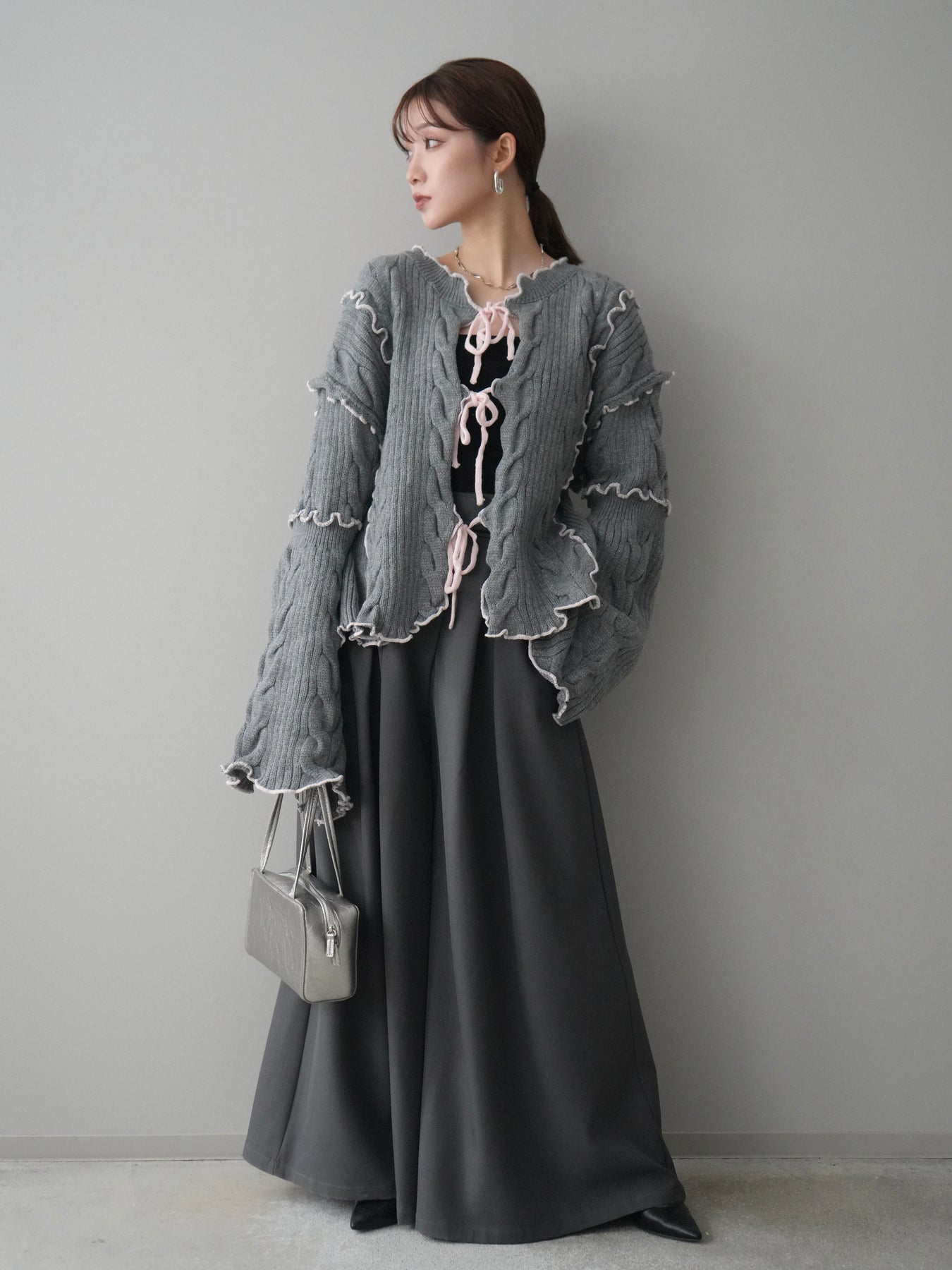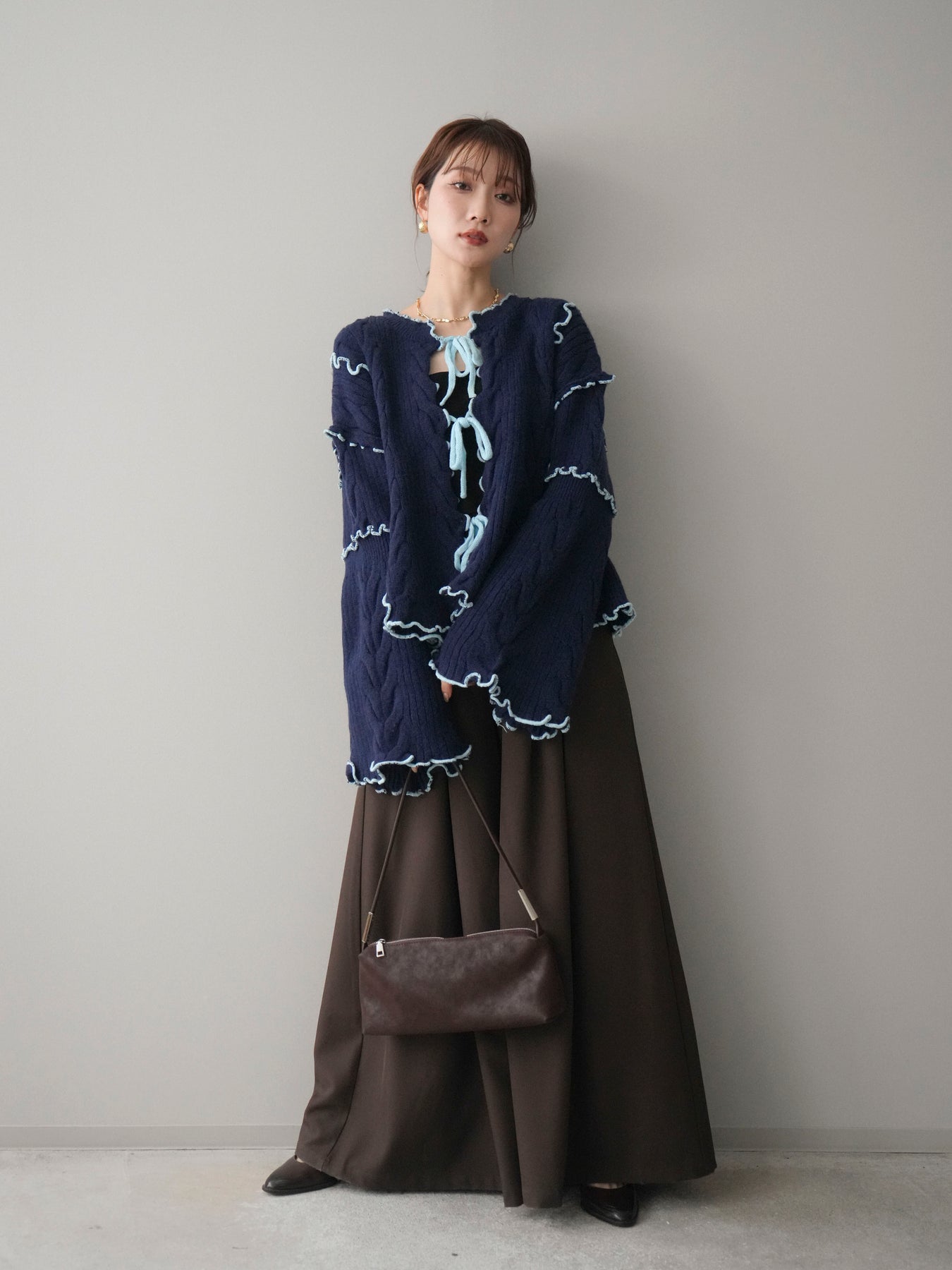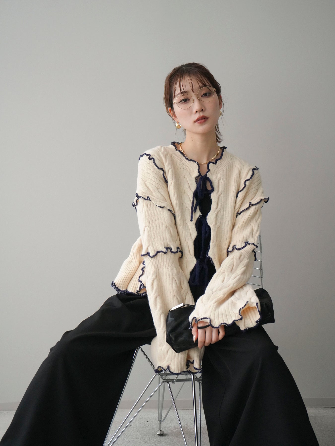 ◆ [予約]フロントリボン配色メローニットカーディガン