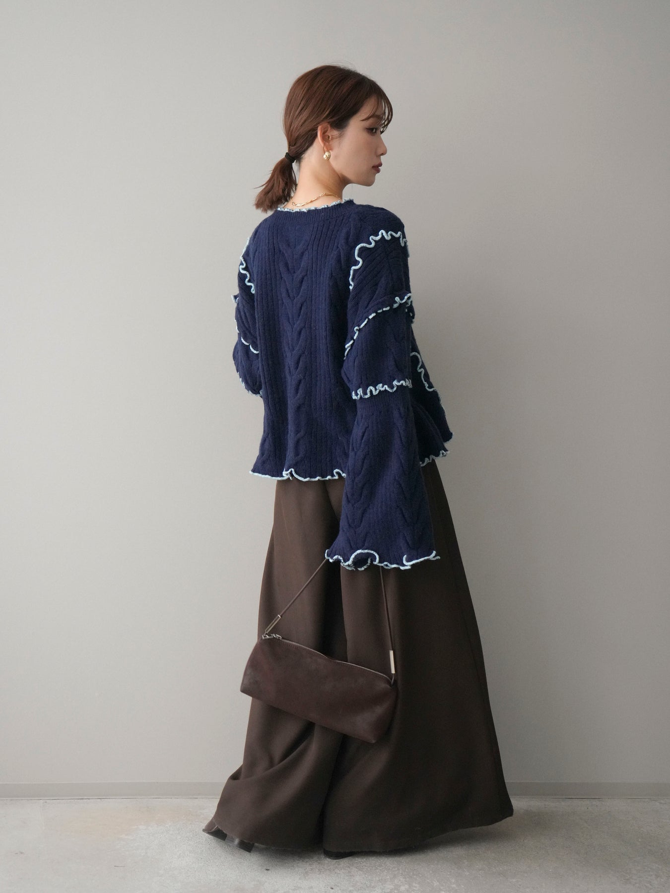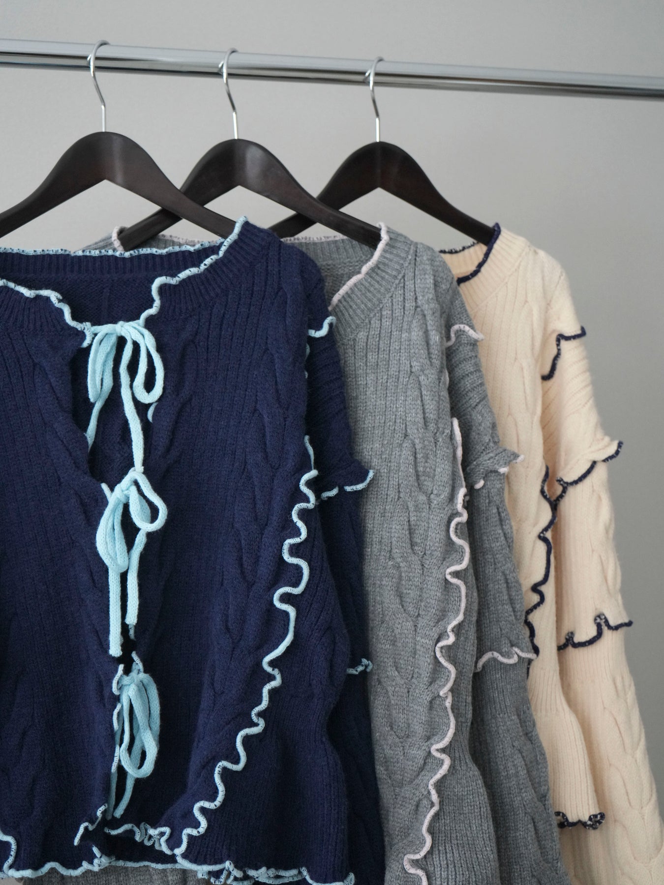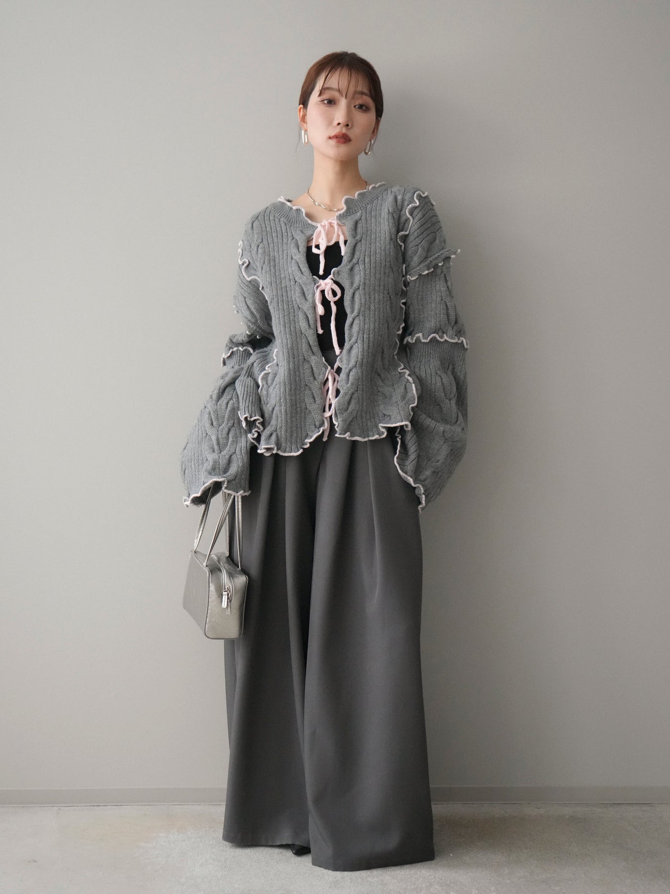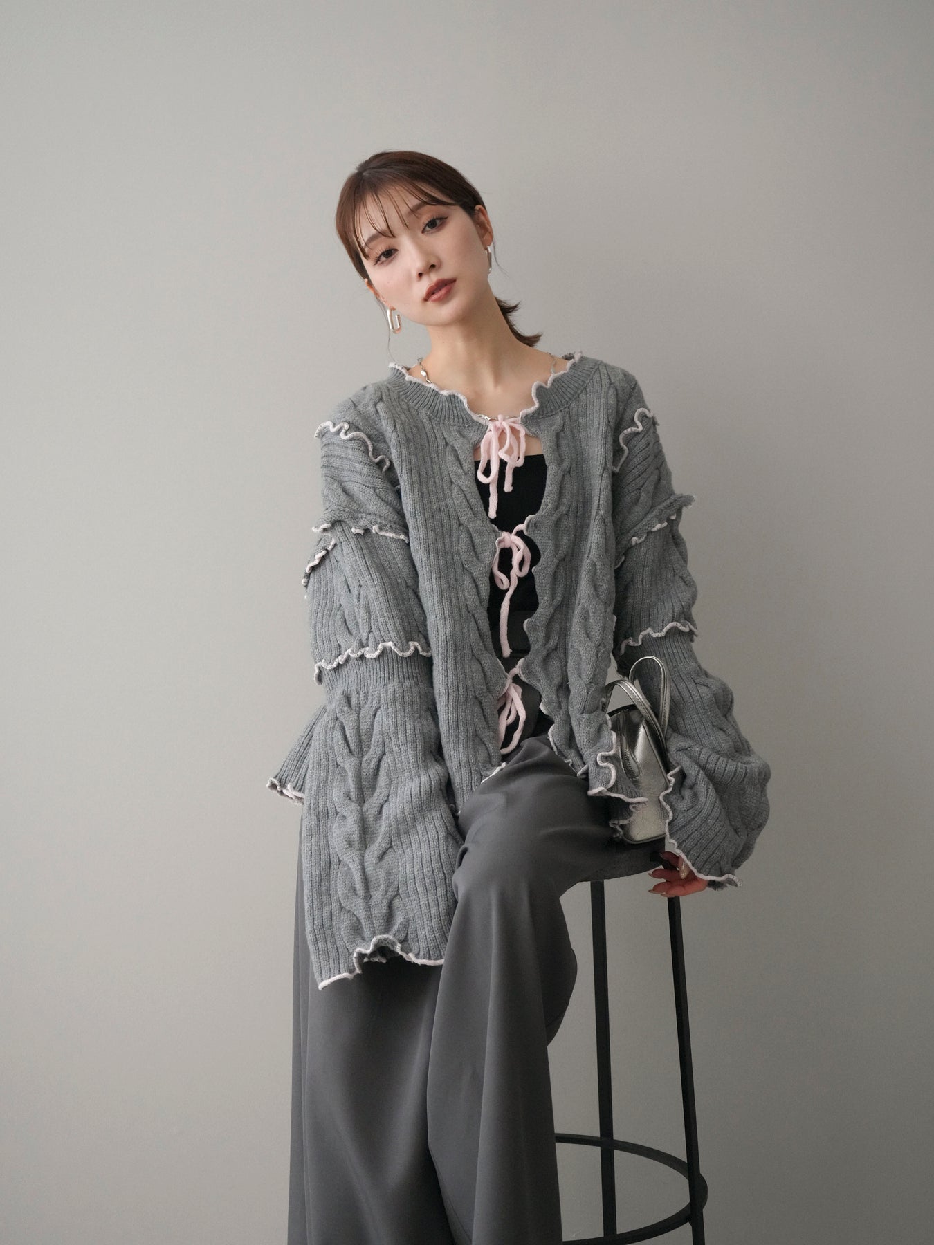◆ [予約]フロントリボン配色メローニットカーディガン