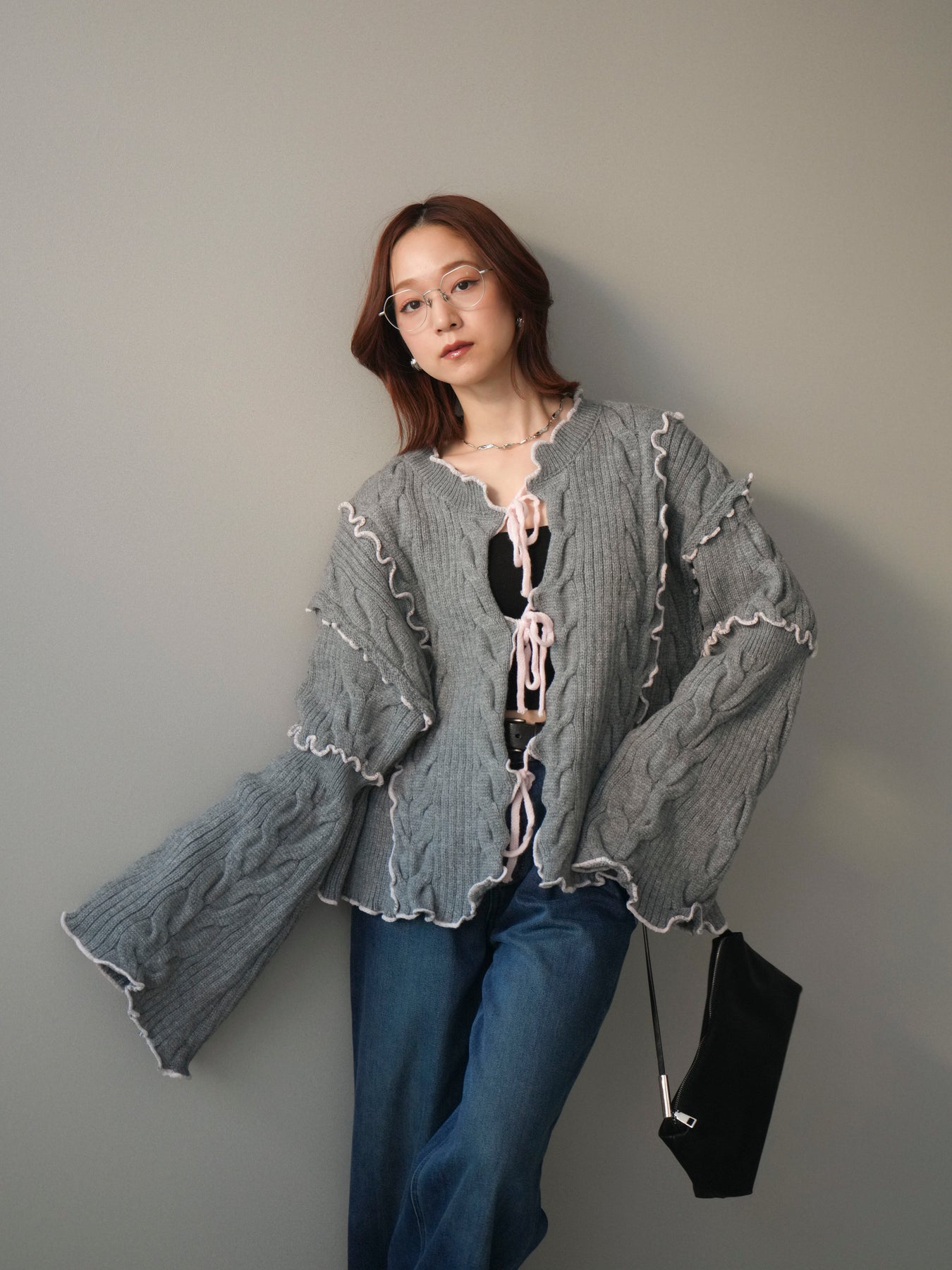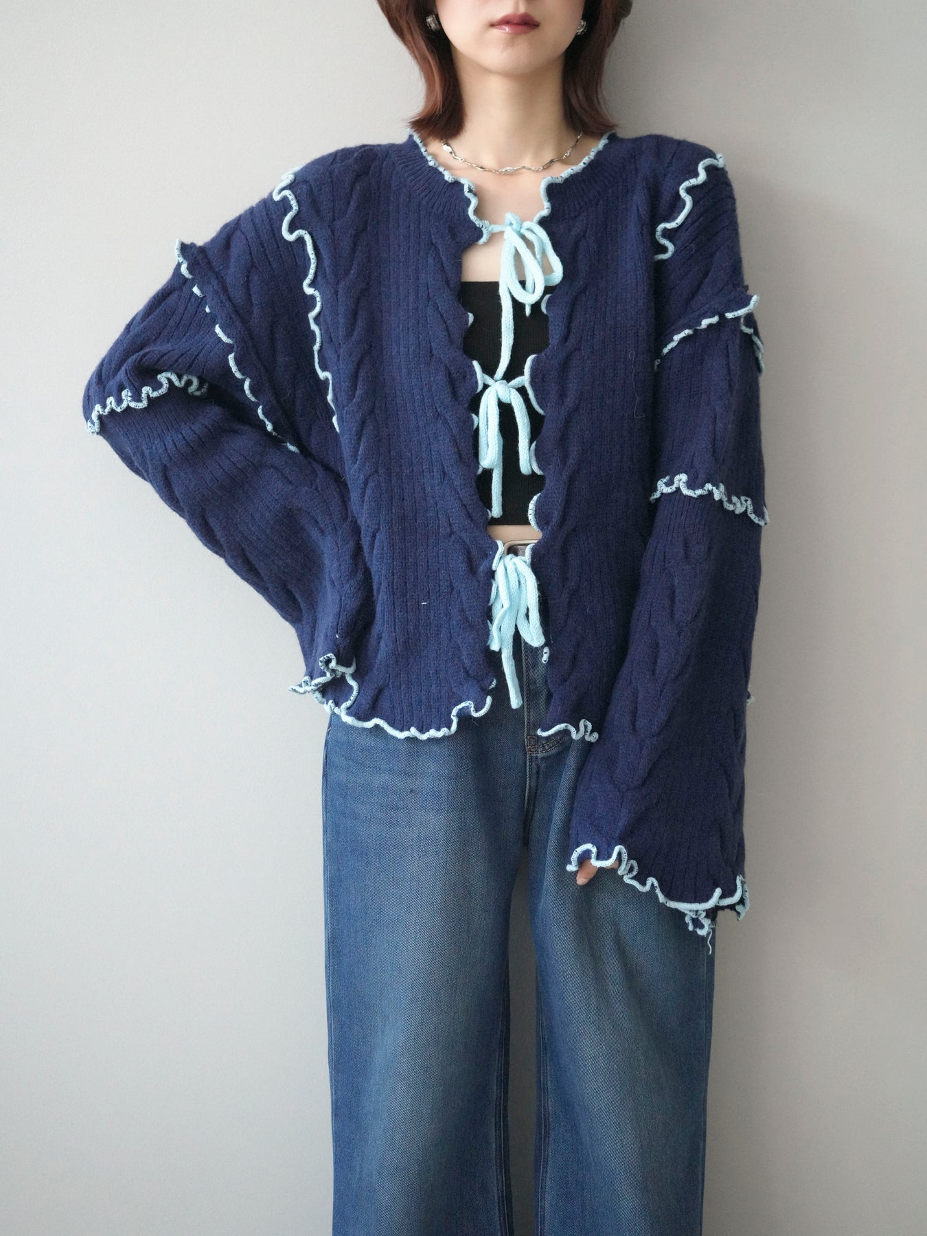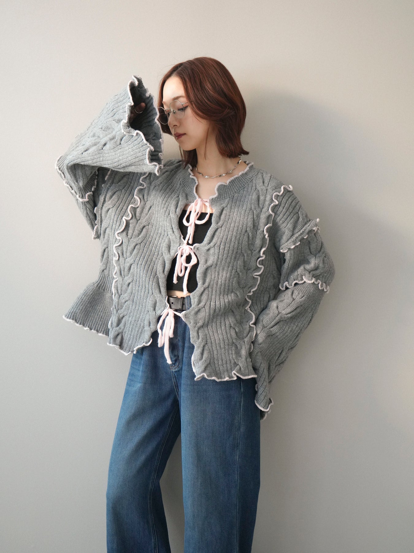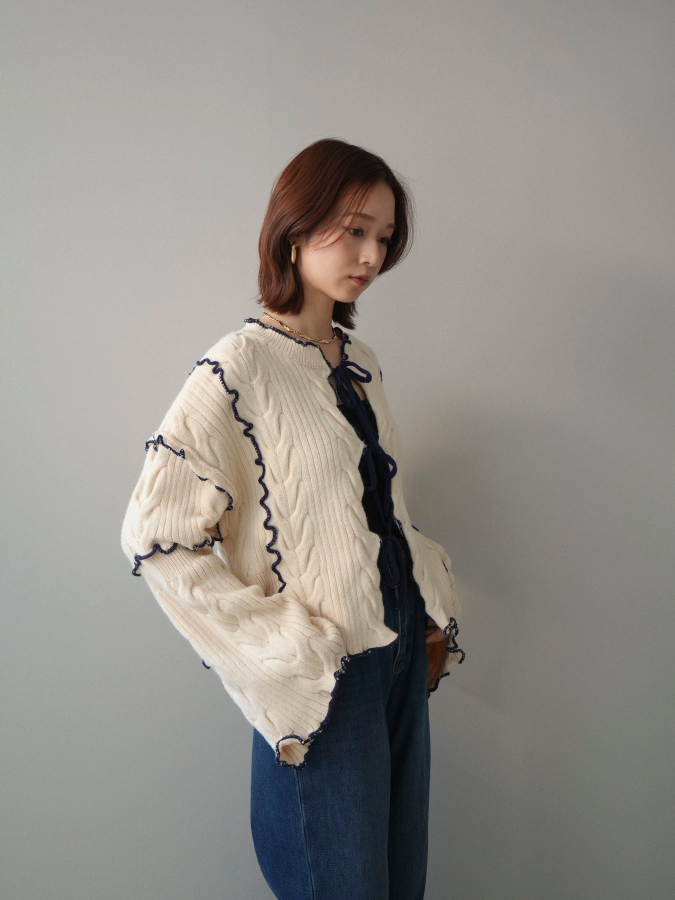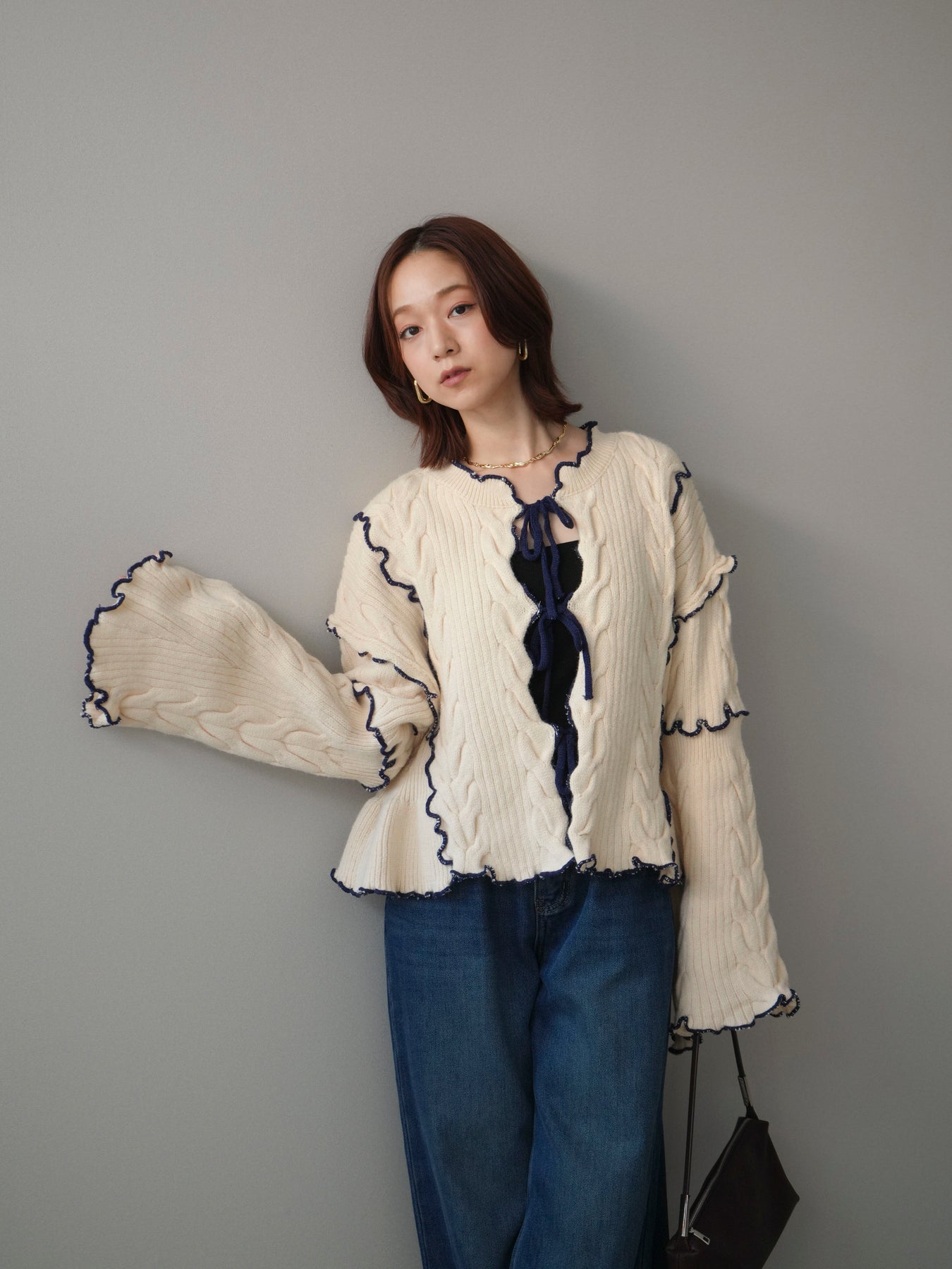 ◆ [予約]フロントリボン配色メローニットカーディガン