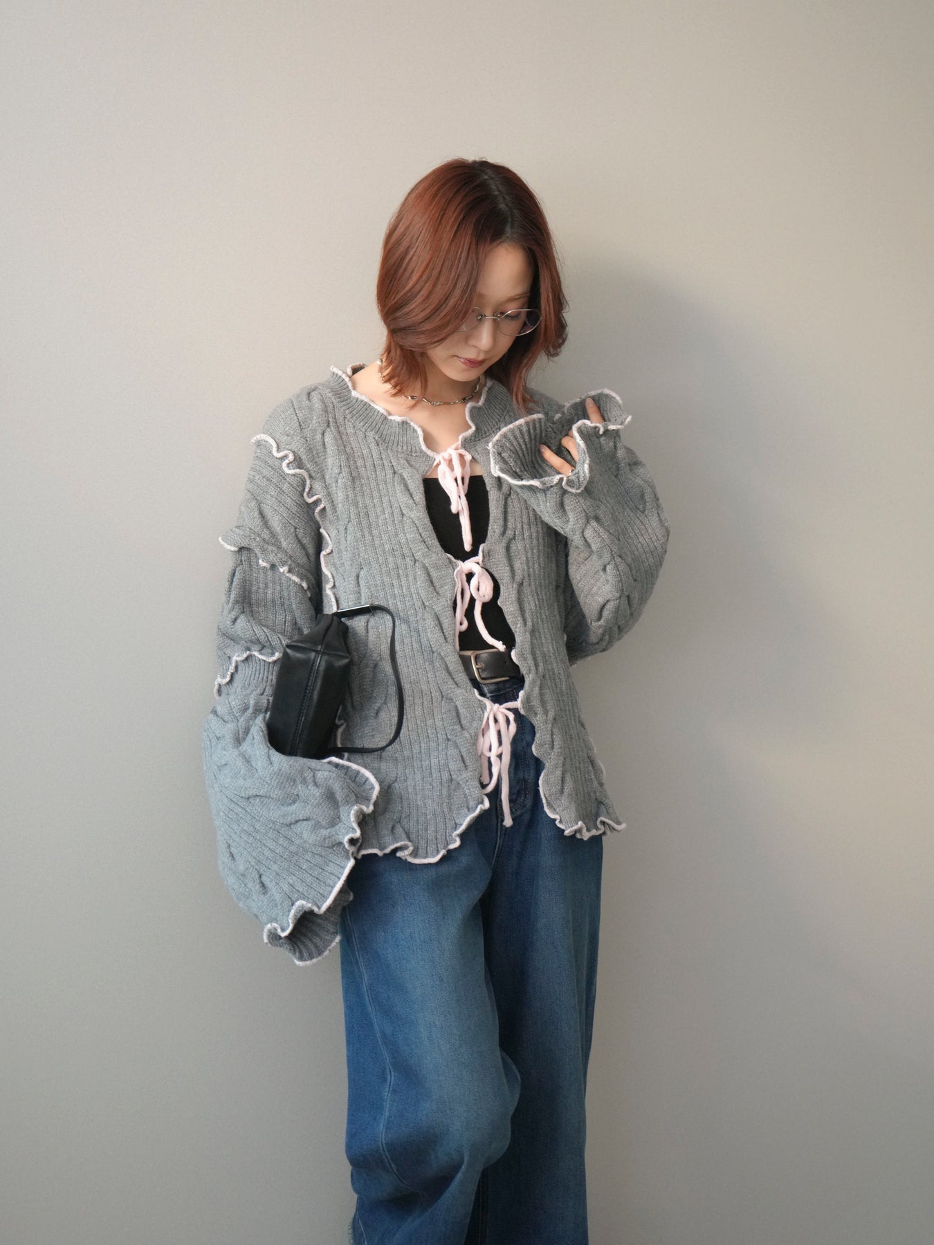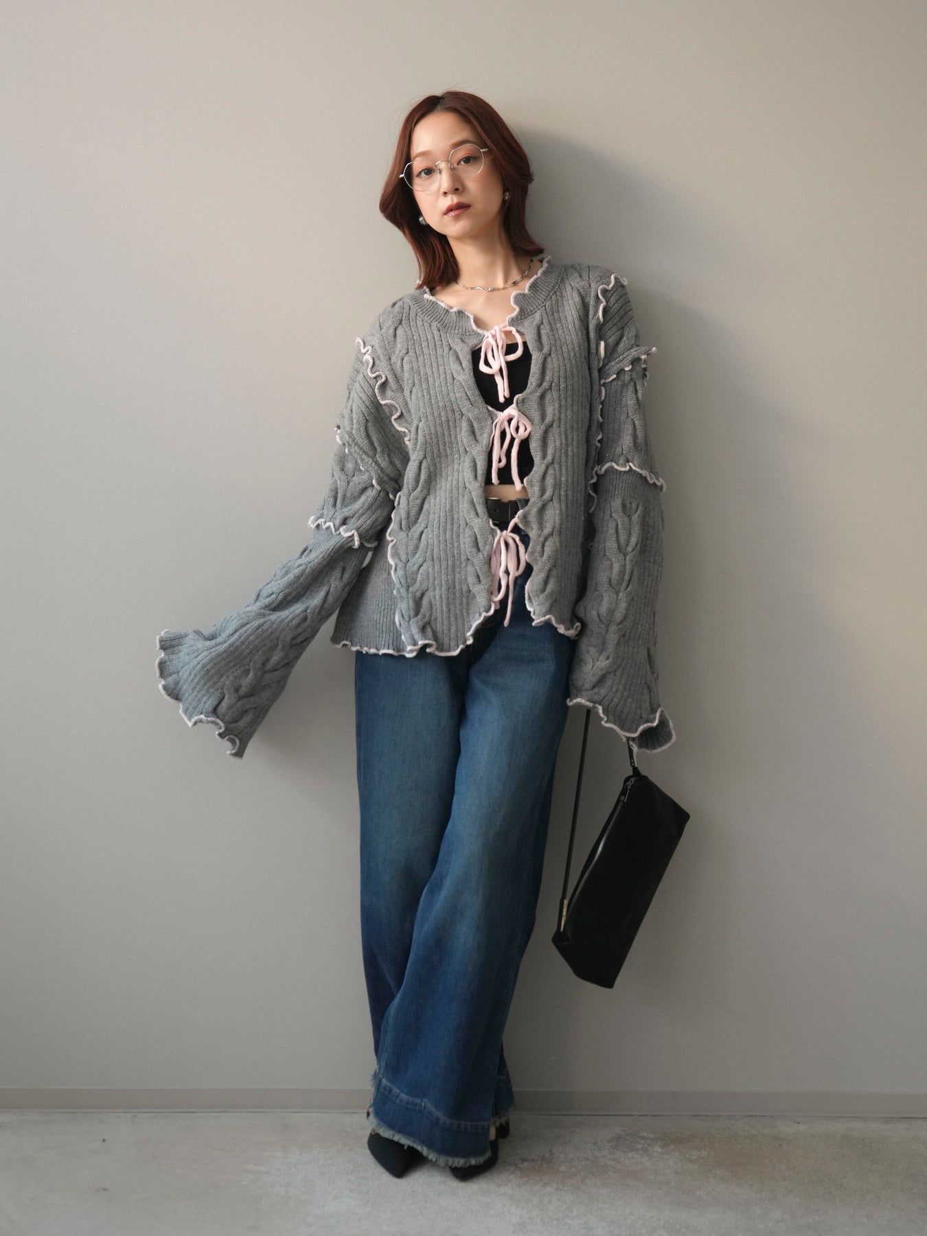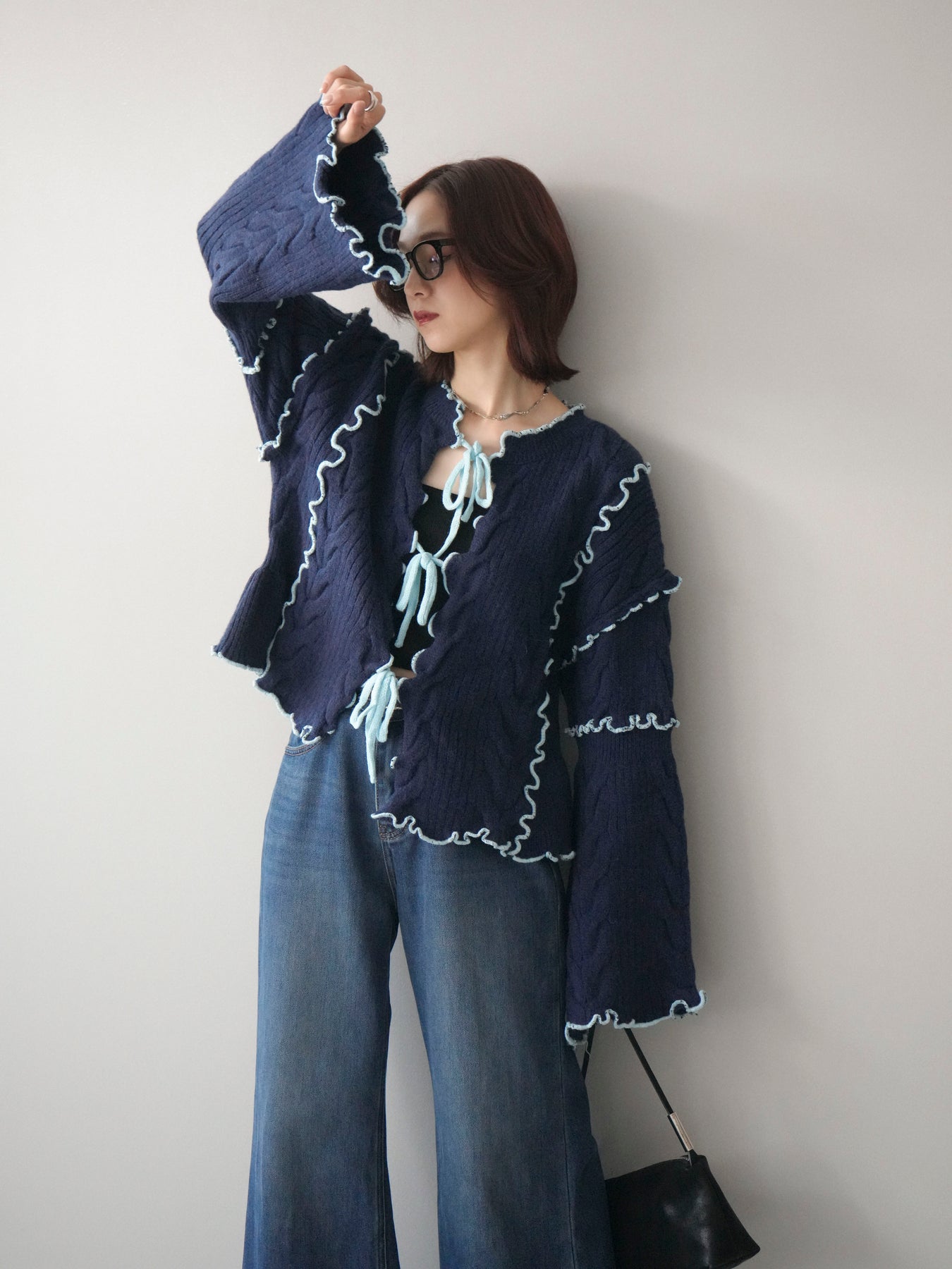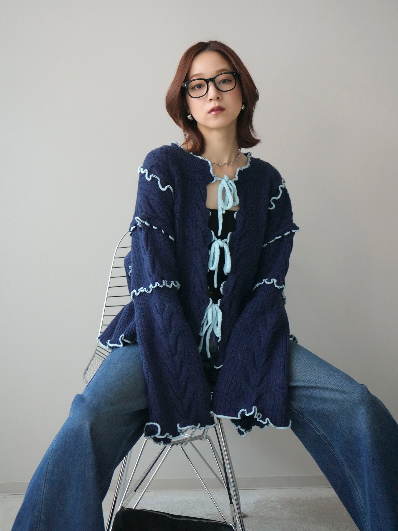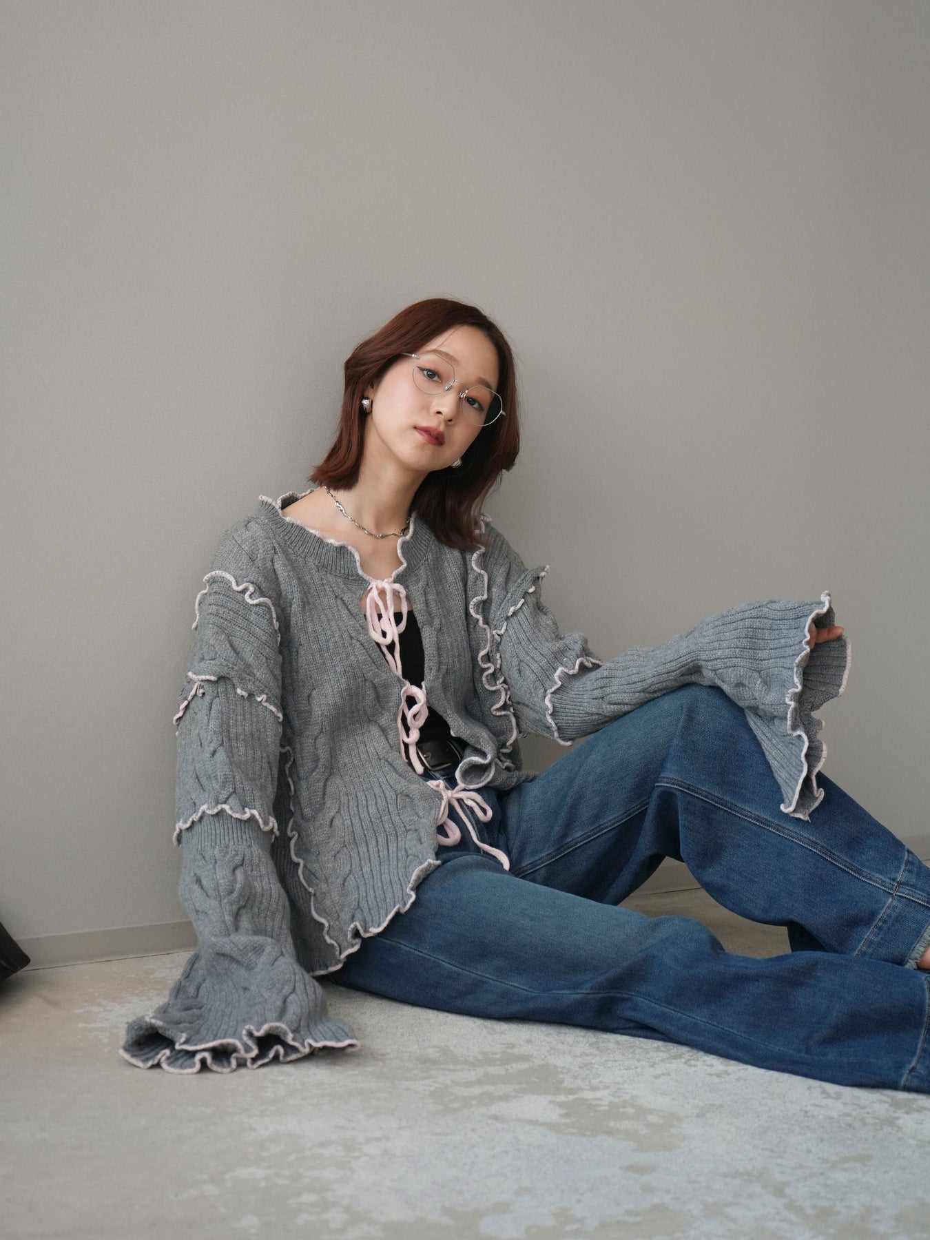 ◆ [予約]フロントリボン配色メローニットカーディガン