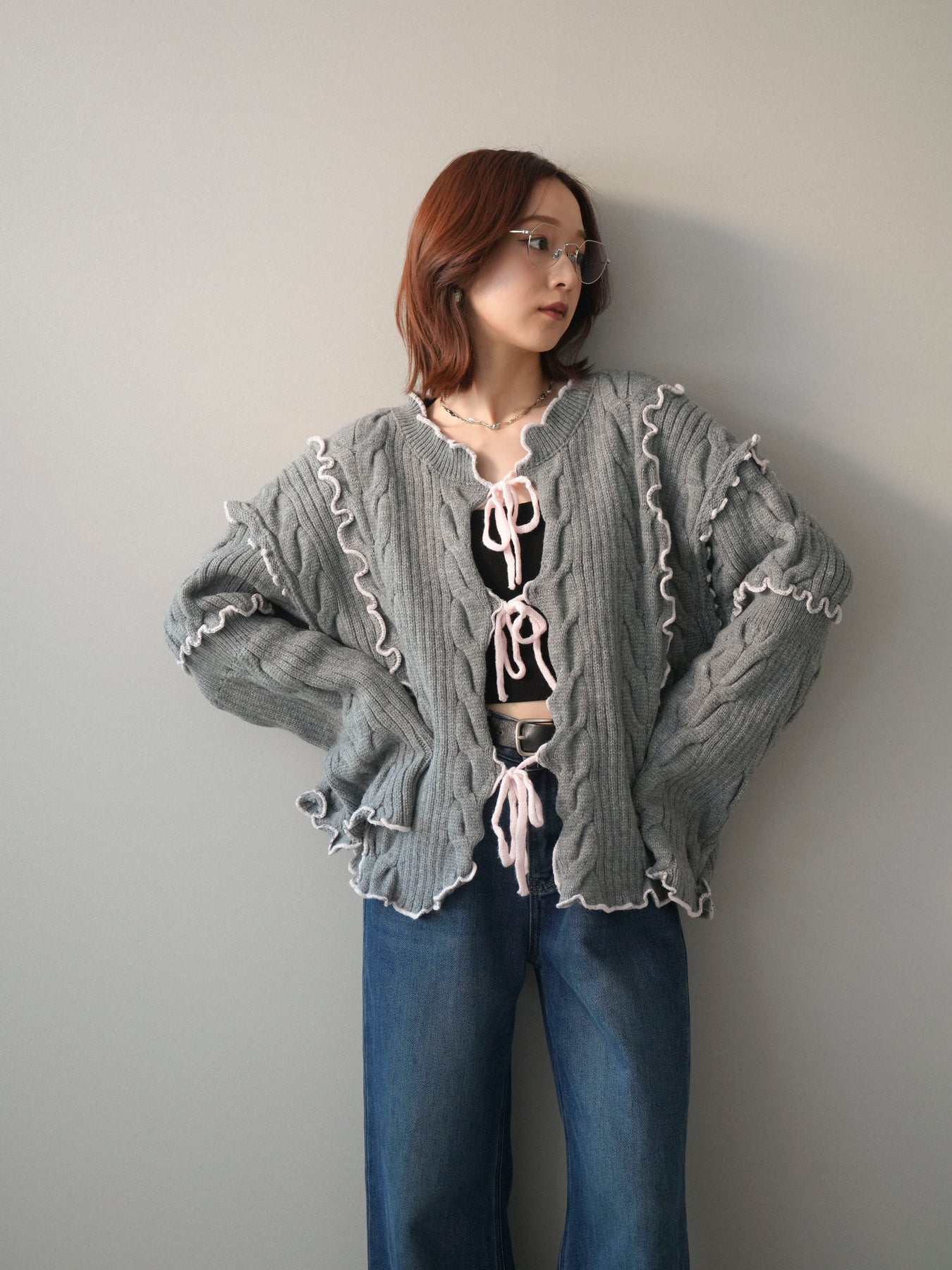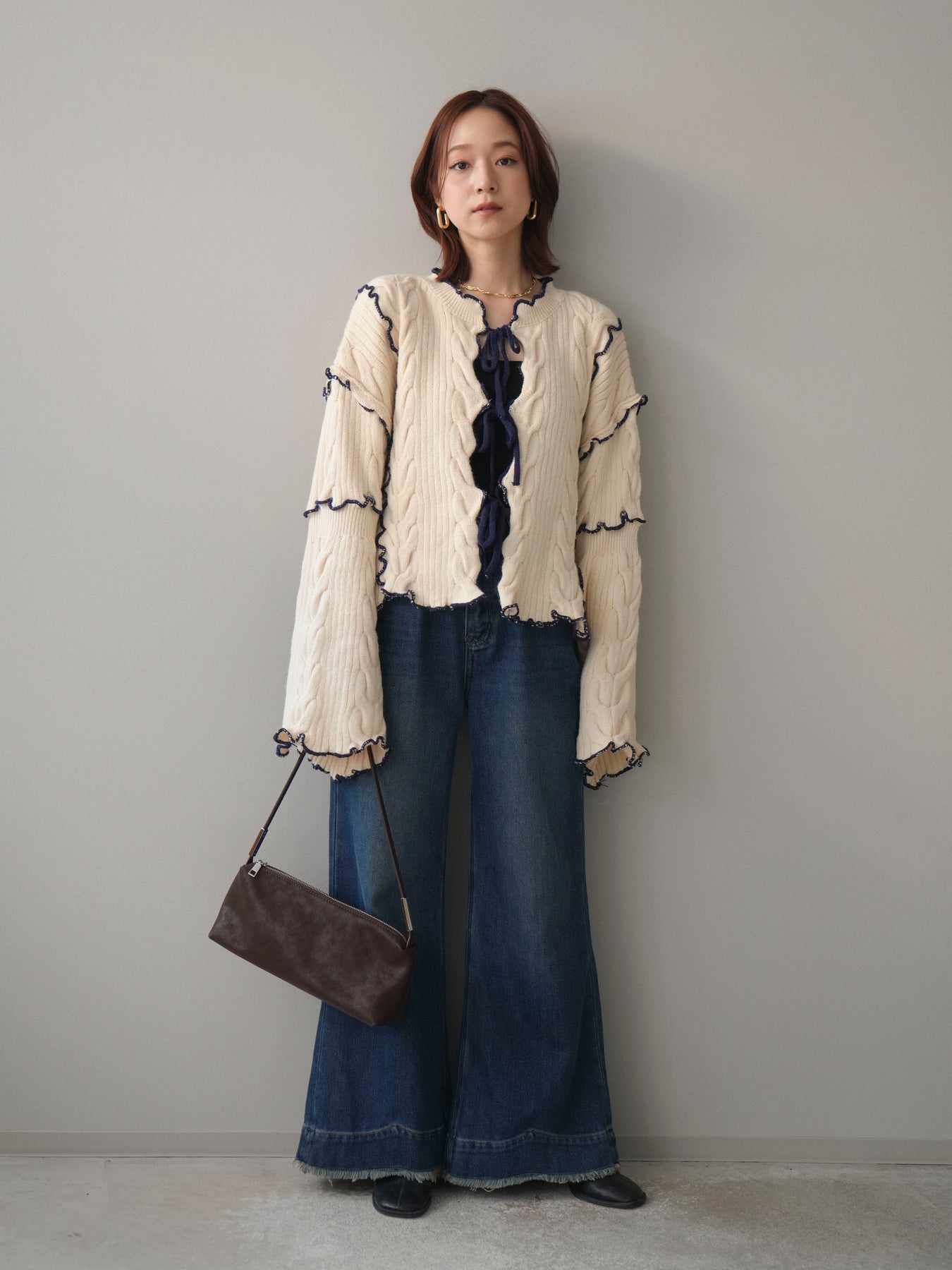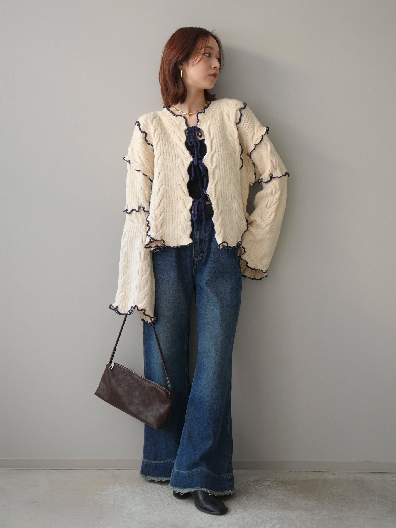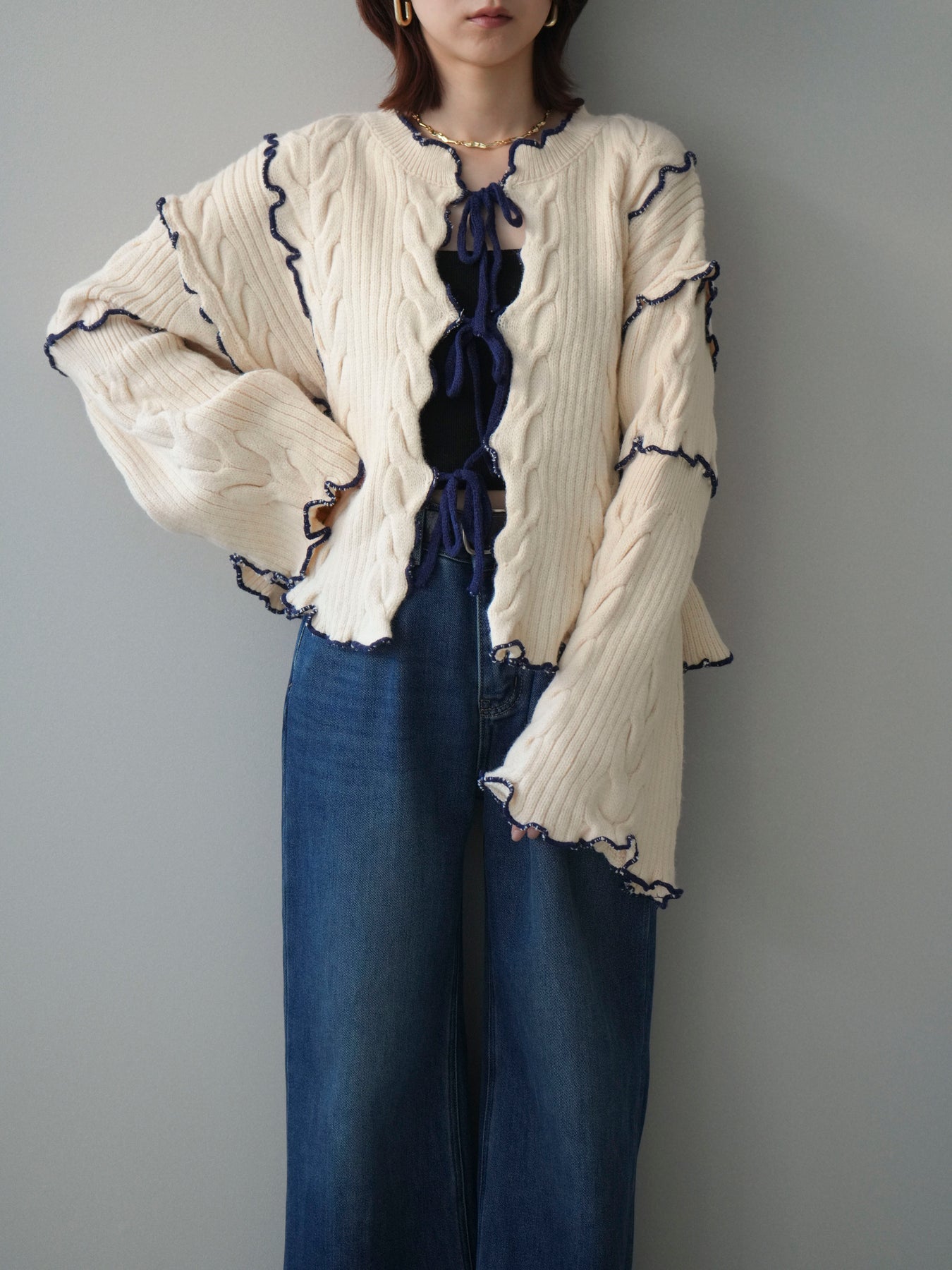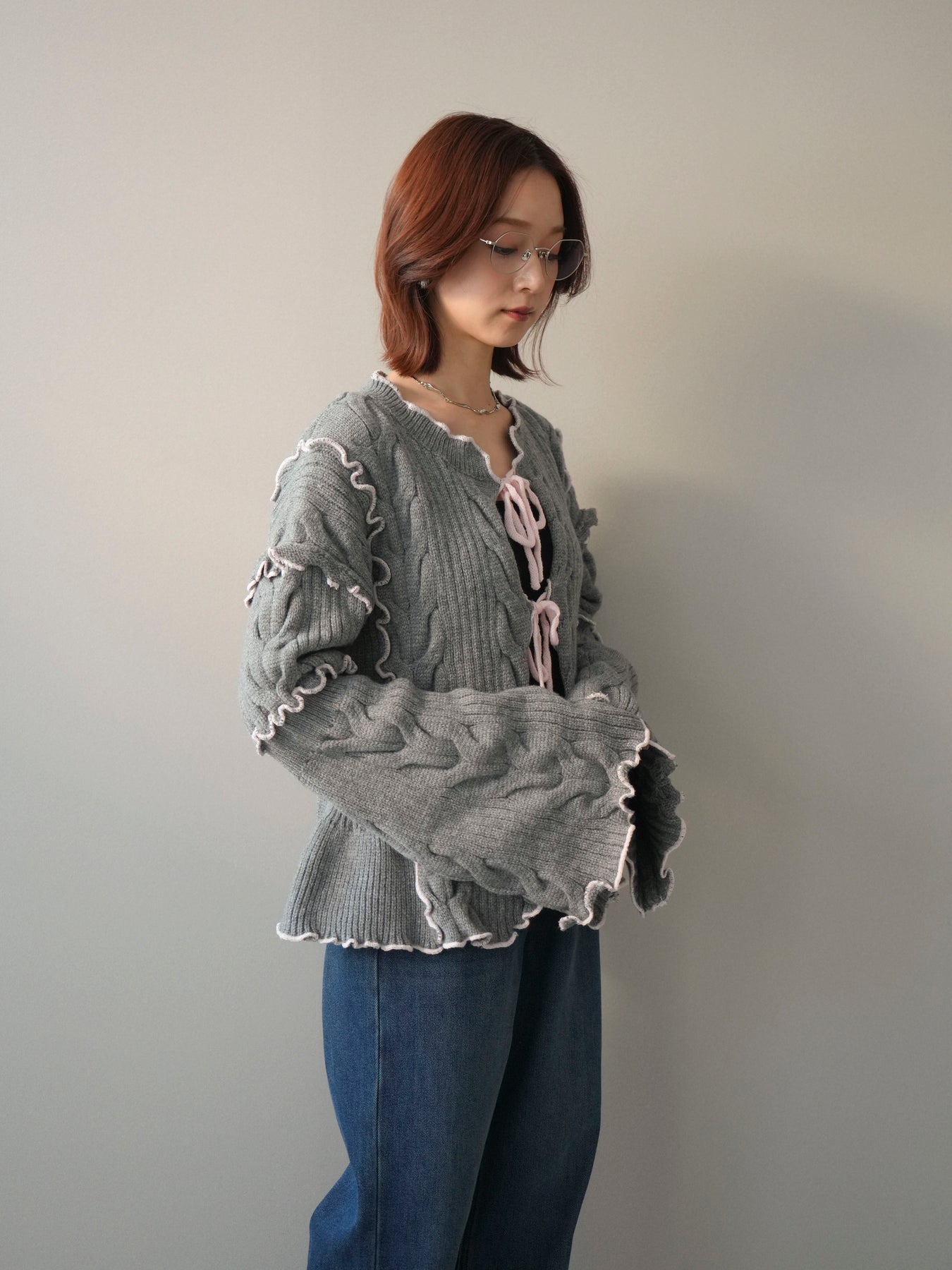 ◆ [予約]フロントリボン配色メローニットカーディガン