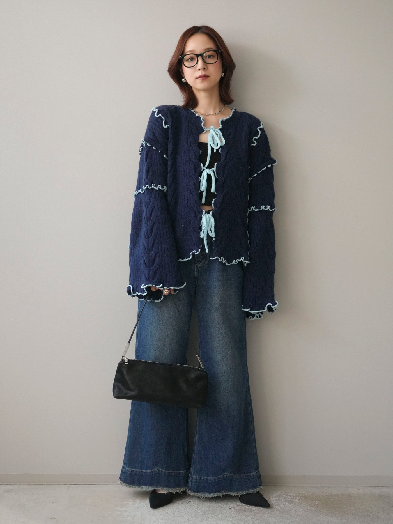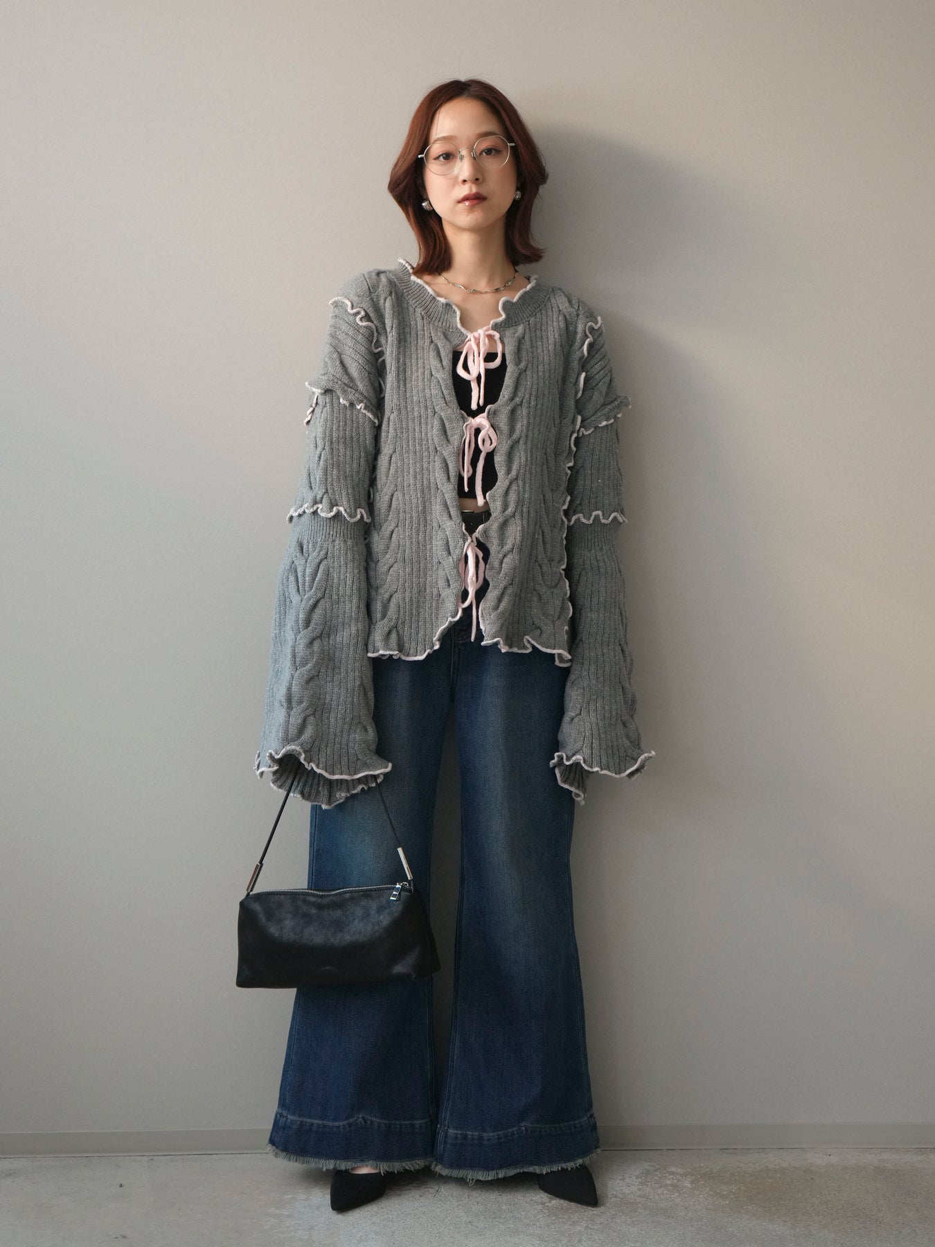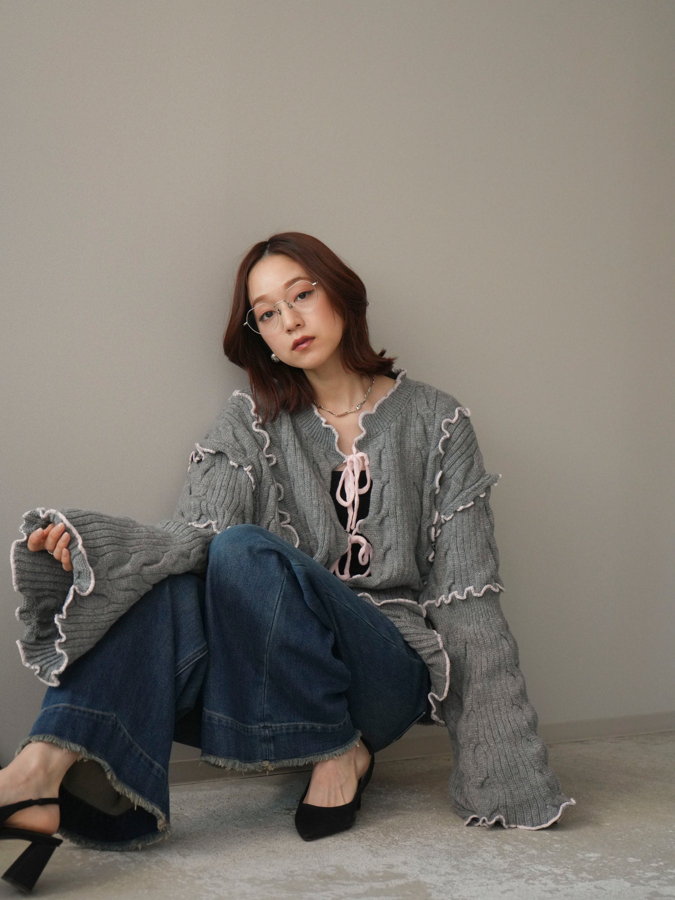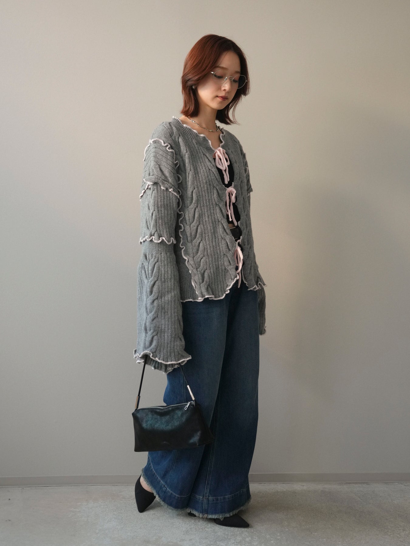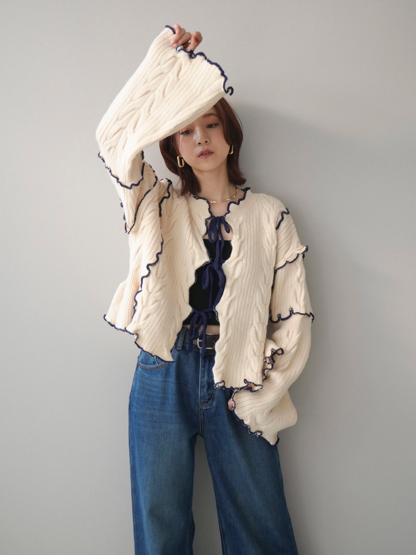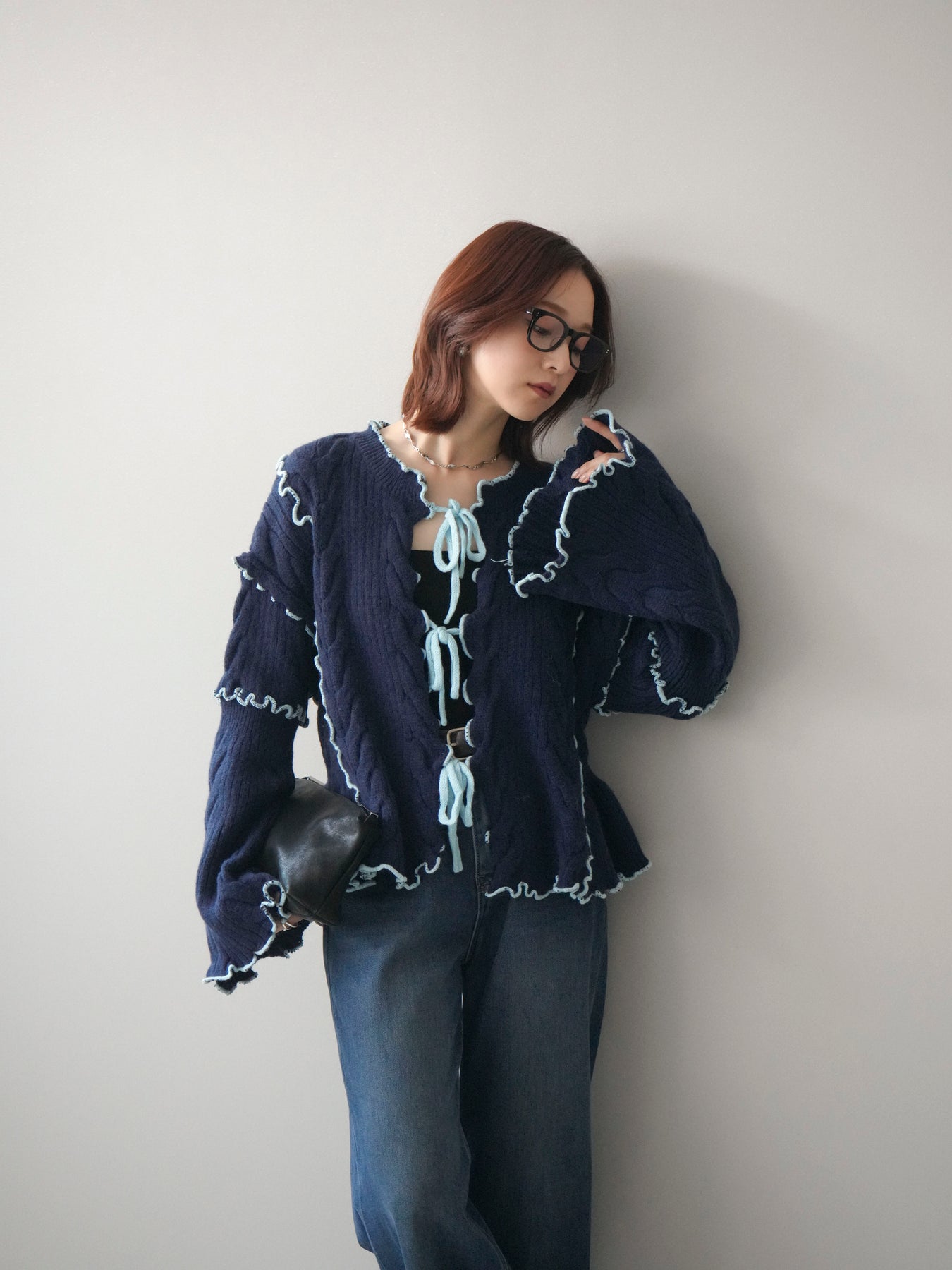 ◆ [予約]フロントリボン配色メローニットカーディガン