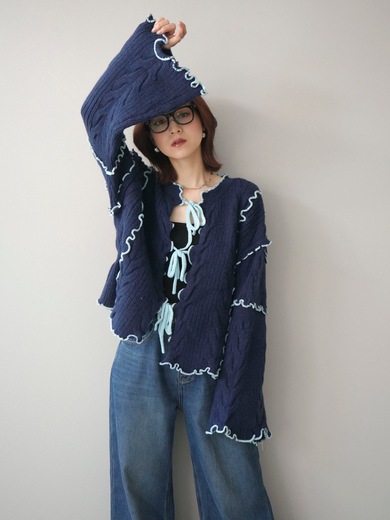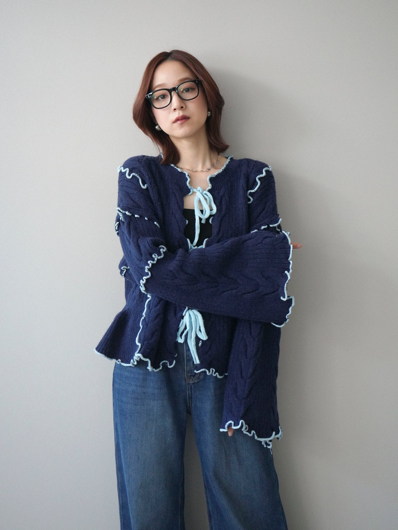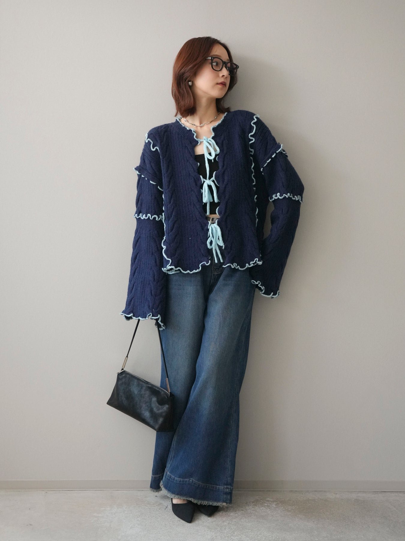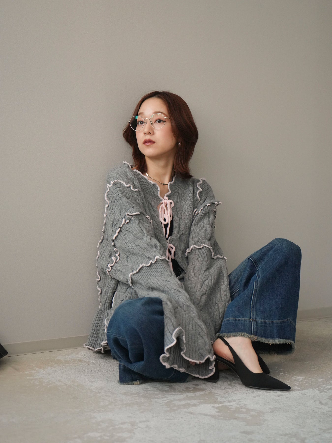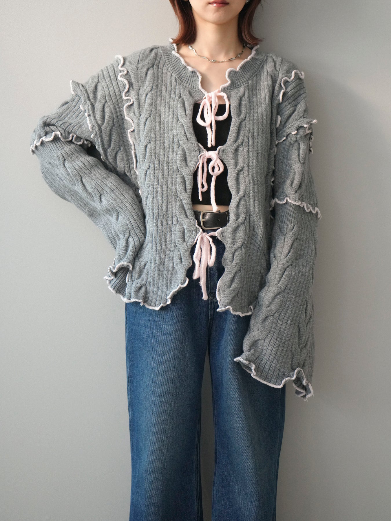 ◆ [予約]フロントリボン配色メローニットカーディガン