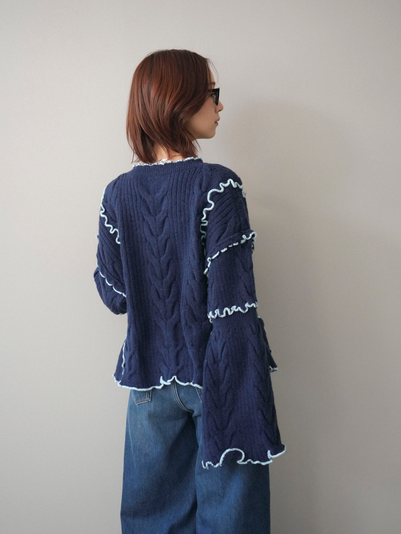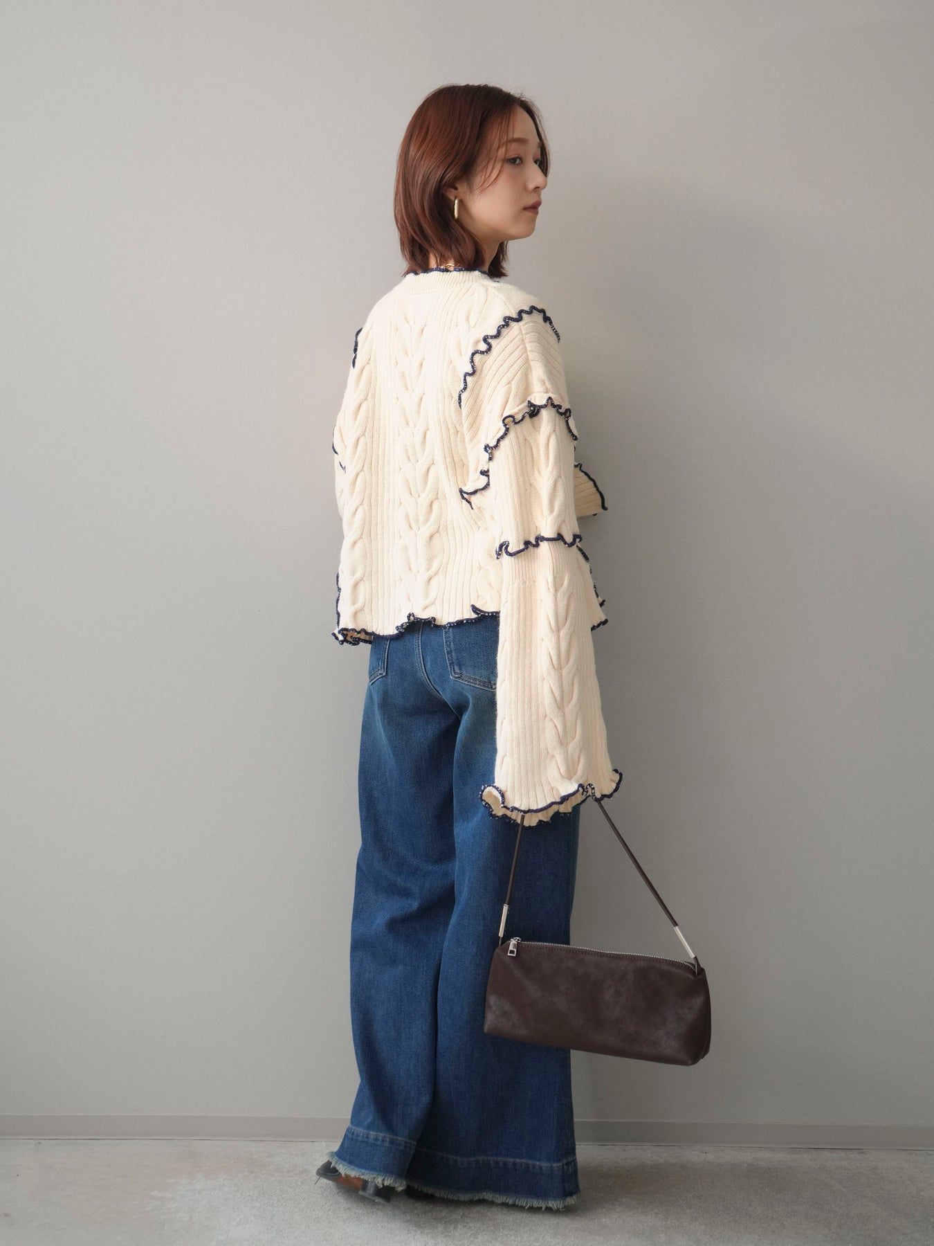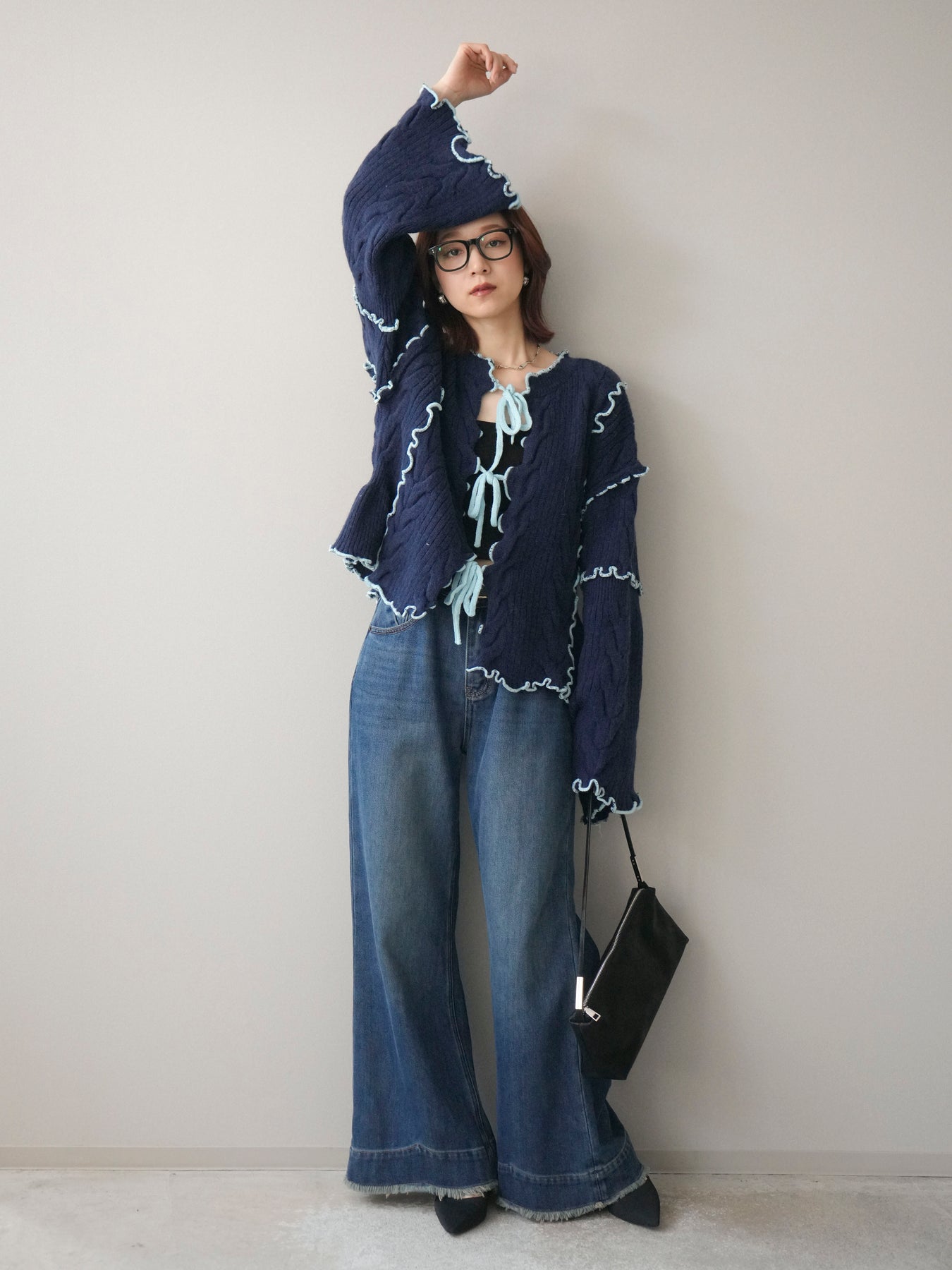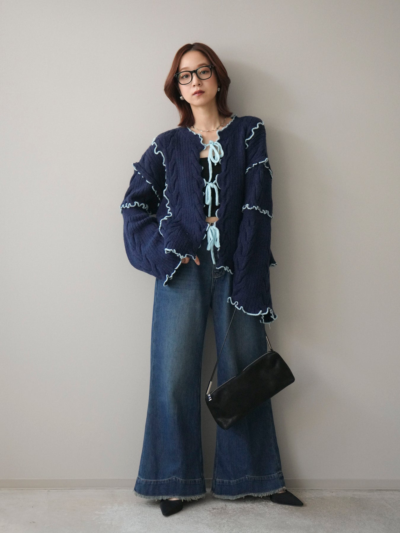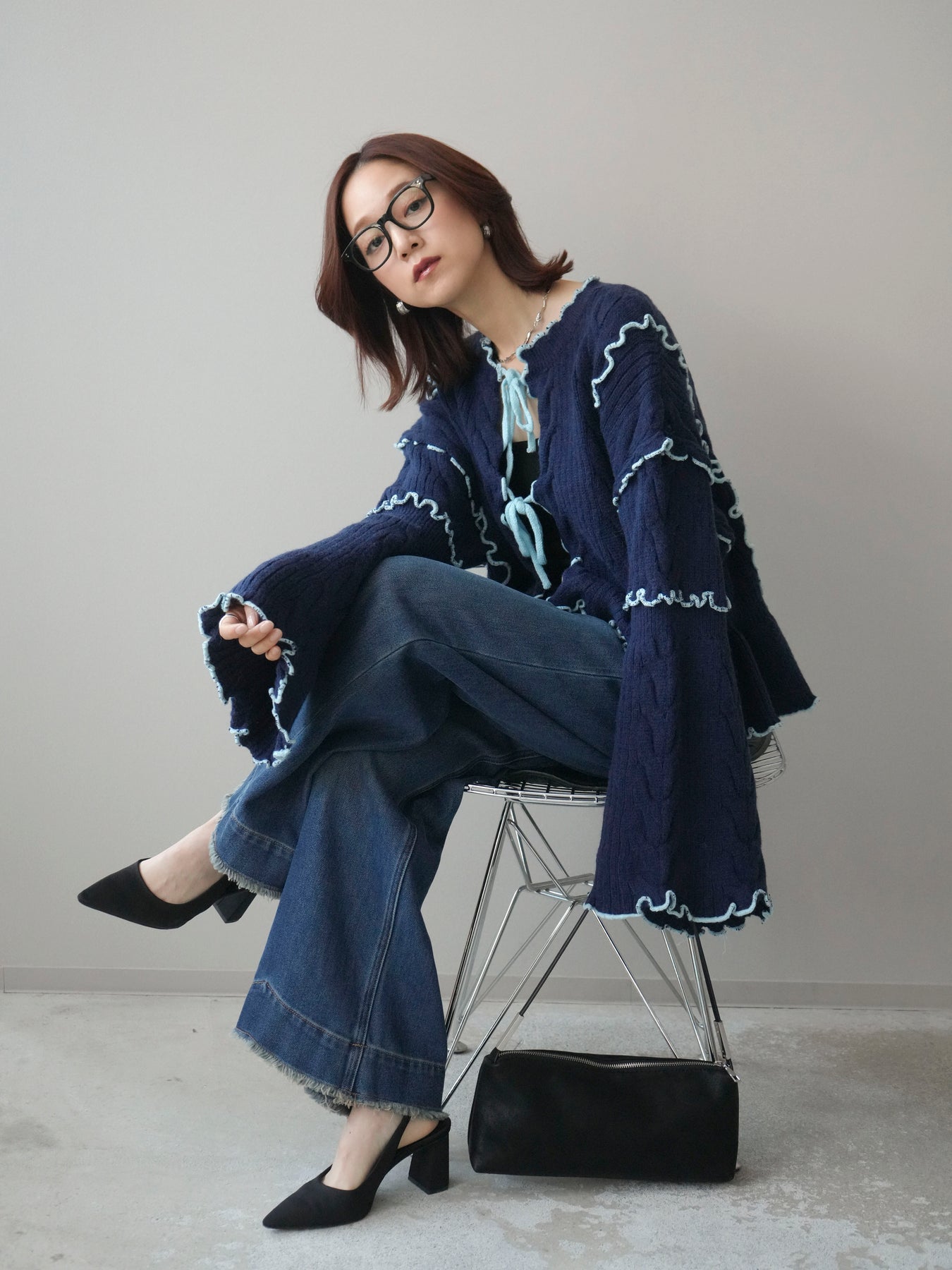 ◆ [予約]フロントリボン配色メローニットカーディガン