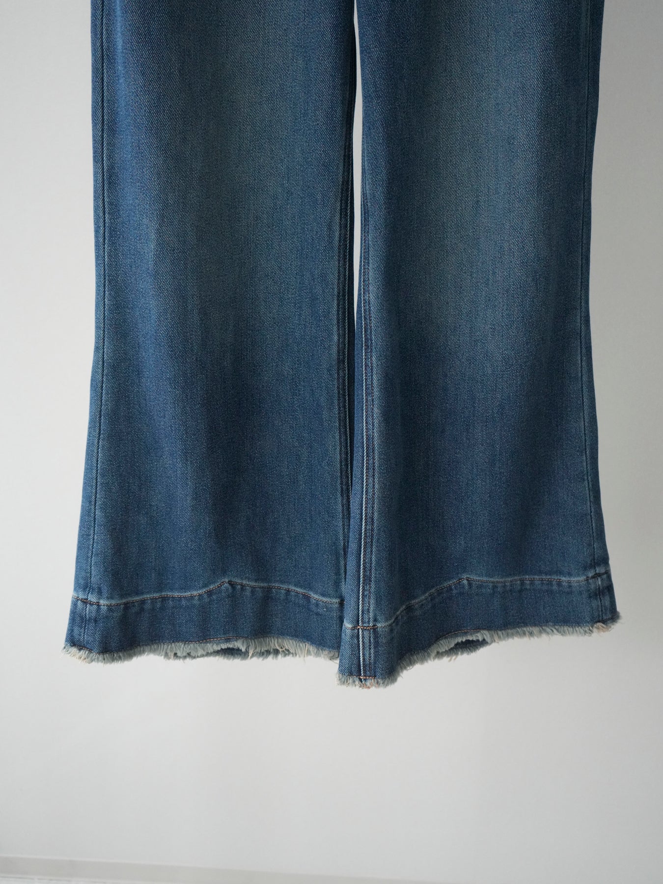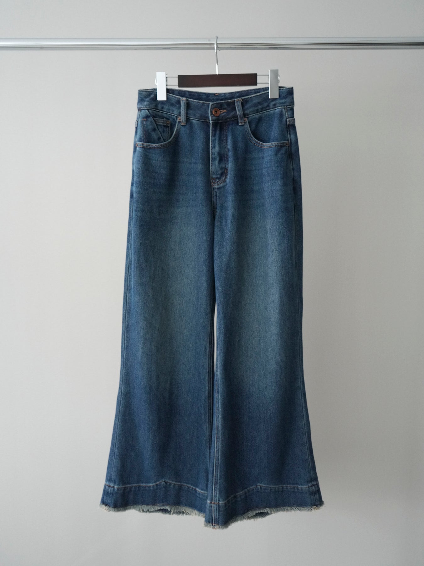 ◆ [予約]裏起毛裾フリンジワイドデニムパンツ