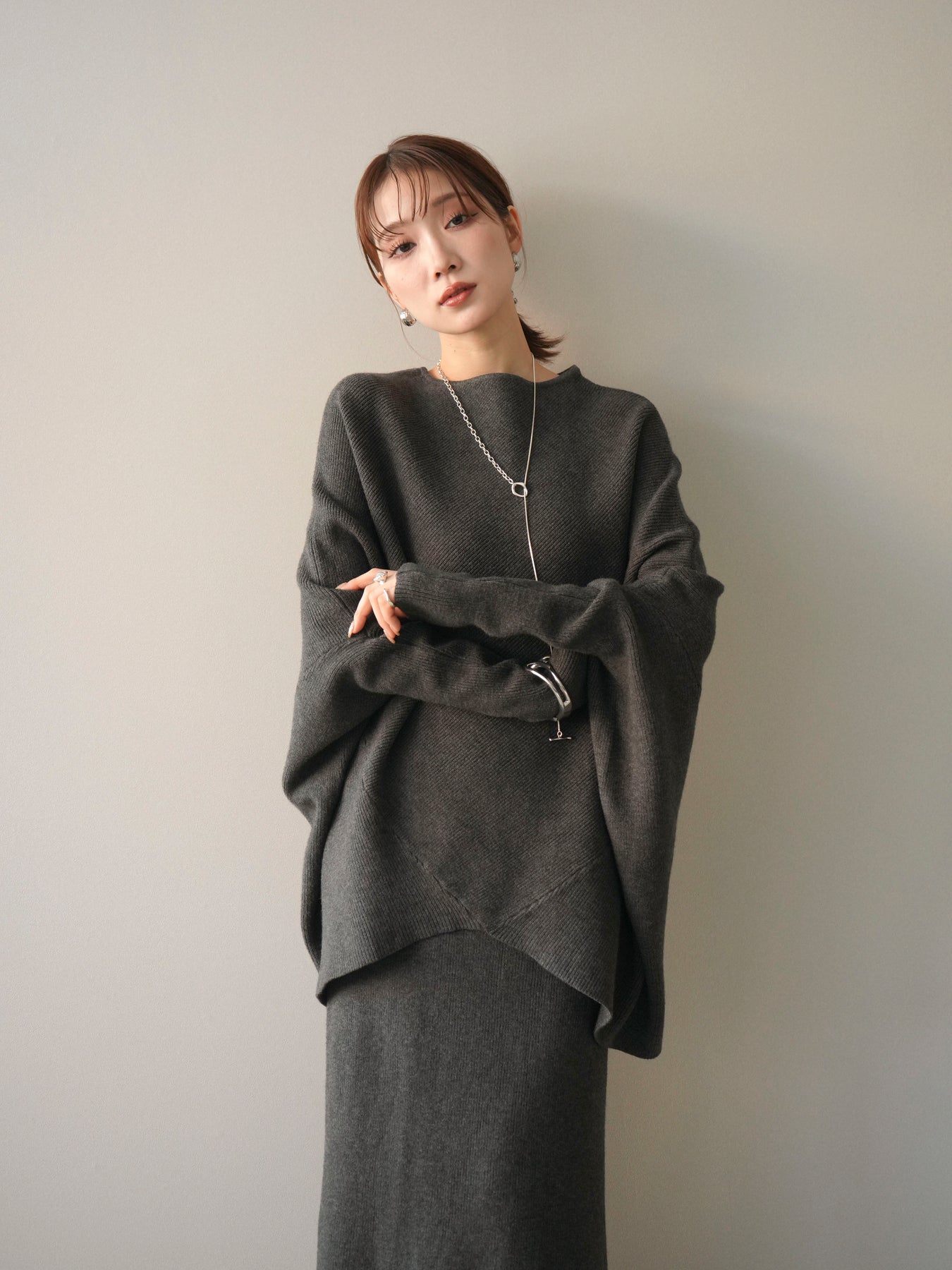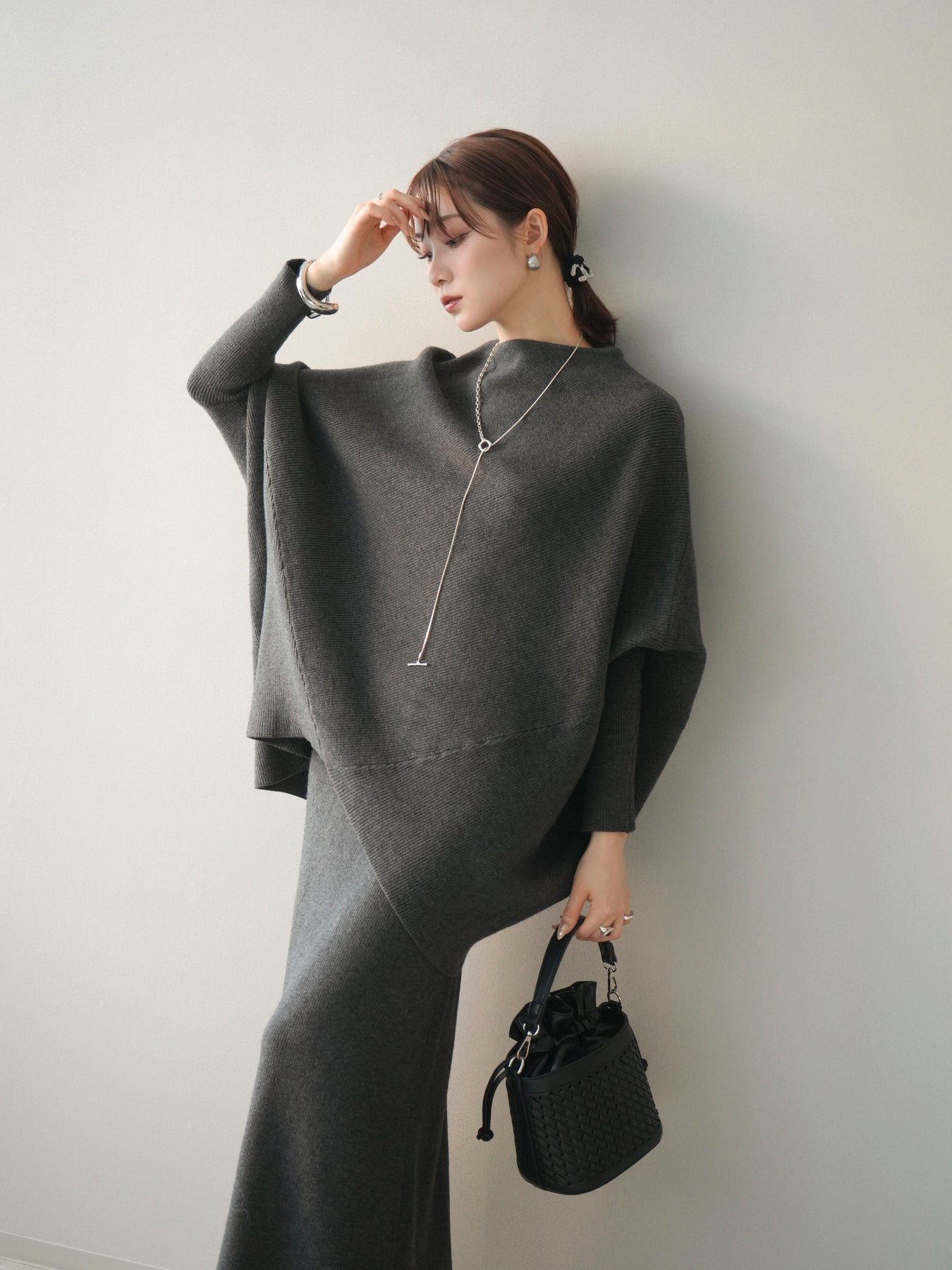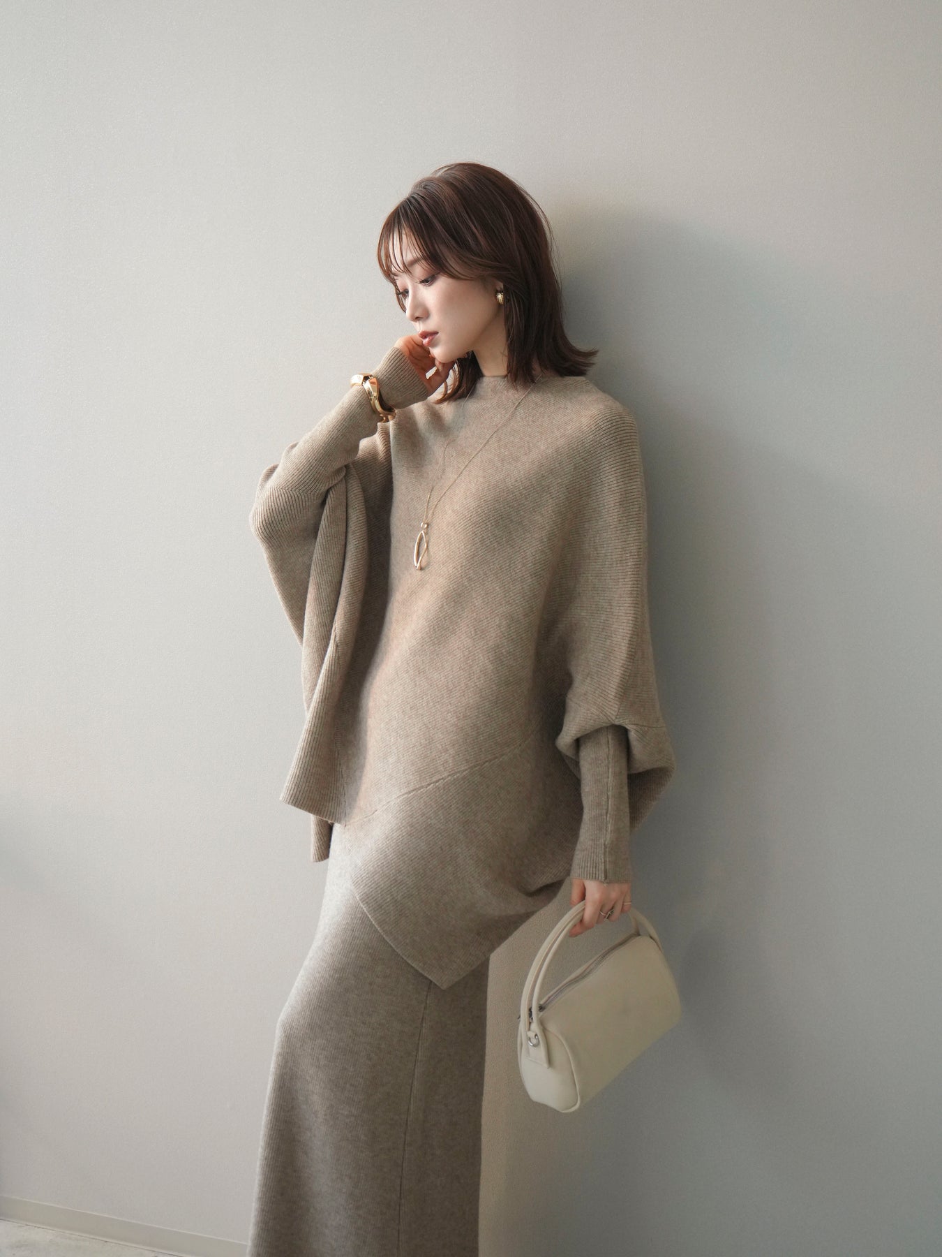 ◆ [予約]ウール混ドルマンニット&スカートSET UP