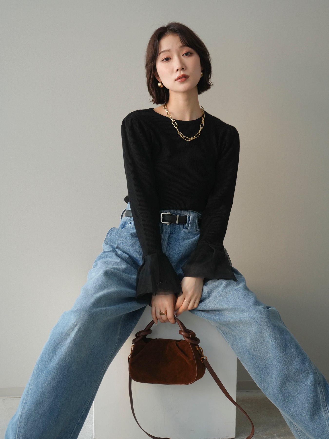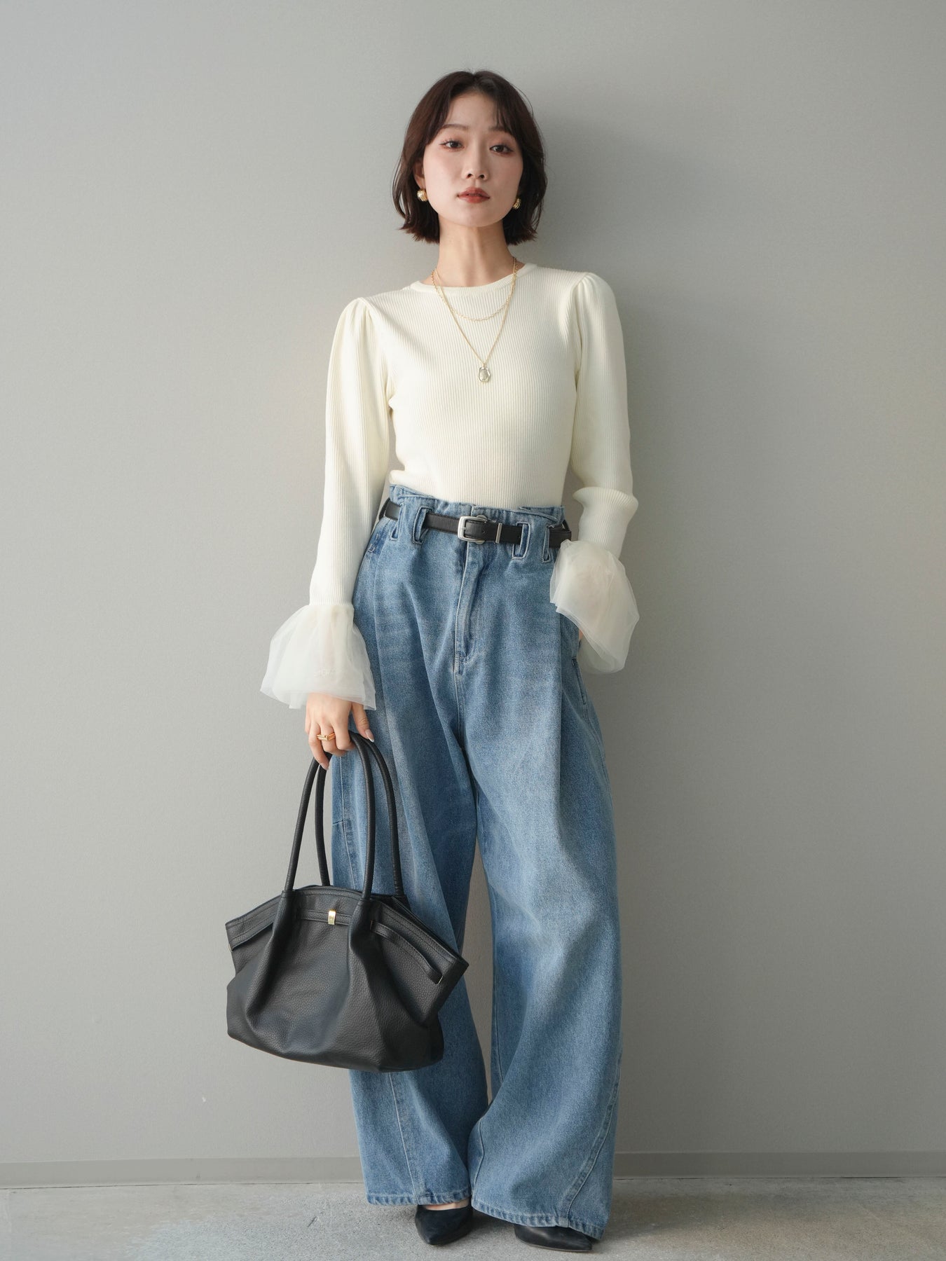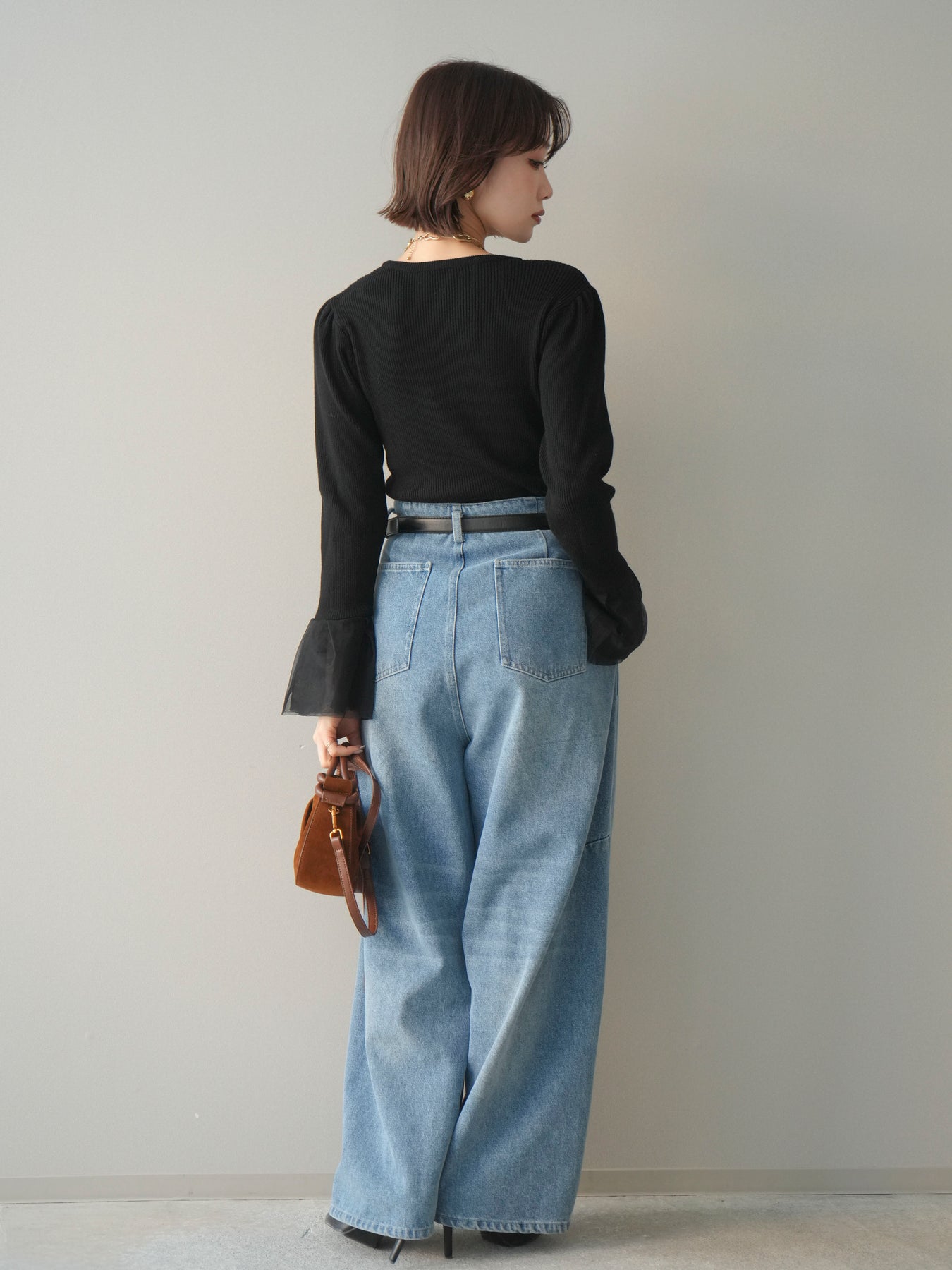 ◆ [予約]ハイウエストベルトループデザインデニムパンツ