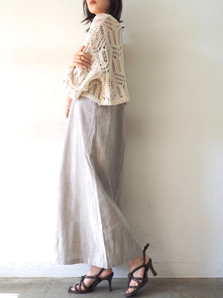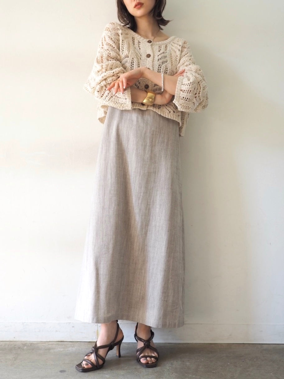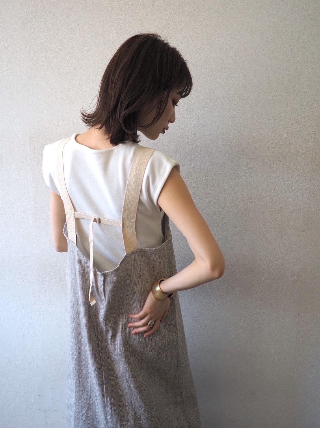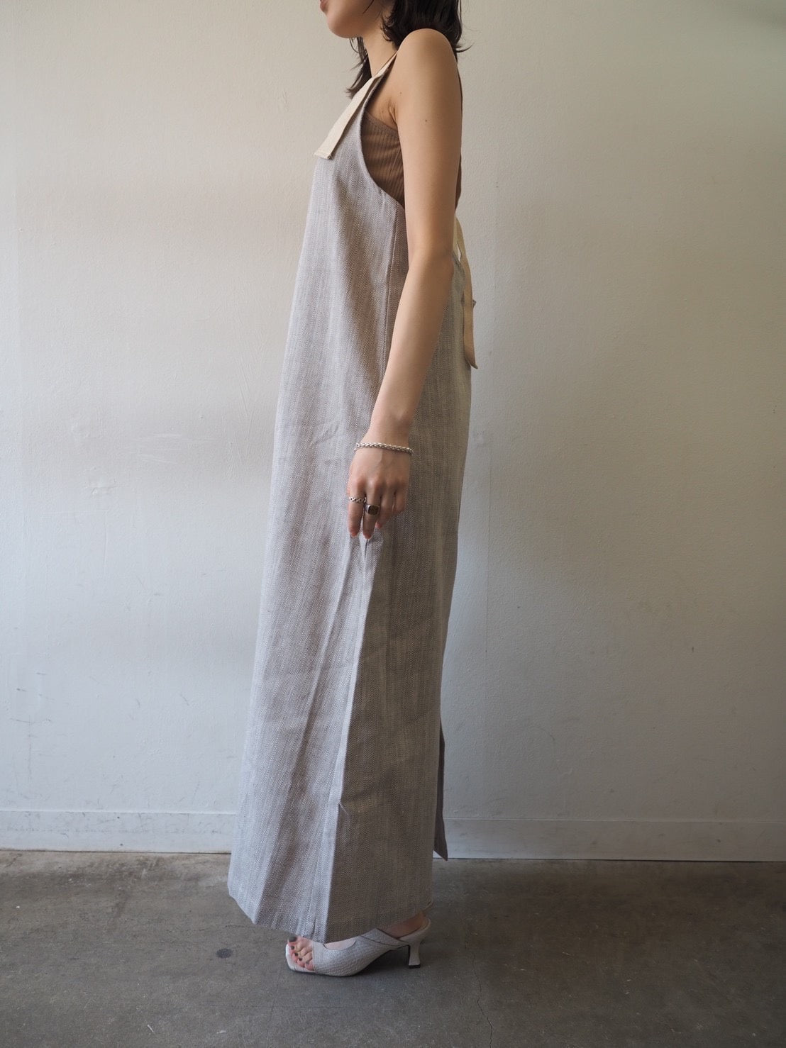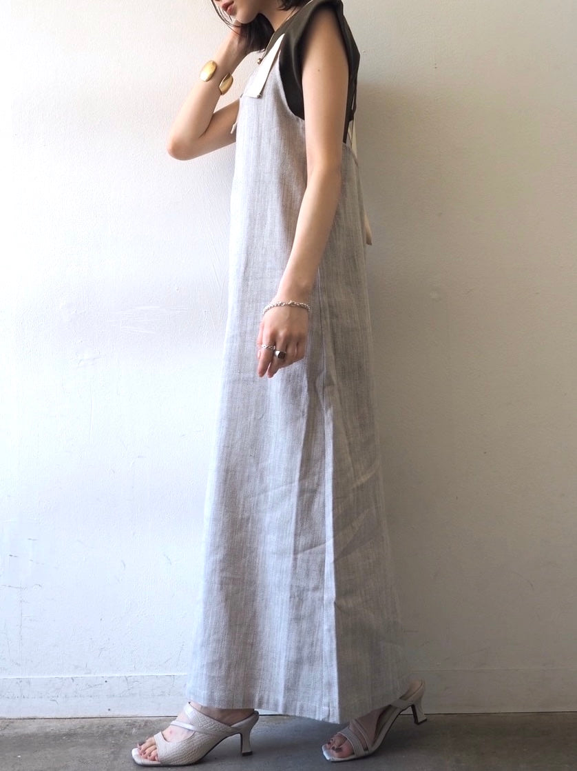 人字紋吊帶背心洋裝的肩帶採用不同材質設計。顏色對比營造出鮮明的對比,讓你穿起來很時尚。背面款式有一個調節器,因此您可以調整尺寸。讓腰部看起來俐落的剪裁也是一個重點。此單品採用柔和的喇叭形輪廓,增添女性氣質。