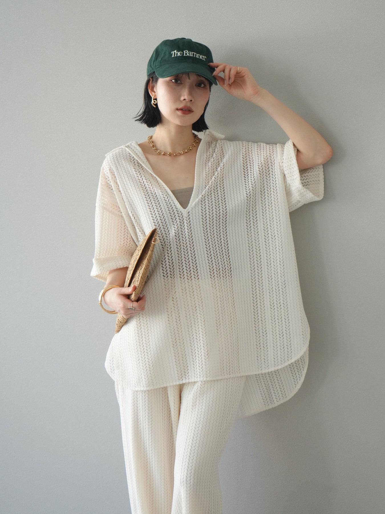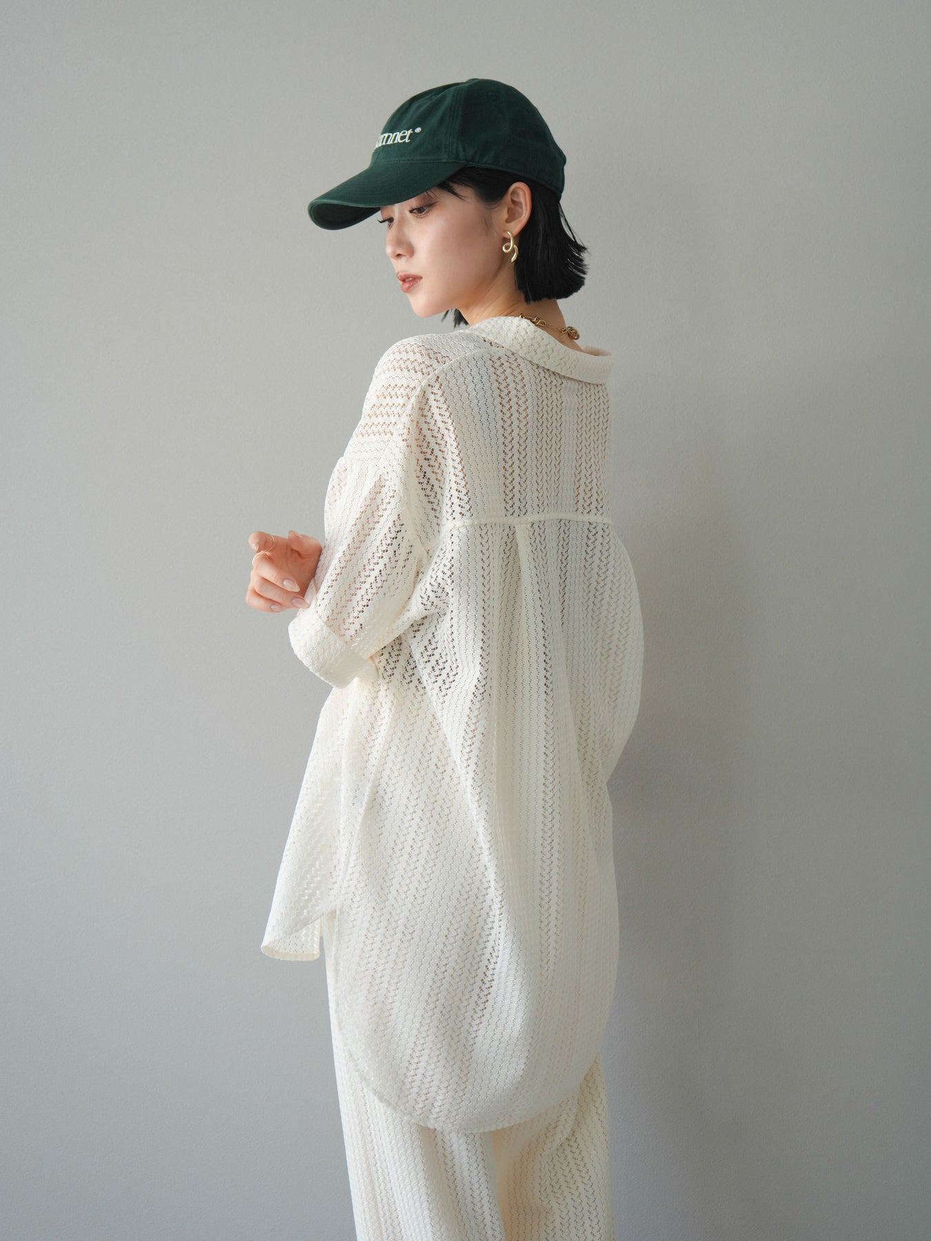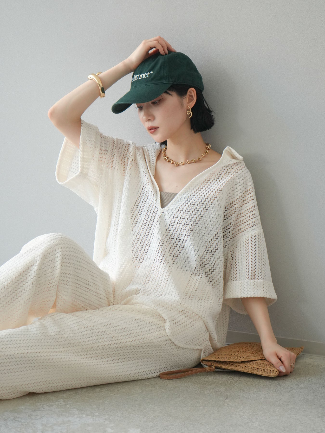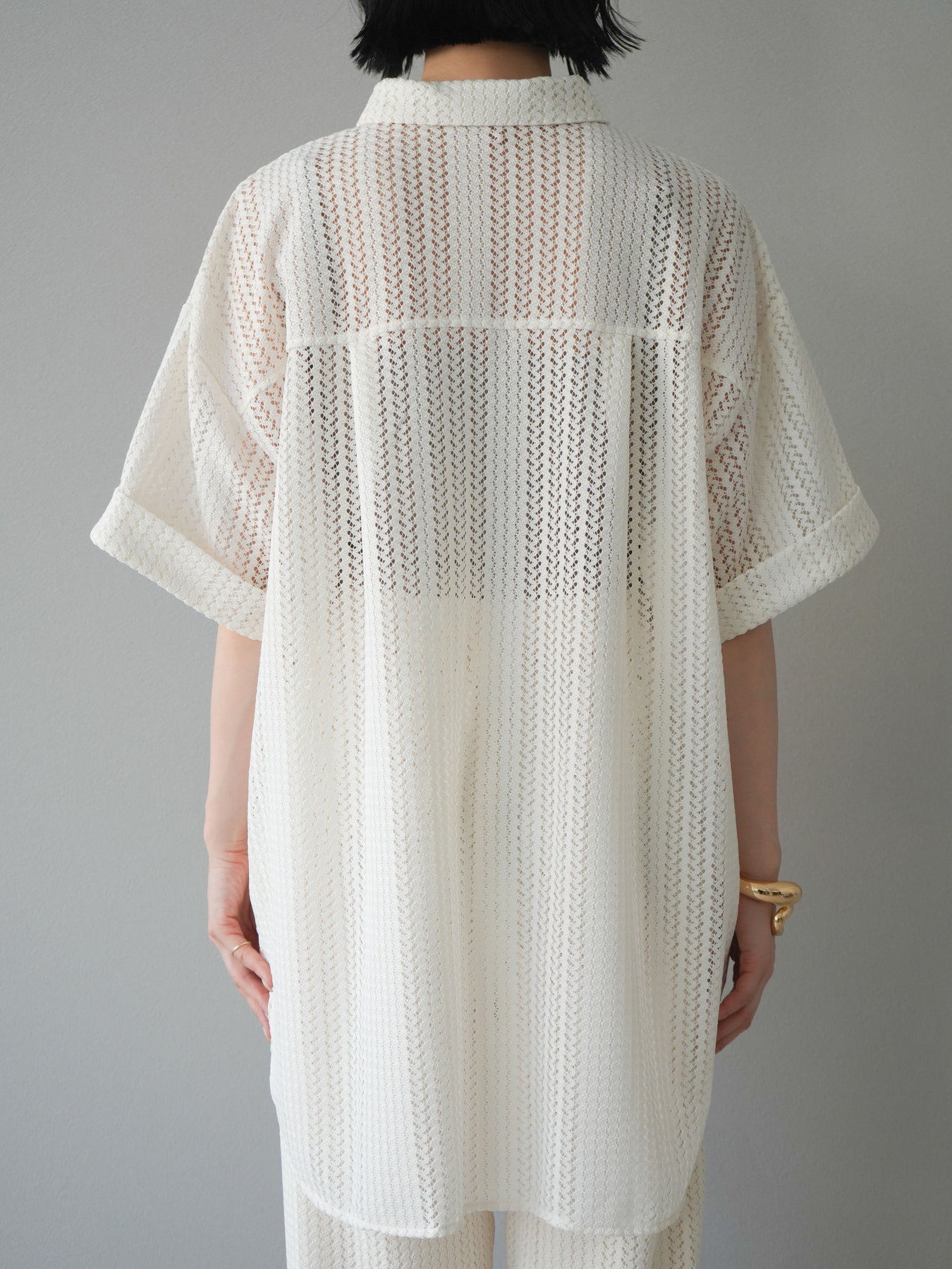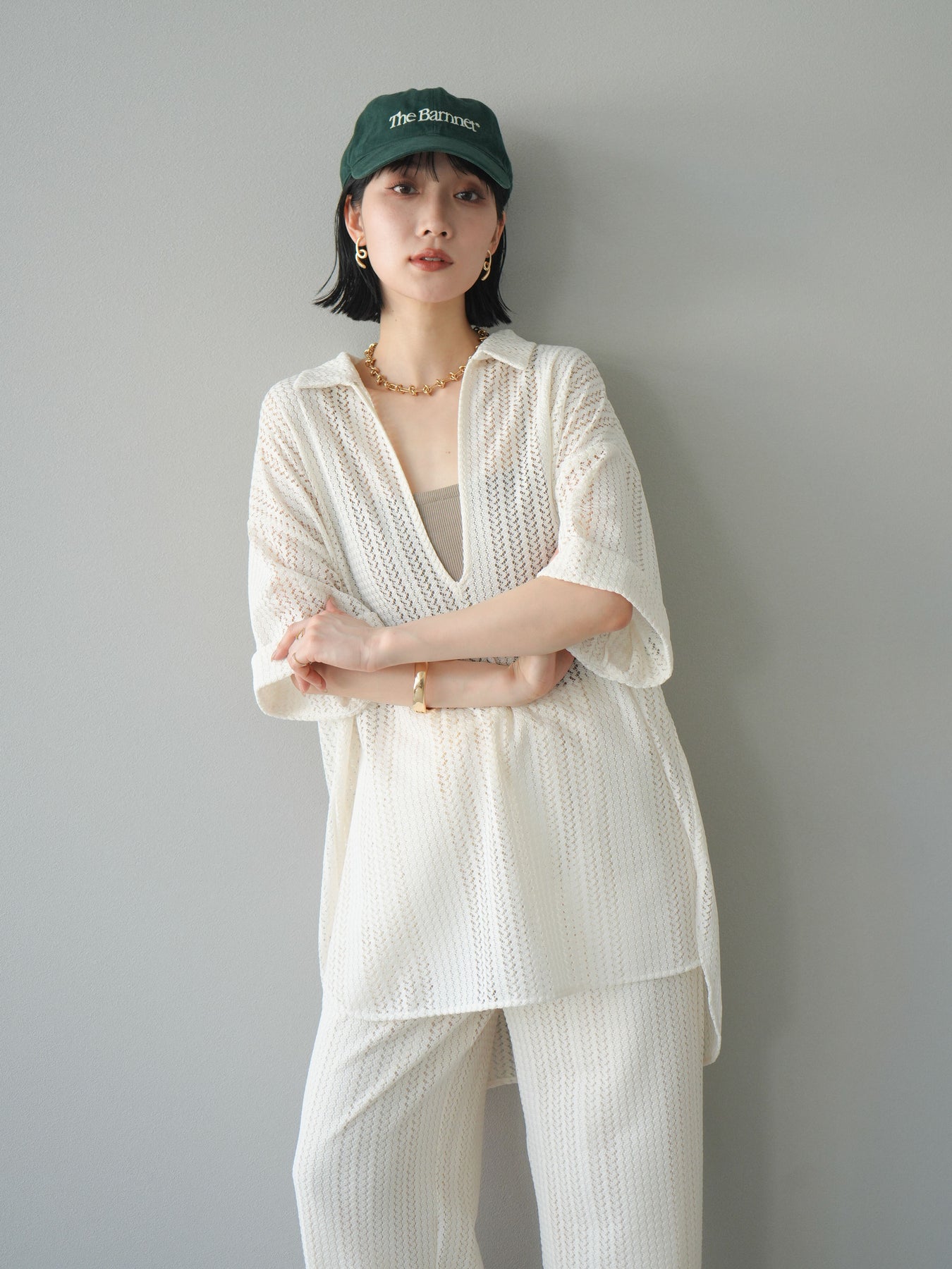 這款兩穿套頭衫採用透氣鏤空蕾絲針織,打造清涼造型。設計百搭,可任意穿搭,拓展了造型選擇。適度寬鬆的輪廓和寬鬆的布料,營造出輕鬆休閒又不失精緻的造型。也建議搭配背心和吊帶背心。 ※除下裝、吊帶背心(內衣)以外的商品均為標準品,不含內衣。
