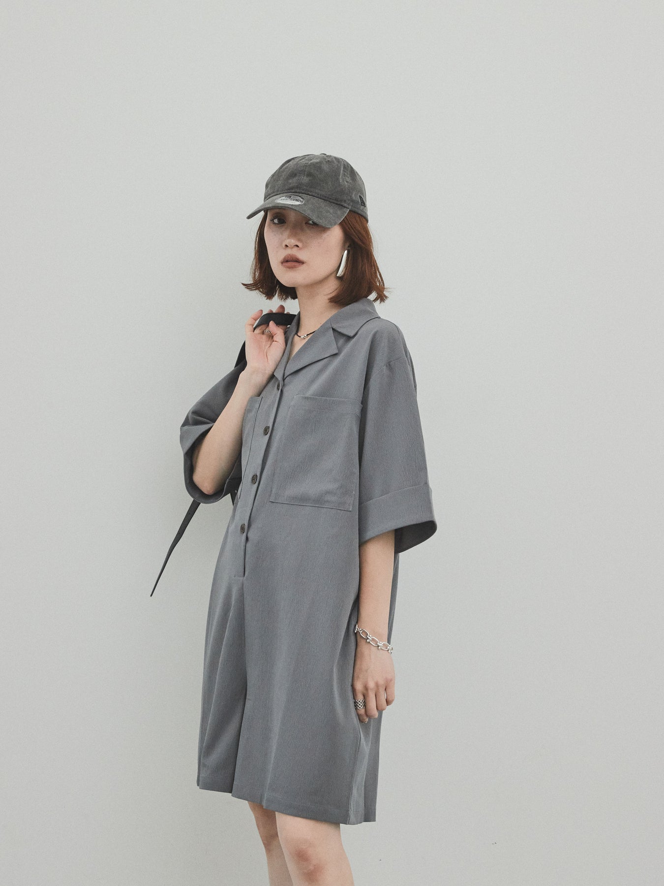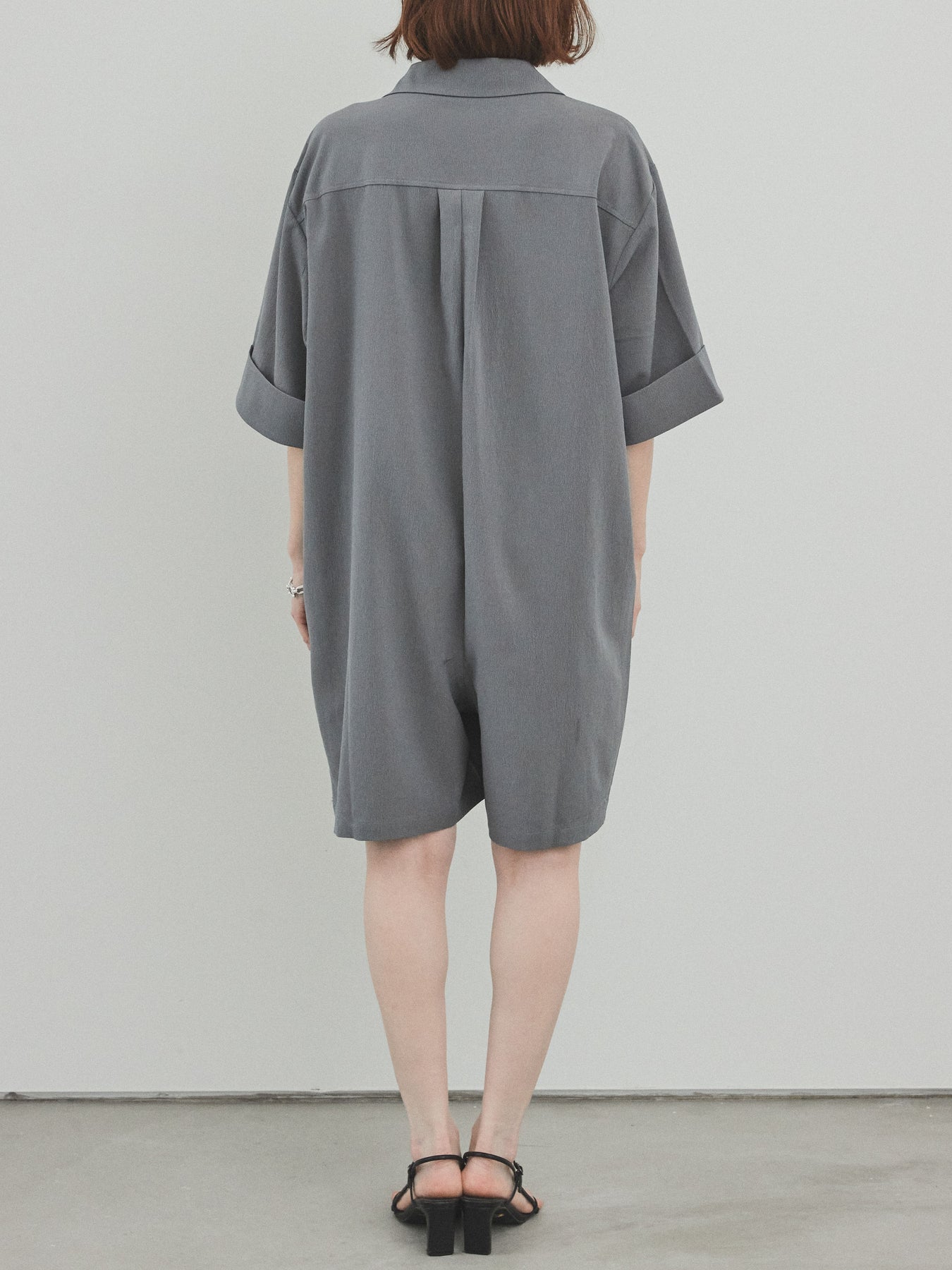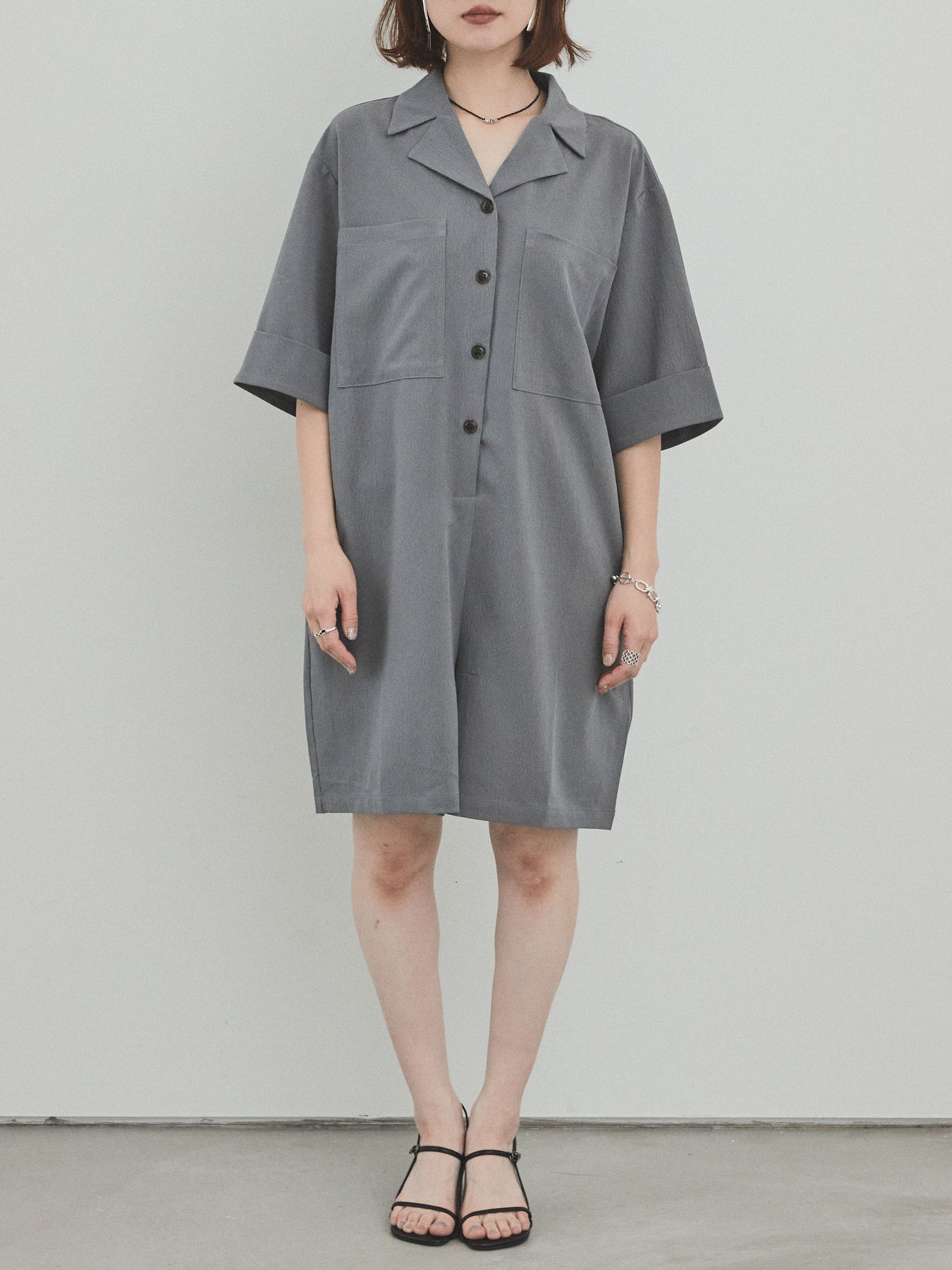 [預購] 縐雪紡襯衫連身衣/灰色