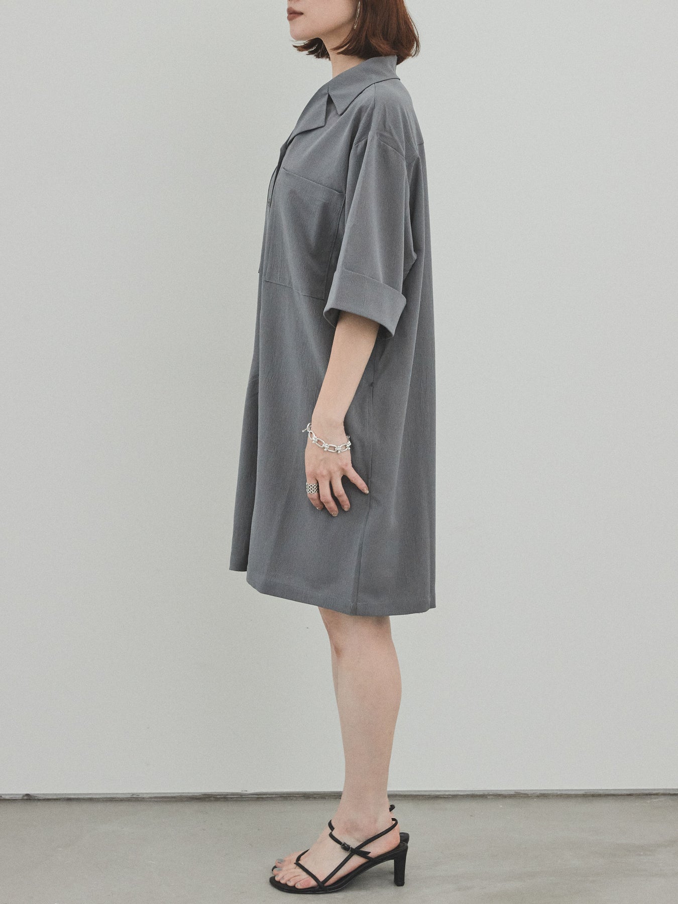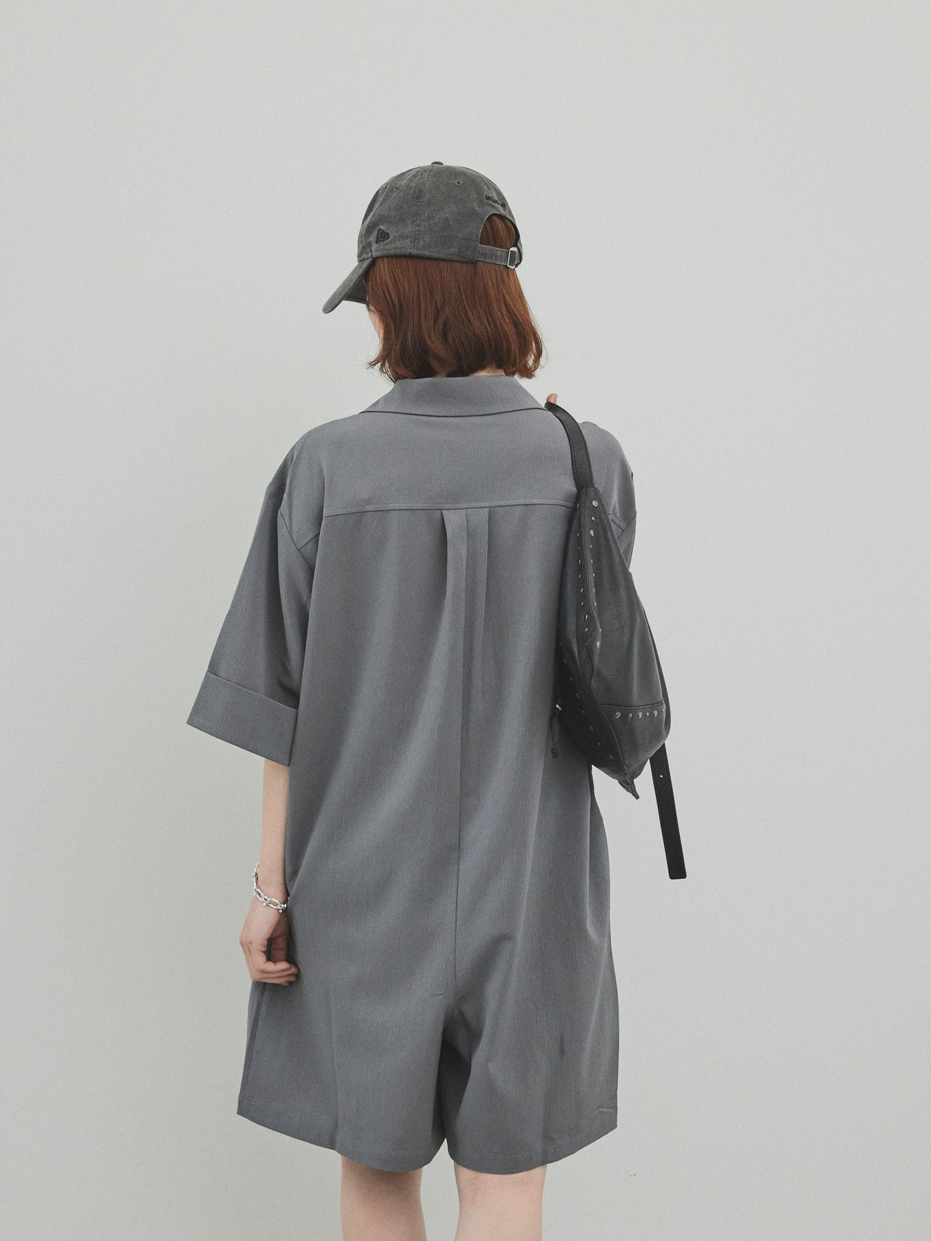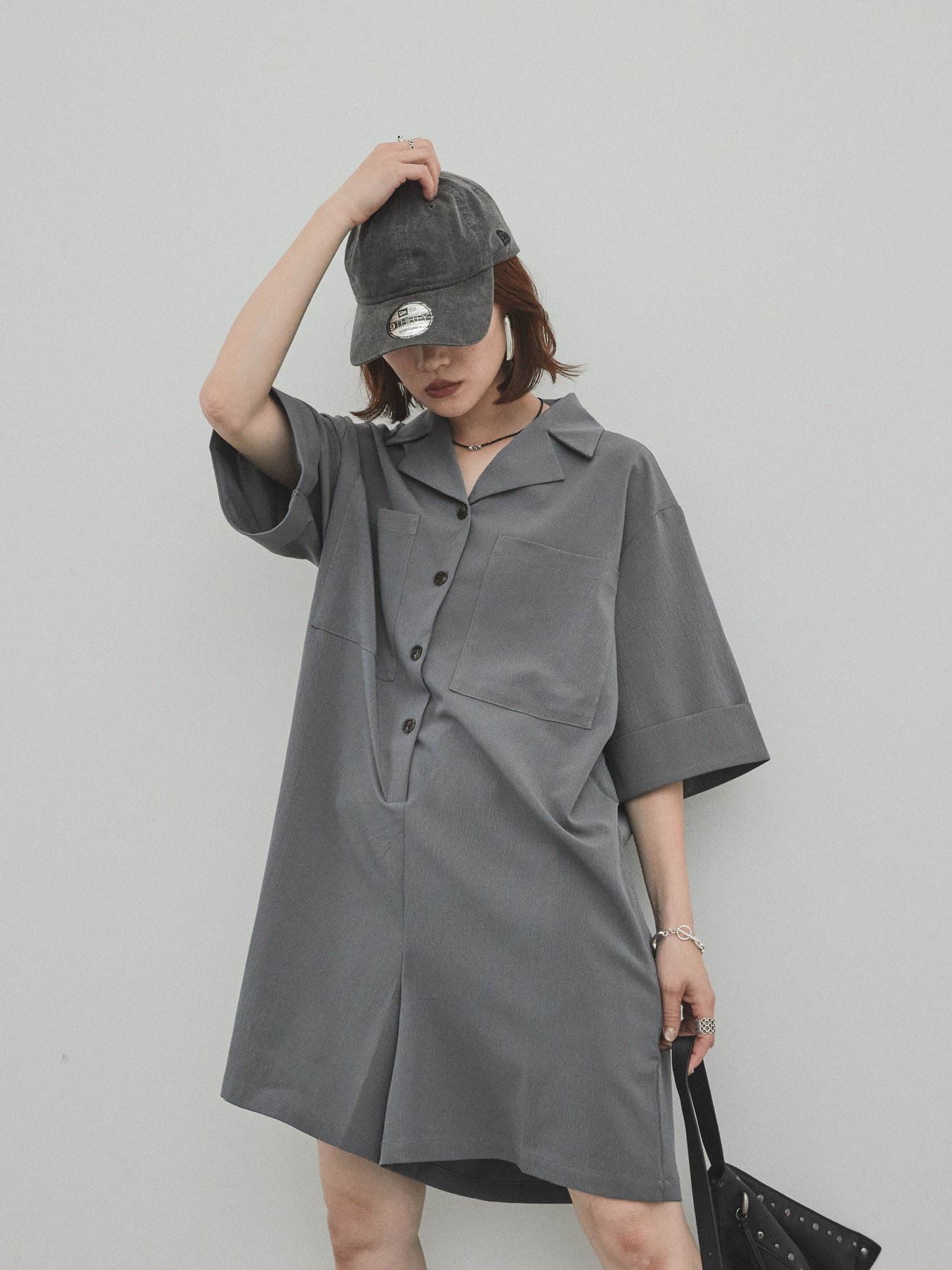 [預購] 縐雪紡襯衫連身衣/灰色