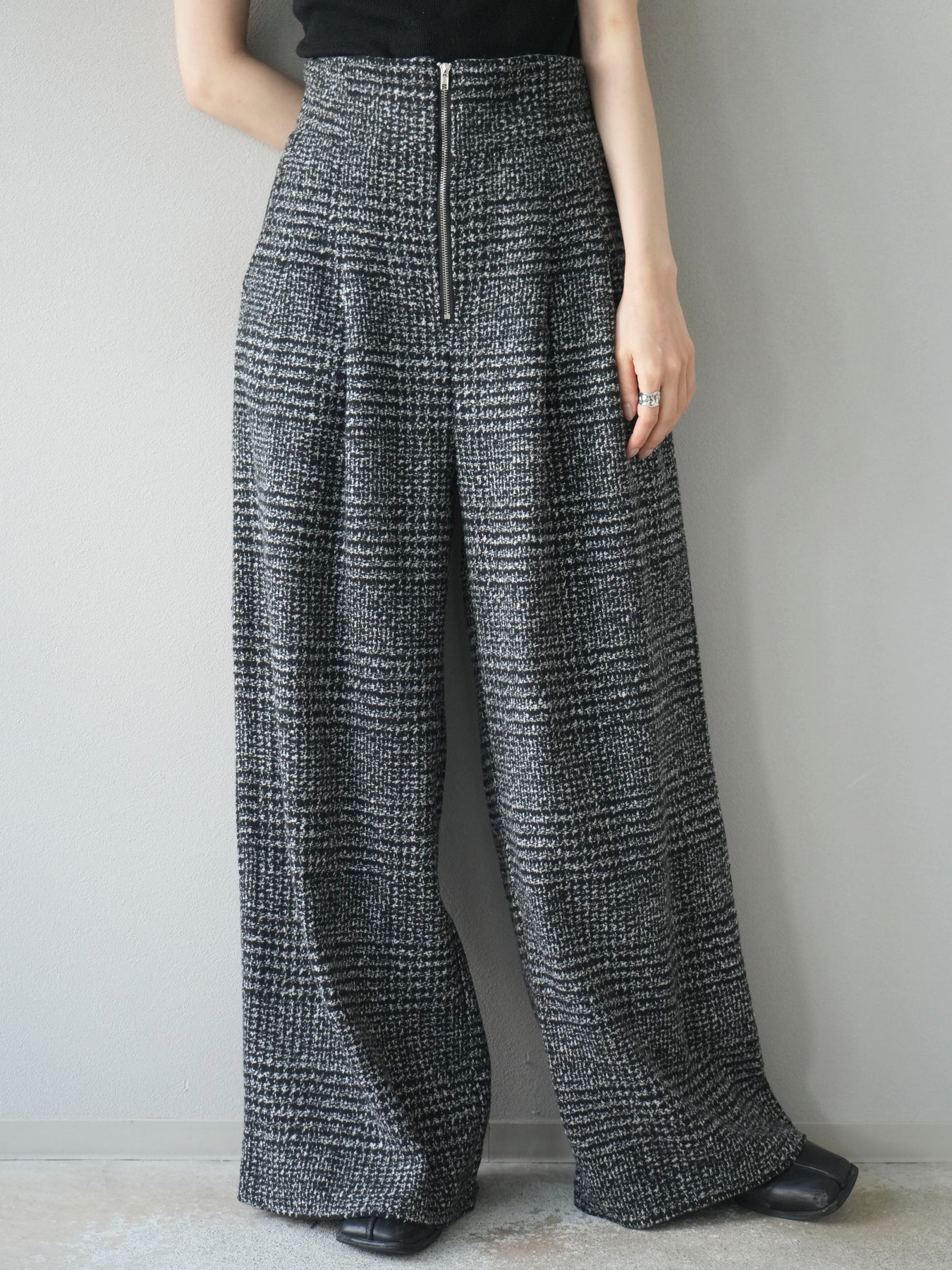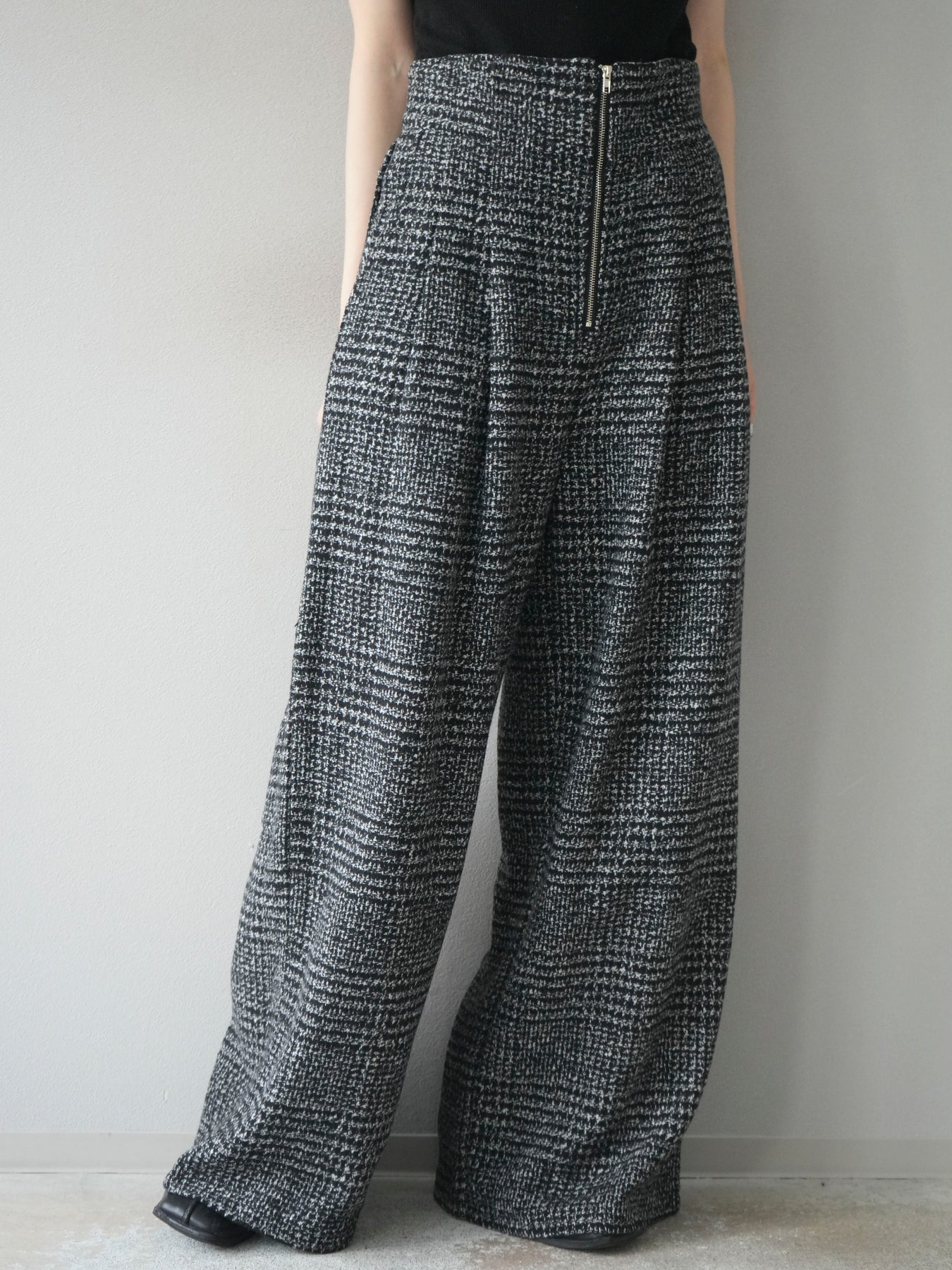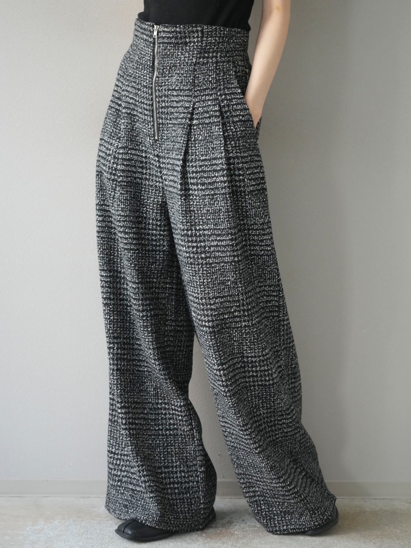 [予約]フロントジップミックスツイードワイドパンツ/ black