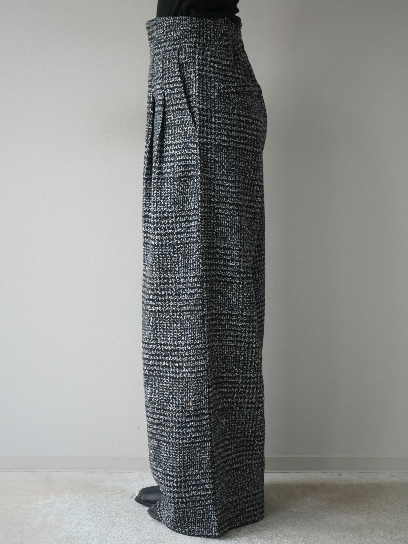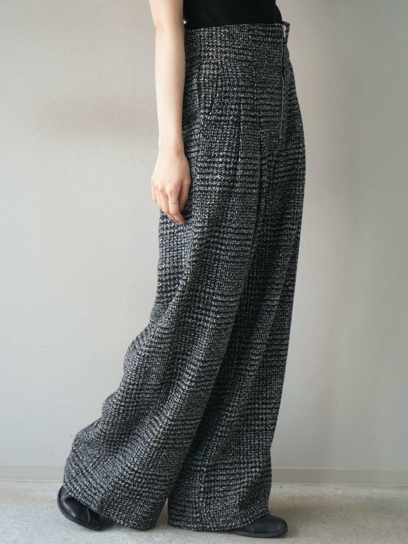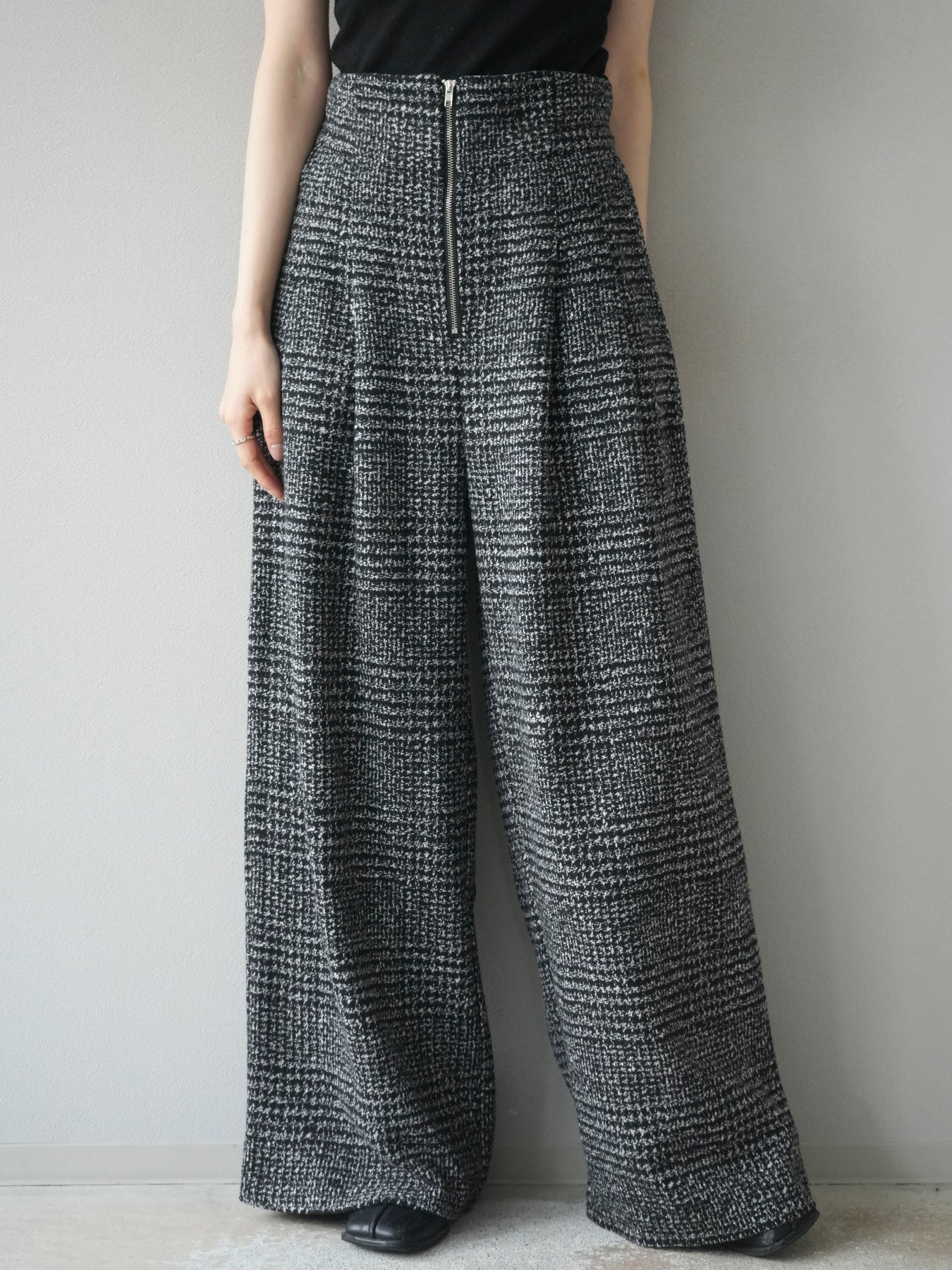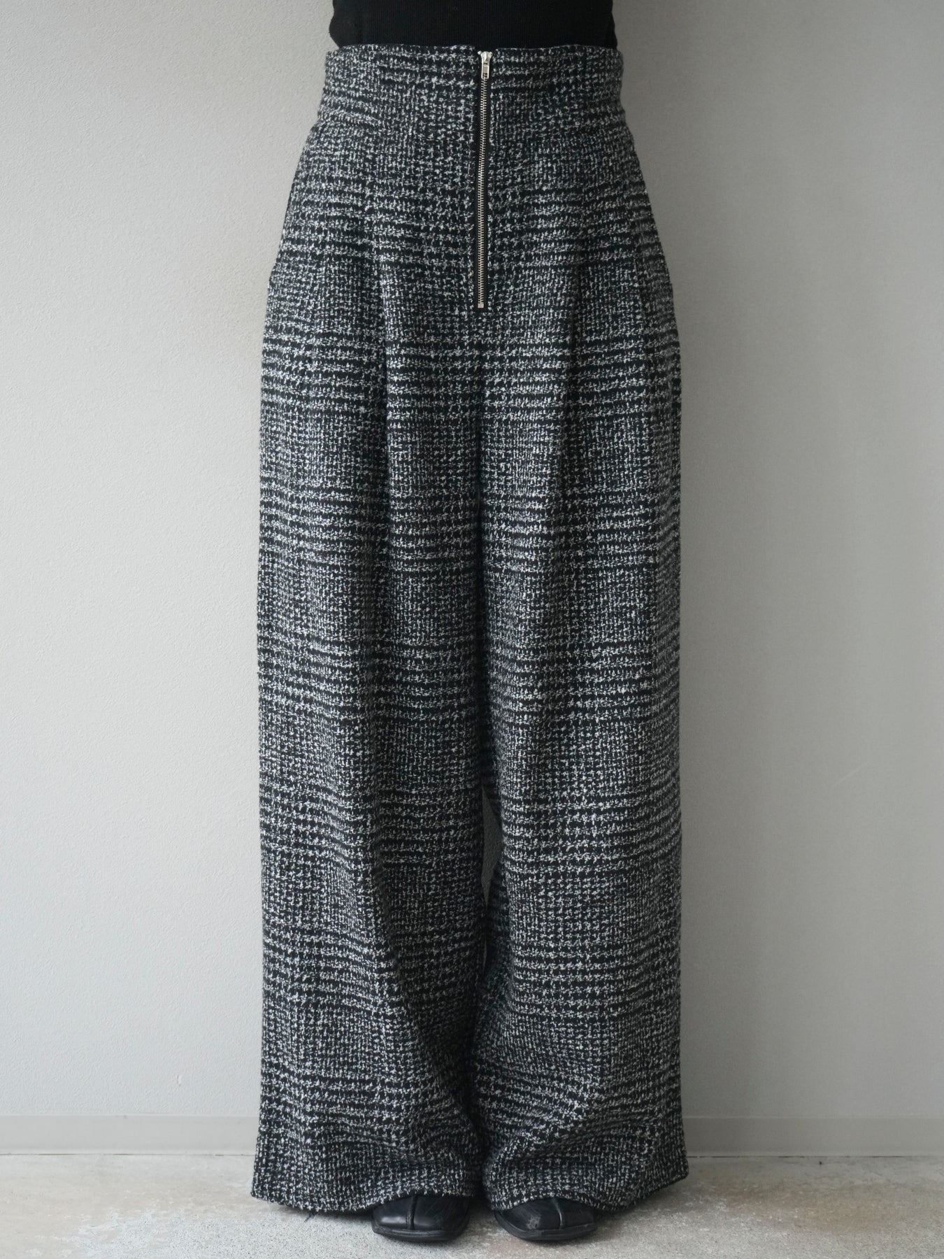 [予約]フロントジップミックスツイードワイドパンツ/ black