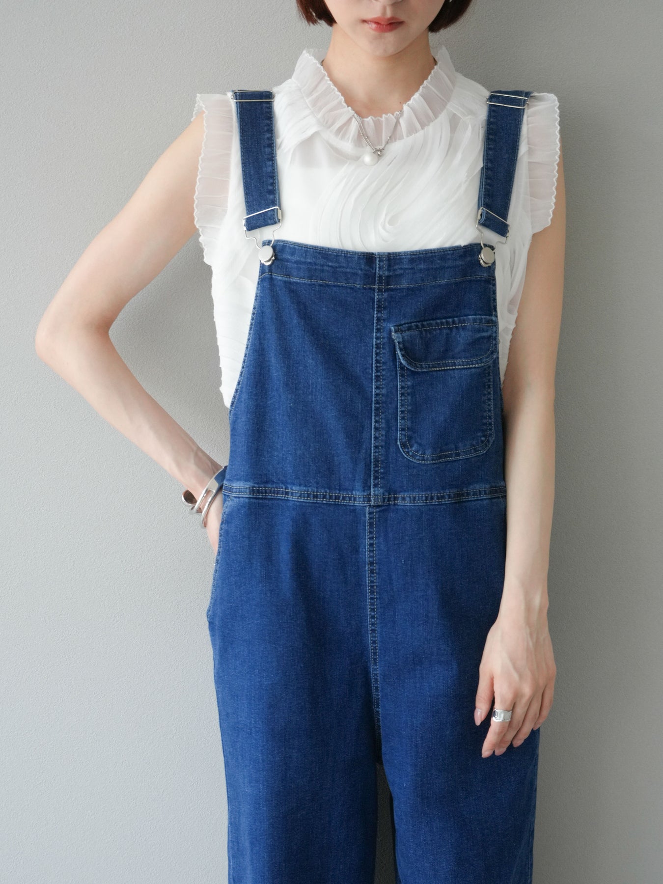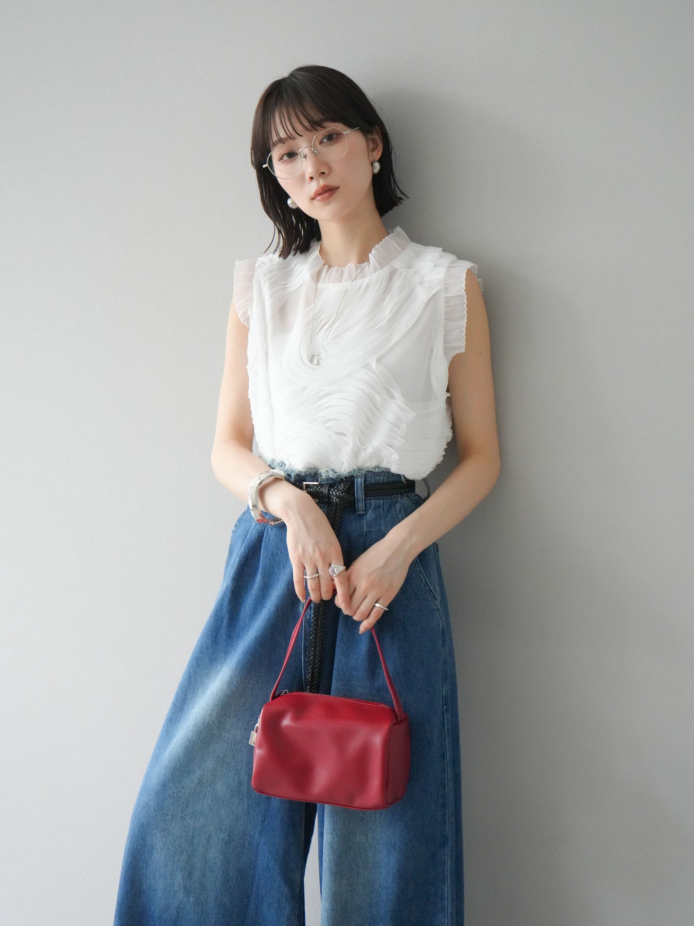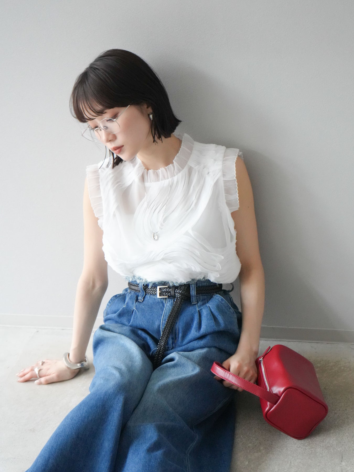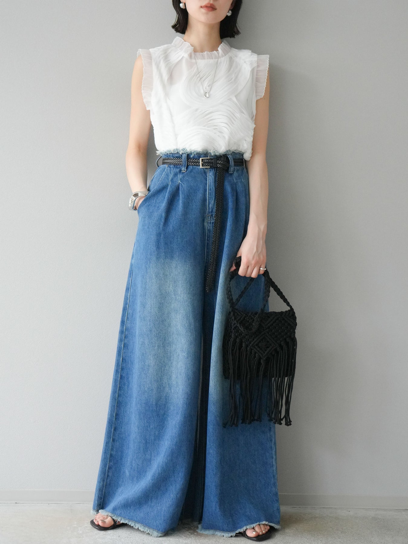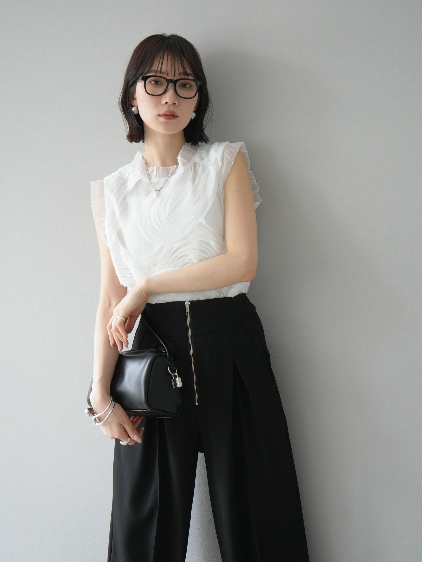 這款無袖上衣採用薄紗製成,飾有獨特的立體提花圖案。柔軟的薄紗襯托出您的女性氣質,並隨著您的移動而塑造優美的輪廓。褶邊和精緻的設計賦予它優雅迷人的氣質,非常適合出席特殊場合。這件單品簡約迷人。 ※除下裝、吊帶背心(內衣)以外的商品均為標準品,不含內衣。