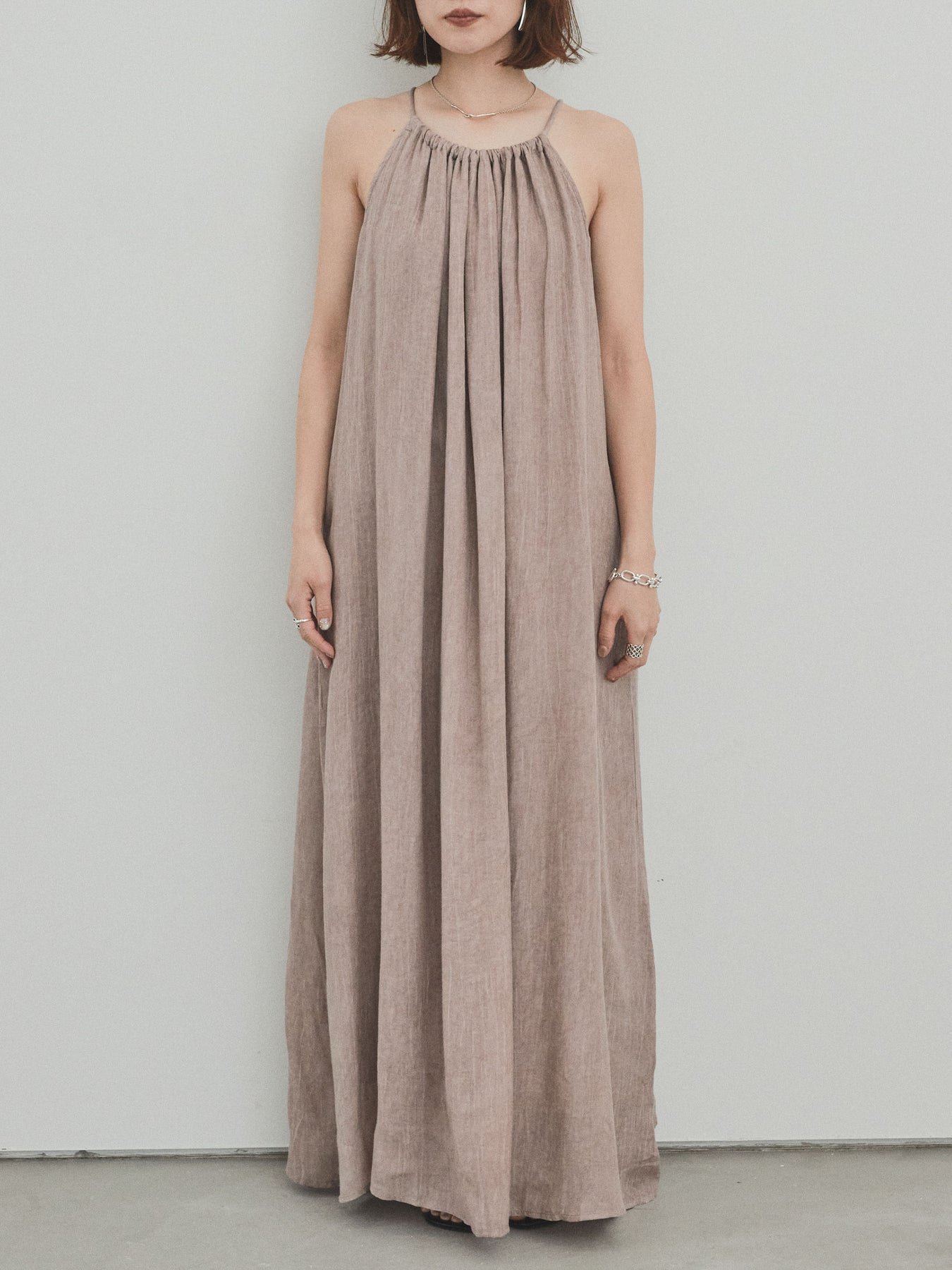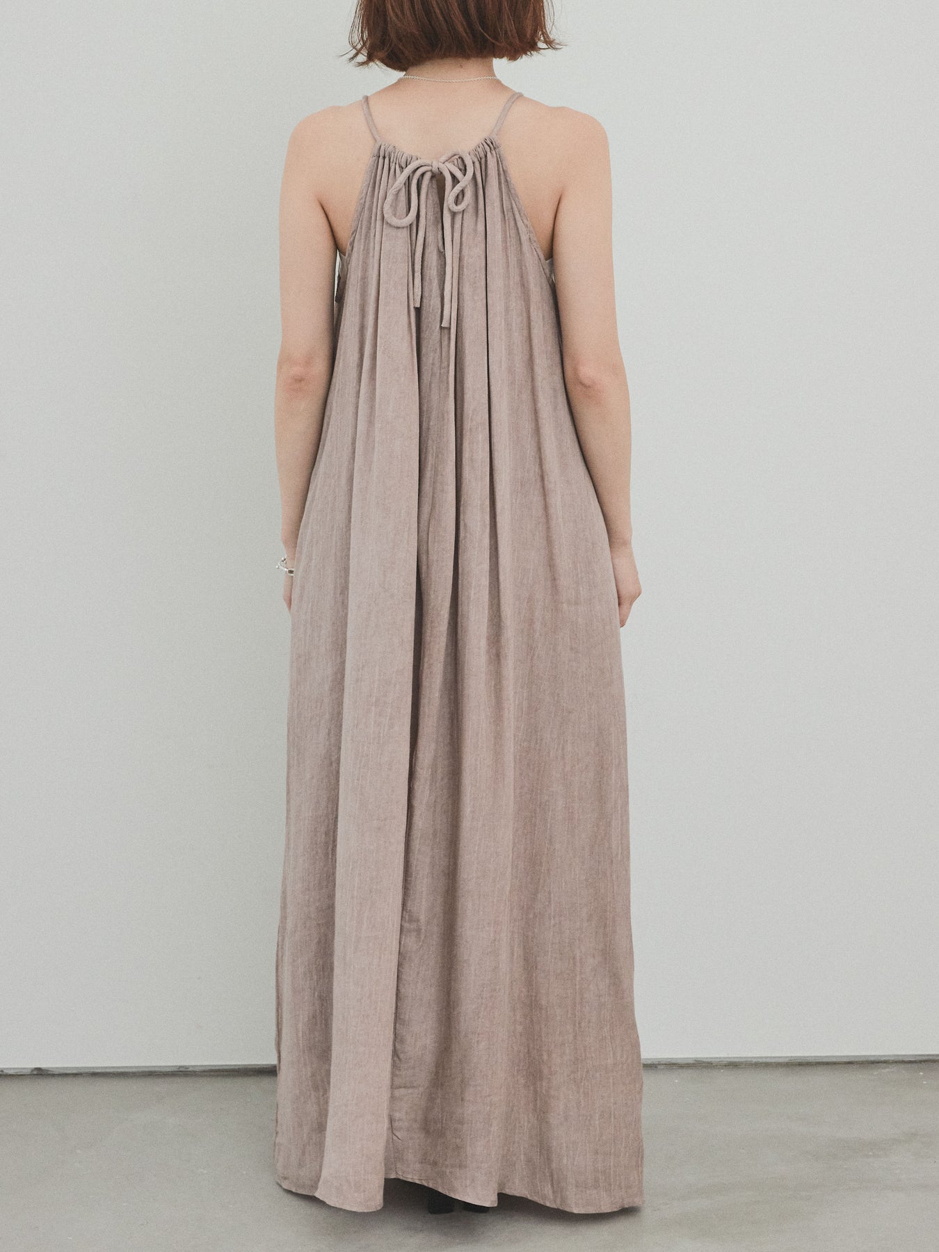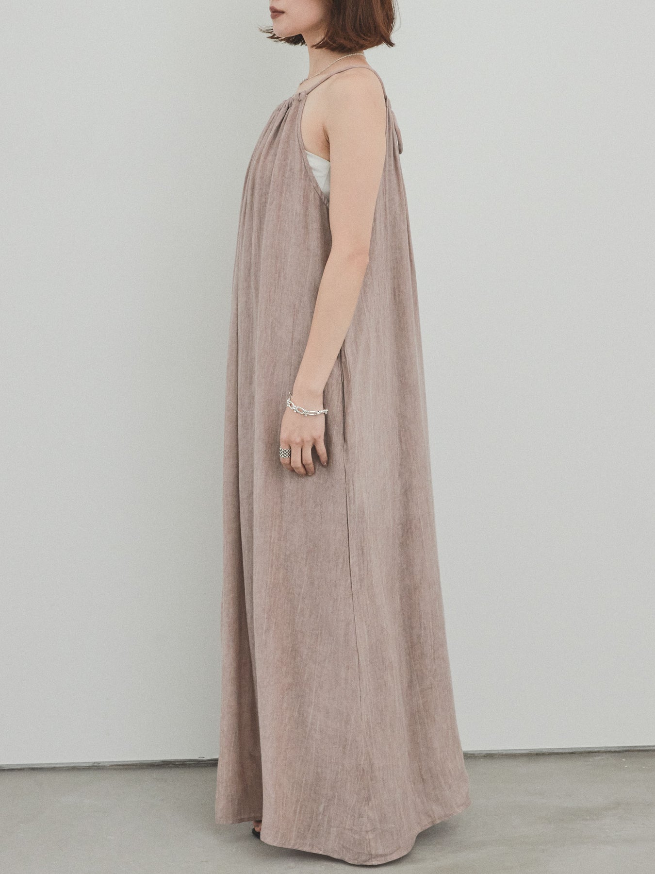 這款吊帶背心連身裙散發著輕鬆的氛圍,其醒目的不均勻染色和細膩的質感令人驚艷。頸部的寬大褶皺營造出優美的垂墜感,隨著每個動作都展現出女性的曼妙身姿。採用輕盈涼爽的布料製成,即使在盛夏也能保持舒適。它既可以單獨穿著,也可以與T卹或透視上衣疊穿。無論是度假場合還是日常穿著,它都堪稱點睛之筆。 ※除下裝、吊帶背心(內衣)以外的商品均不含內衣。