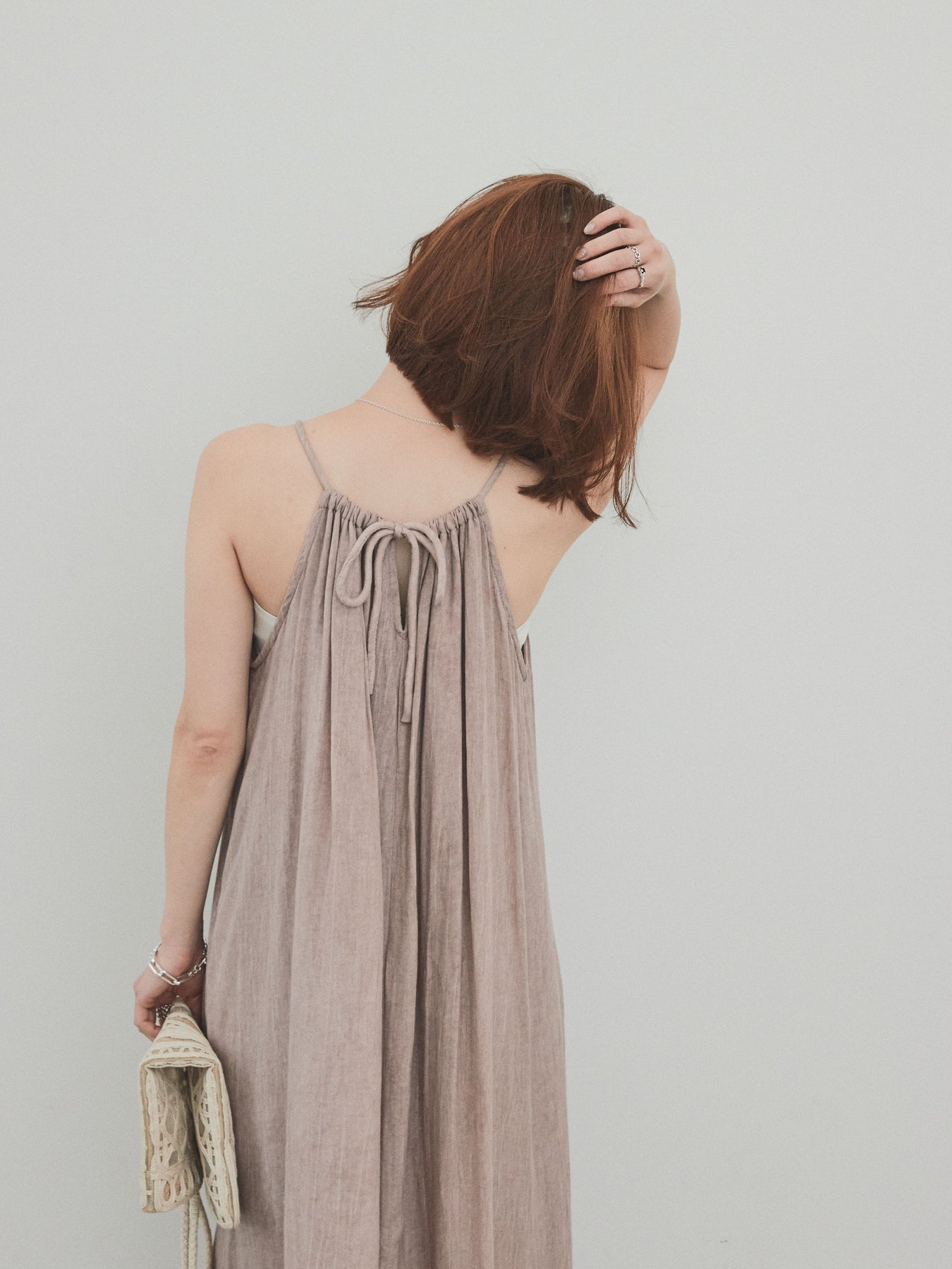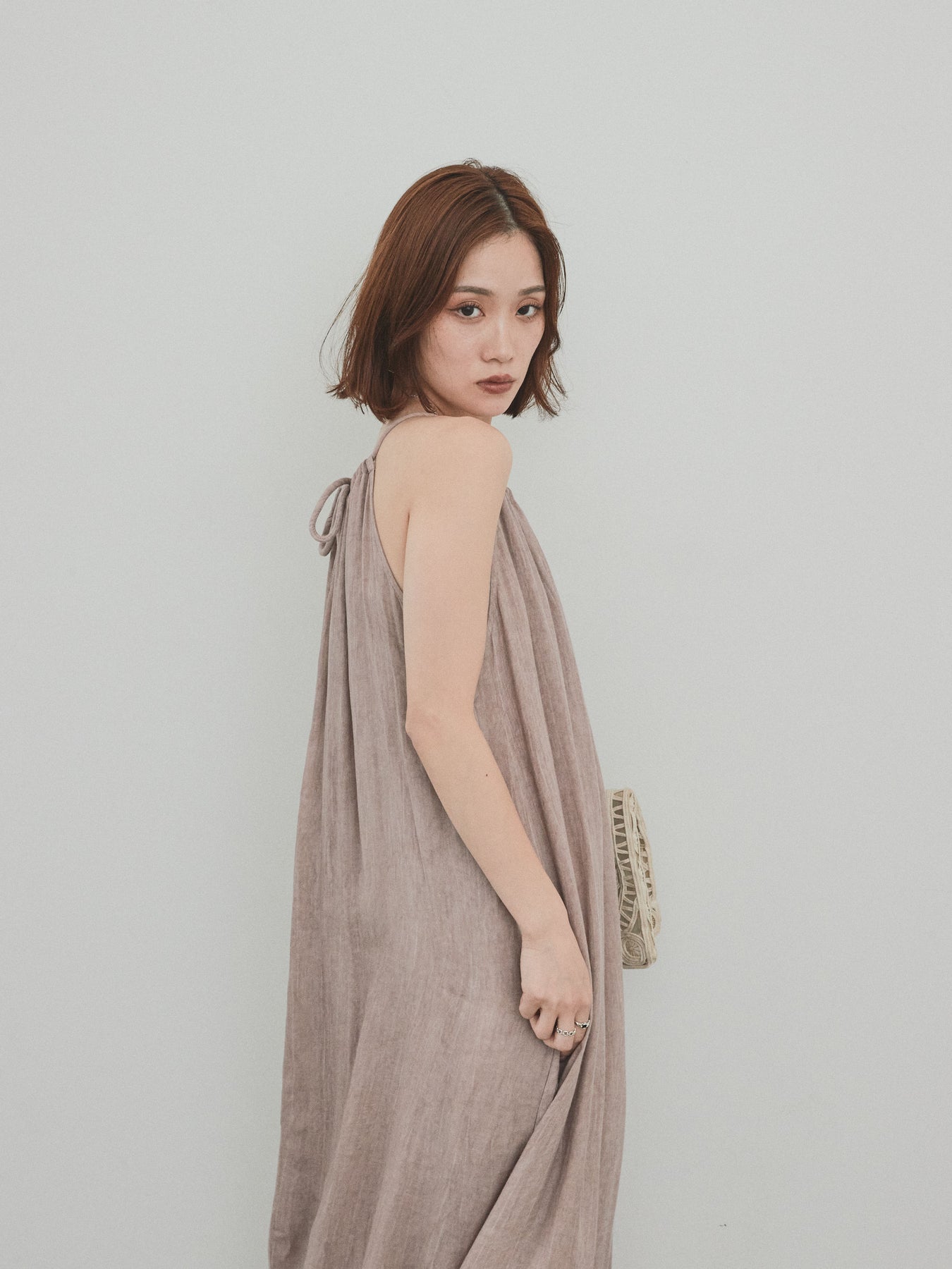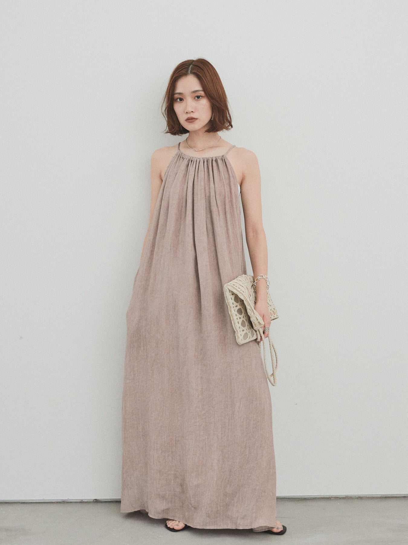 這款吊帶背心連身裙散發著輕鬆的氛圍,其醒目的不均勻染色和細膩的質感令人驚艷。頸部的寬大褶皺營造出優美的垂墜感,隨著每個動作都展現出女性的曼妙身姿。採用輕盈涼爽的布料製成,即使在盛夏也能保持舒適。它既可以單獨穿著,也可以與T卹或透視上衣疊穿。無論是度假場合還是日常穿著,它都堪稱點睛之筆。 ※除下裝、吊帶背心(內衣)以外的商品均不含內衣。