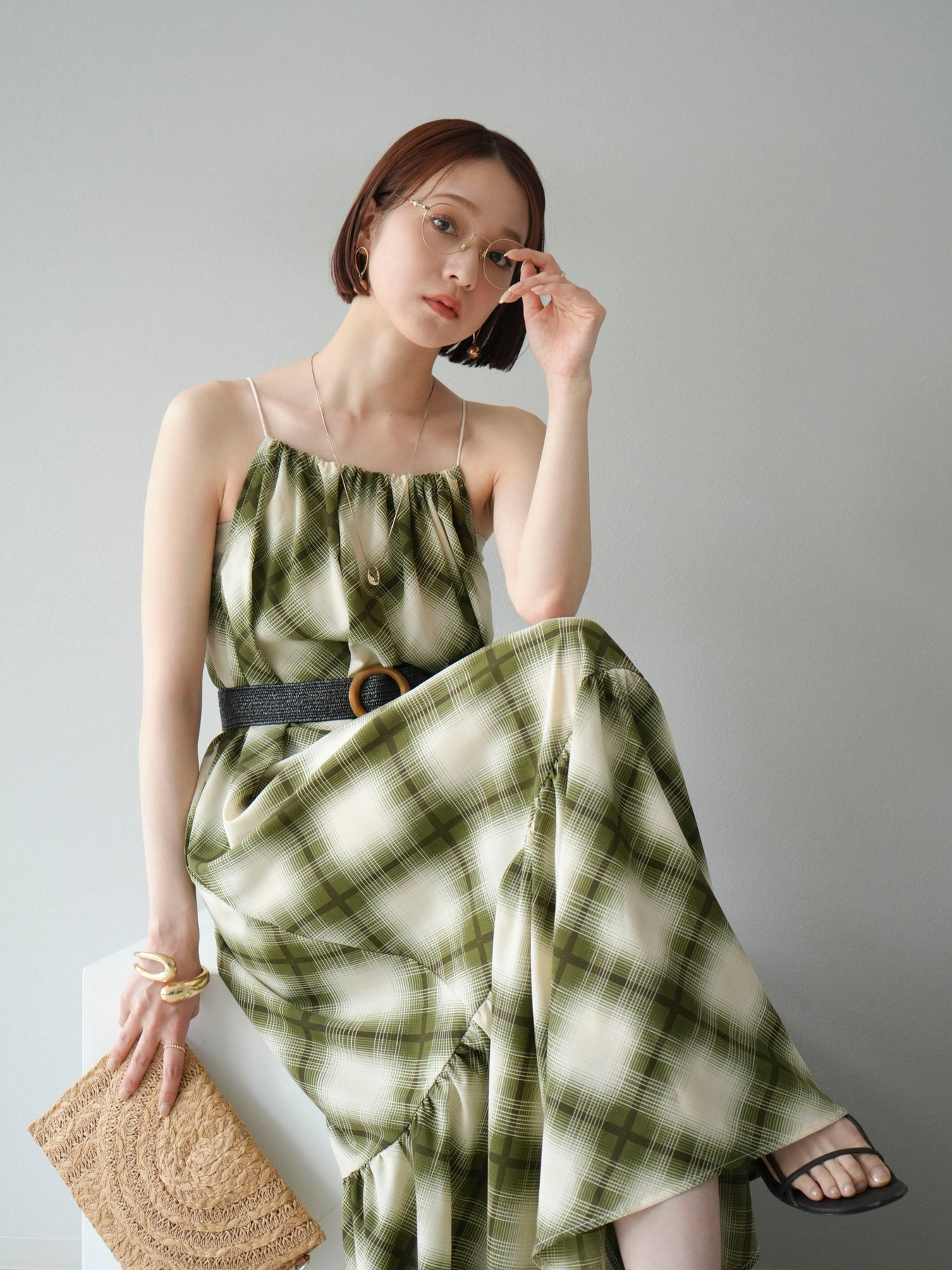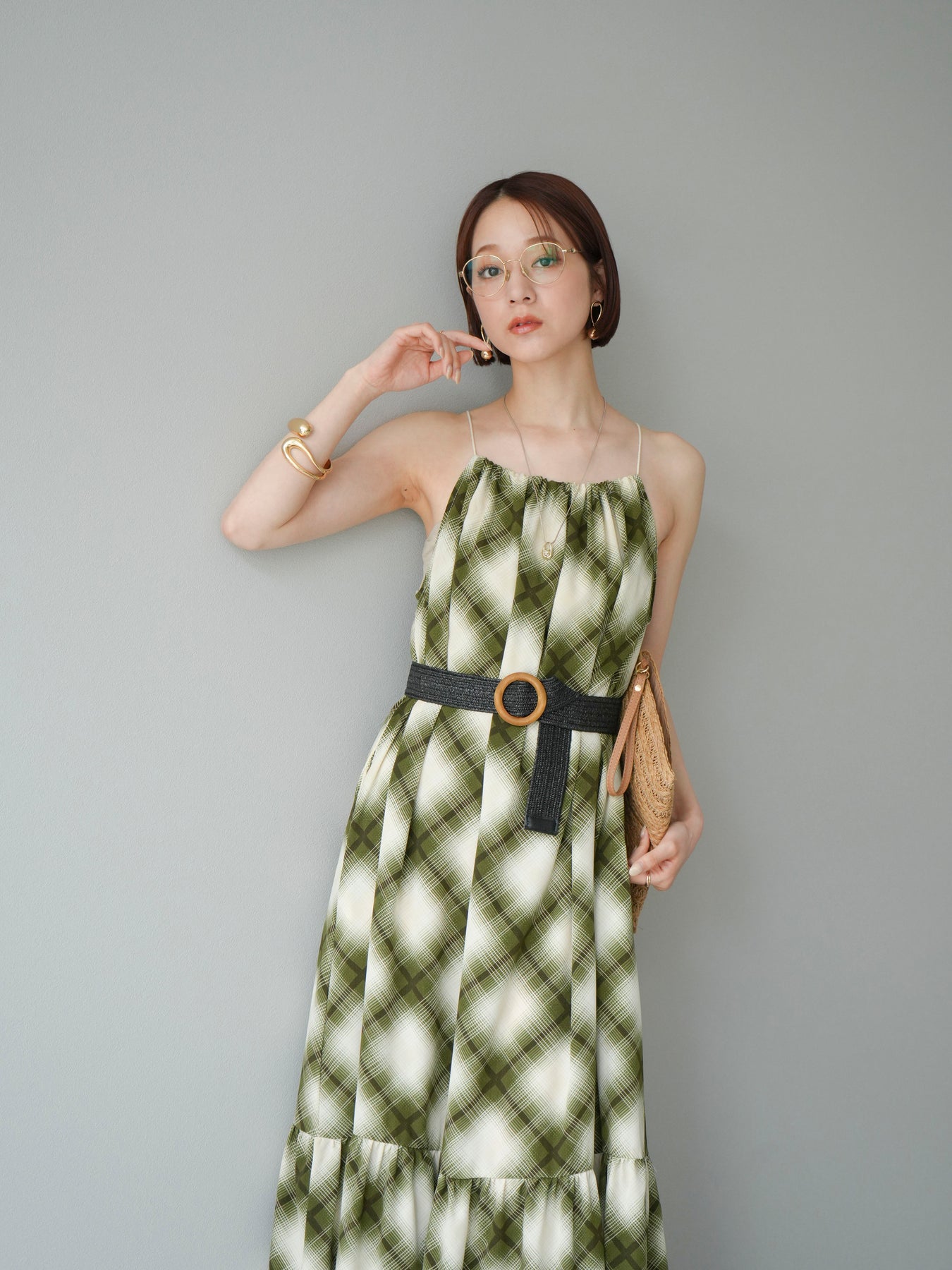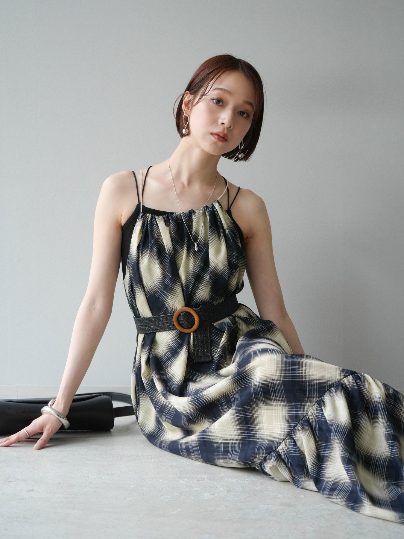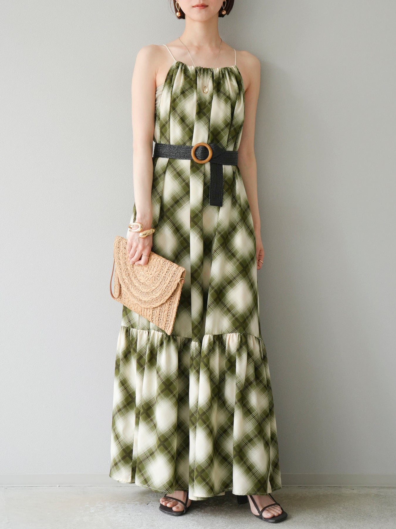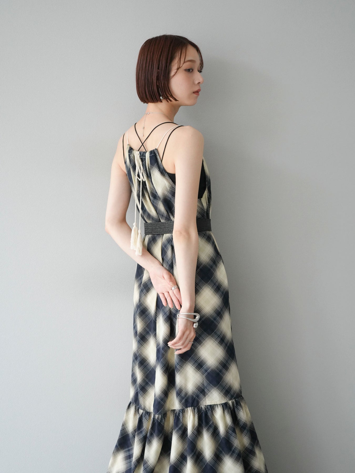 ◆ 【預購】繫腰帶格紋無袖連身裙