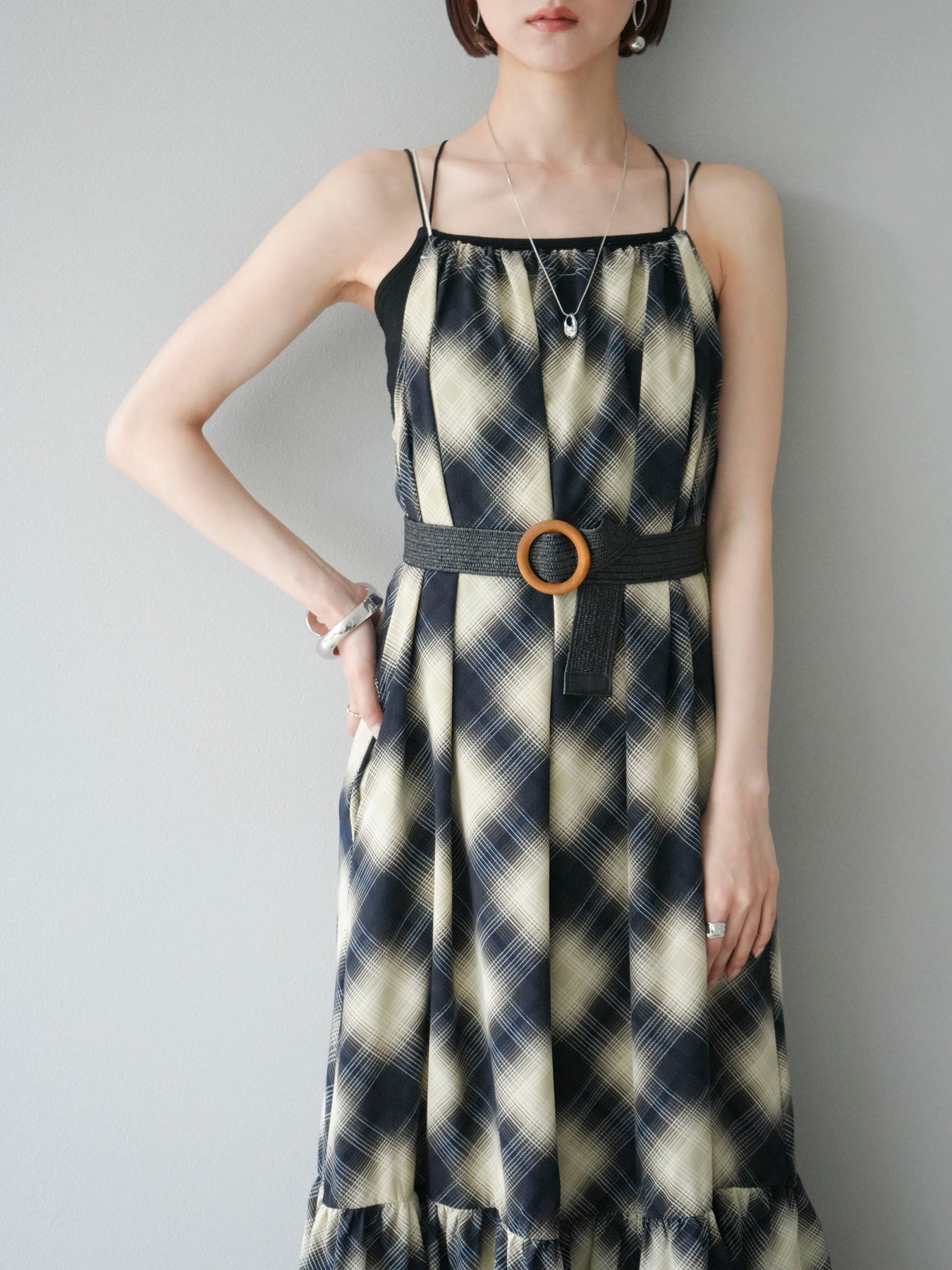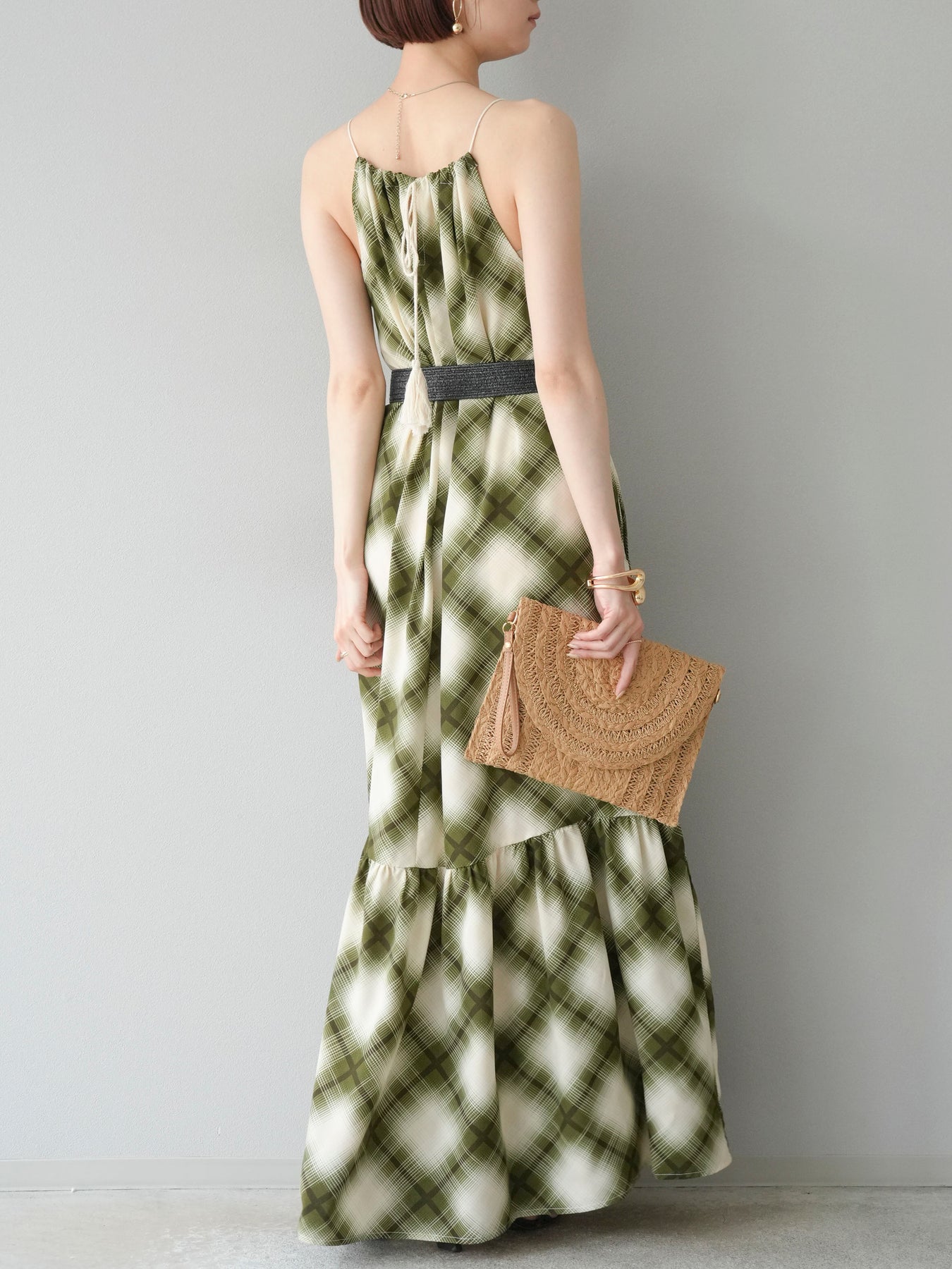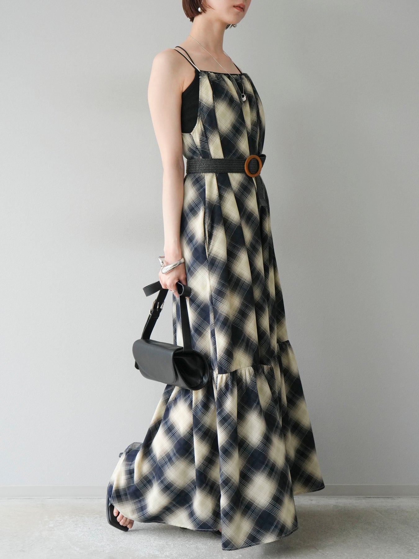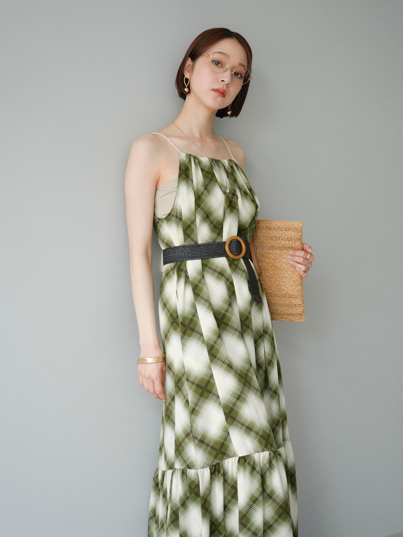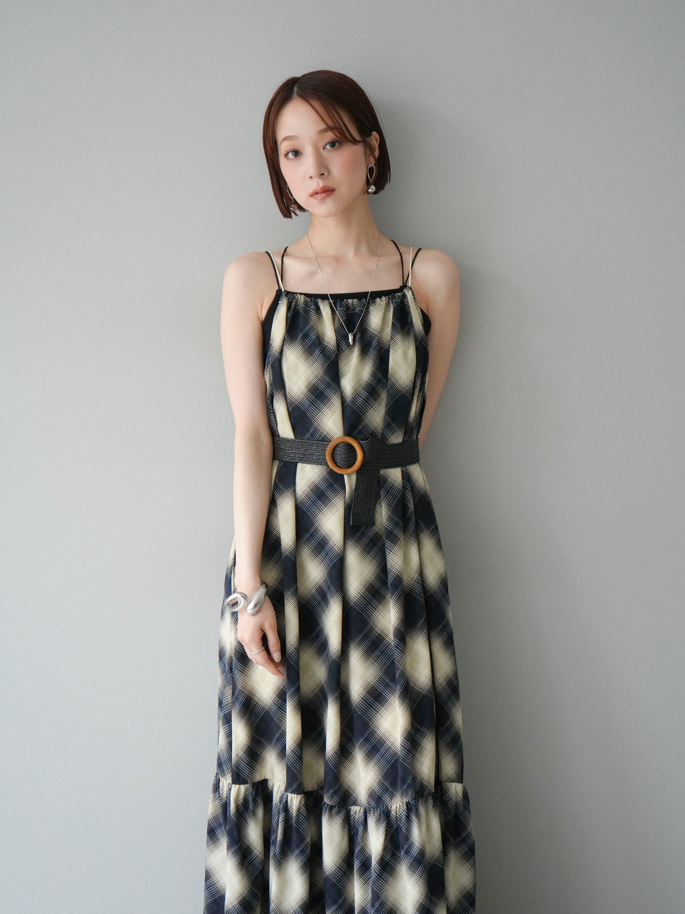 ◆ 【預購】繫腰帶格紋無袖連身裙