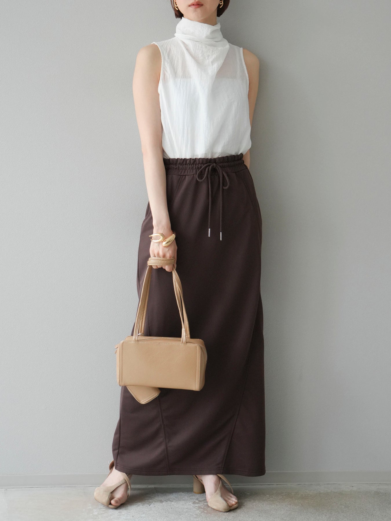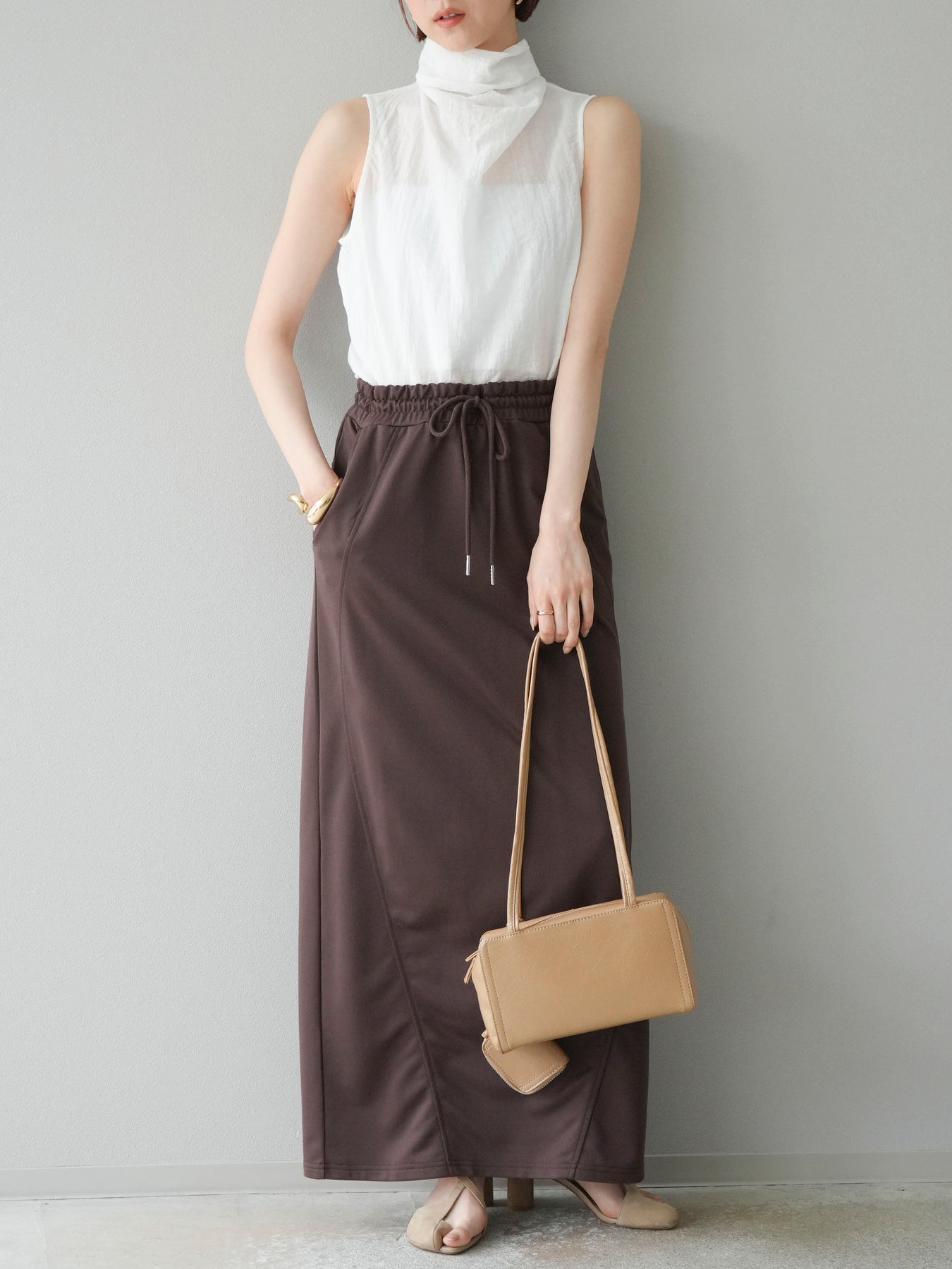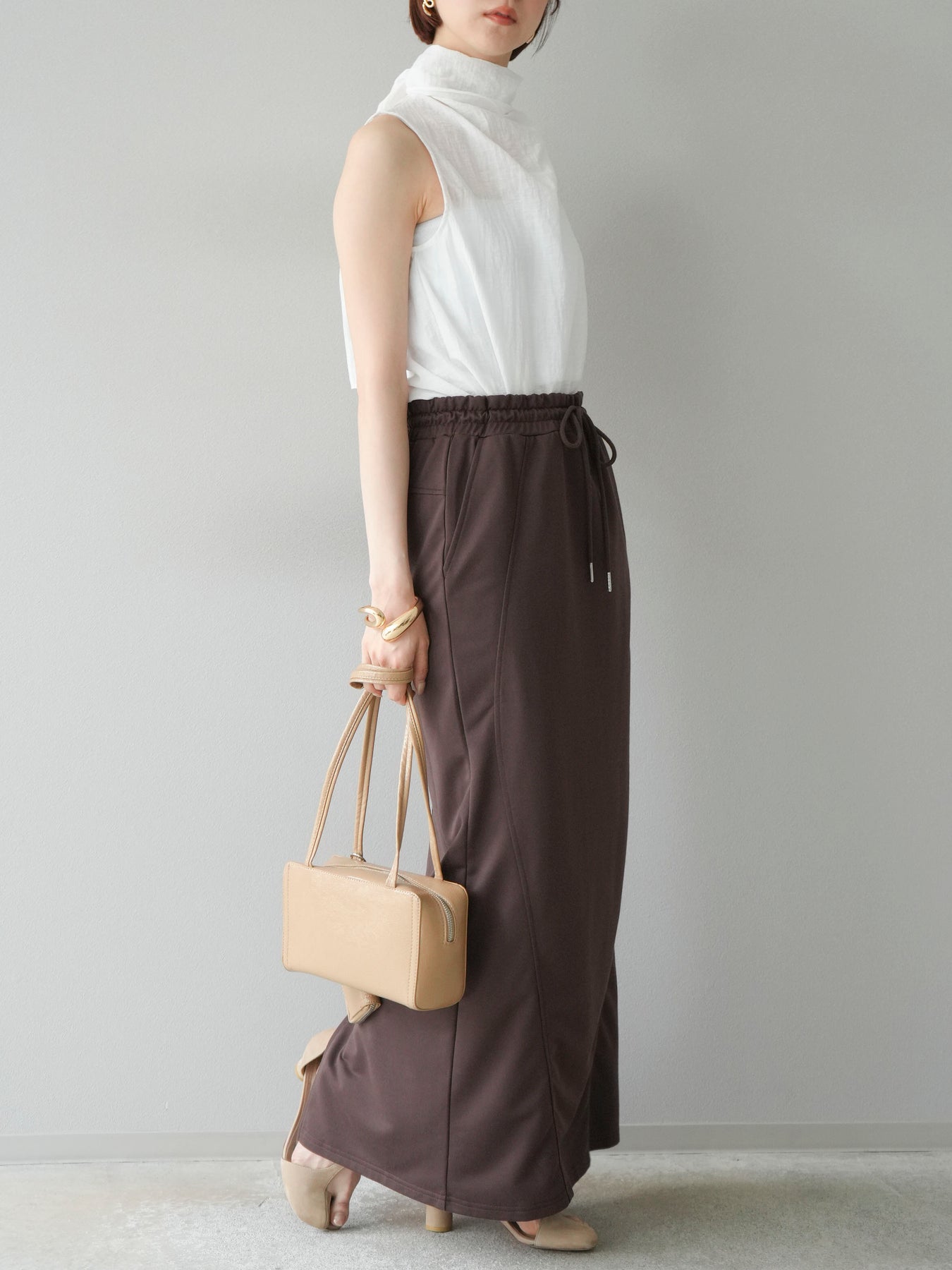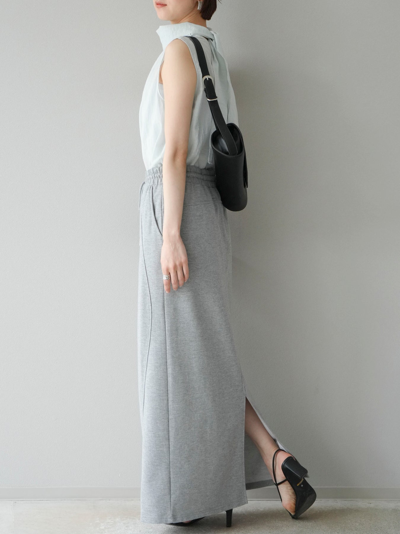 厚度適中、質地柔軟的長款運動裙。雖然採用休閒運動面料,但垂直的轉接線條提升了整體風格,打造出俐落的I字輪廓。腰部採用全鬆緊帶和抽繩設計,穿著舒適又休閒。您可以搭配運動鞋休閒穿著,也可以搭配高跟鞋和襯衫,打造休閒裝扮。這是一款百搭的日常下裝,一年四季皆宜。 ※除下裝、吊帶背心(內衣)以外的商品均不含內衣。