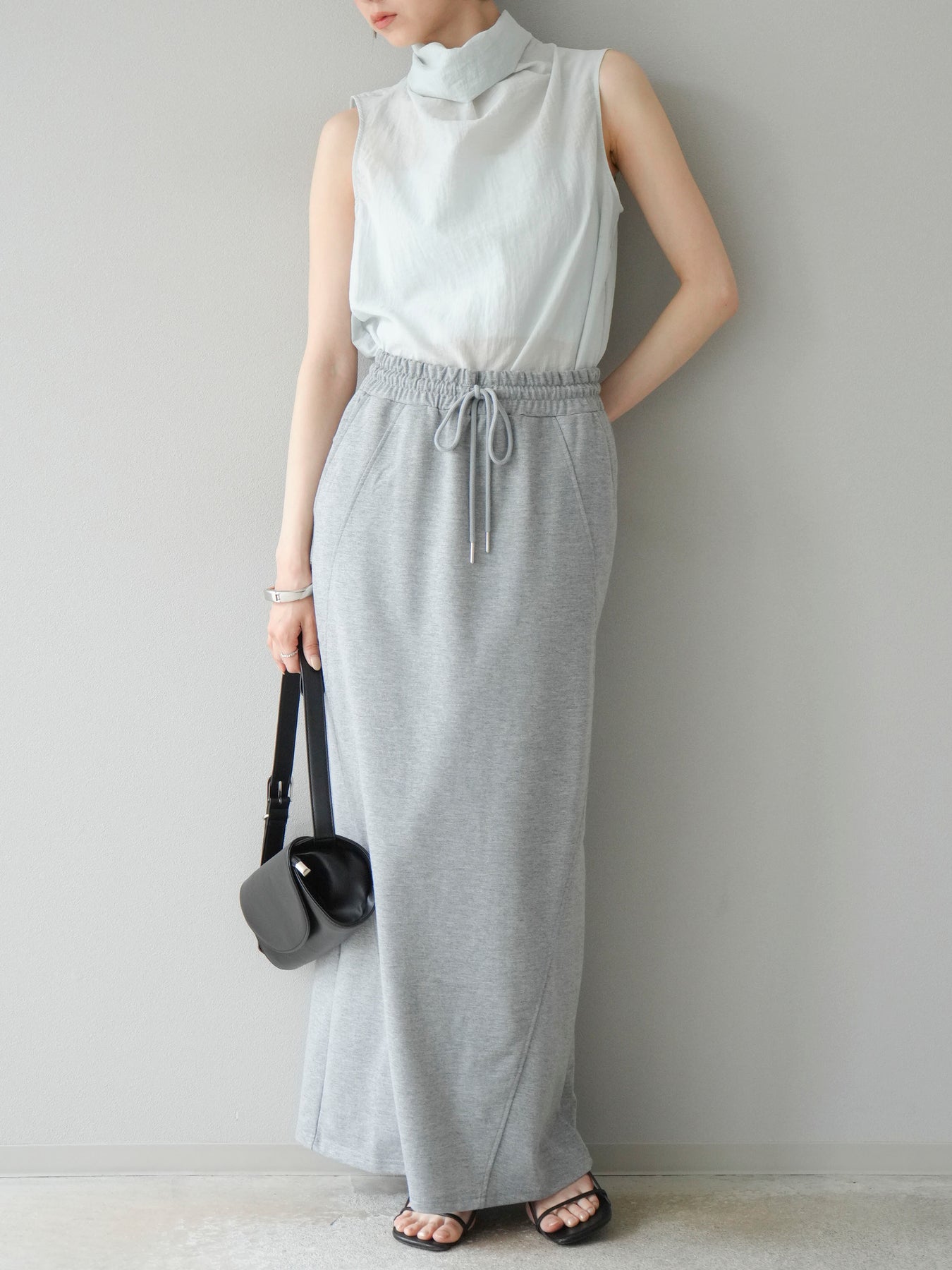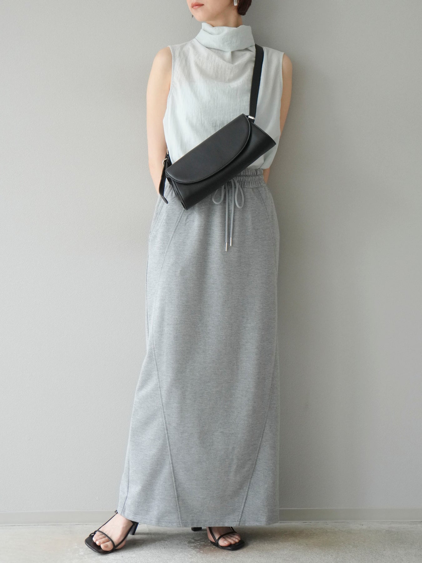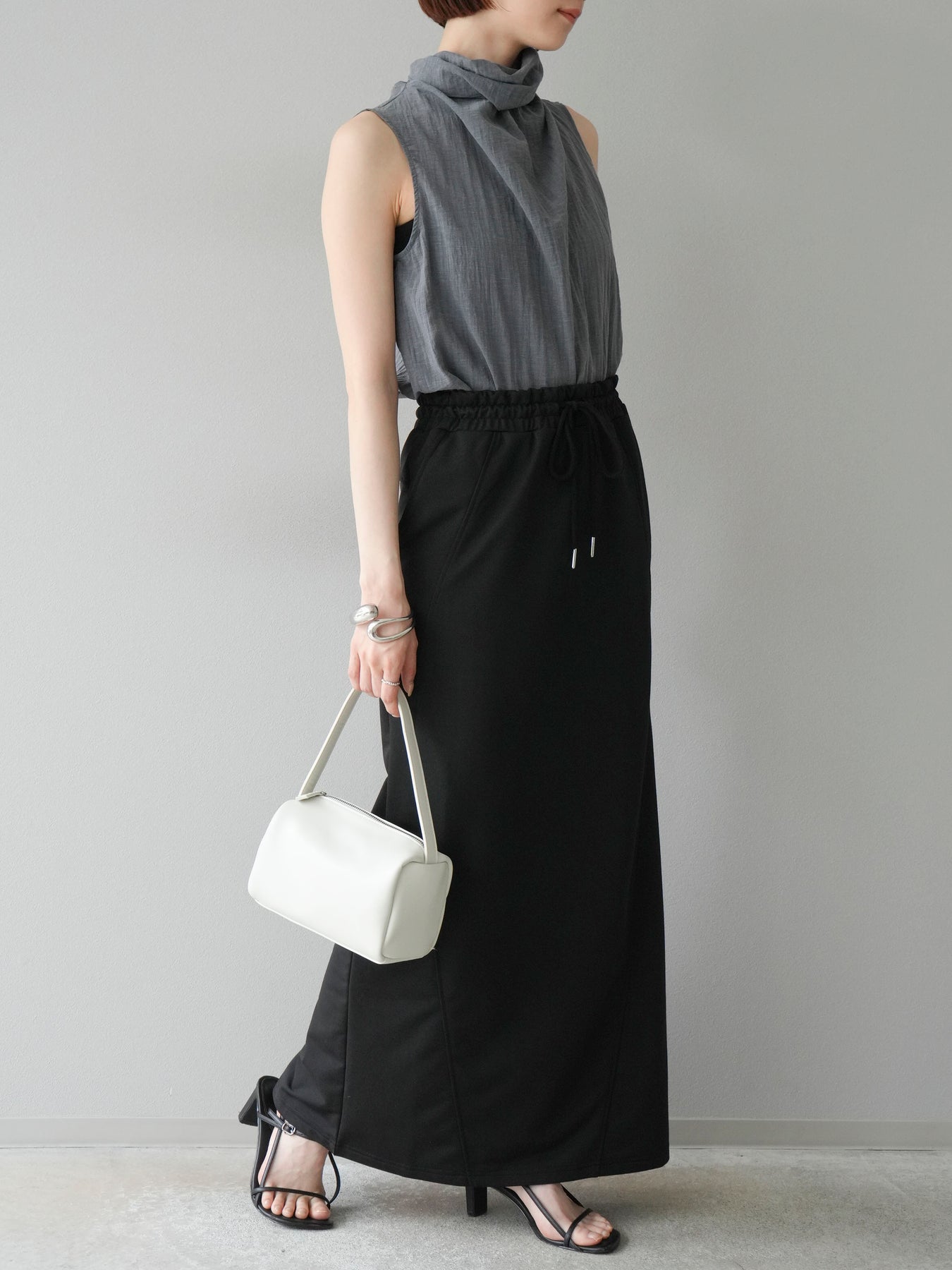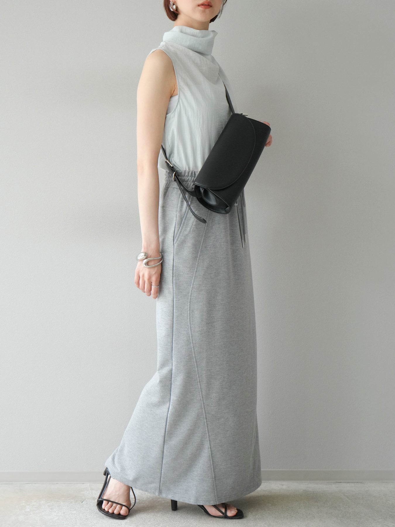 厚度適中、質地柔軟的長款運動裙。雖然採用休閒運動面料,但垂直的轉接線條提升了整體風格,打造出俐落的I字輪廓。腰部採用全鬆緊帶和抽繩設計,穿著舒適又休閒。您可以搭配運動鞋休閒穿著,也可以搭配高跟鞋和襯衫,打造休閒裝扮。這是一款百搭的日常下裝,一年四季皆宜。 ※除下裝、吊帶背心(內衣)以外的商品均不含內衣。