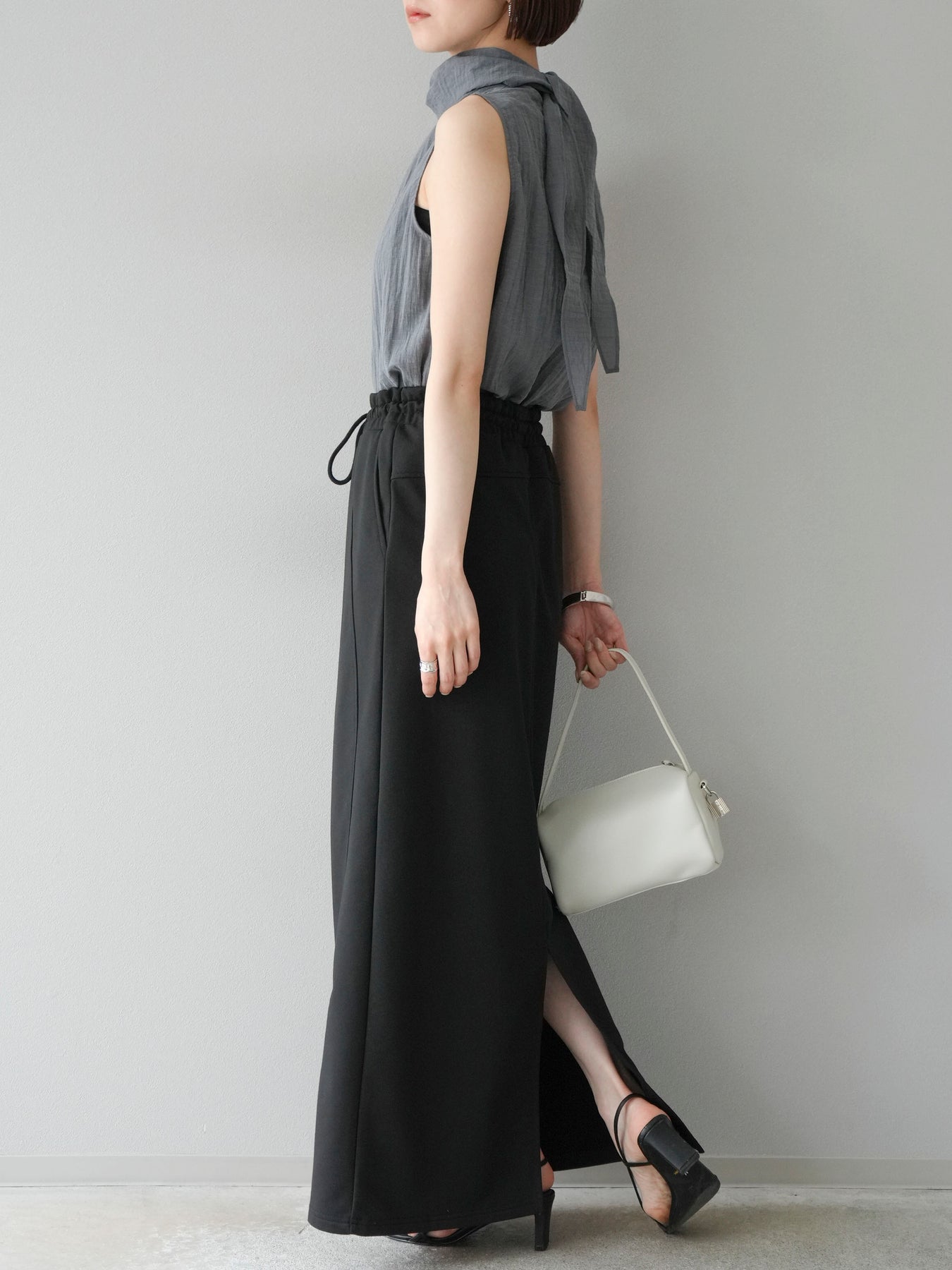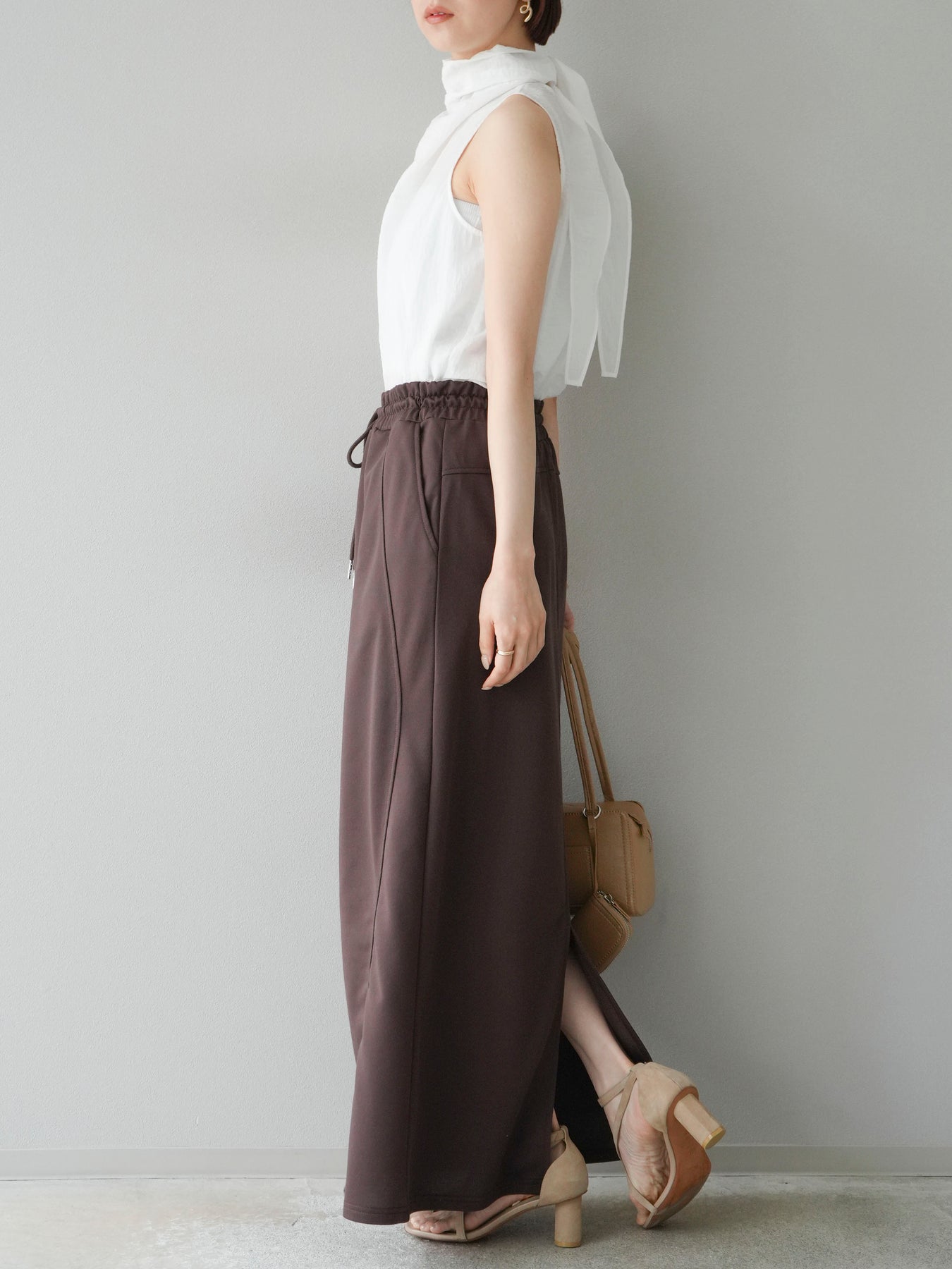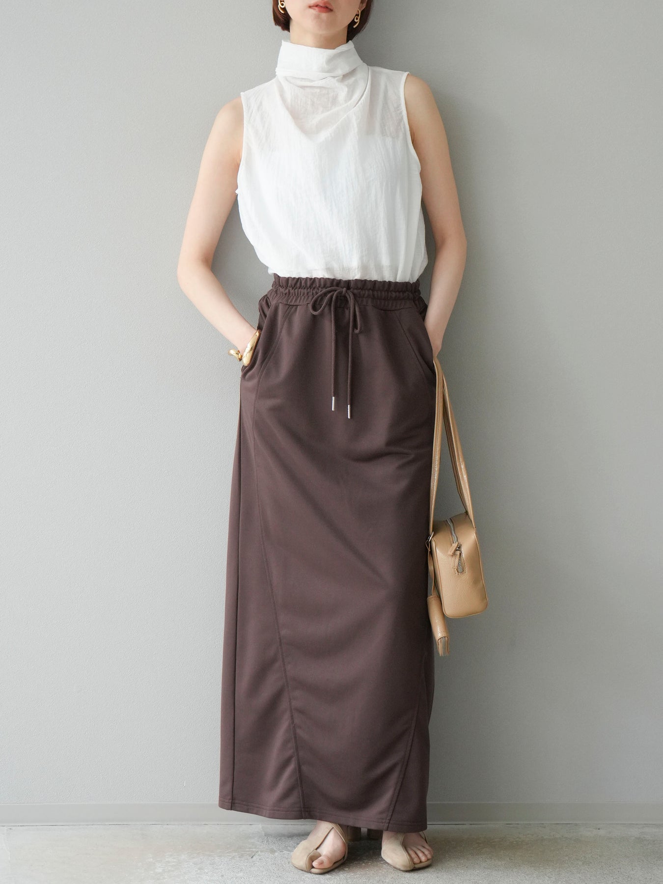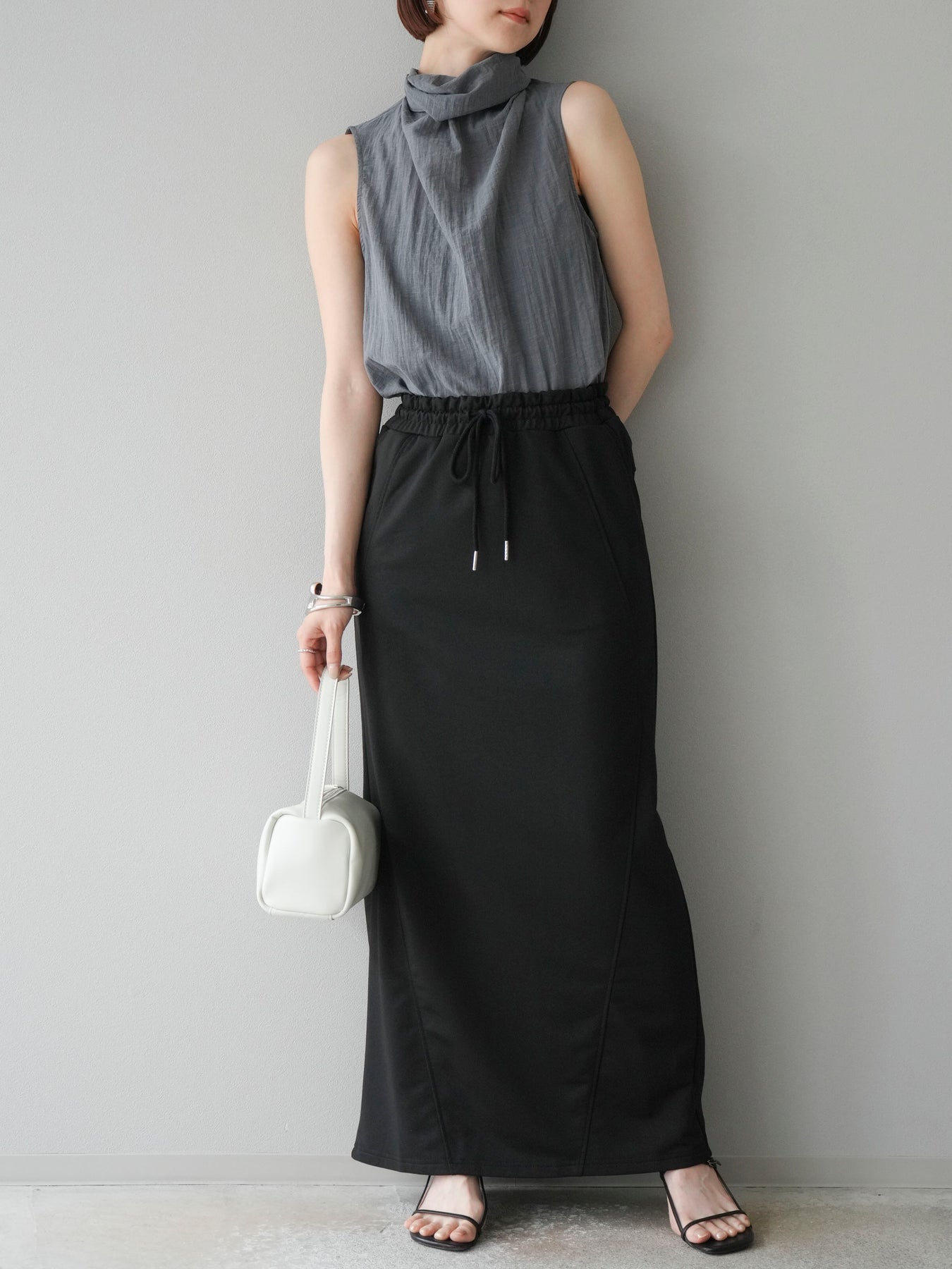 厚度適中、質地柔軟的長款運動裙。雖然採用休閒運動面料,但垂直的轉接線條提升了整體風格,打造出俐落的I字輪廓。腰部採用全鬆緊帶和抽繩設計,穿著舒適又休閒。您可以搭配運動鞋休閒穿著,也可以搭配高跟鞋和襯衫,打造休閒裝扮。這是一款百搭的日常下裝,一年四季皆宜。 ※除下裝、吊帶背心(內衣)以外的商品均不含內衣。