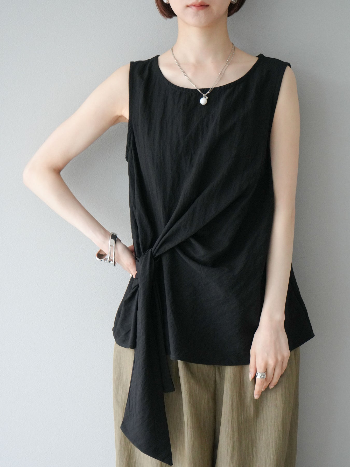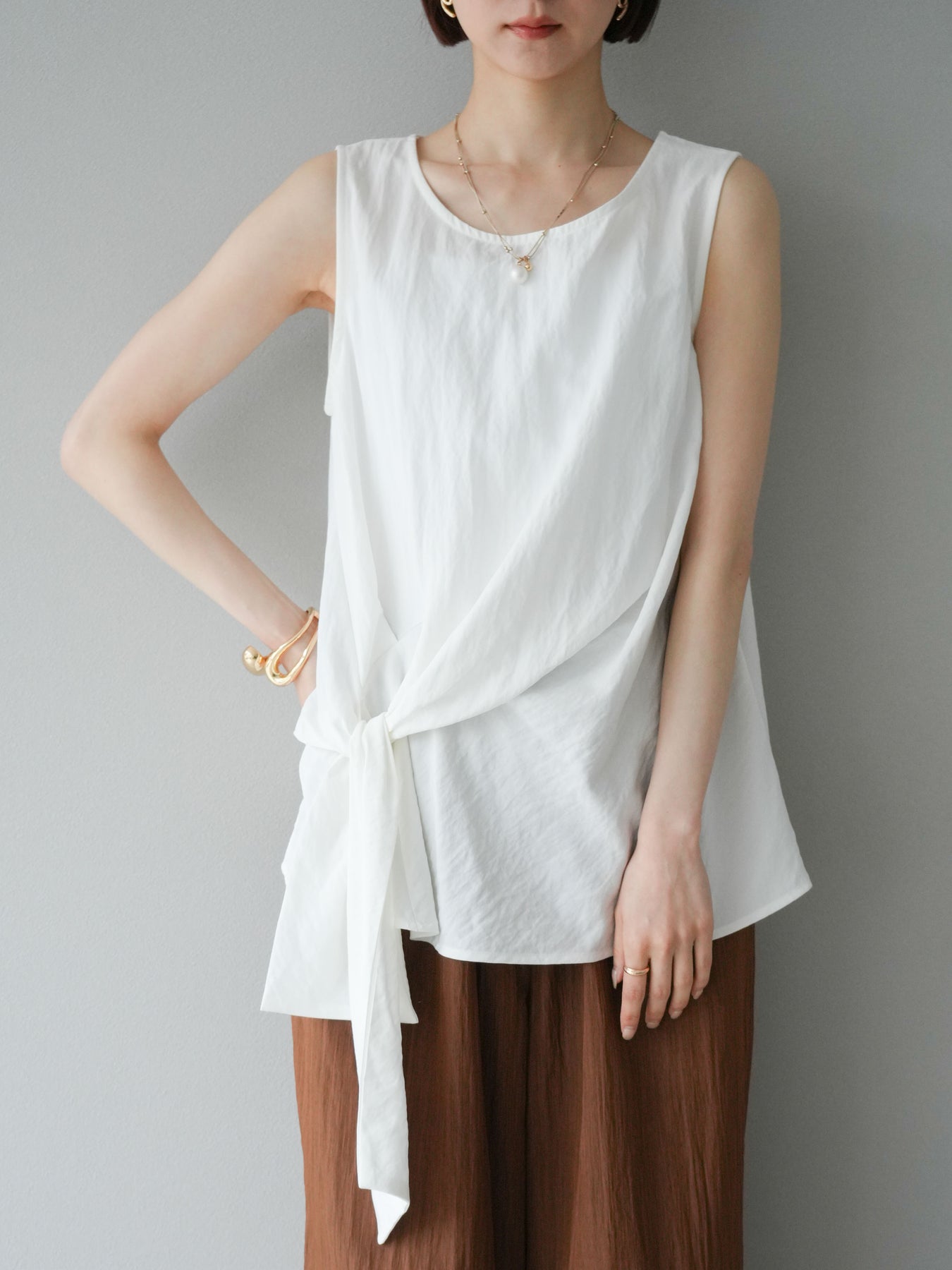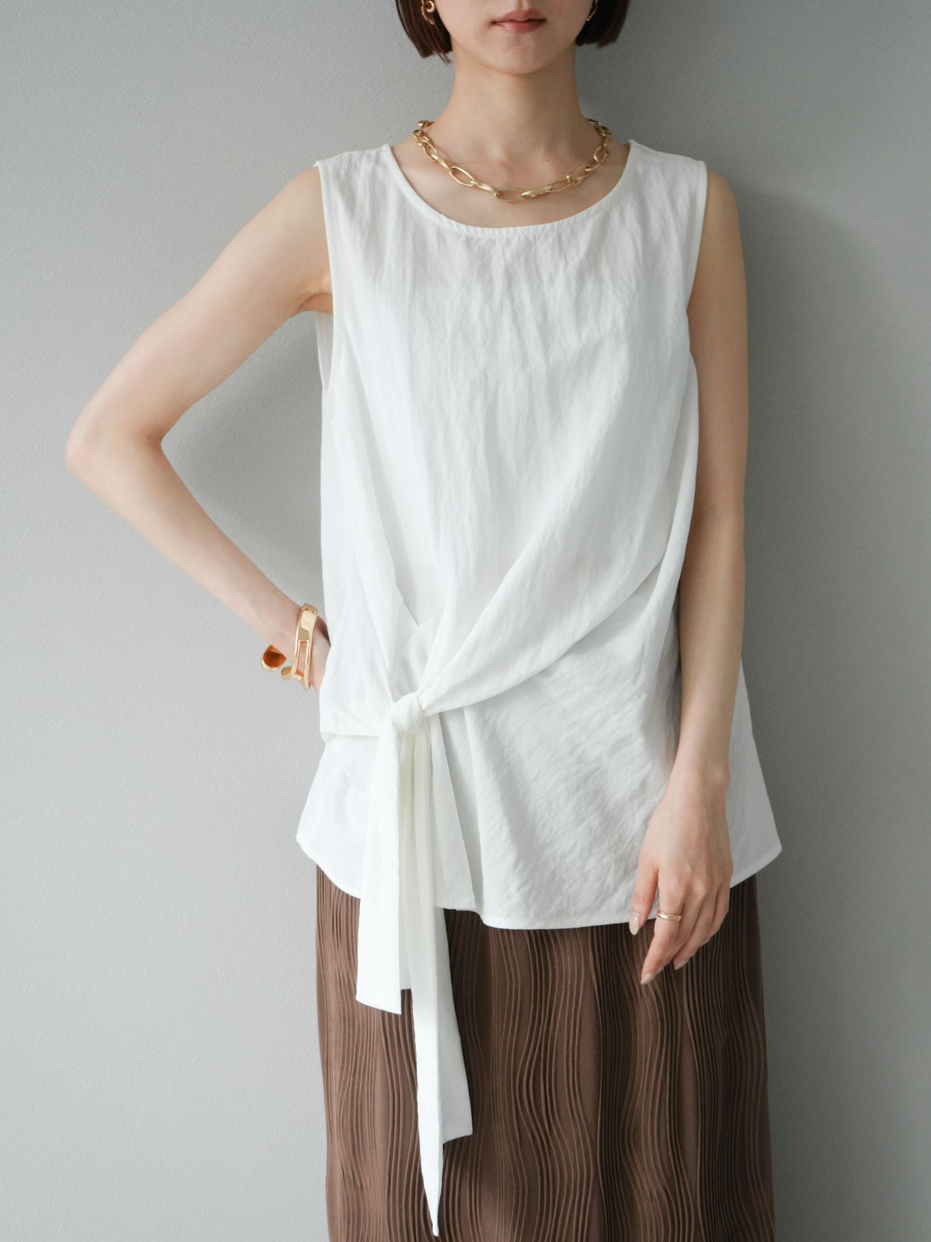 簡約卻不失扭紋的無袖上衣,前方採用裹身設計。前部裹身設計格外醒目,自然收緊腰線,同時打造立體輪廓。輕盈的布料觸感柔滑,穿著舒適。精緻的無袖上衣略微覆蓋肩部,兼具優雅與休閒感。無論搭配寬鬆下裝或緊身下裝,都能輕鬆駕馭,是一款百搭單品。 *除下裝和吊帶背心(內衣)外,所有商品均不包含內衣。