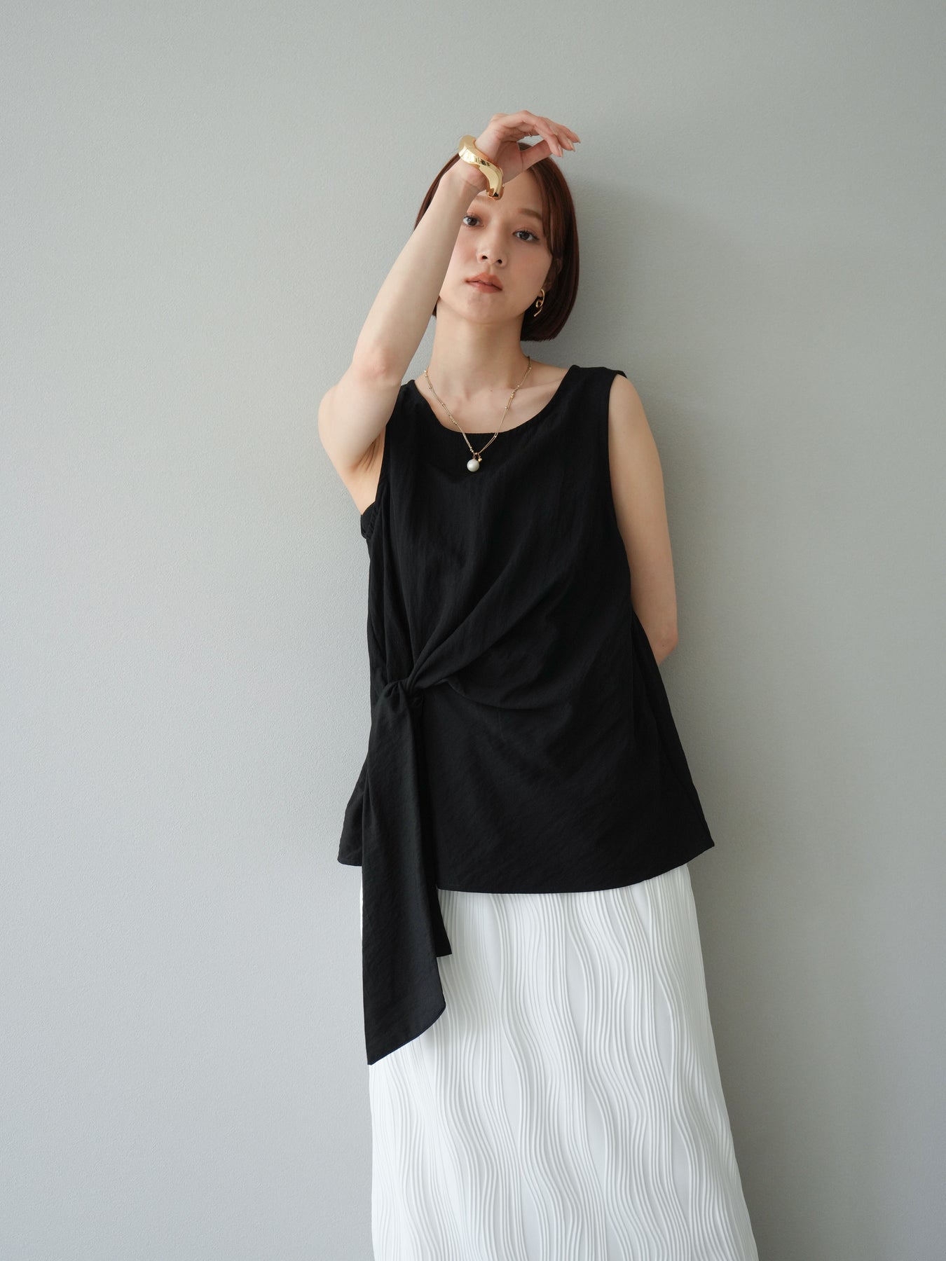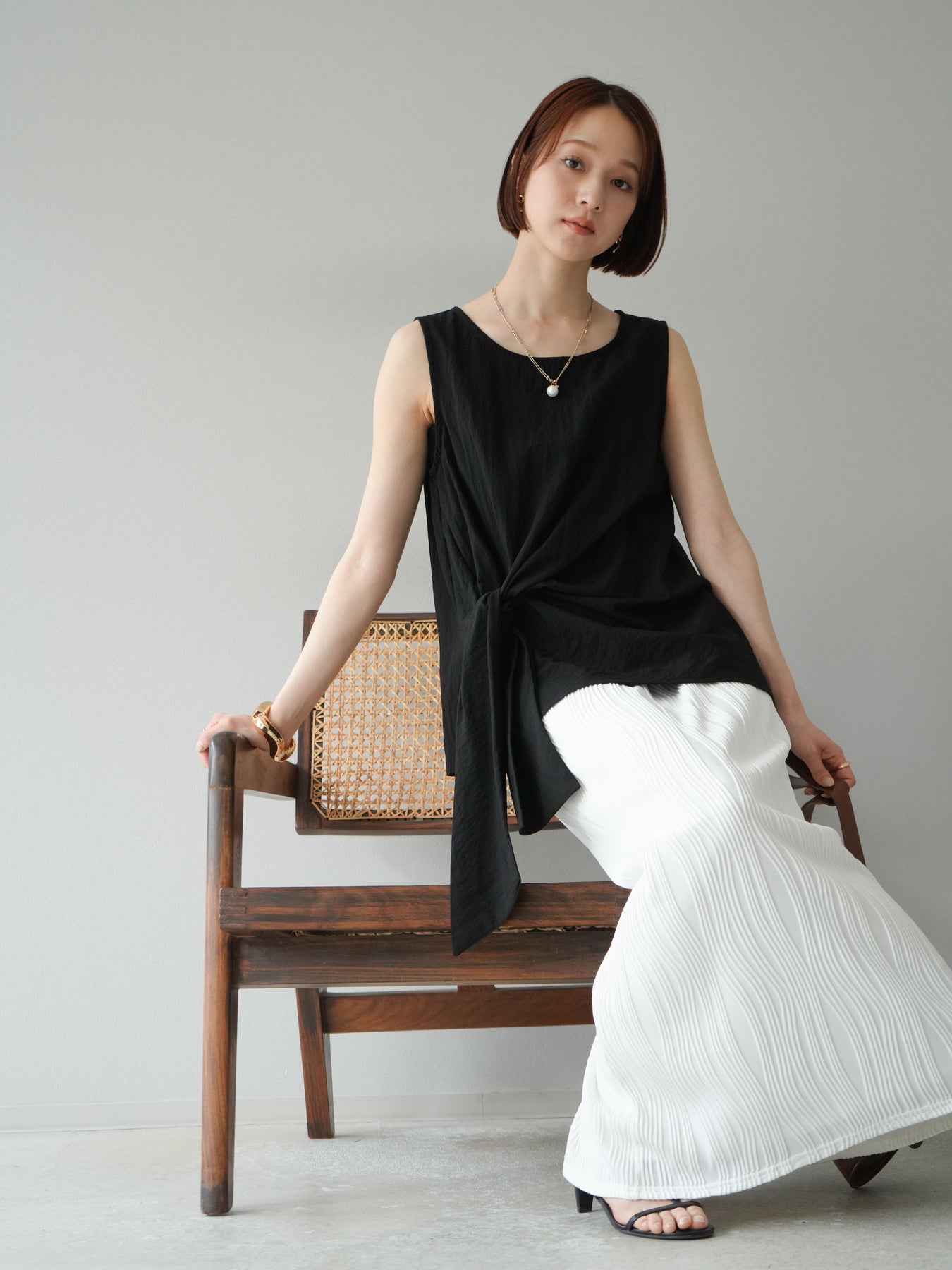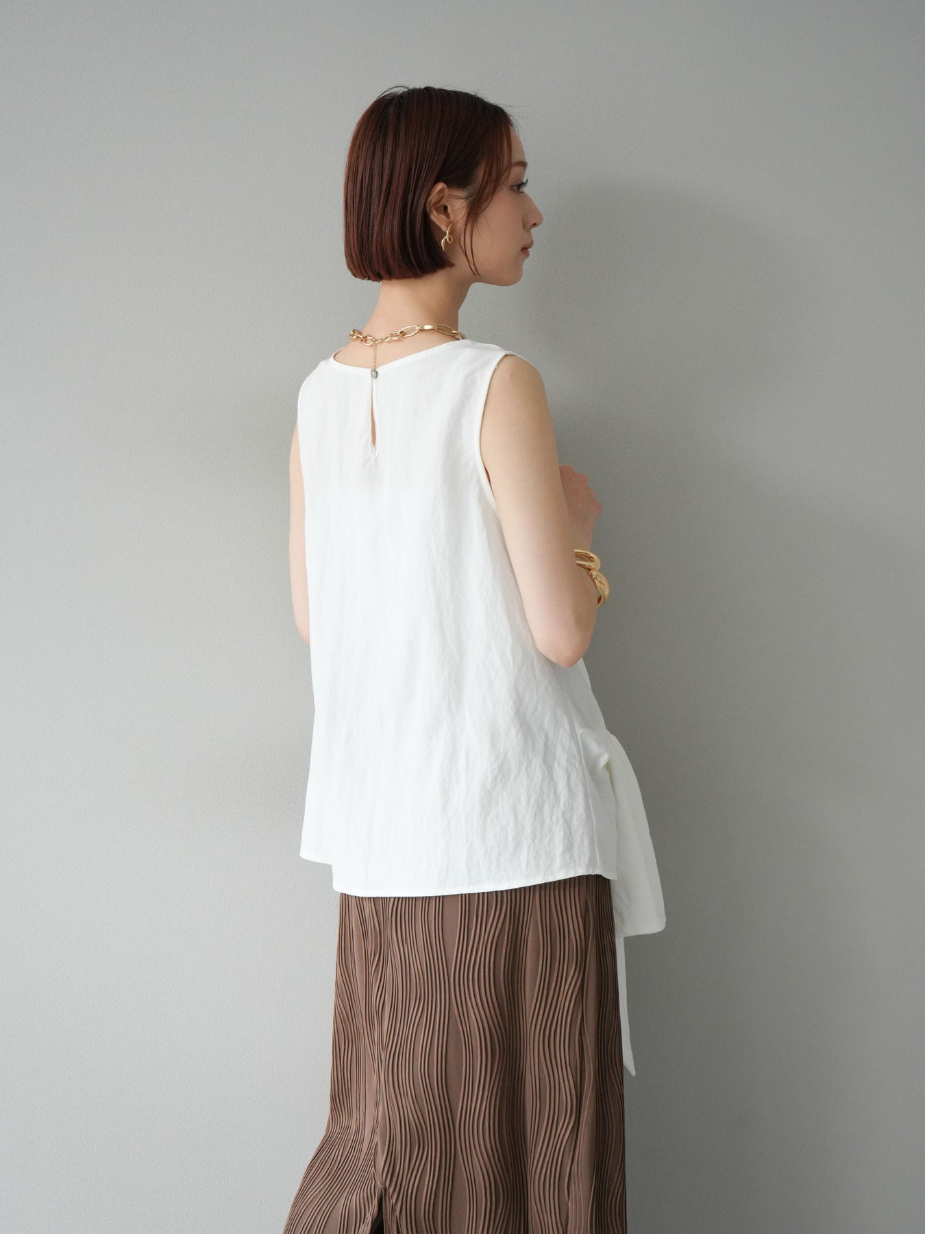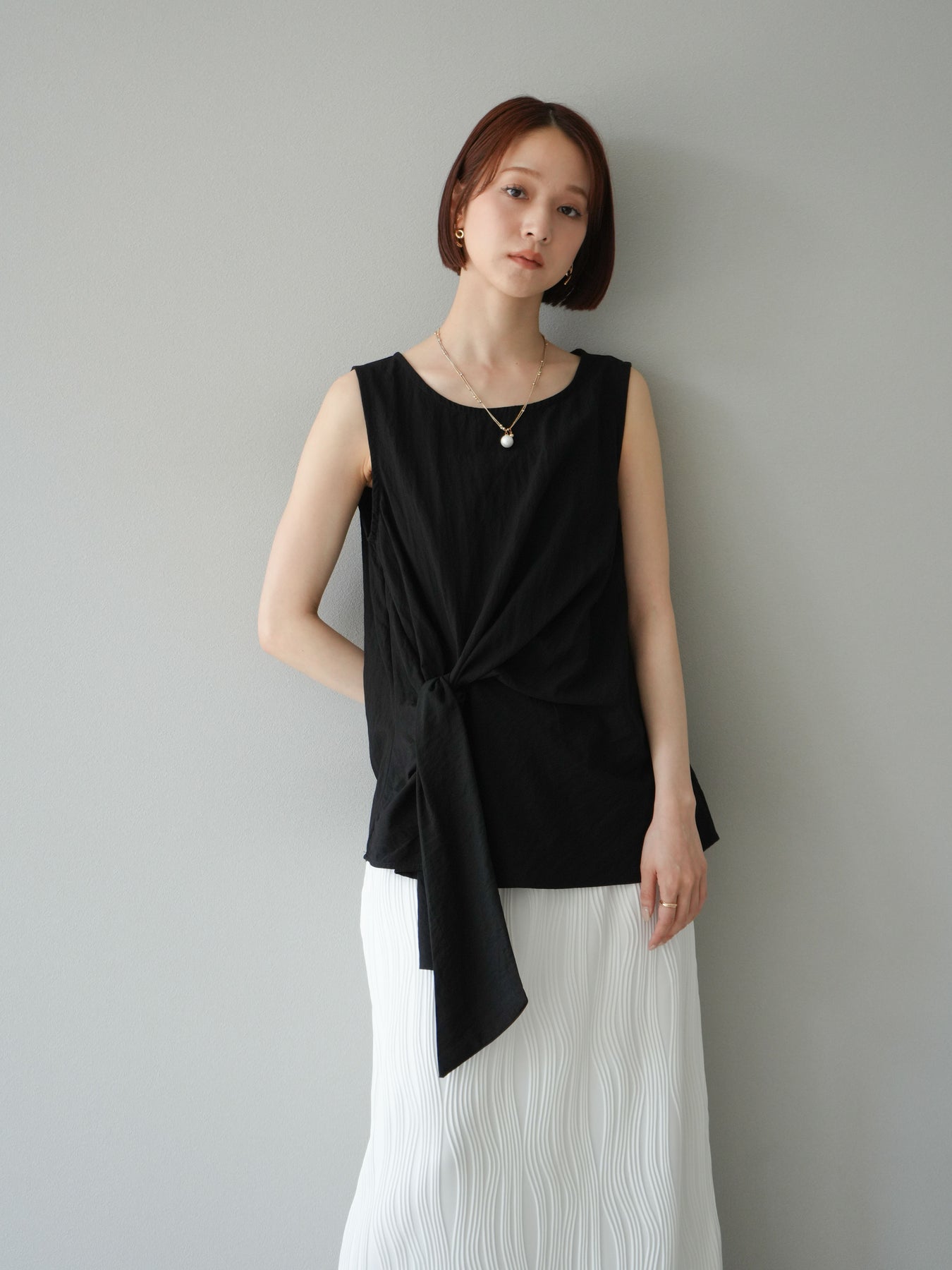 簡約卻不失扭紋的無袖上衣,前襟採用裹身設計。前襟裹身設計格外醒目,自然收緊腰線,打造立體輪廓。輕盈布料觸感柔滑,穿著舒適。精緻的無袖上衣略微遮蓋肩部,兼具優雅與休閒的氣質。無論搭配寬鬆下裝或緊身下裝,都能輕鬆駕馭,是一款百搭單品。 ※除下裝、吊帶背心(內衣)以外的商品均不含內衣。