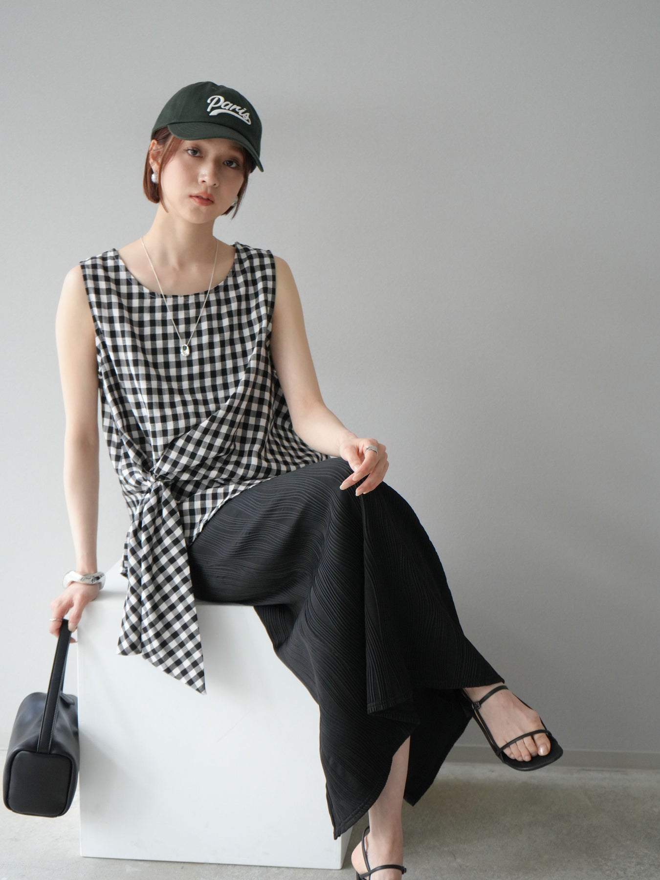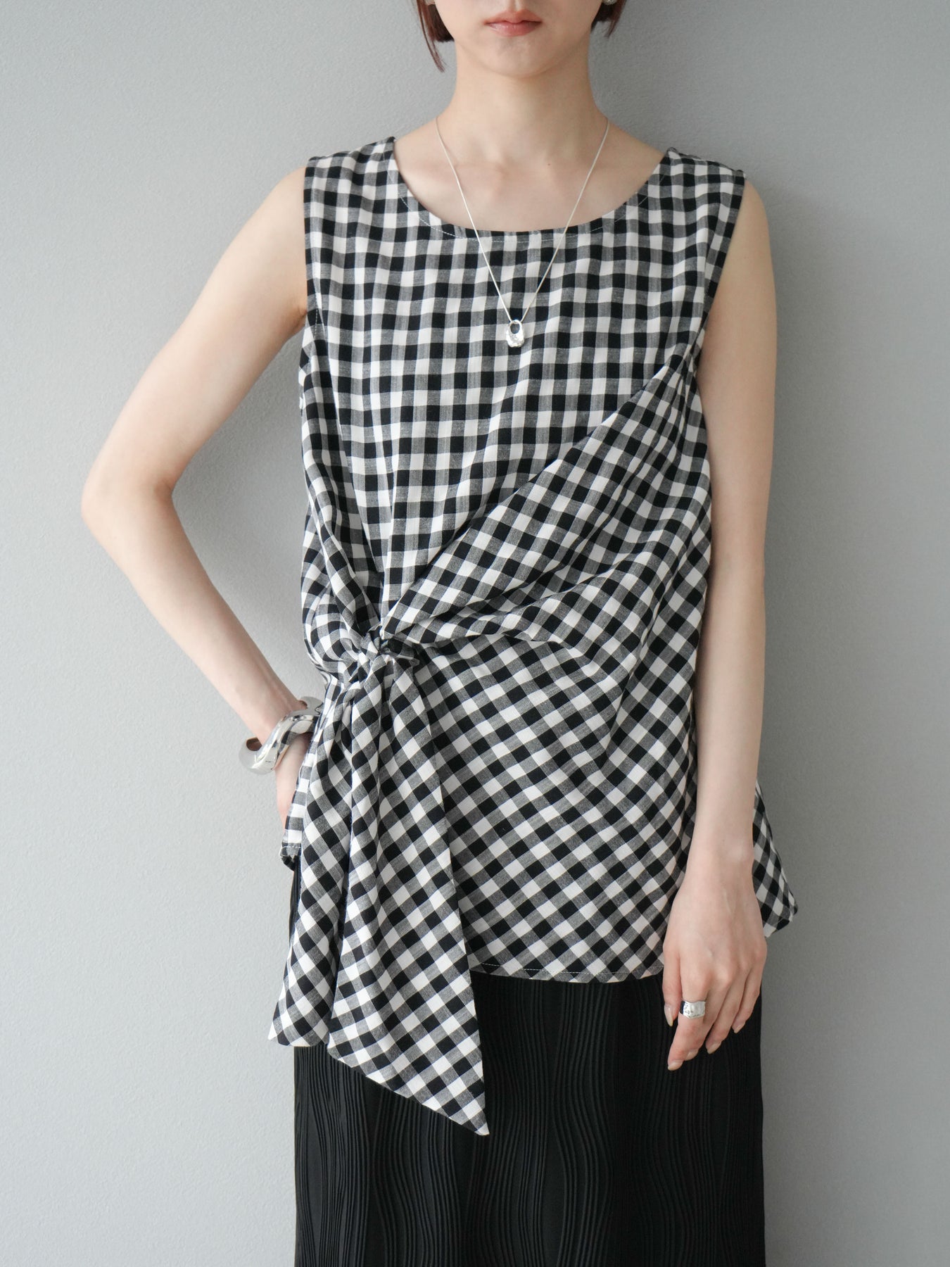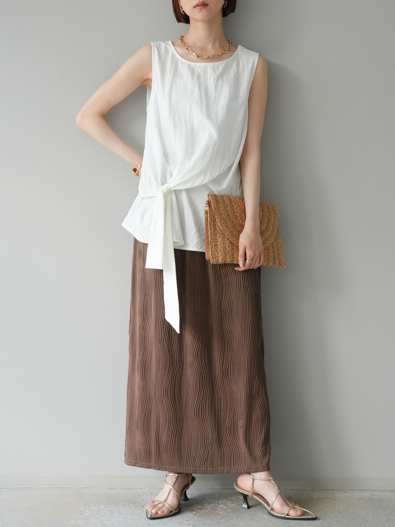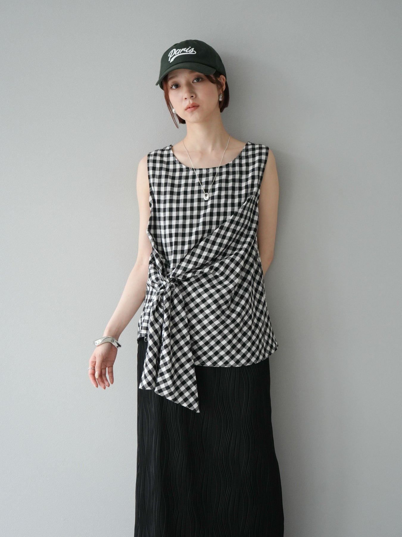 簡約卻不失扭紋的無袖上衣,前襟採用裹身設計。前襟裹身設計格外醒目,自然收緊腰線,打造立體輪廓。輕盈布料觸感柔滑,穿著舒適。精緻的無袖上衣略微遮蓋肩部,兼具優雅與休閒的氣質。無論搭配寬鬆下裝或緊身下裝,都能輕鬆駕馭,是一款百搭單品。 ※除下裝、吊帶背心(內衣)以外的商品均不含內衣。