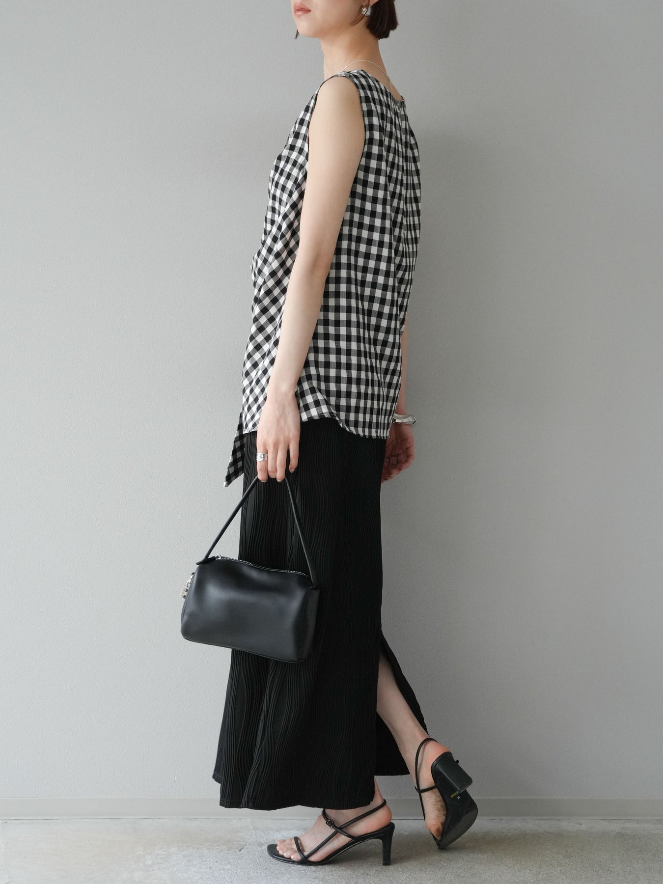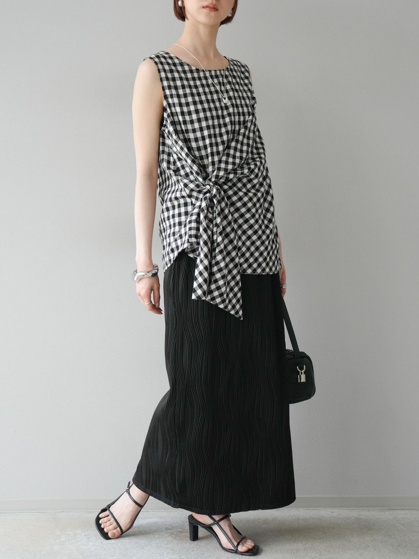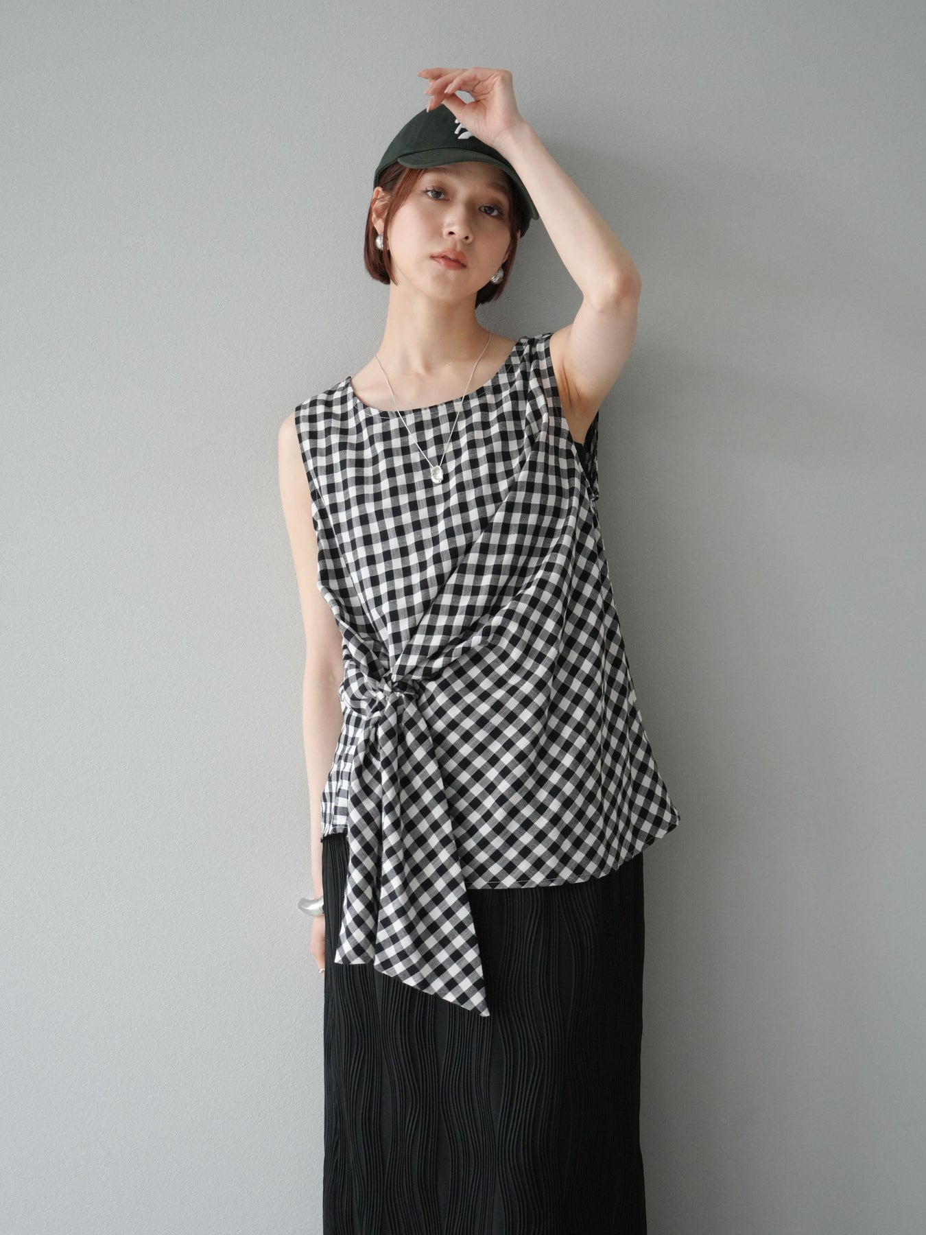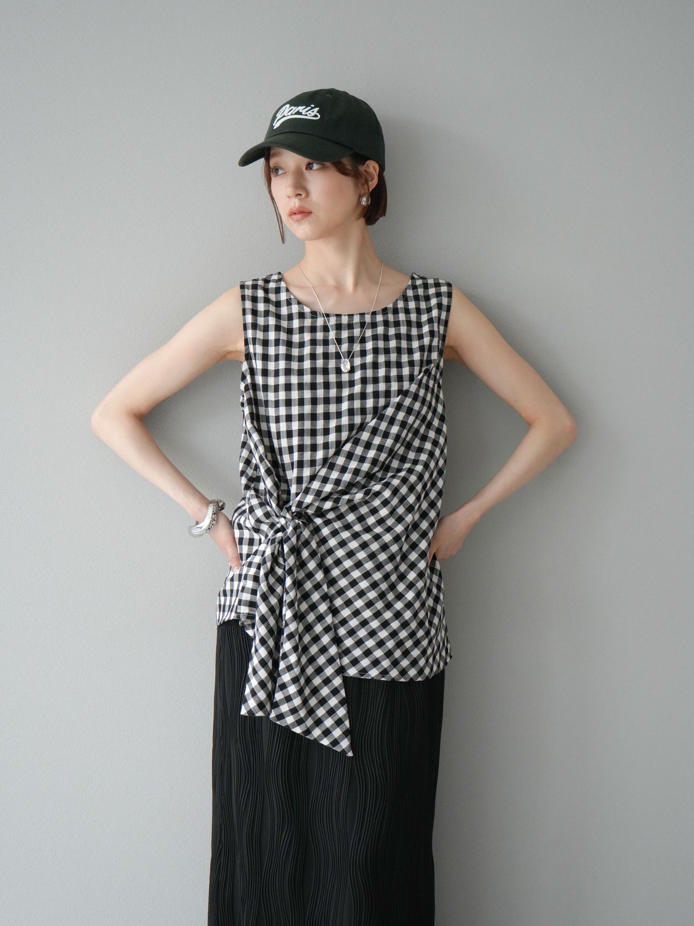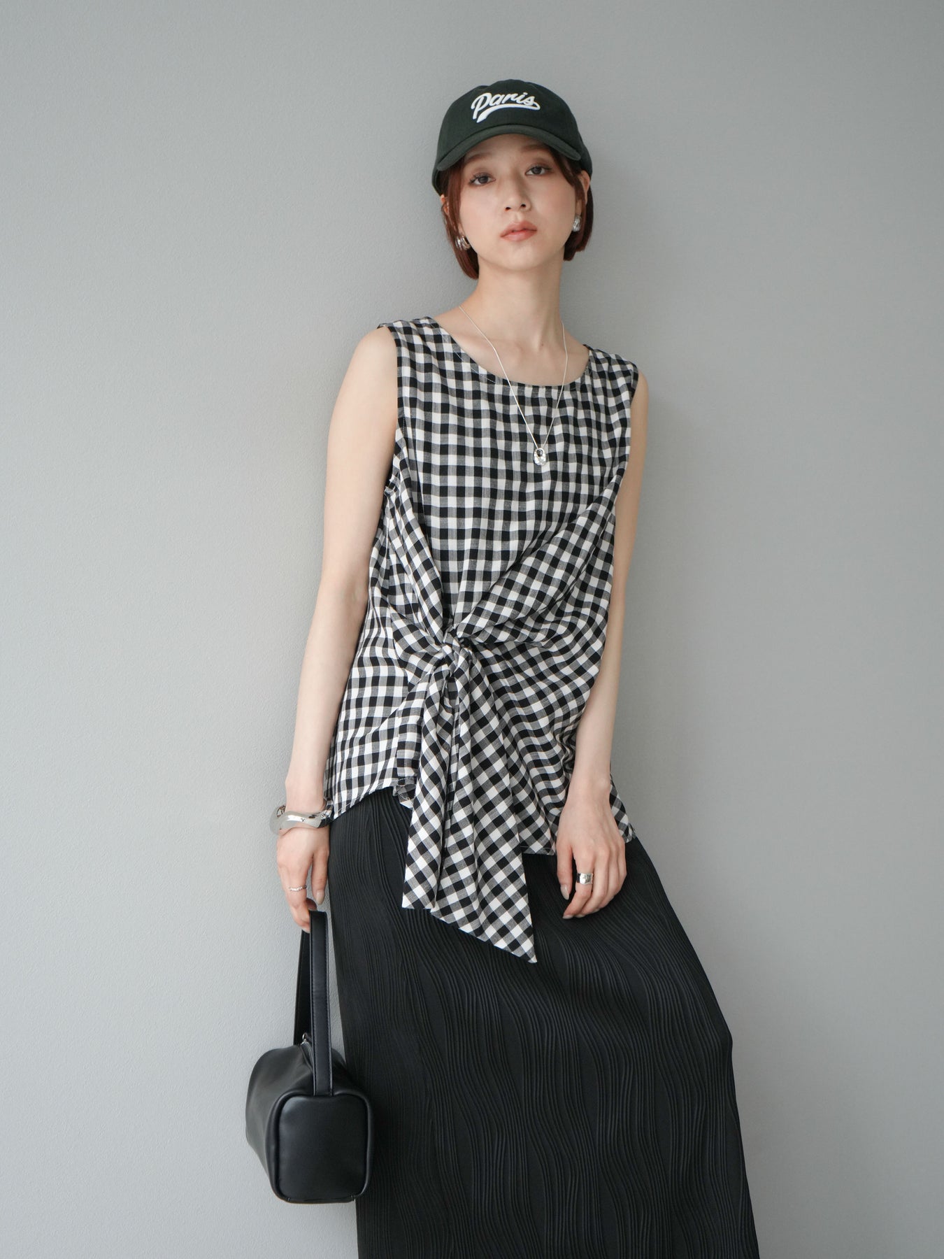簡約卻不失扭紋的無袖上衣,前襟採用裹身設計。前襟裹身設計格外醒目,自然收緊腰線,打造立體輪廓。輕盈布料觸感柔滑,穿著舒適。精緻的無袖上衣略微遮蓋肩部,兼具優雅與休閒的氣質。無論搭配寬鬆下裝或緊身下裝,都能輕鬆駕馭,是一款百搭單品。 ※除下裝、吊帶背心(內衣)以外的商品均不含內衣。