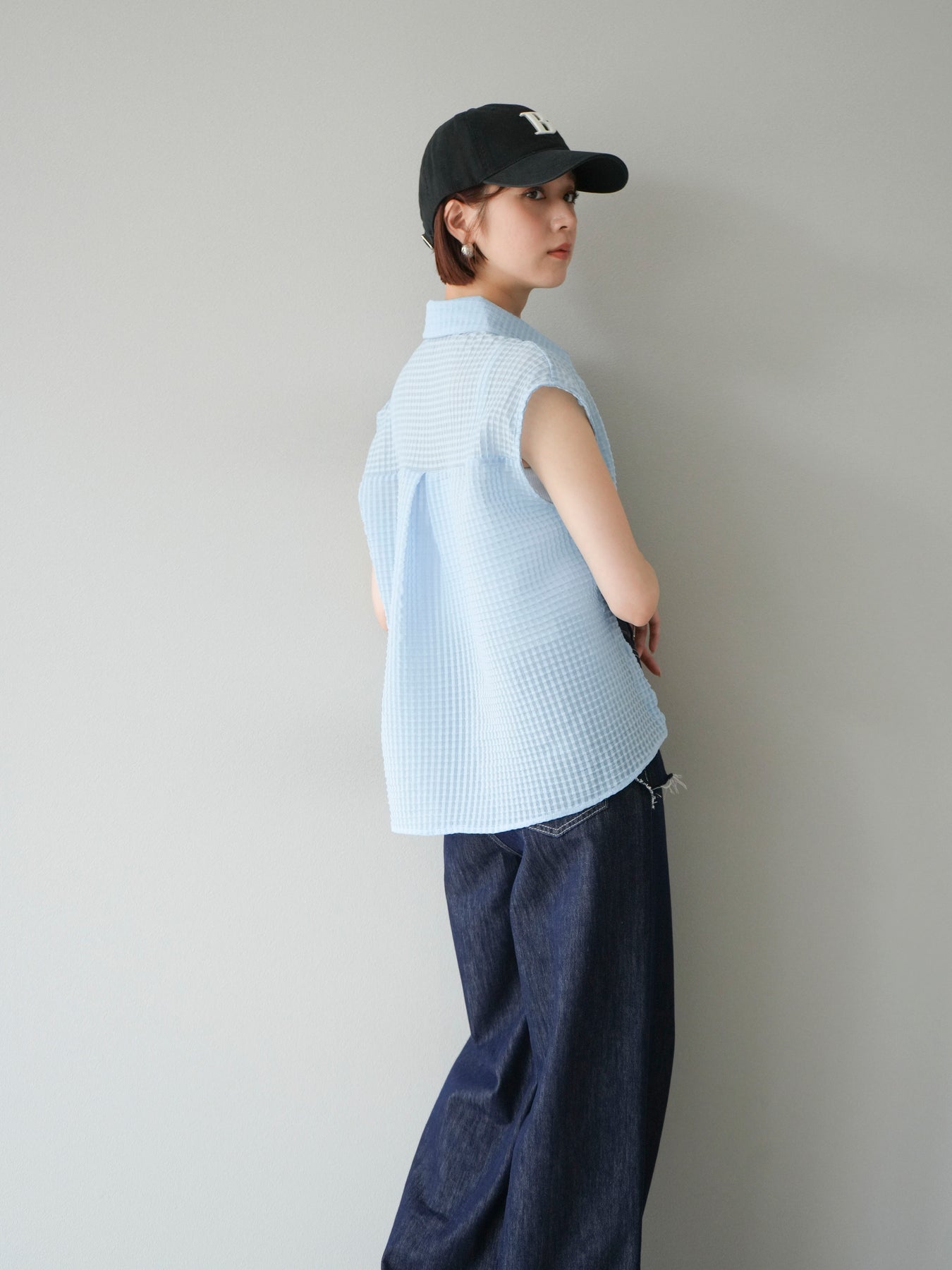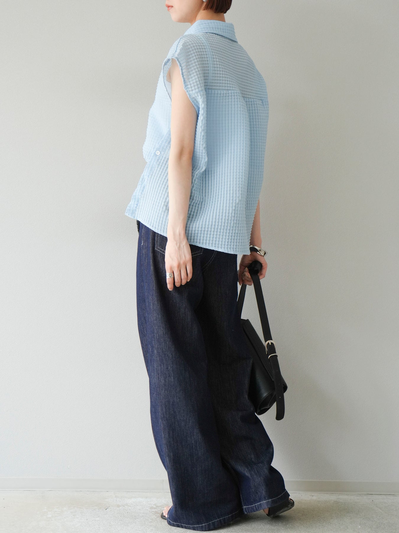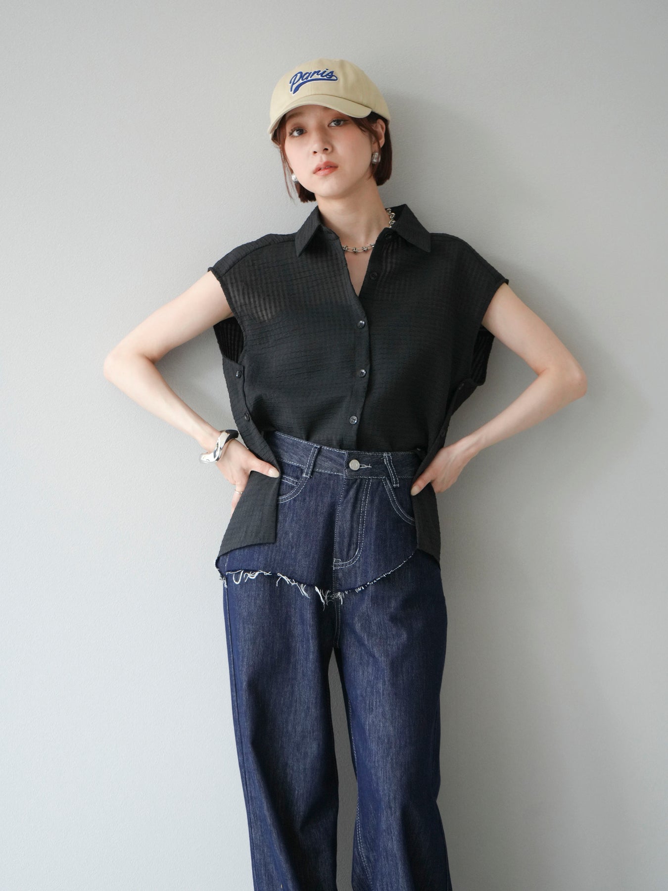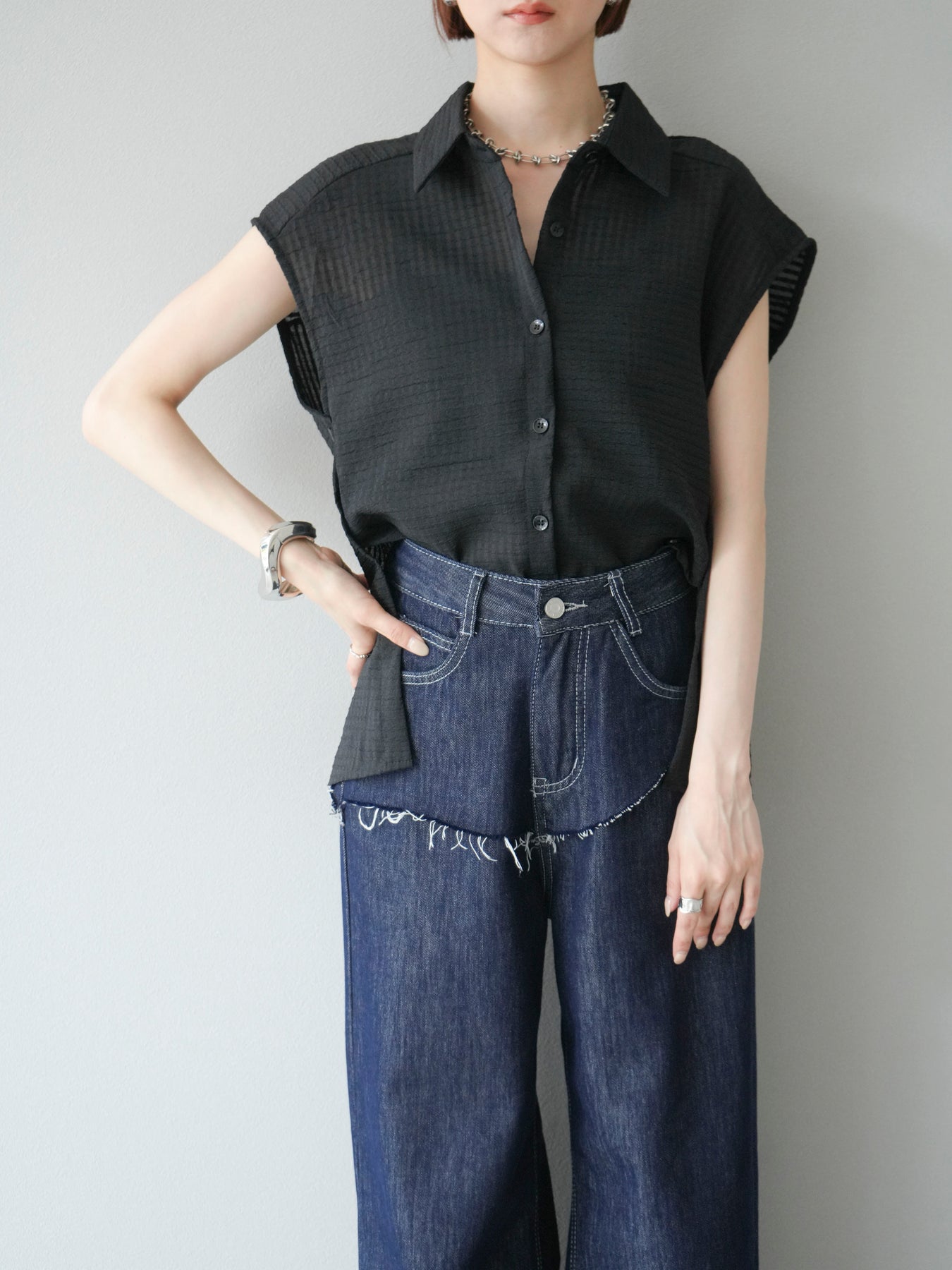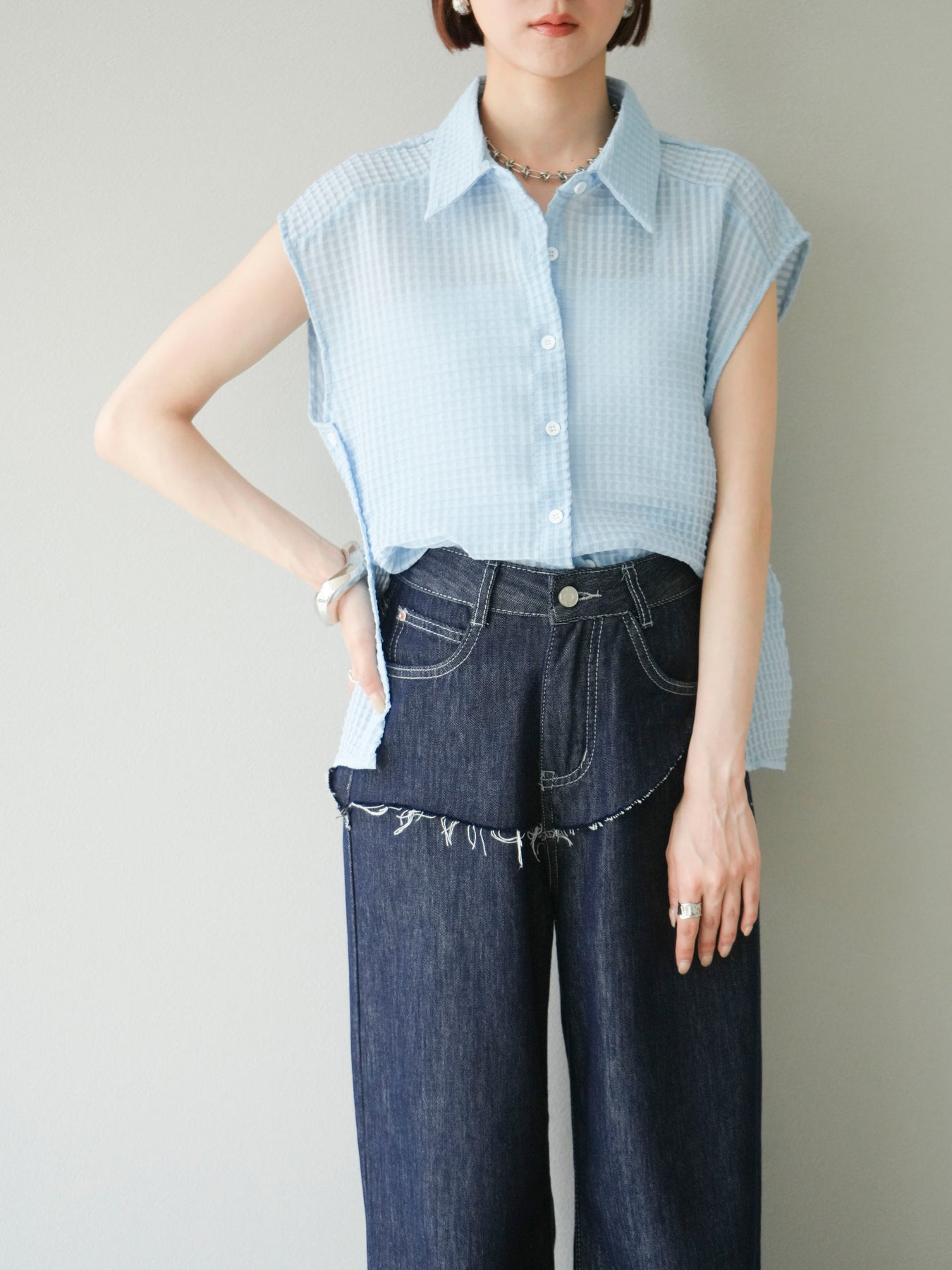 ◆ 【預購】透視格紋無袖襯衫
