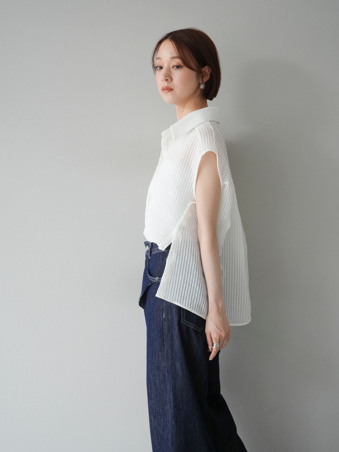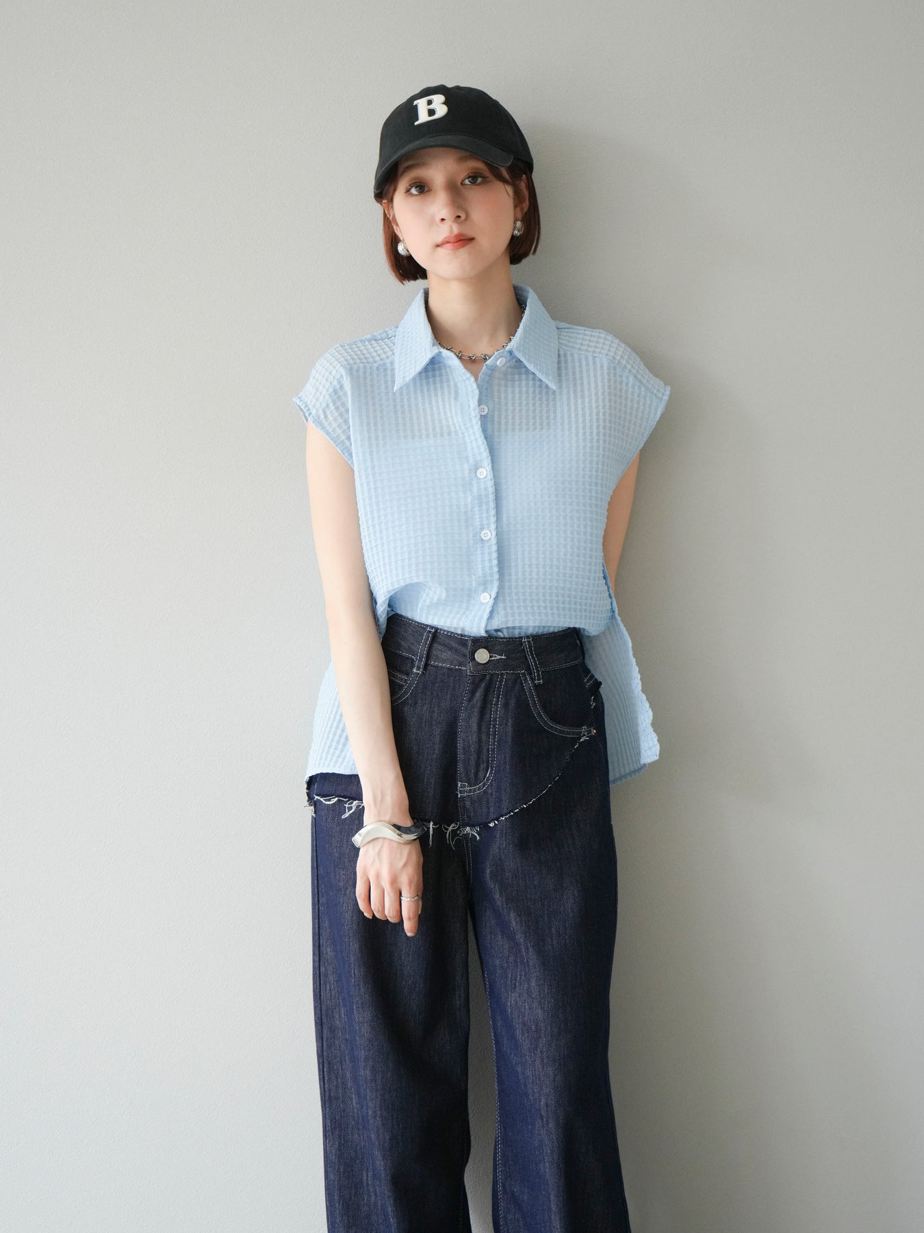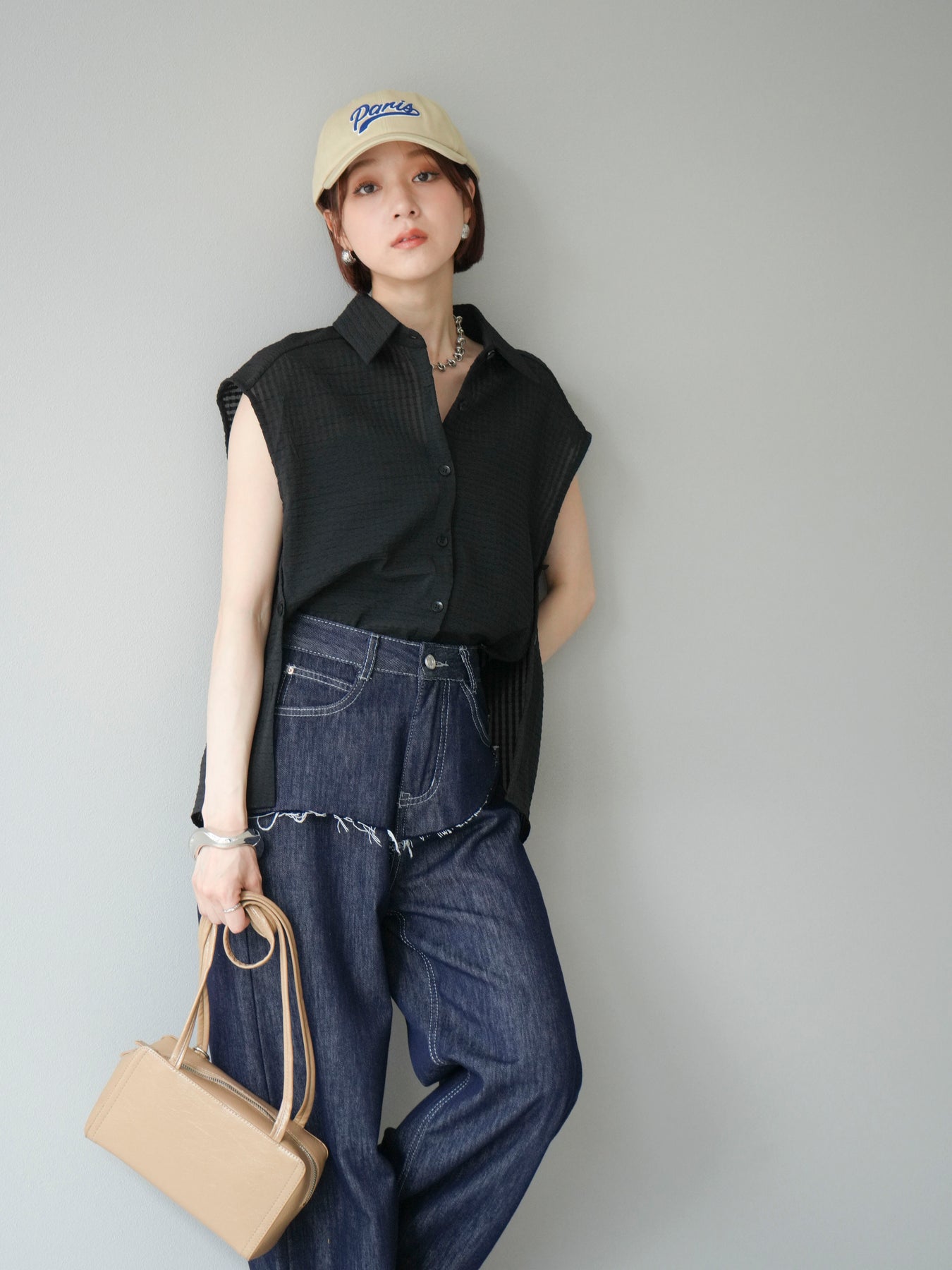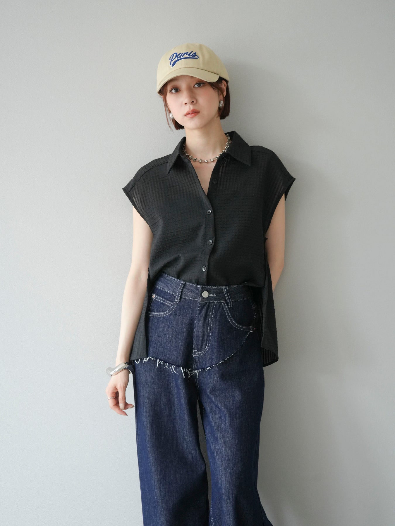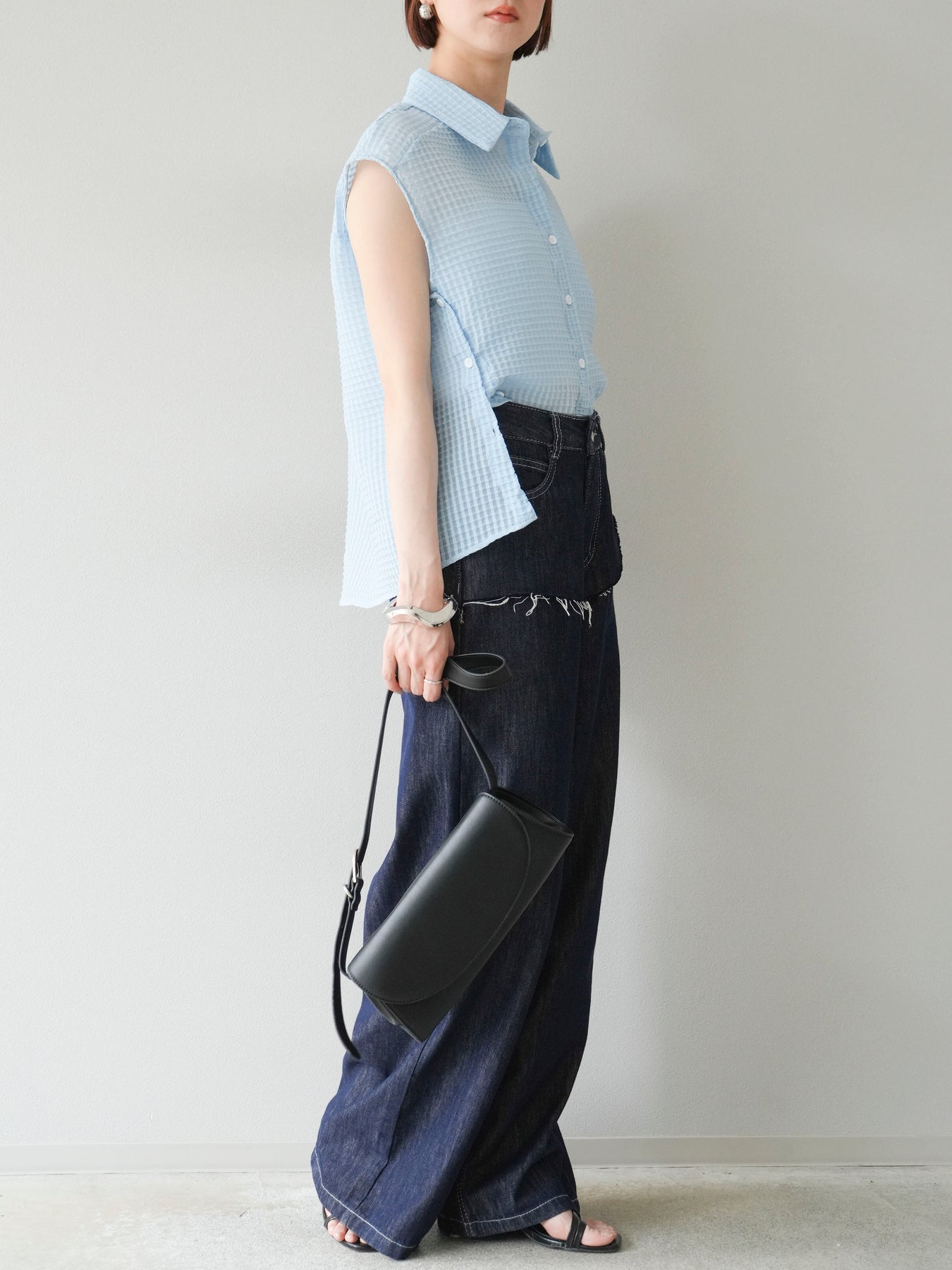 ◆ 【預購】透視格紋無袖襯衫