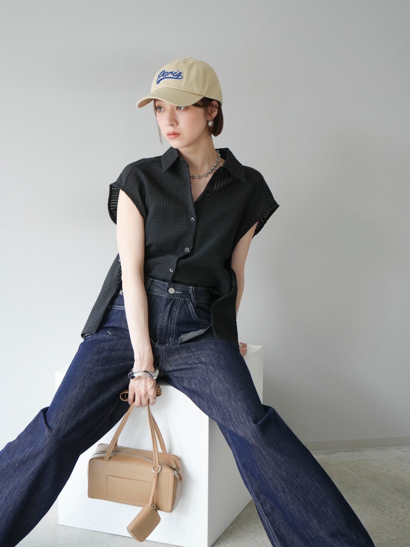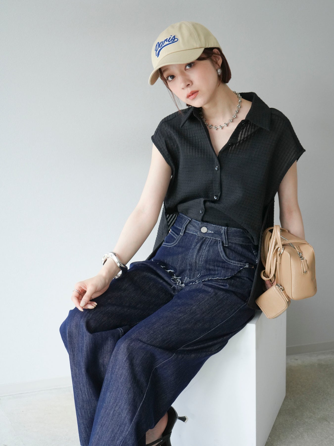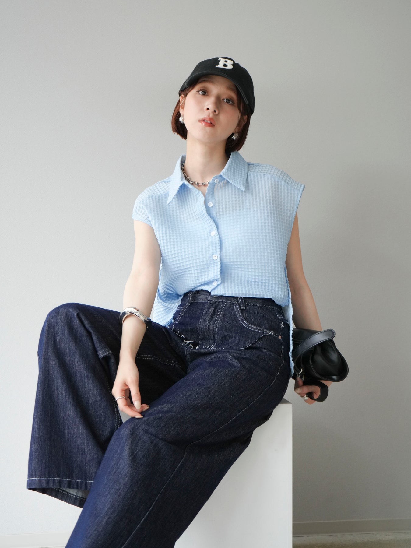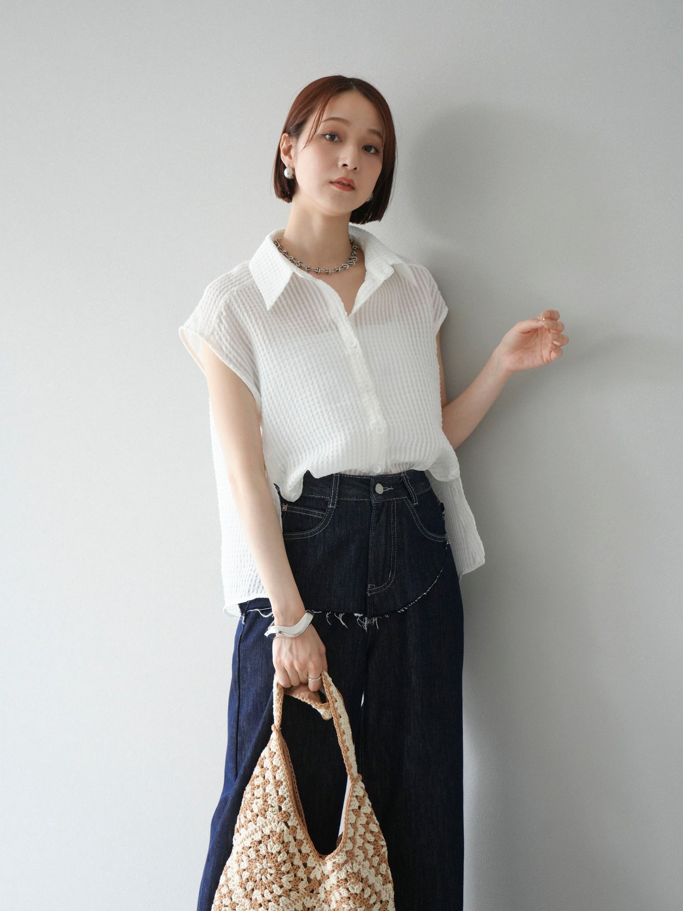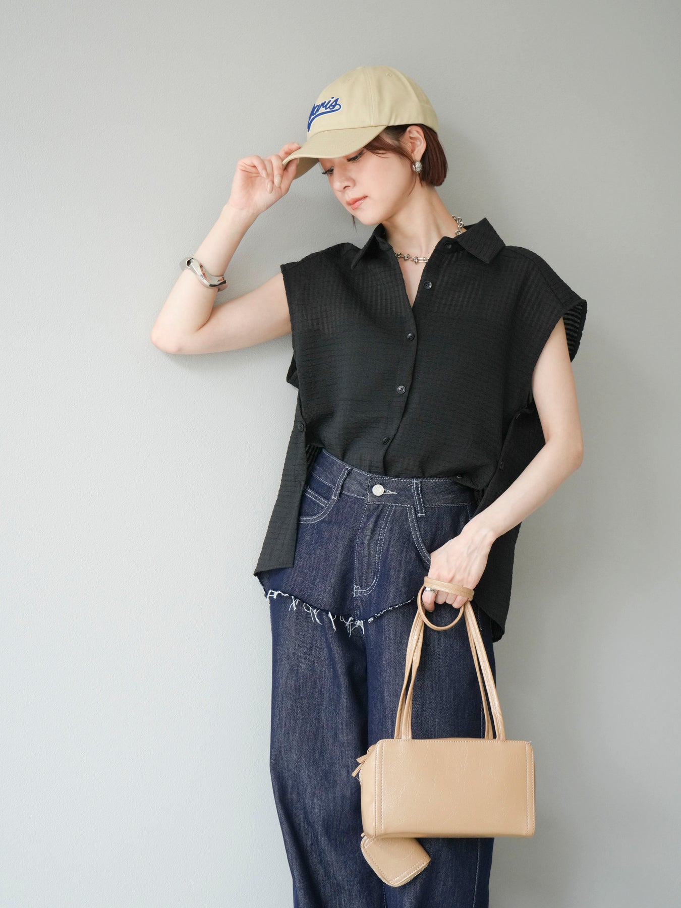 ◆ 【預購】透視格紋無袖襯衫