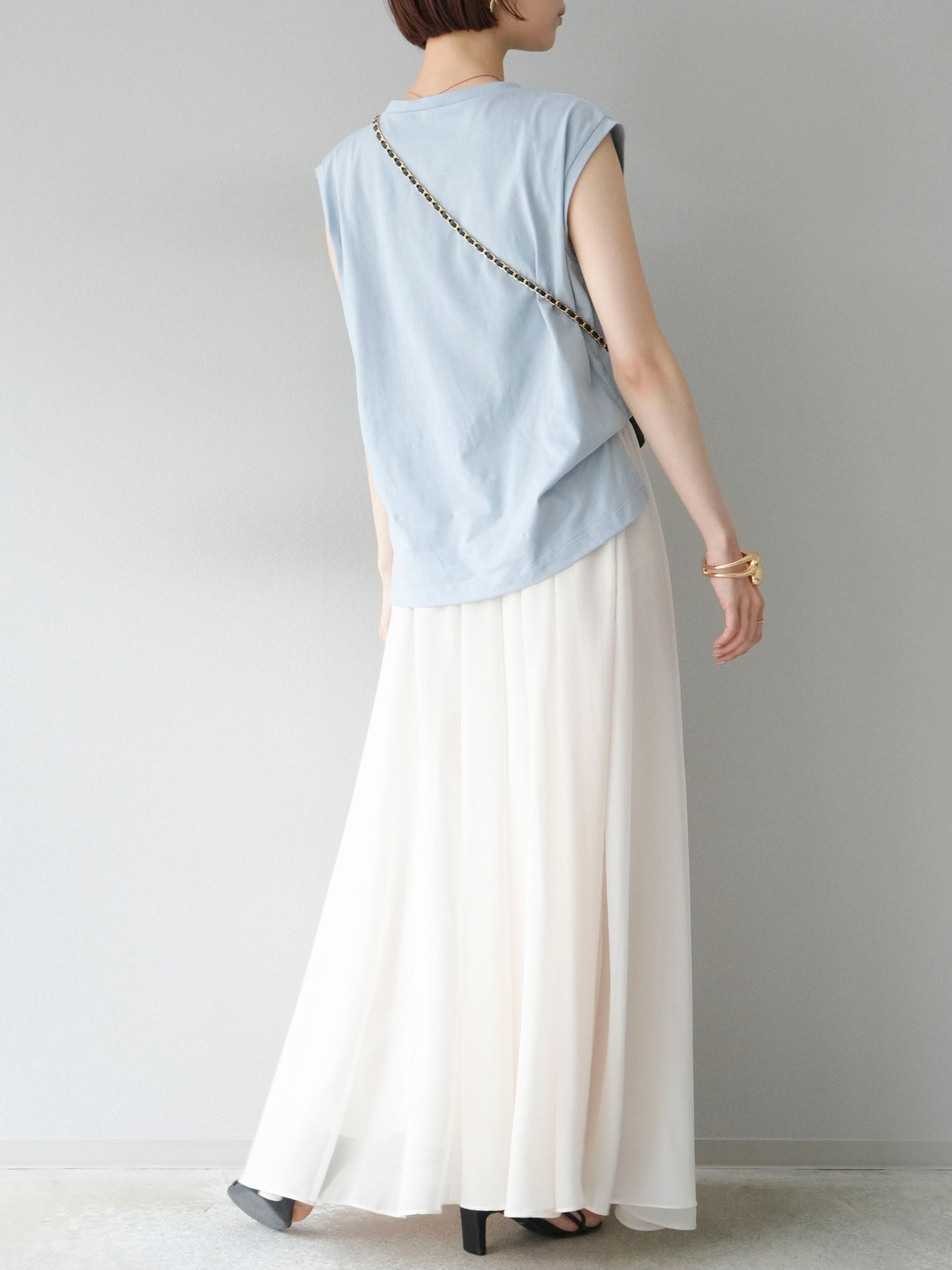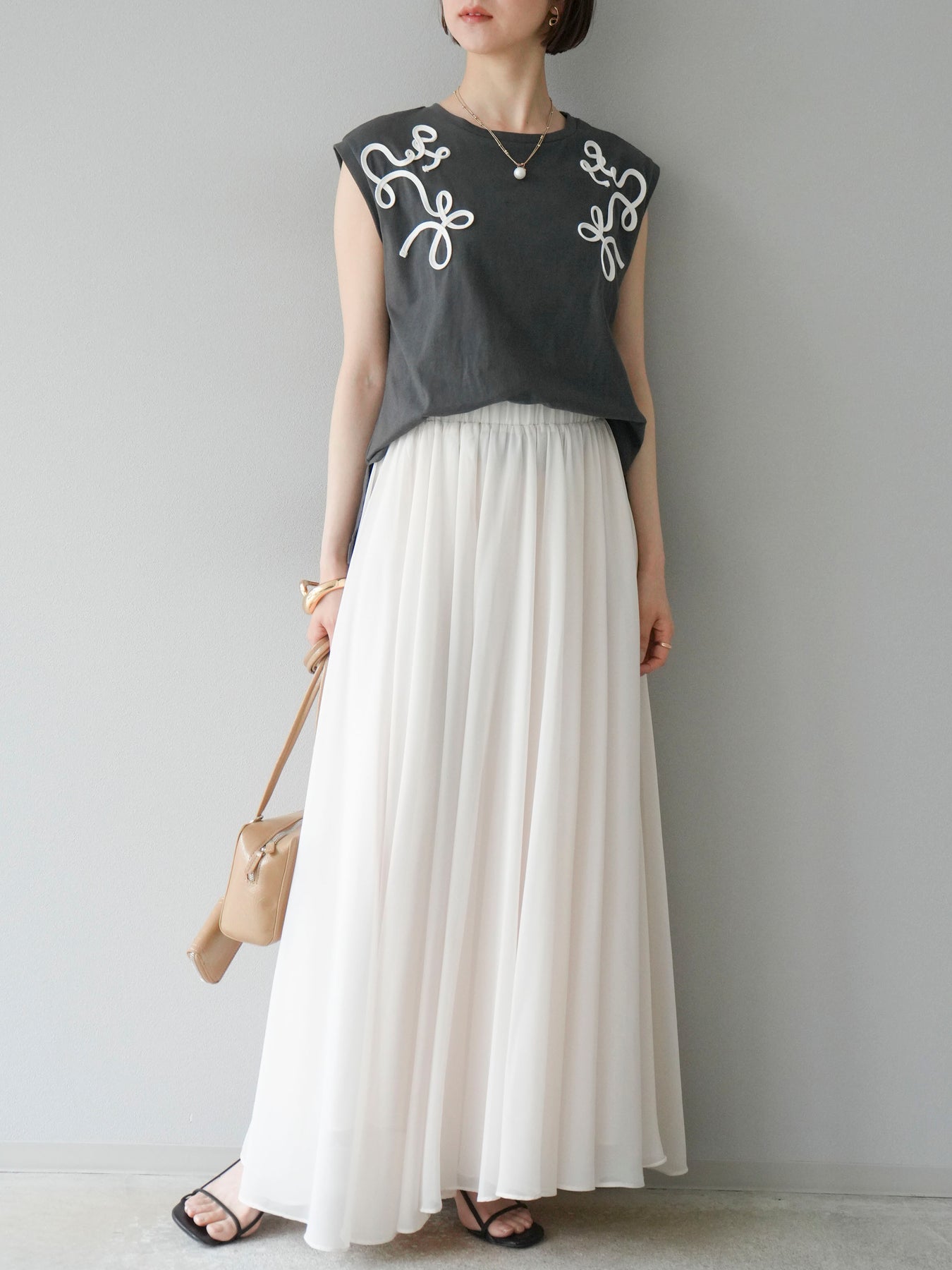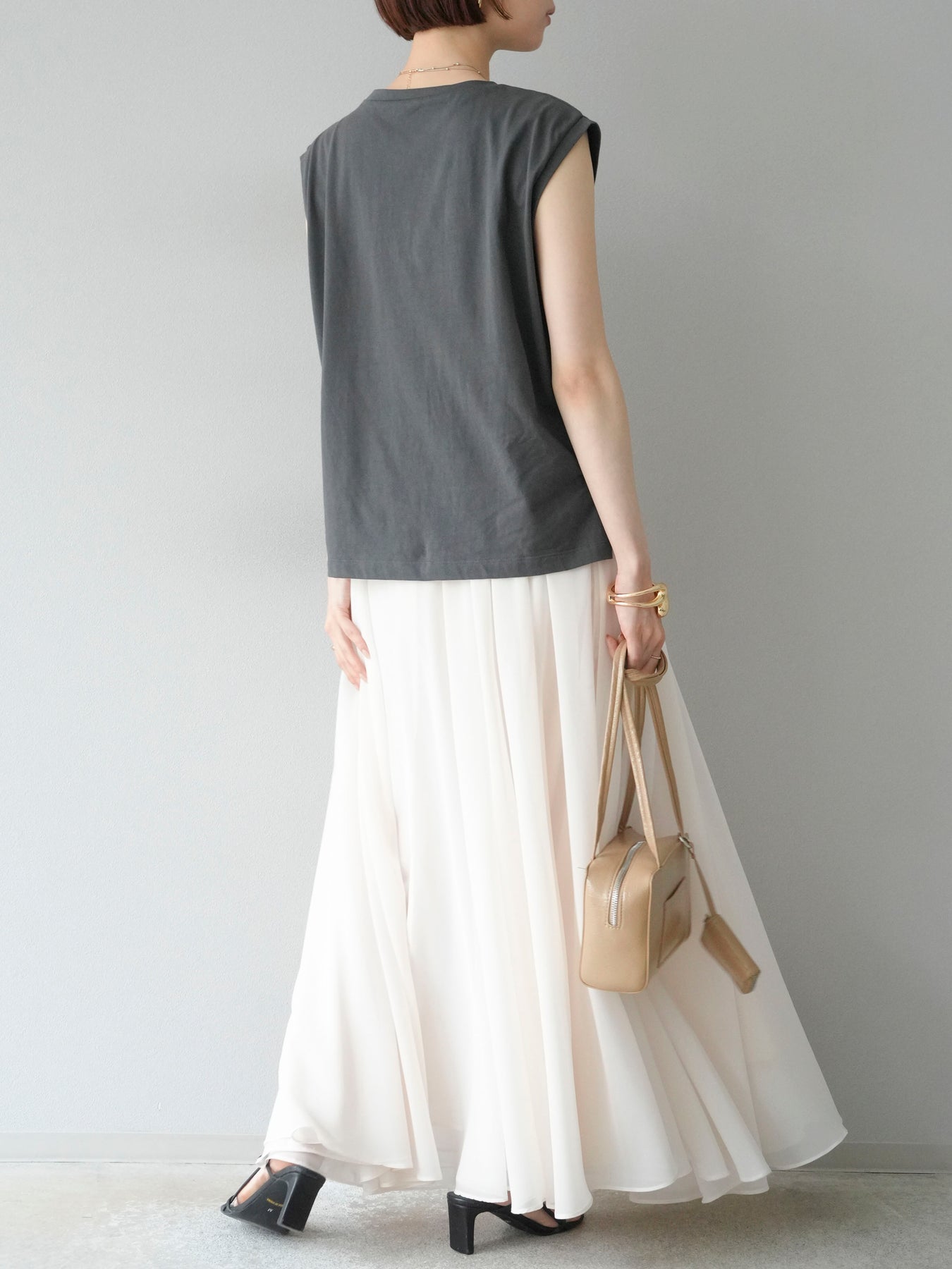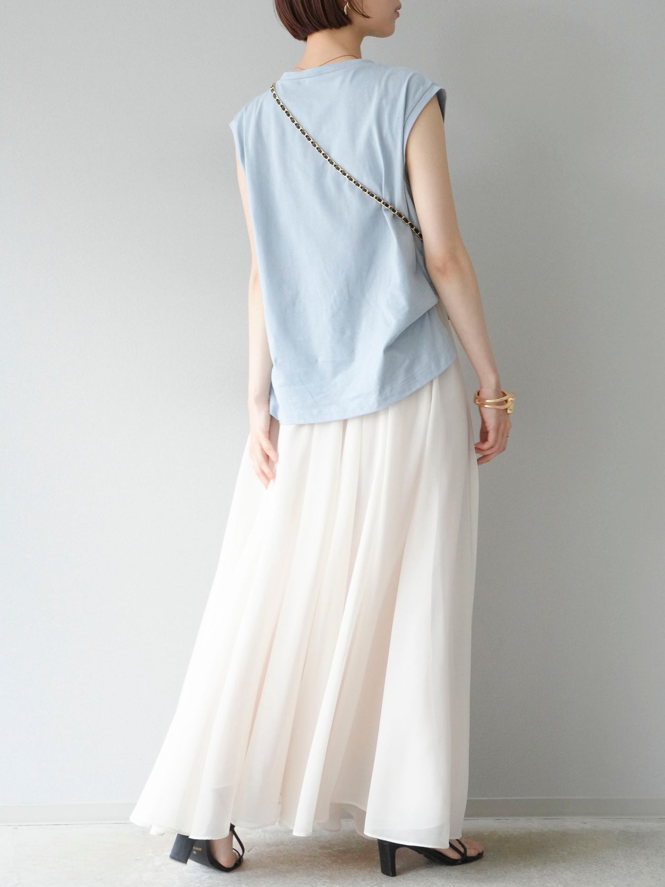 雪紡喇叭裙,質感輕盈飄逸,隨著每個動作輕柔飄揚。大量使用輕盈雪紡布料,步伐輕盈,優雅飄逸。腰部採用全鬆緊設計,穿脫輕鬆自在。適度的透明度提升女性氣質,可搭配任何上衣。可搭配T卹或針織衫,打造休閒造型;也可搭配襯衫,打造職場造型。 ※除下裝、吊帶背心(內衣)以外的商品均不含內衣。