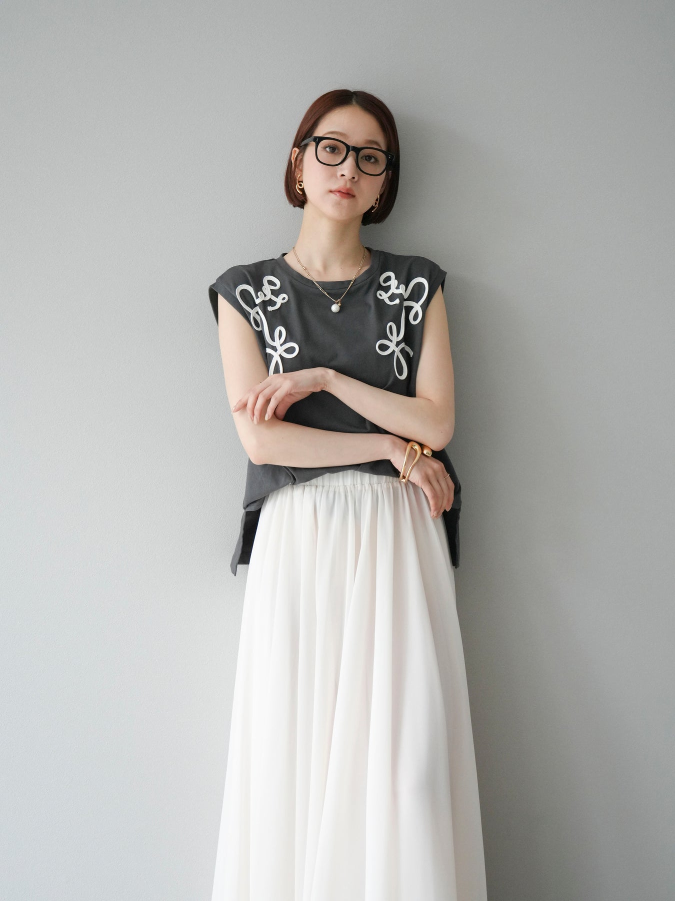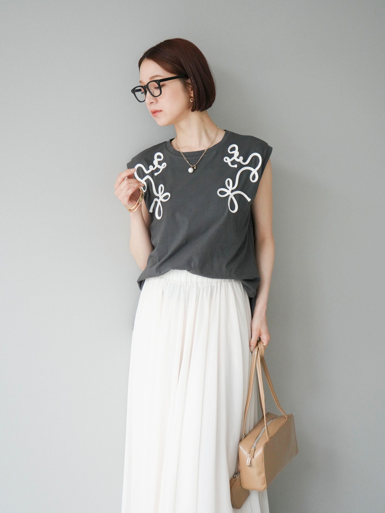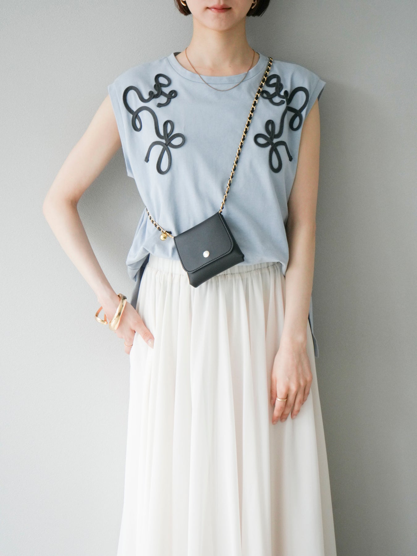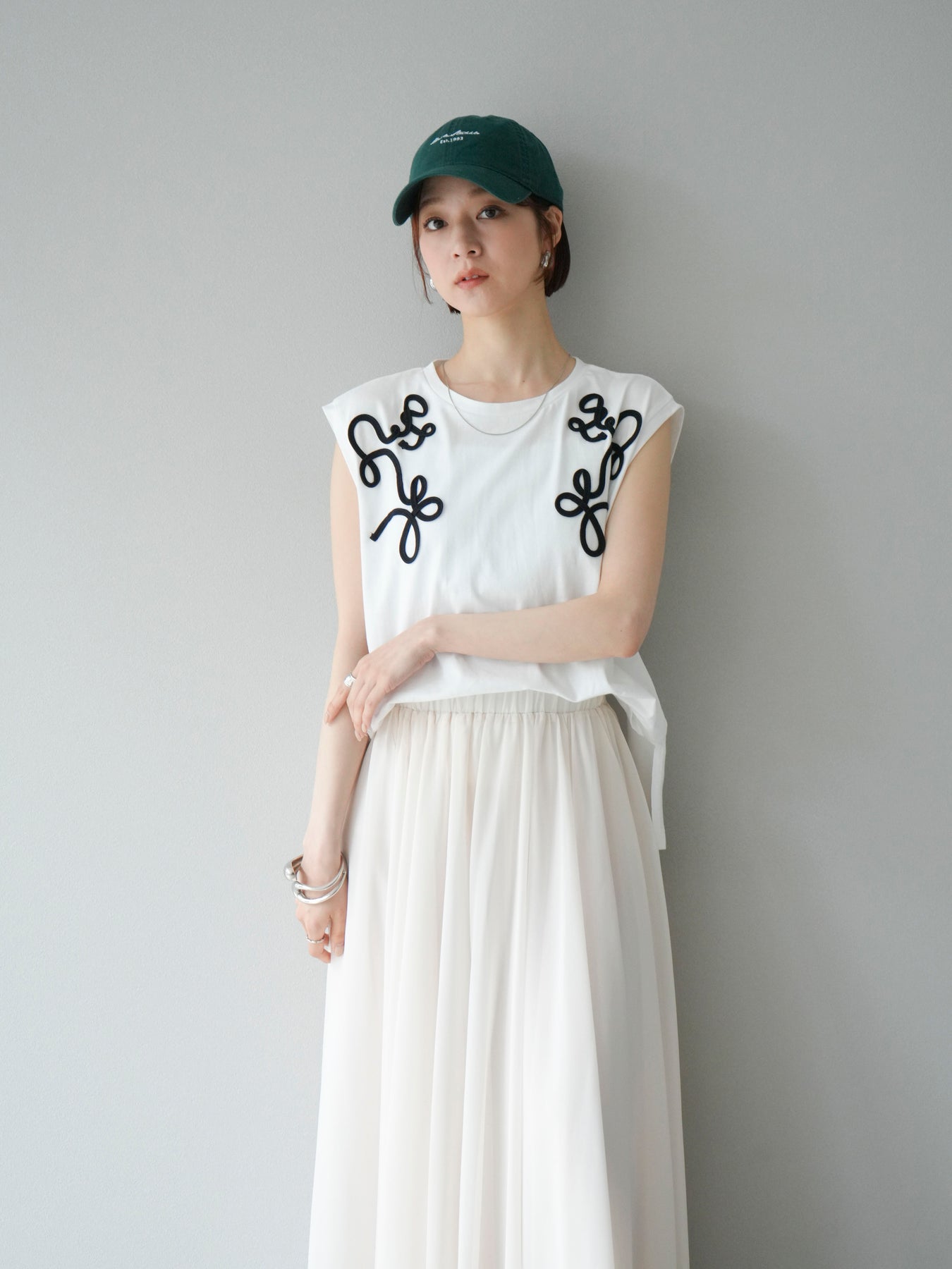 這款T卹採用厚度適中的棉質布料,穿著順滑舒適。法式長袖隨意垂落於肩部,遮蓋手臂,更能展現女性魅力。前襟採用繩紋立體刺繡,簡約時尚的設計魅力十足。它與牛仔褲、裙子、幹練的褲子等各種下裝都能完美搭配,從日常穿著到外出,都能輕鬆駕馭。 ※除下裝、吊帶背心(內衣)以外的商品均不含內衣。