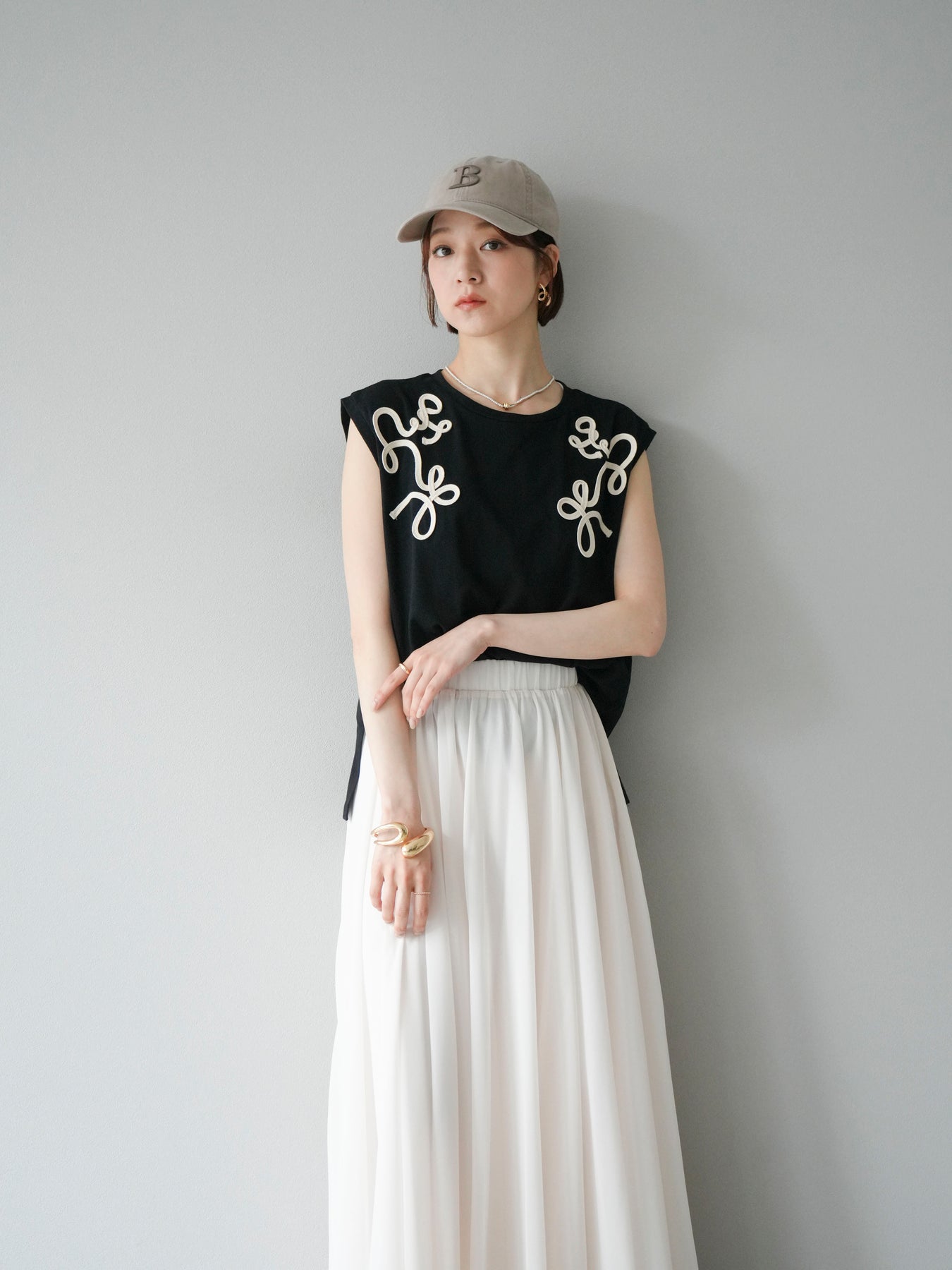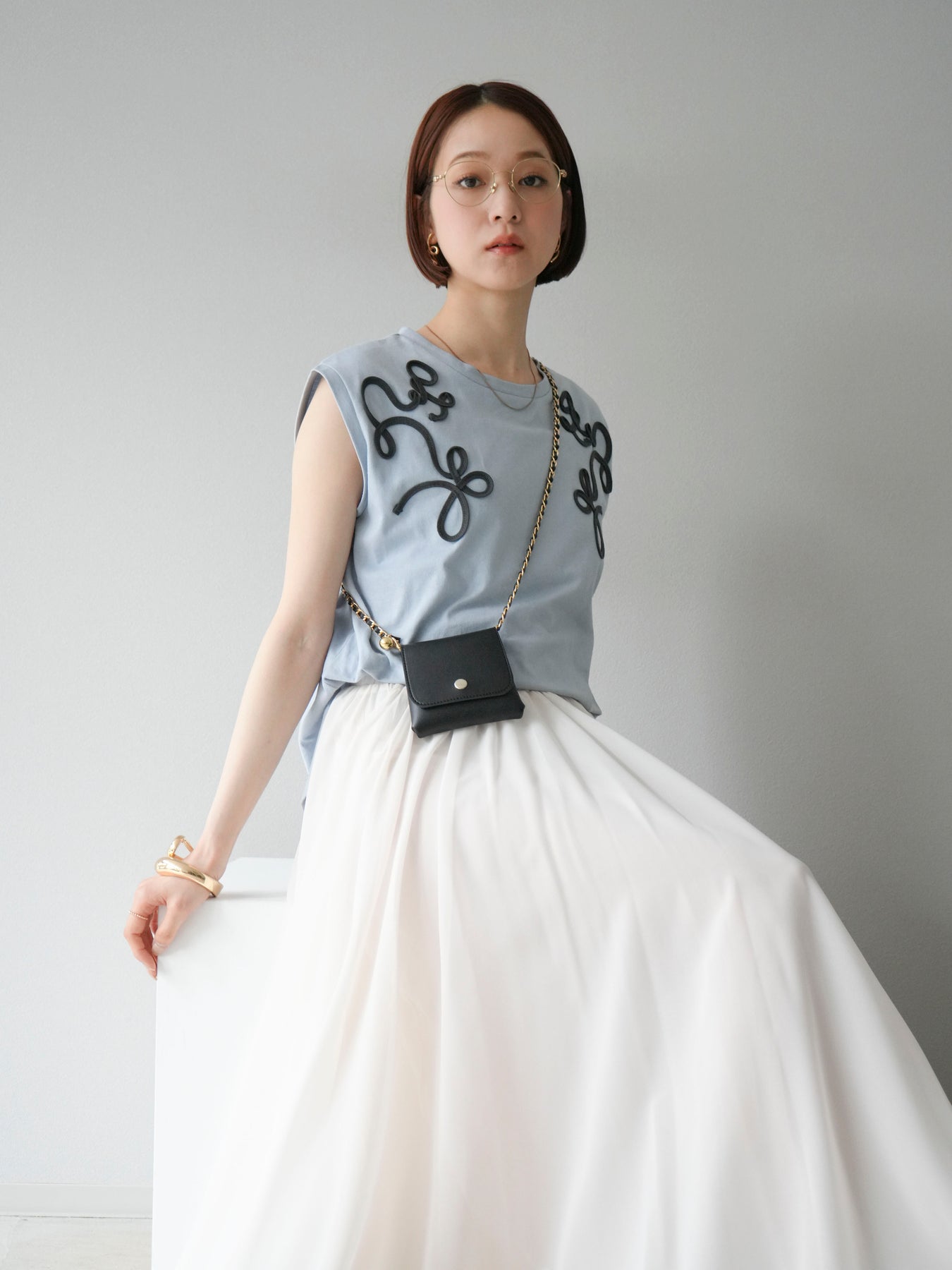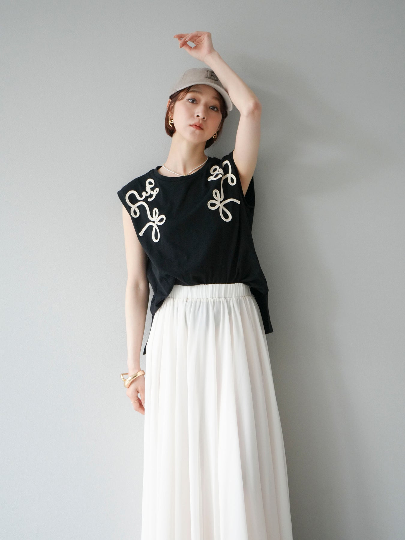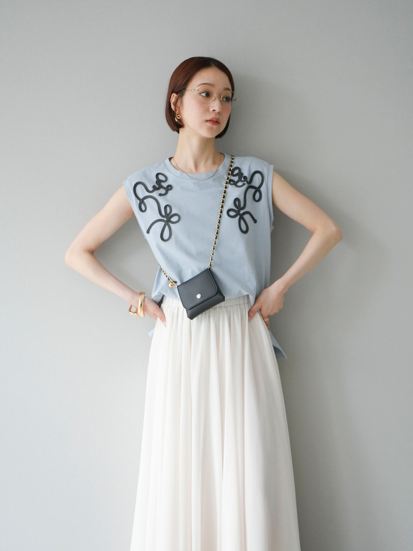 這款T卹採用厚度適中的棉質布料,穿著順滑舒適。法式長袖隨意垂落於肩部,遮蓋手臂,更能展現女性魅力。前襟採用繩紋立體刺繡,簡約時尚的設計魅力十足。它與牛仔褲、裙子、幹練的褲子等各種下裝都能完美搭配,從日常穿著到外出,都能輕鬆駕馭。 ※除下裝、吊帶背心(內衣)以外的商品均不含內衣。