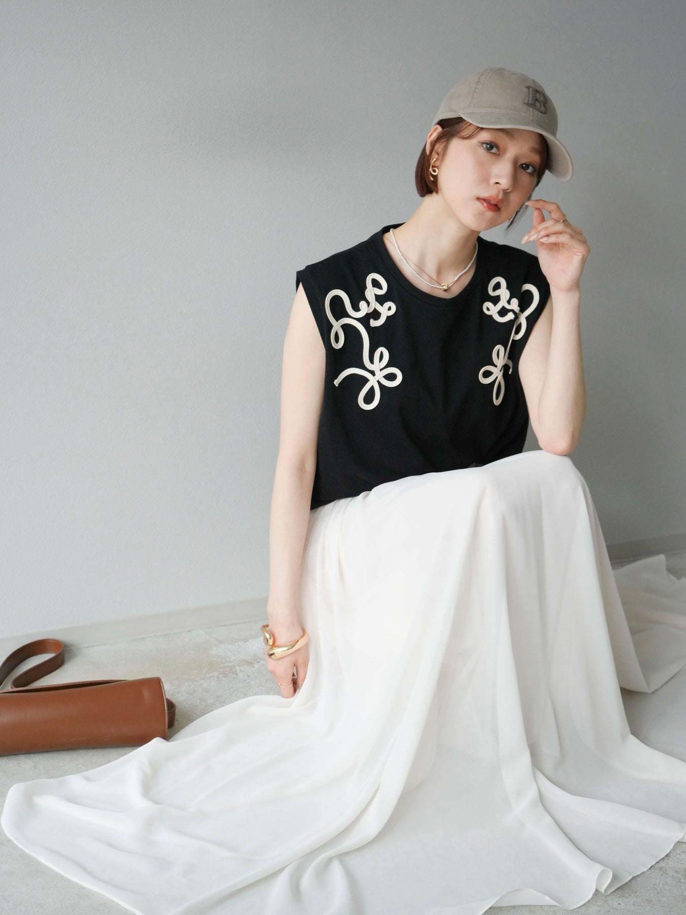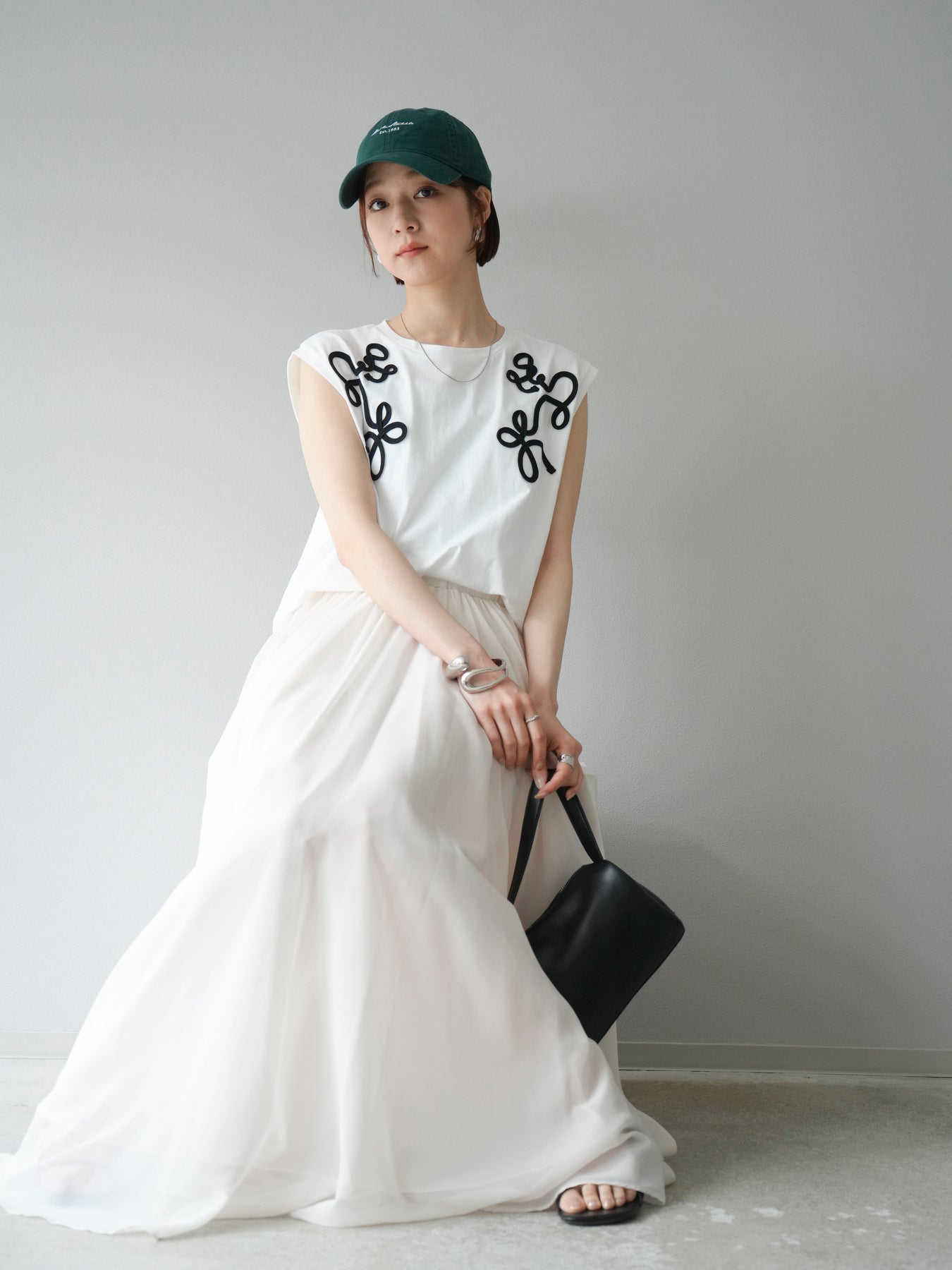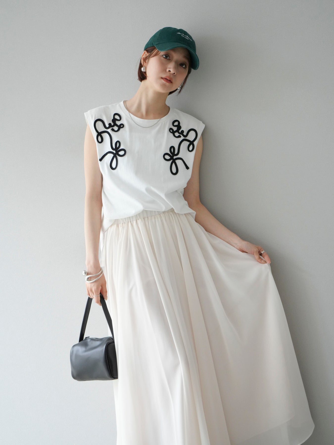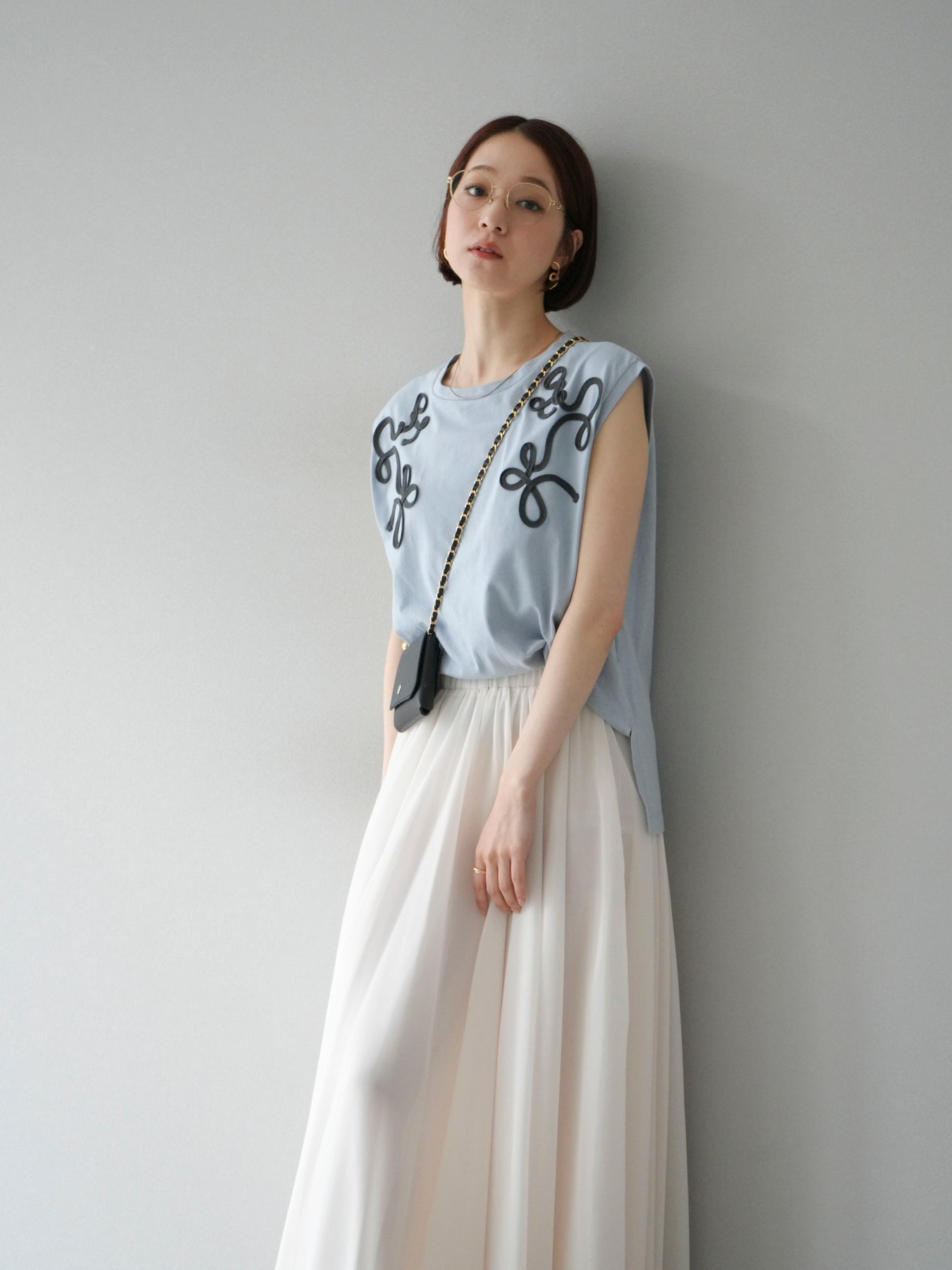 這款T卹採用厚度適中的棉質布料,穿著順滑舒適。法式長袖隨意垂落於肩部,遮蓋手臂,更能展現女性魅力。前襟採用繩紋立體刺繡,簡約時尚的設計魅力十足。它與牛仔褲、裙子、幹練的褲子等各種下裝都能完美搭配,從日常穿著到外出,都能輕鬆駕馭。 ※除下裝、吊帶背心(內衣)以外的商品均不含內衣。