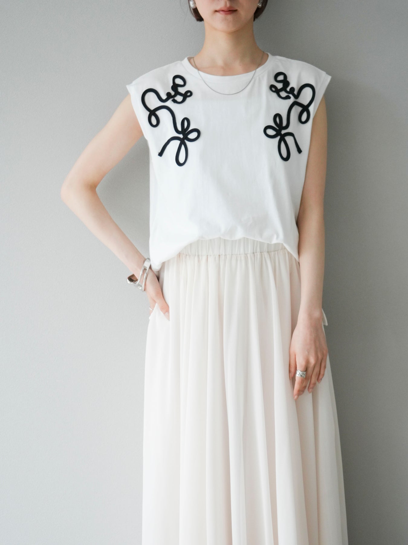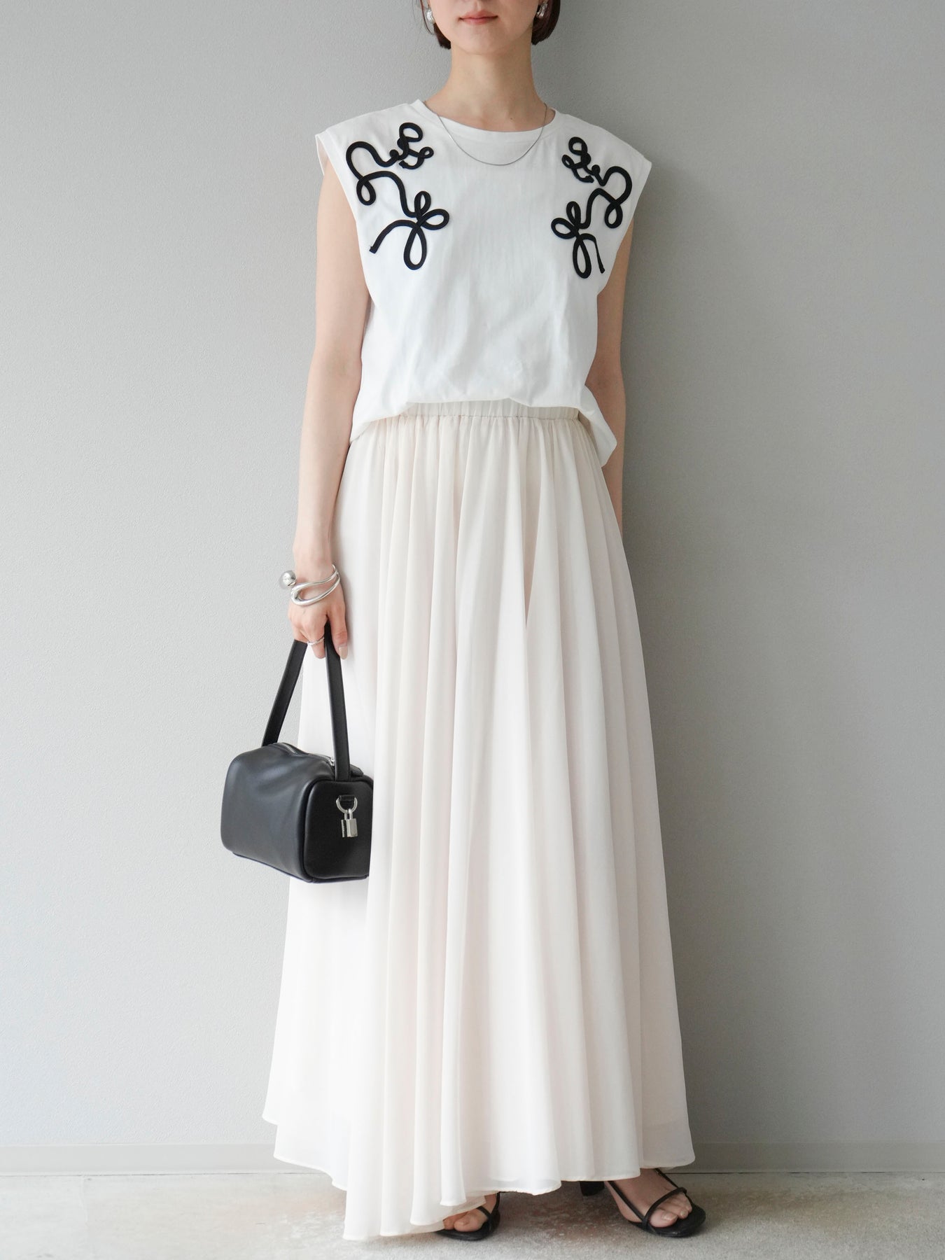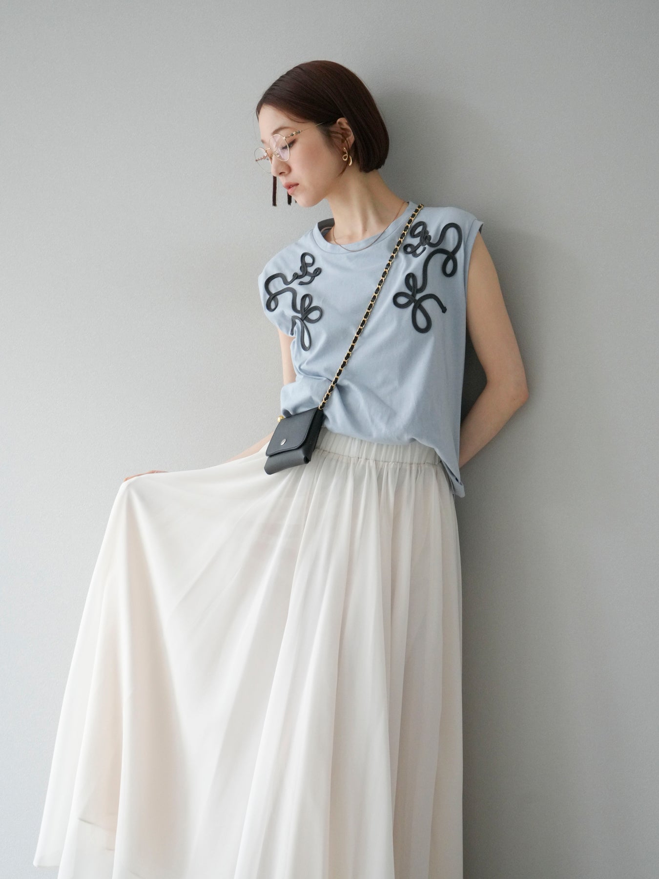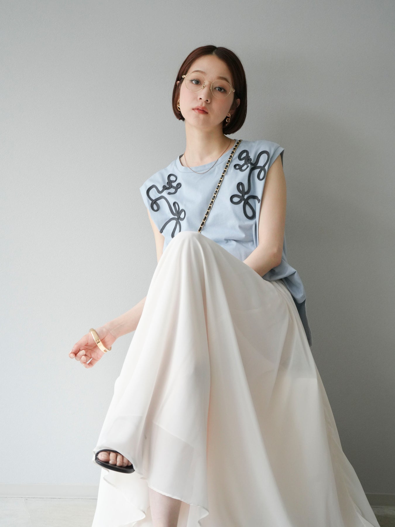 這款T卹採用厚度適中的棉質布料,穿著順滑舒適。法式長袖隨意垂落於肩部,遮蓋手臂,更能展現女性魅力。前襟採用繩紋立體刺繡,簡約時尚的設計魅力十足。它與牛仔褲、裙子、幹練的褲子等各種下裝都能完美搭配,從日常穿著到外出,都能輕鬆駕馭。 ※除下裝、吊帶背心(內衣)以外的商品均不含內衣。