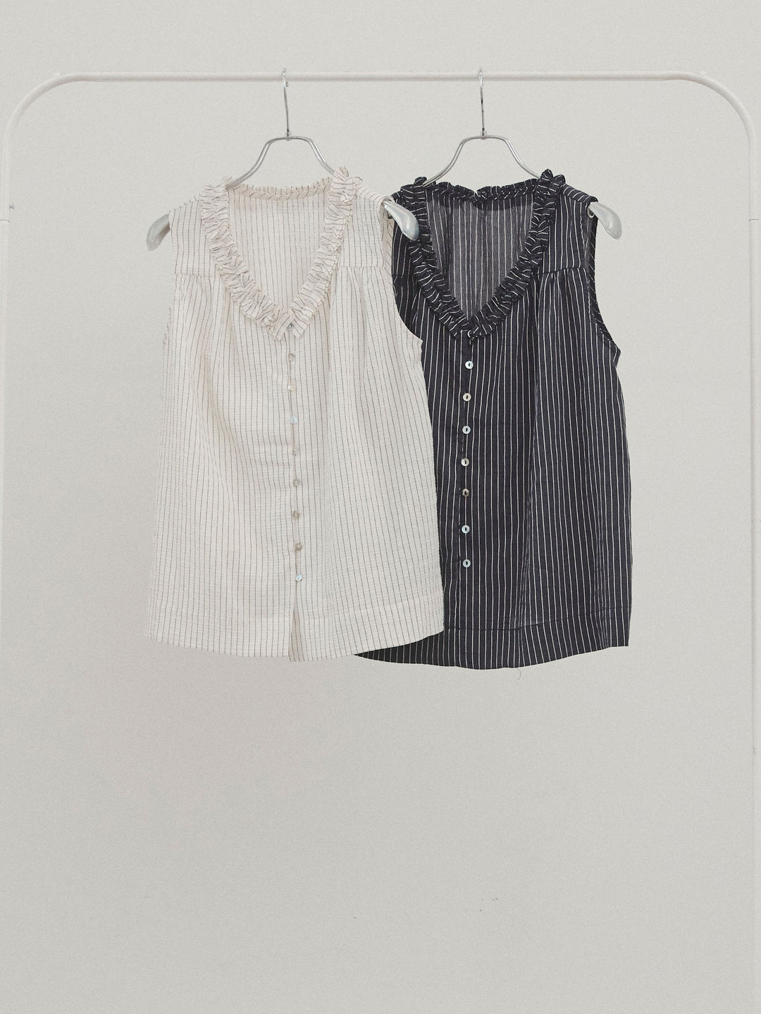 [SET] 條紋荷葉邊襯衫 + 條紋荷葉邊襯衫 (2件套)