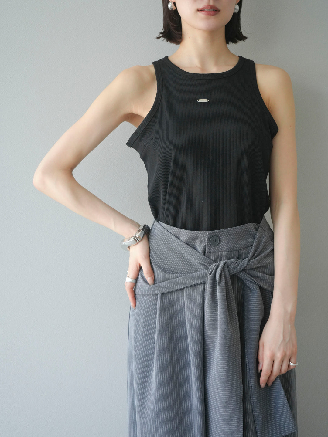 [SET] 扭紋無袖上衣配皮項鍊 + 扭紋無袖上衣配皮項鍊 (2件套)